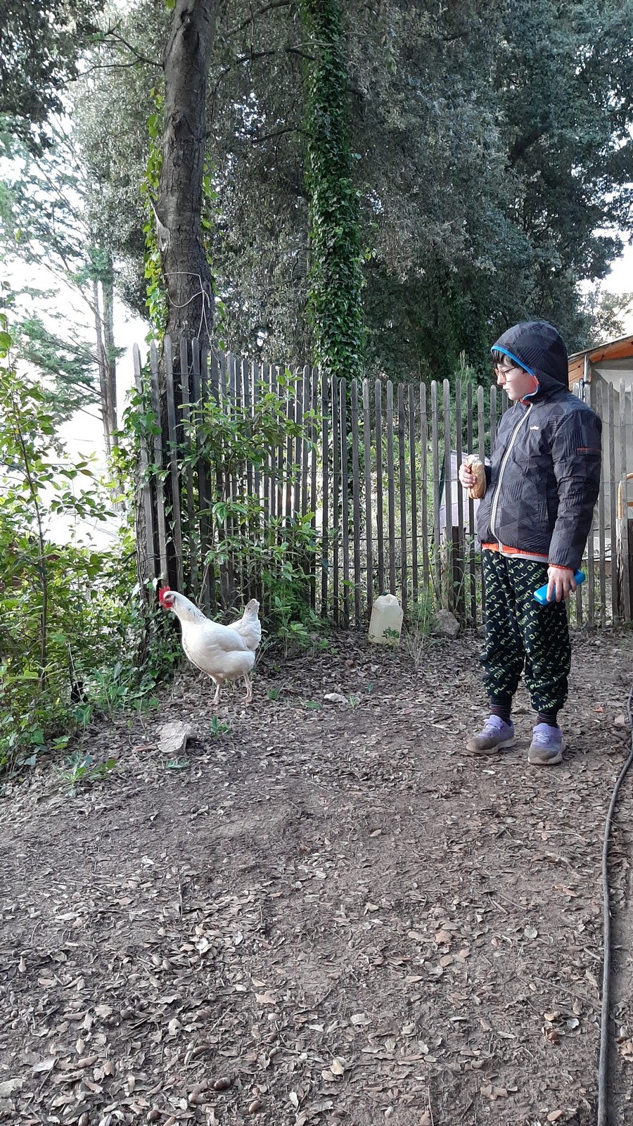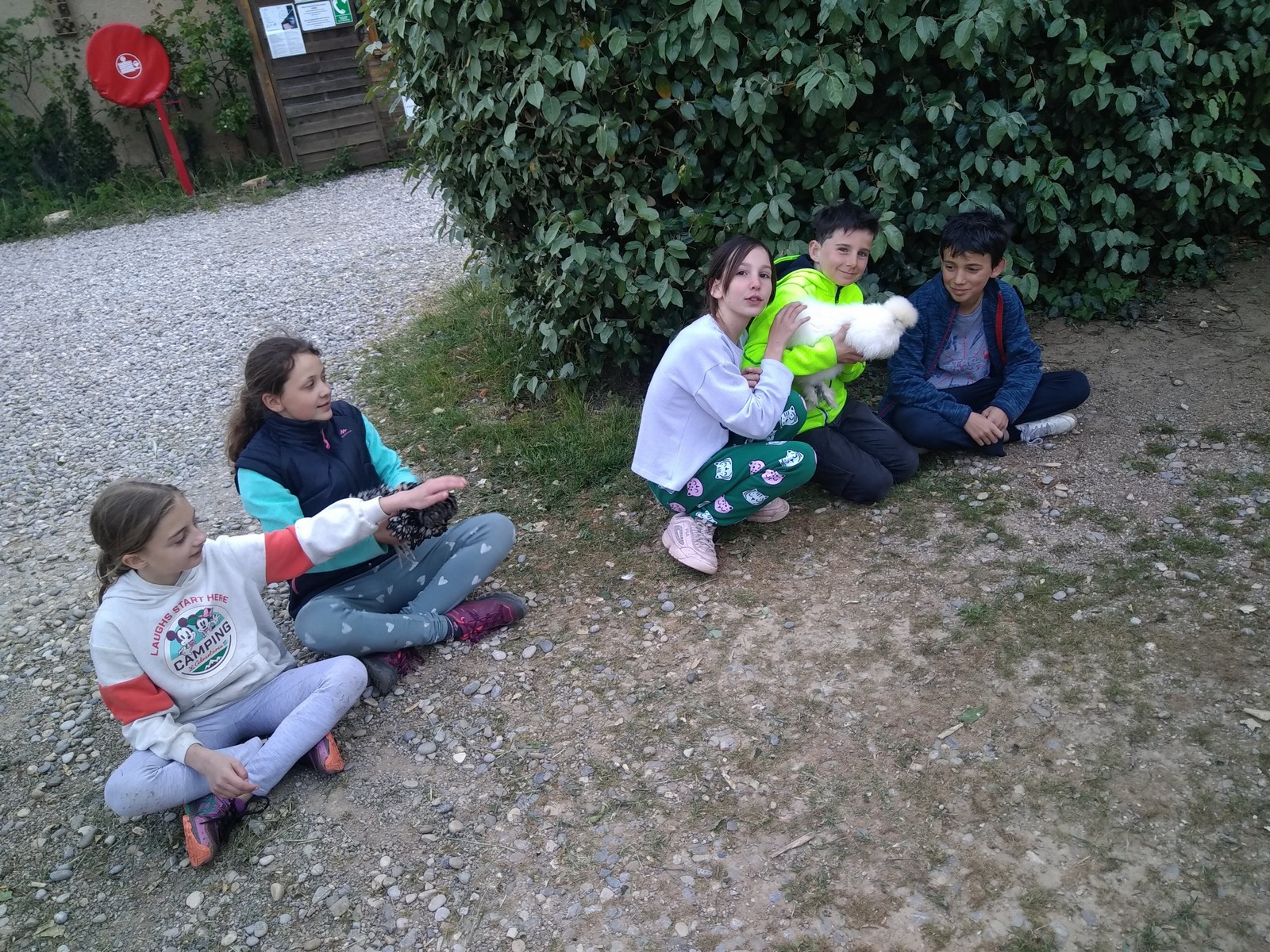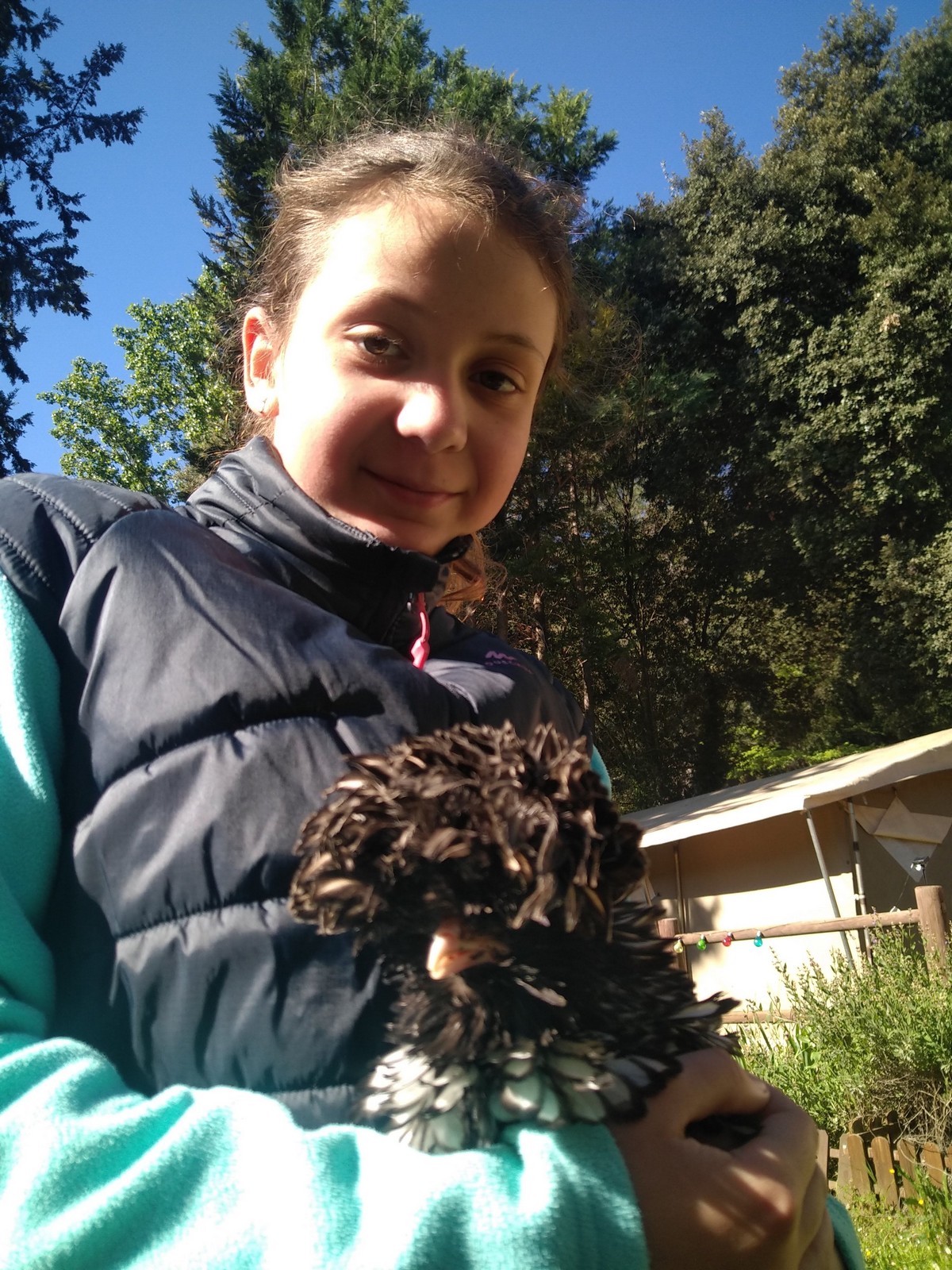 Le lendemain matin la question est inévitable. La nuit a été bonne ? Les jeunes, malgré un froid mordant, semblent avoir bien dormi, les moins jeunes beaucoup moins… Anaïs, qui n’était pas bien fraîche en soirée, a passé une bonne partie de la nuit à tousser mais cela ne semble pas l’avoir importuner. On avait donné 8h30 comme limite max pour se lever mais il ne sera pas nécessaire d’aller tirer des enfants du lit. C’est le premier matin et la fatigue n’est pas encore trop présente. On sait que cela va changer au fil des jours. La journée s’annoncant sportive nous donne droit à un petit déj riche en lipides et c’est un, deux ou trois pots de Nutella qui sont engloutis pendant que les bananes sont reléguées à leur triste rang de fruit peu compatible avec la jeunesse. Pendant que les adultes s’occupent de la préparation des sandwichs, les jeunes citadins font connaissance avec le milieu rural et s’amusent avec poules et dindons. Quelques instants plus tard nous sommes opérationnels pour une journée complète de varappe comme l’on disait jadis.