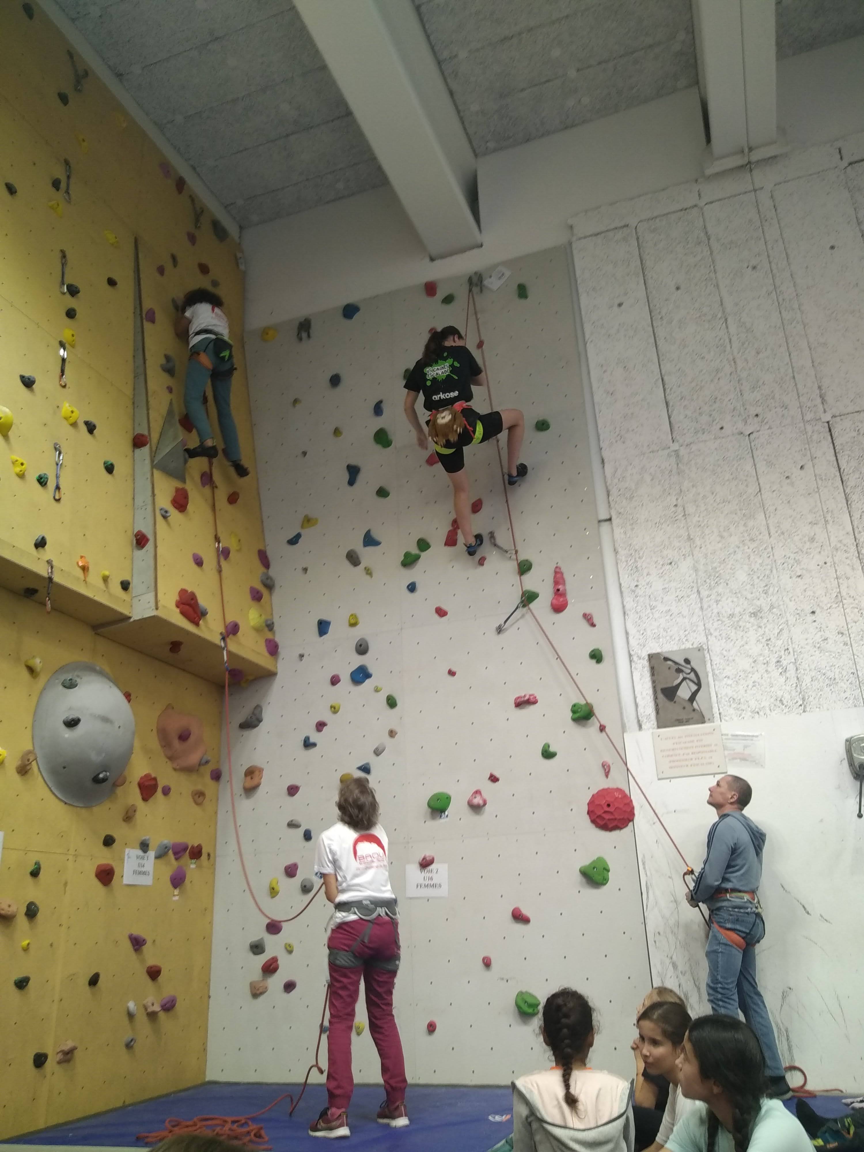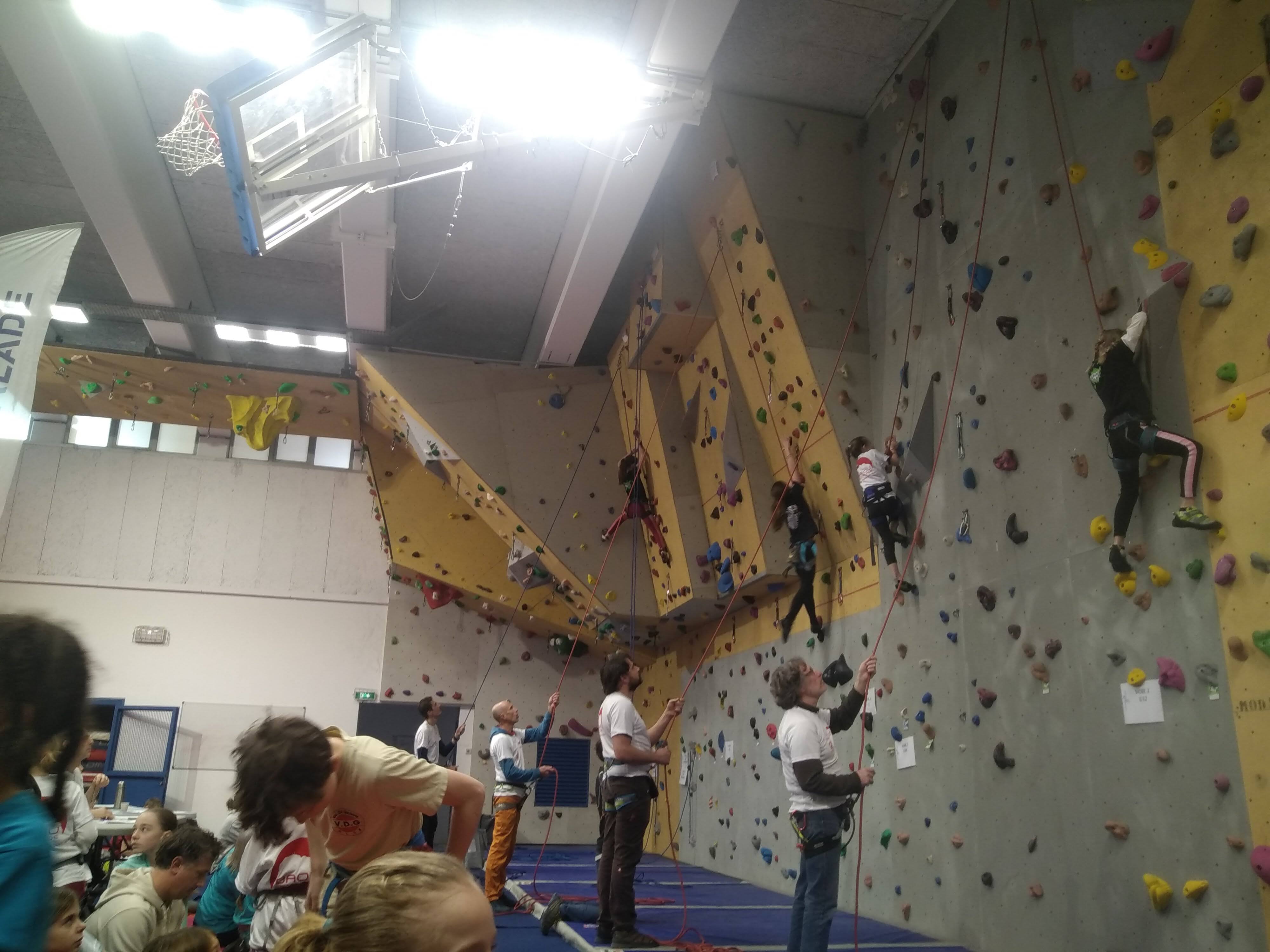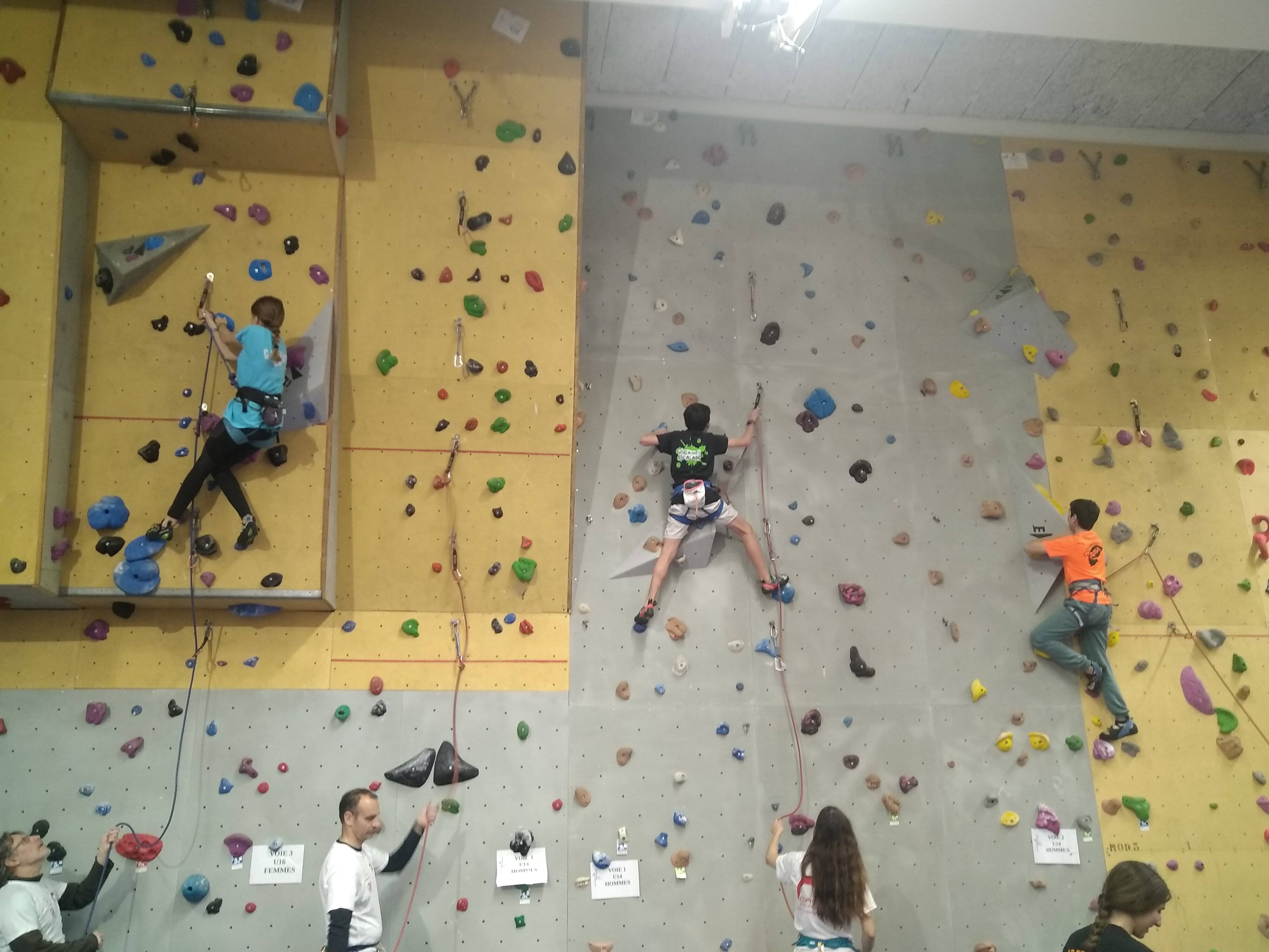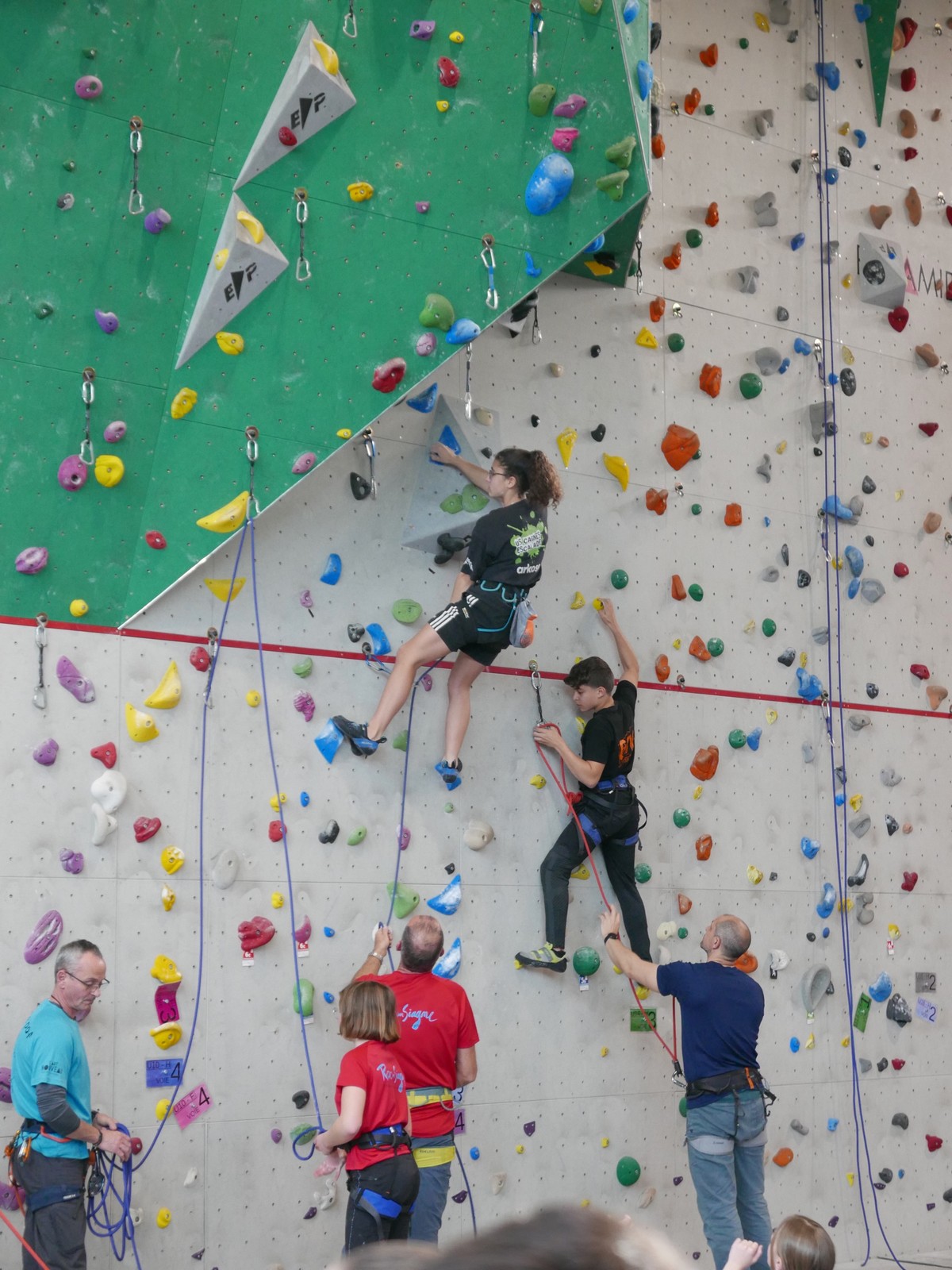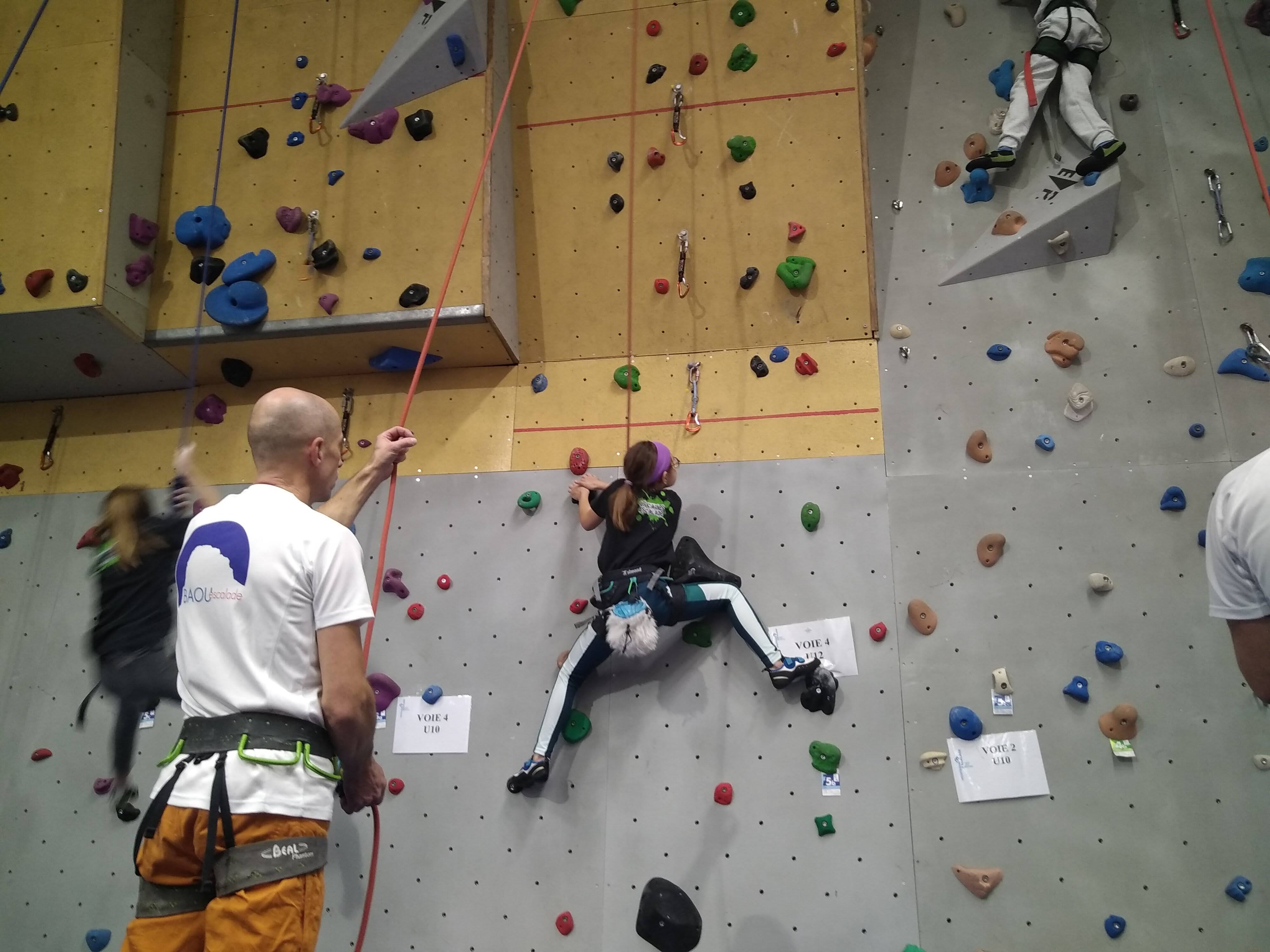 Avant de conclure ce résumé, je tiens à féliciter et remercier les bénévoles, les juges et les assureurs, mais aussi ceux qui tiennent la buvette. Ces journées sont longues et pas faciles et encore une fois, il convient de souligner que ces événements ne pourraient pas avoir lieu sans leur implication. Les quelques irrégularités de jugement, les assurages en cordes trop tendues entrainent probablement quelques erreurs dans le classement mais s’agissant d’une entrée à matière, personne ne doit s’en offenser et même si parfois les résultats sont durs pour les enfants, cela fait partie du sport, et plus généralement de l’apprentissage de la vie. Je tiens aussi à souligner l’implication des clubs car je me souviens d’une époque pas si lointaine où seule l’USC finançait un encadrant pour coacher les jeunes. Hier, presque tous les clubs étaient accompagnés et c’est une véritable plus-value pour les enfants et la qualité de l’événement.