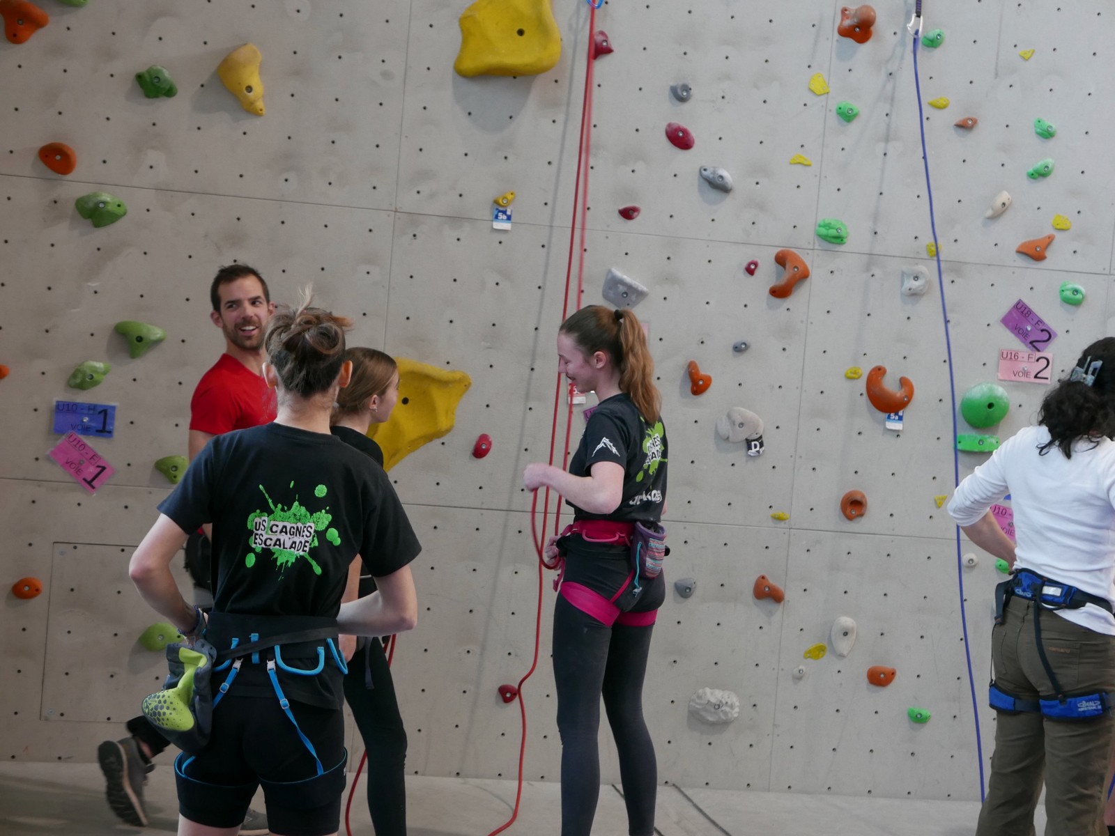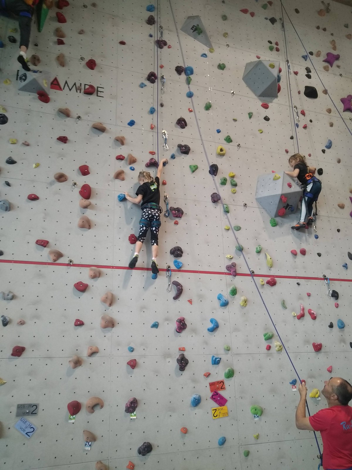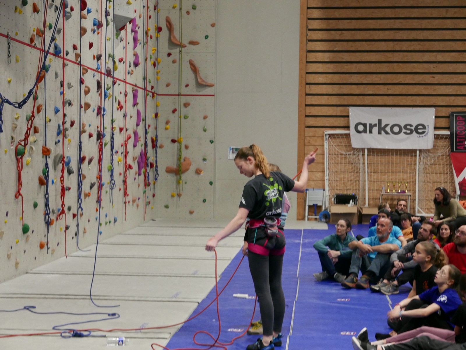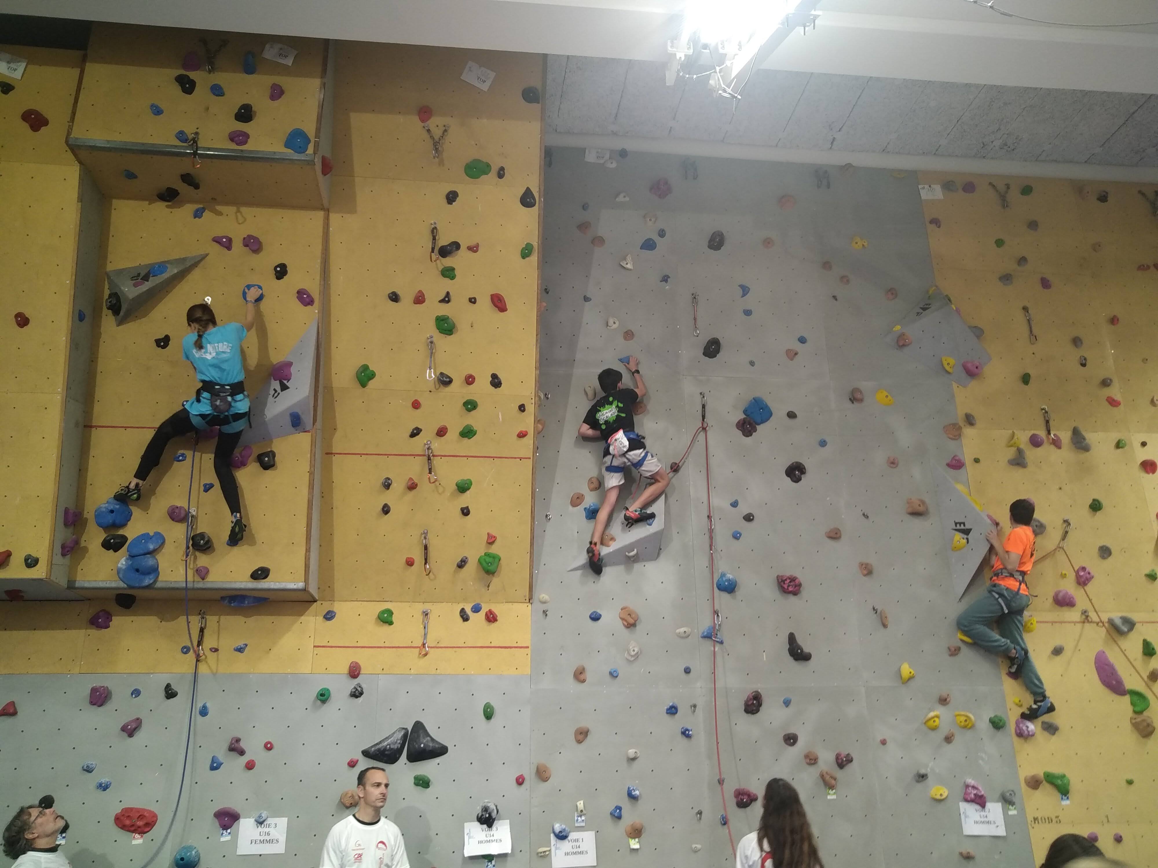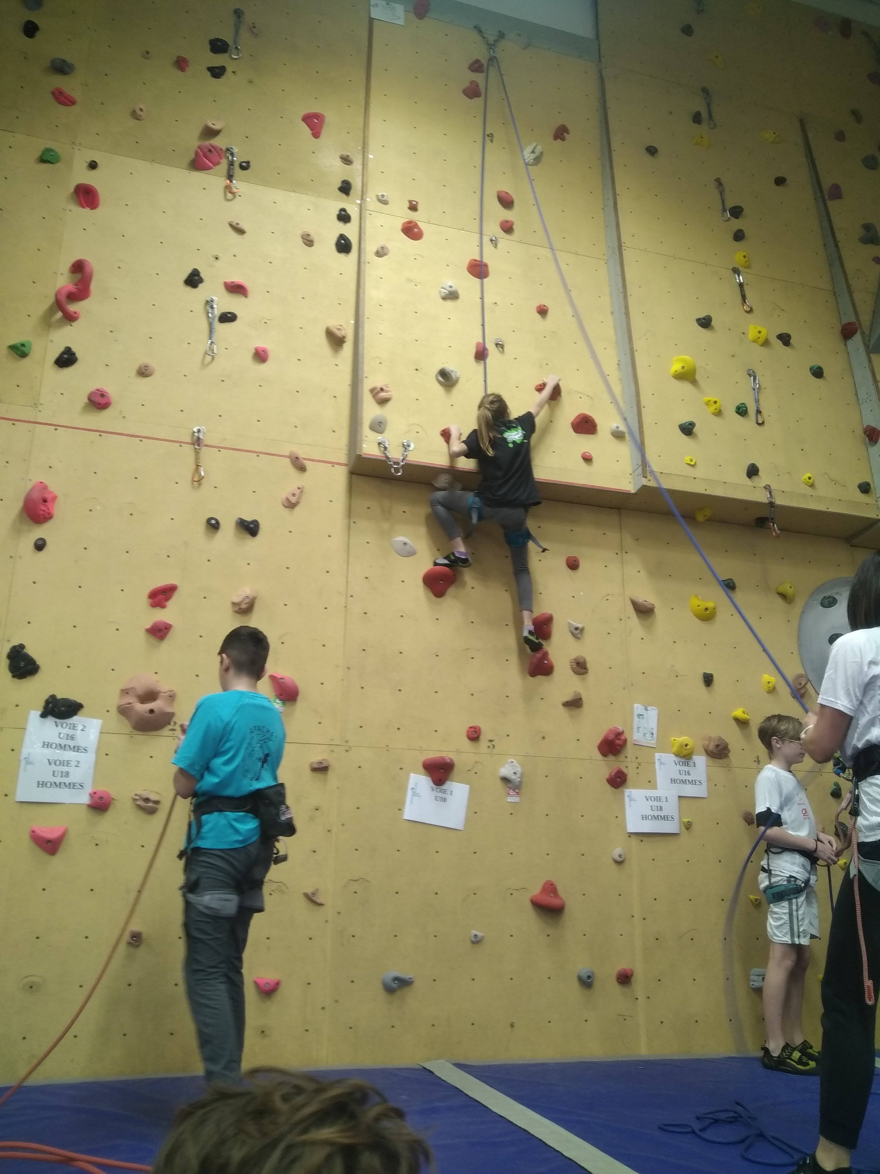 Avant de conclure ce résumé, je tiens à féliciter et remercier les bénévoles, les juges et les assureurs, mais aussi ceux qui tiennent la buvette. Ces journées sont longues et pas faciles et encore une fois, il convient de souligner que ces événements ne pourraient pas avoir lieu sans leur implication. Les quelques irrégularités de jugement, les assurages en cordes trop tendues entrainent probablement quelques erreurs dans le classement mais s’agissant d’une entrée à matière, personne ne doit s’en offenser et même si parfois les résultats sont durs pour les enfants, cela fait partie du sport, et plus généralement de l’apprentissage de la vie. Je tiens aussi à souligner l’implication des clubs car je me souviens d’une époque pas si lointaine où seule l’USC finançait un encadrant pour coacher les jeunes. Hier, presque tous les clubs étaient accompagnés et c’est une véritable plus-value pour les enfants et la qualité de l’événement.