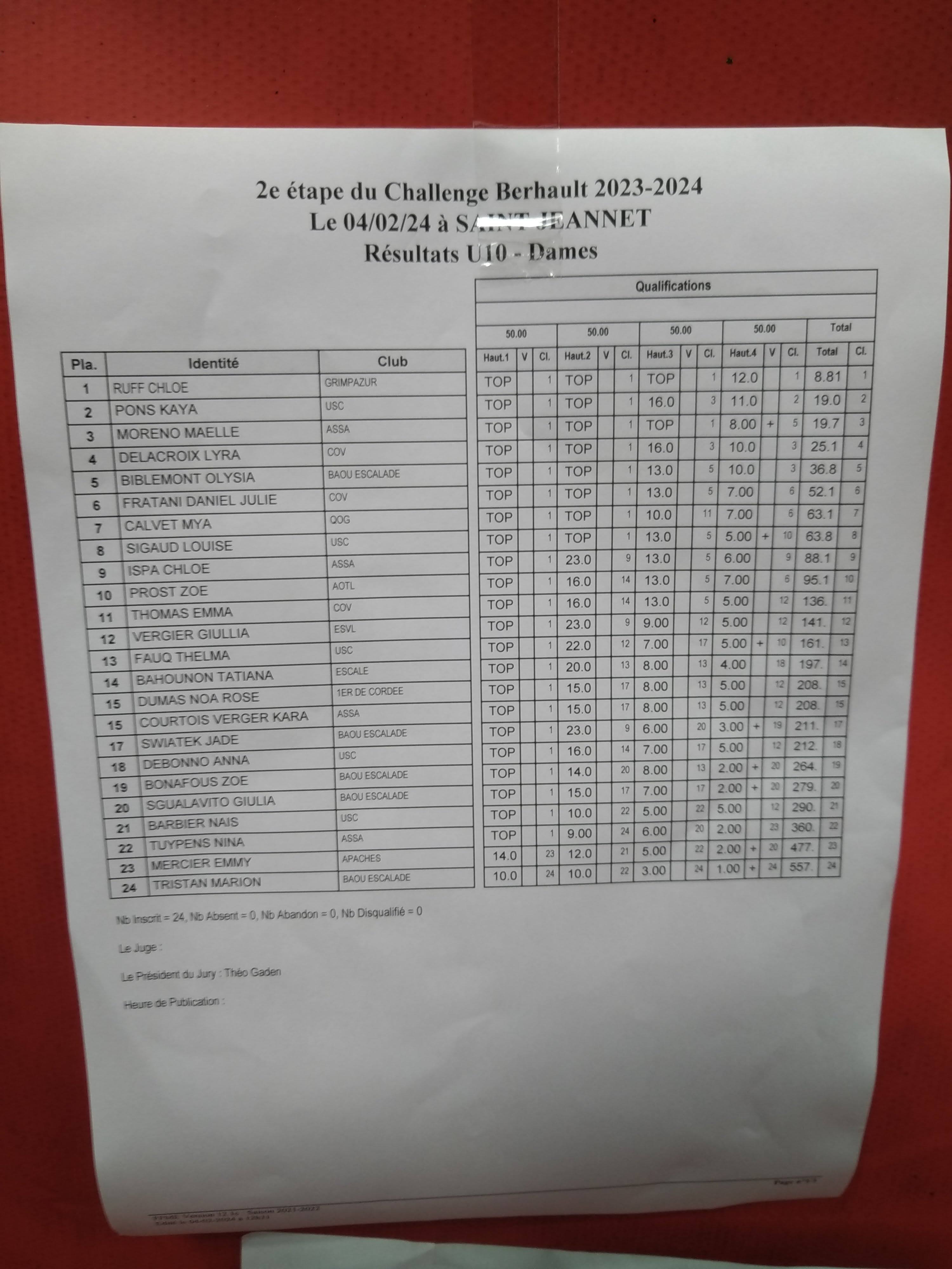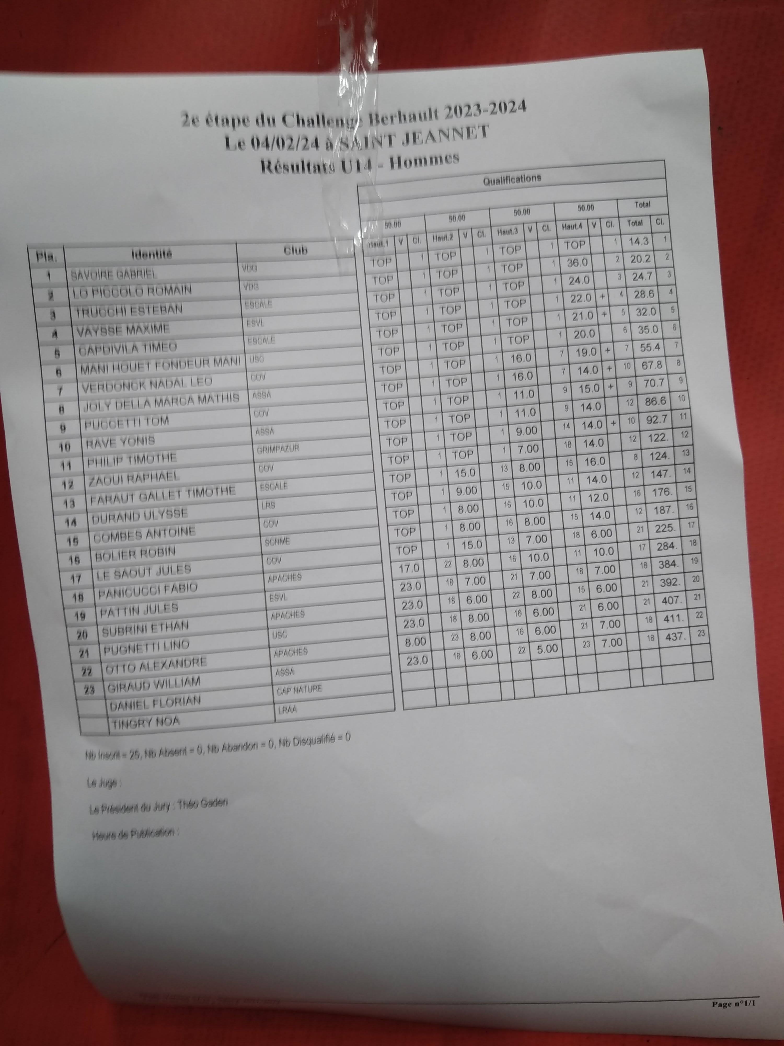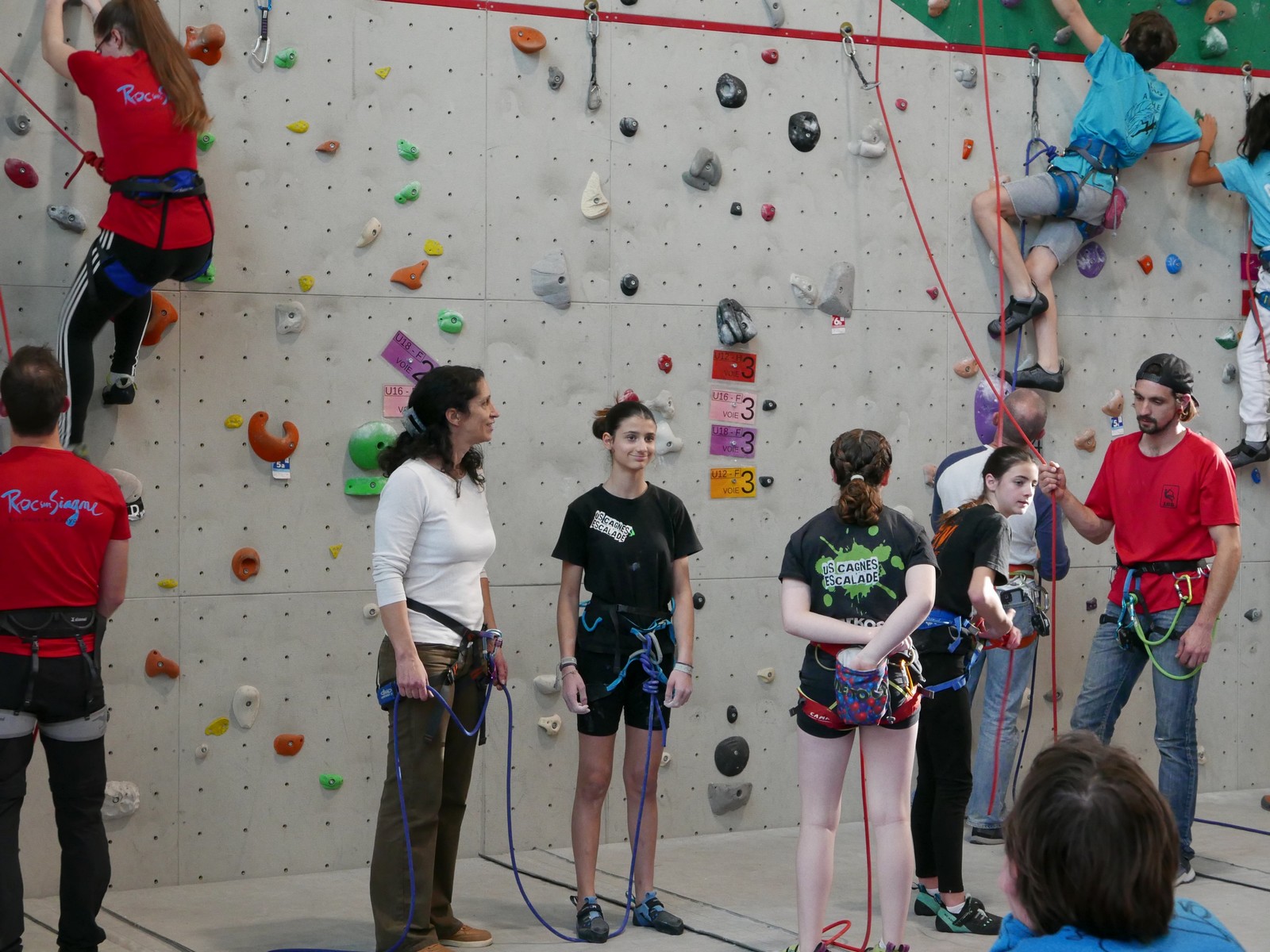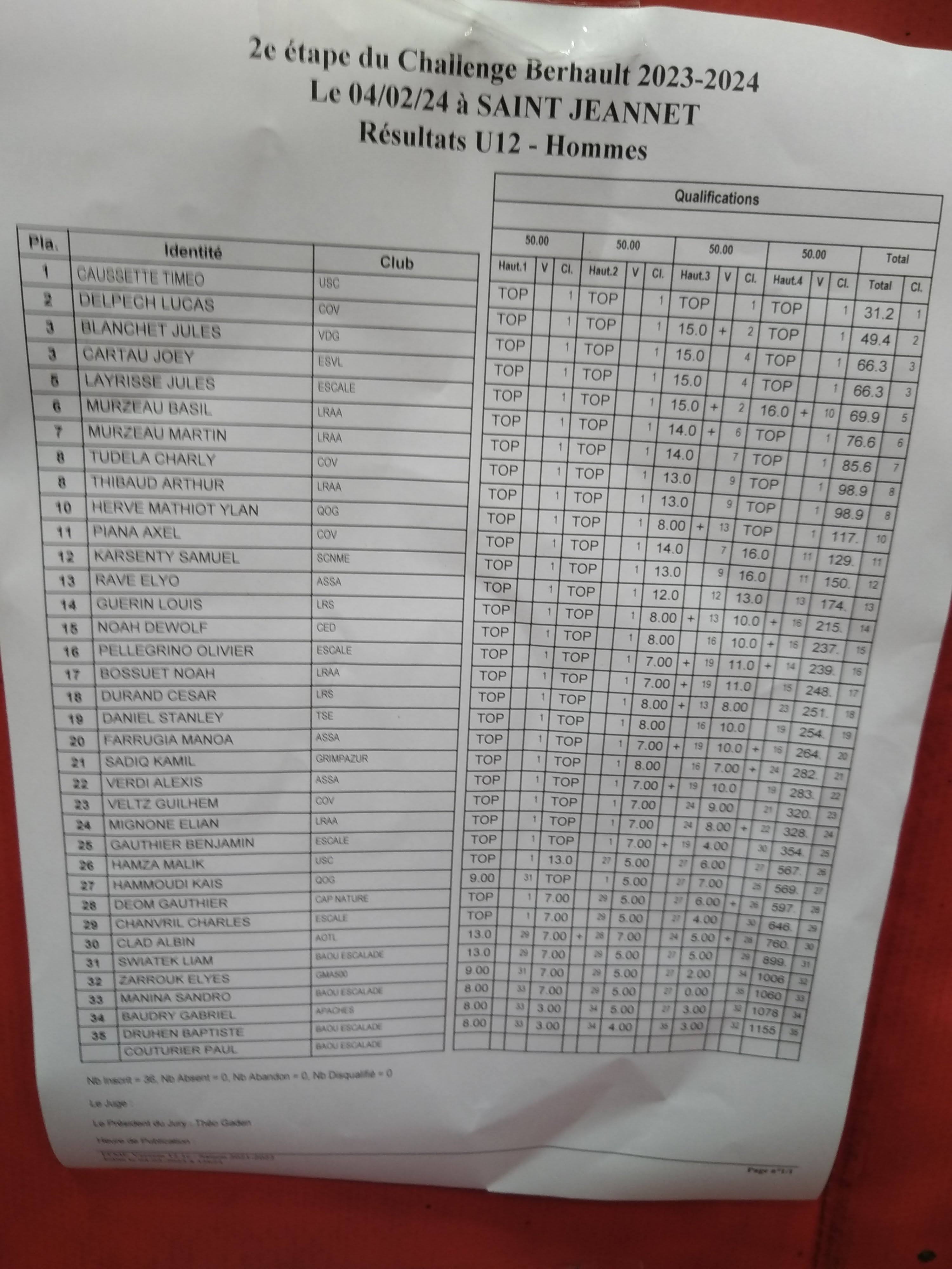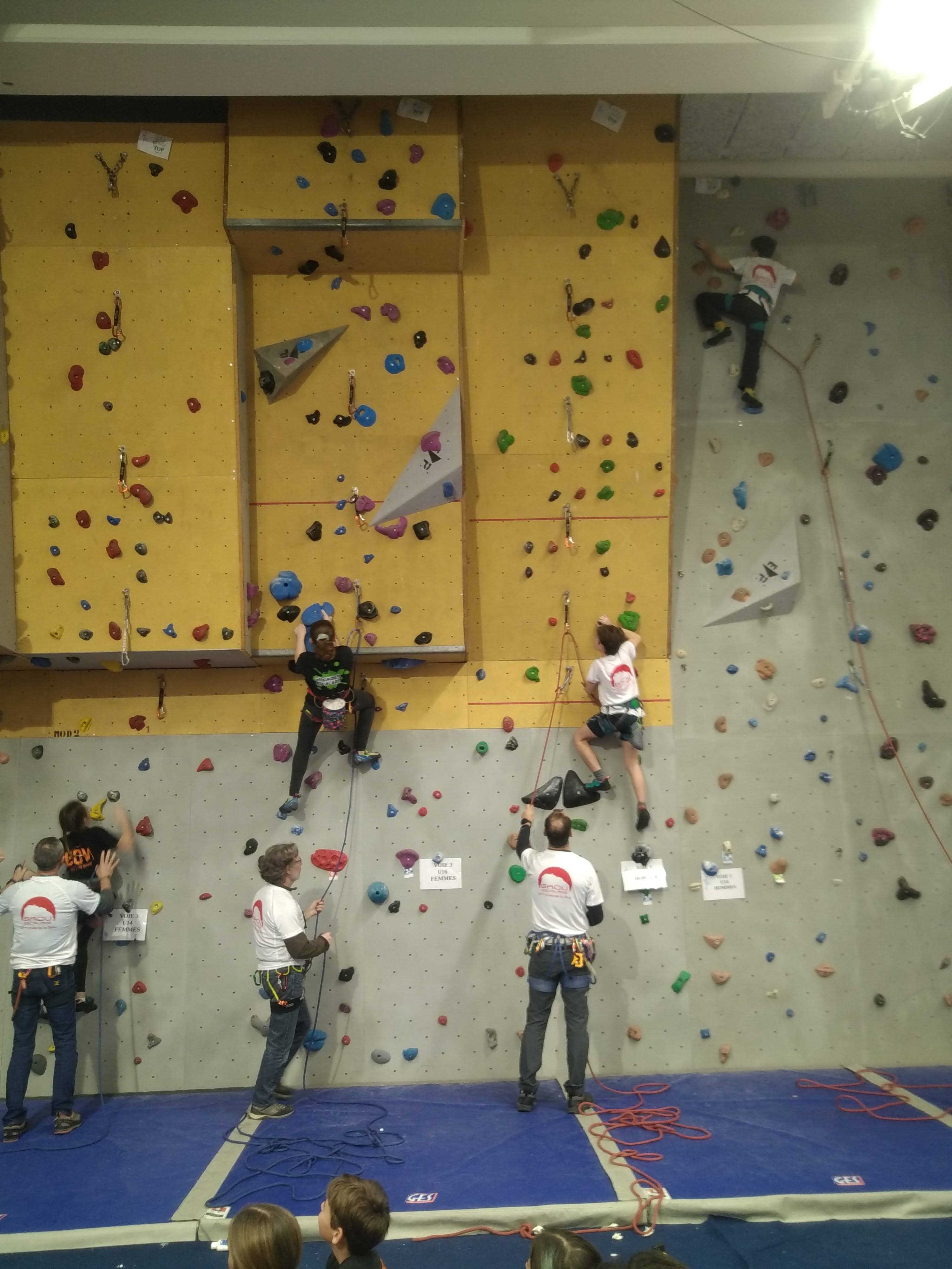 Avant de conclure ce résumé, je tiens à féliciter et remercier les bénévoles, les juges et les assureurs, mais aussi ceux qui tiennent la buvette. Ces journées sont longues et pas faciles et encore une fois, il convient de souligner que ces événements ne pourraient pas avoir lieu sans leur implication. Les quelques irrégularités de jugement, les assurages en cordes trop tendues entrainent probablement quelques erreurs dans le classement mais s’agissant d’une entrée à matière, personne ne doit s’en offenser et même si parfois les résultats sont durs pour les enfants, cela fait partie du sport, et plus généralement de l’apprentissage de la vie. Je tiens aussi à souligner l’implication des clubs car je me souviens d’une époque pas si lointaine où seule l’USC finançait un encadrant pour coacher les jeunes. Hier, presque tous les clubs étaient accompagnés et c’est une véritable plus-value pour les enfants et la qualité de l’événement.