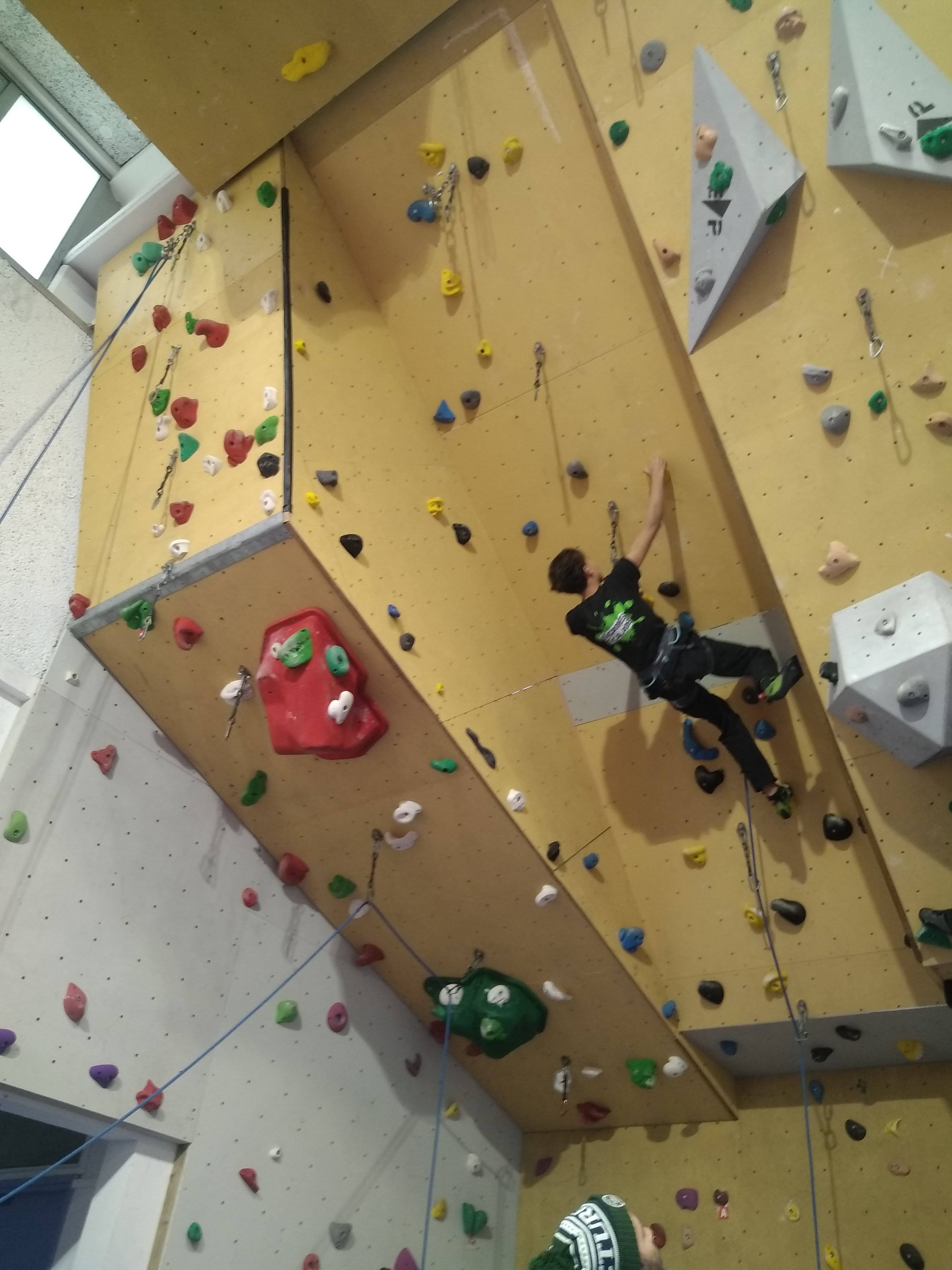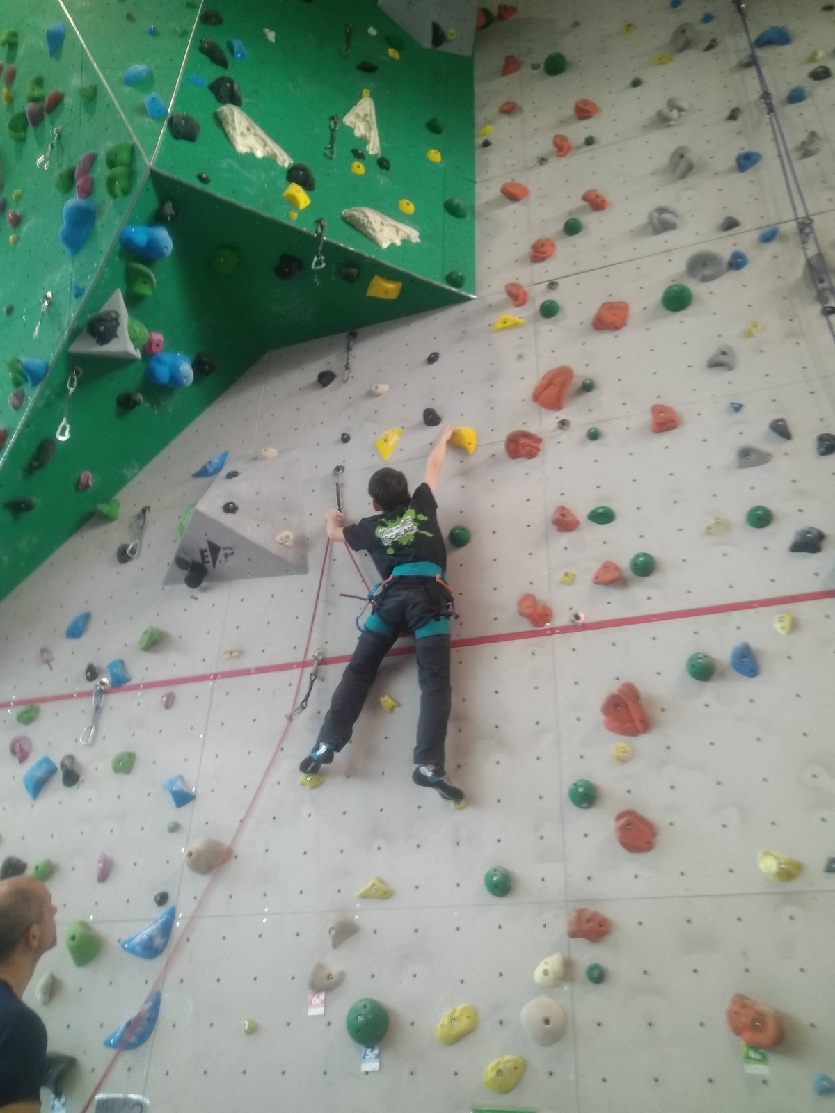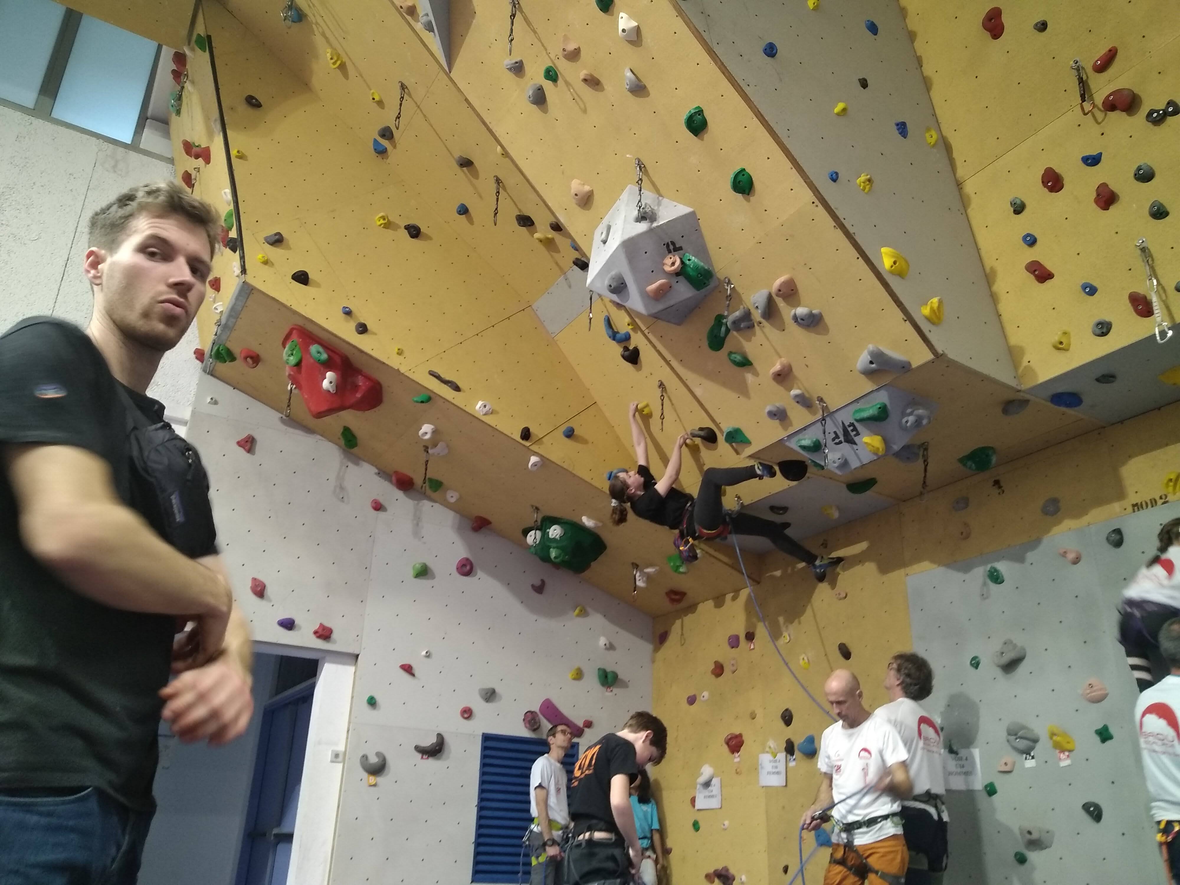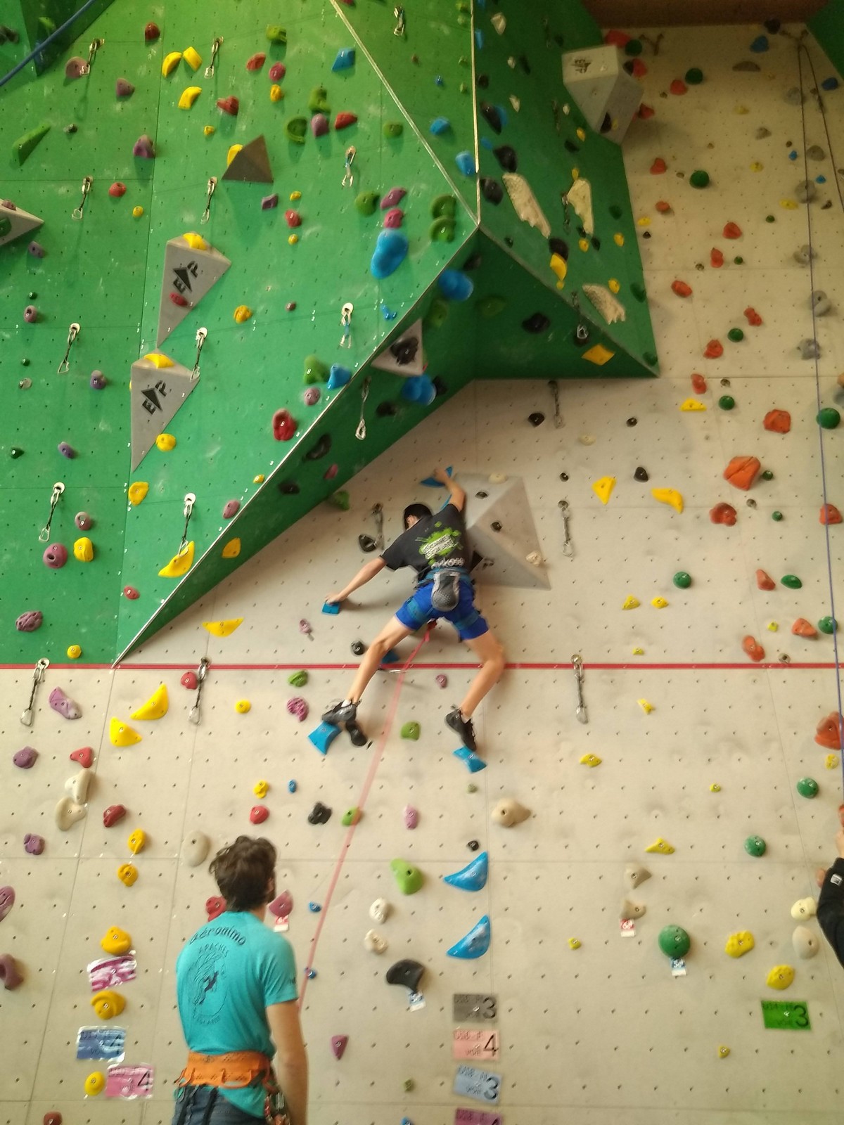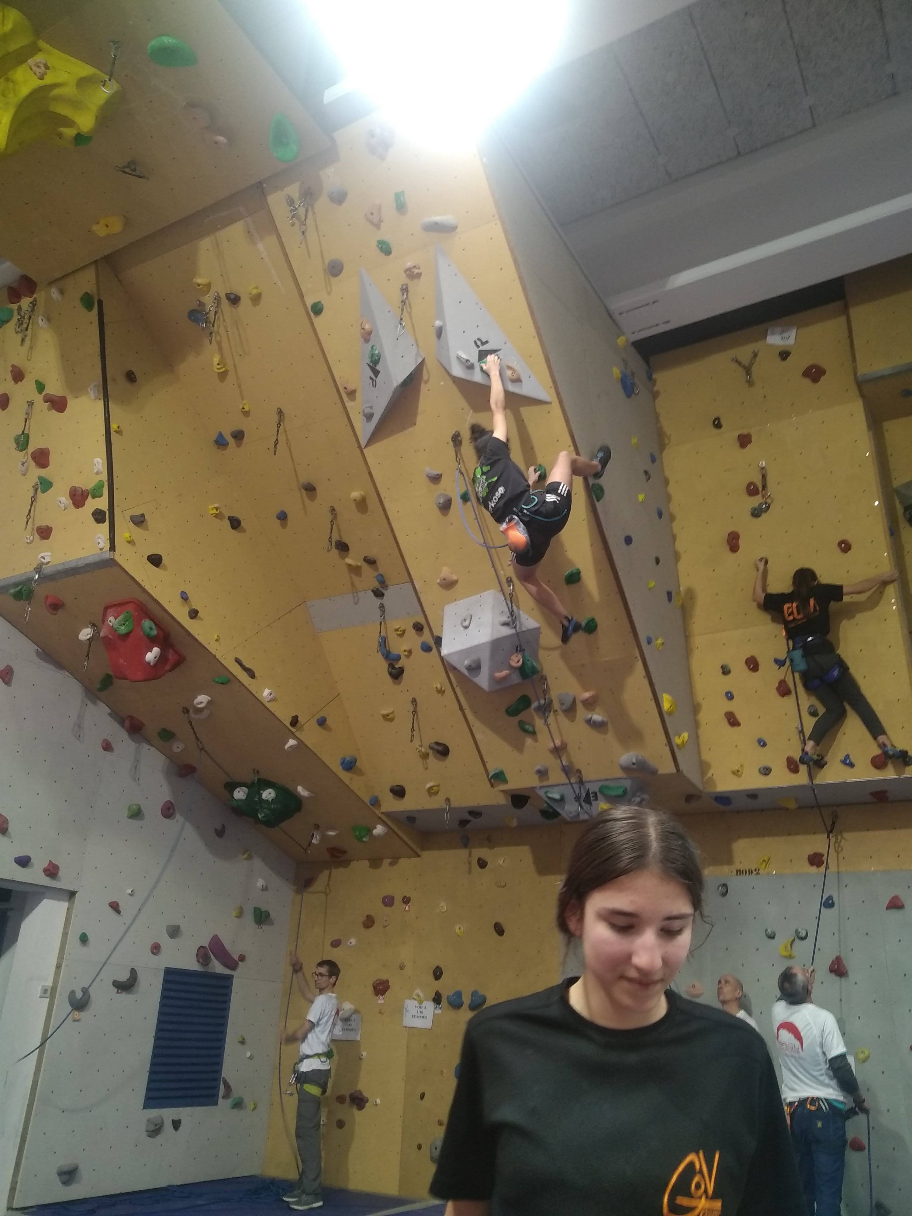 Chez l’USC, Lino grimpe bien sa voie 1 jusqu’au moment du sommet où il s’agit d’engager le dernier mouvement, ce qu’il ne parvient pas à faire. Dans toutes les autres voies, il chute dès le début des voies et termine à la 21ème place. Il faut que tu parviennes à libérer ta grimpe et à engager les mouvements, Lino.
