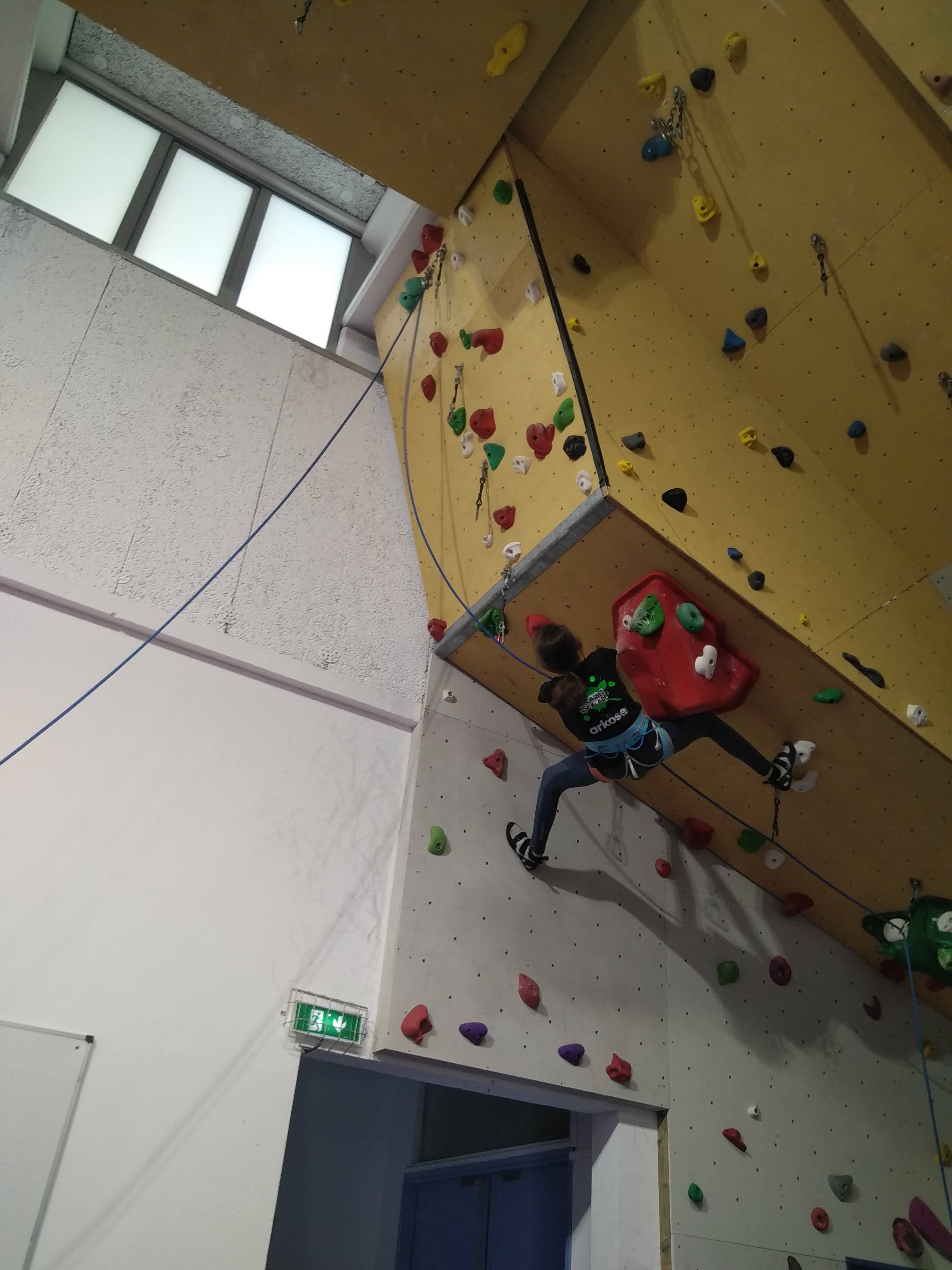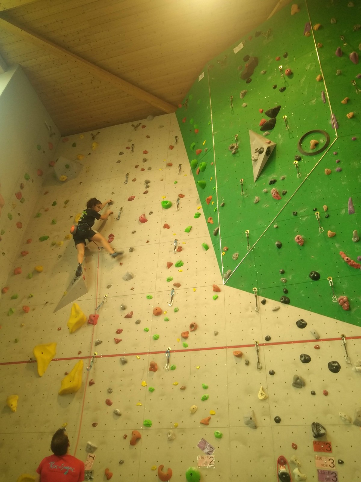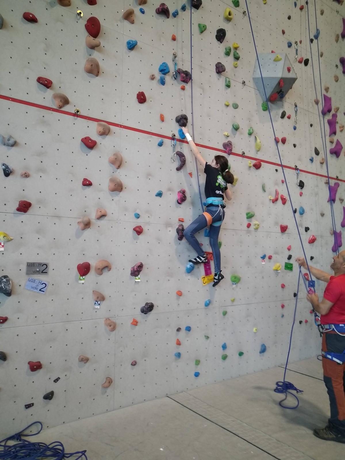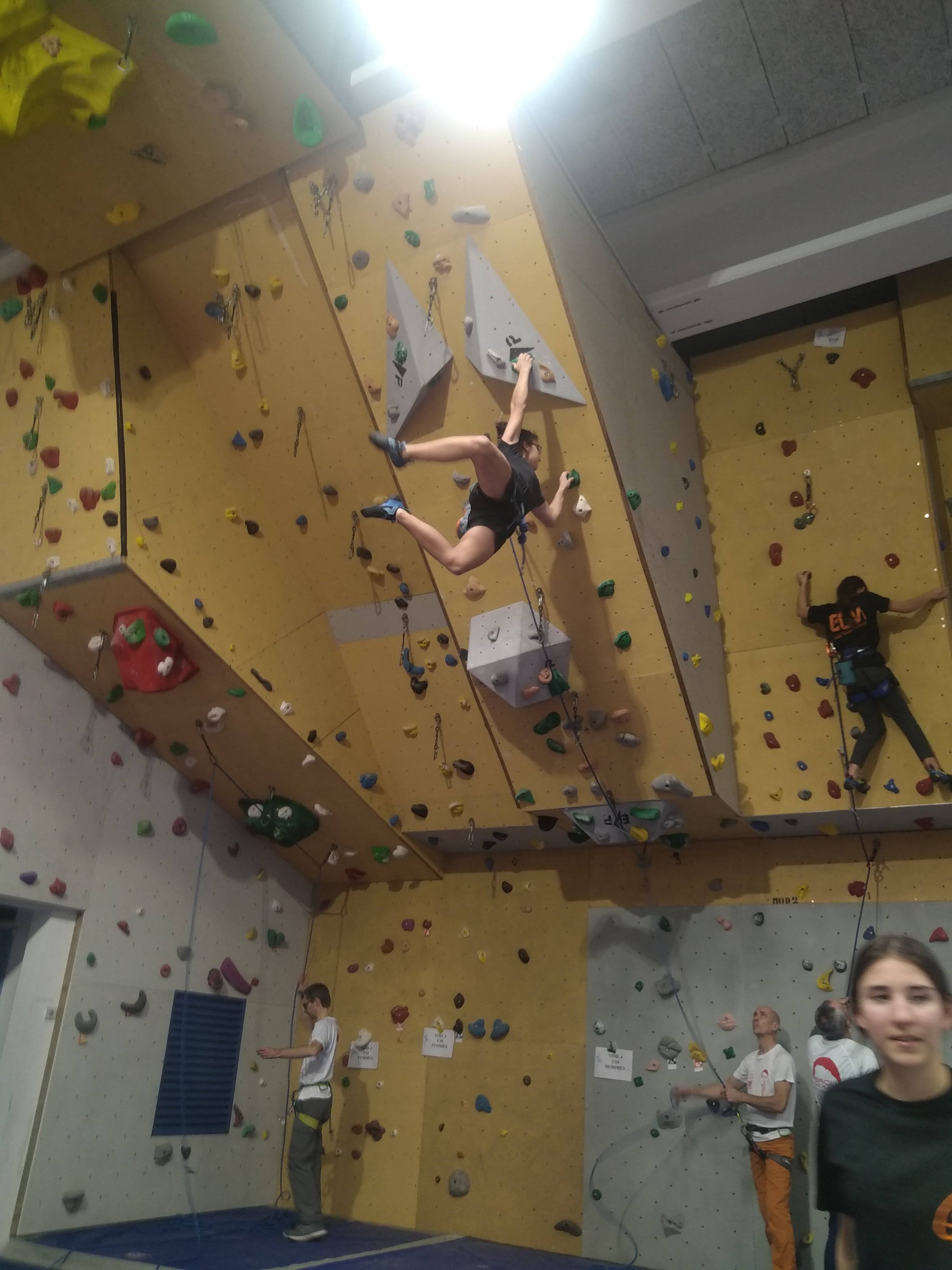 Chez l’USC, Lino grimpe bien sa voie 1 jusqu’au moment du sommet où il s’agit d’engager le dernier mouvement, ce qu’il ne parvient pas à faire. Dans toutes les autres voies, il chute dès le début des voies et termine à la 21ème place. Il faut que tu parviennes à libérer ta grimpe et à engager les mouvements, Lino.