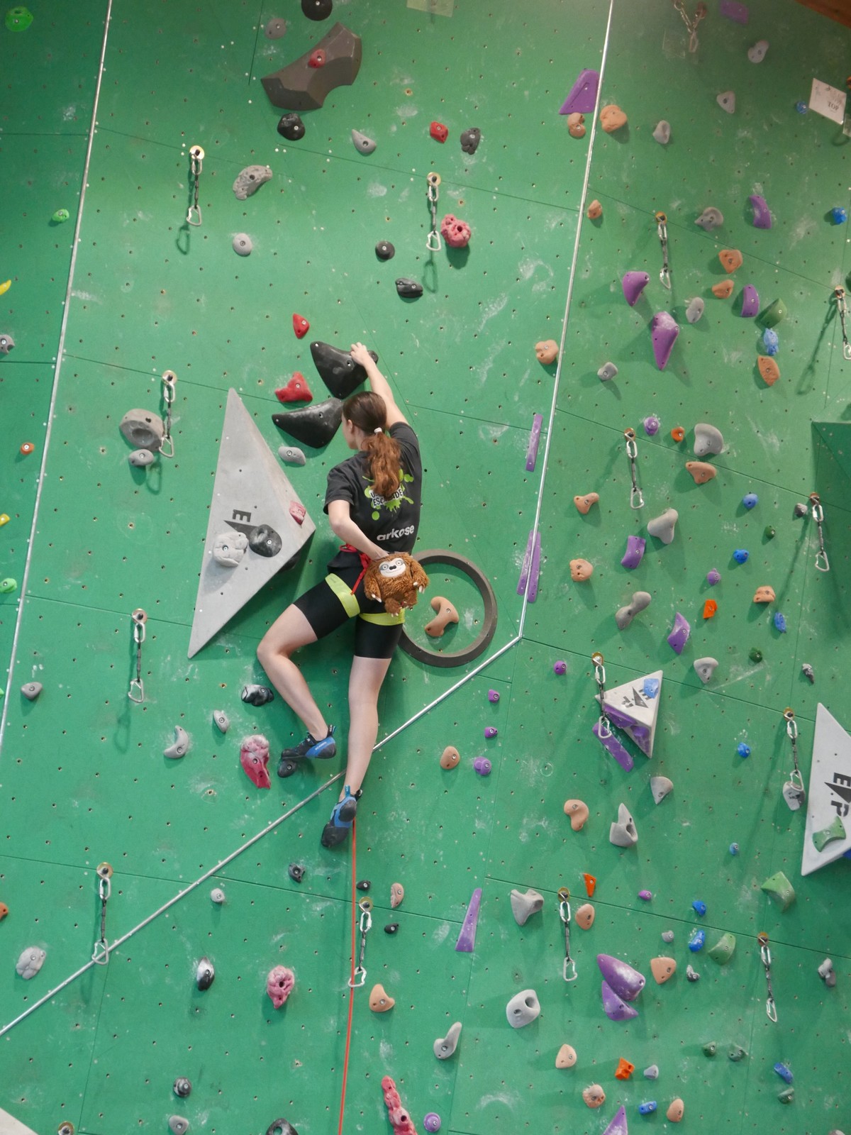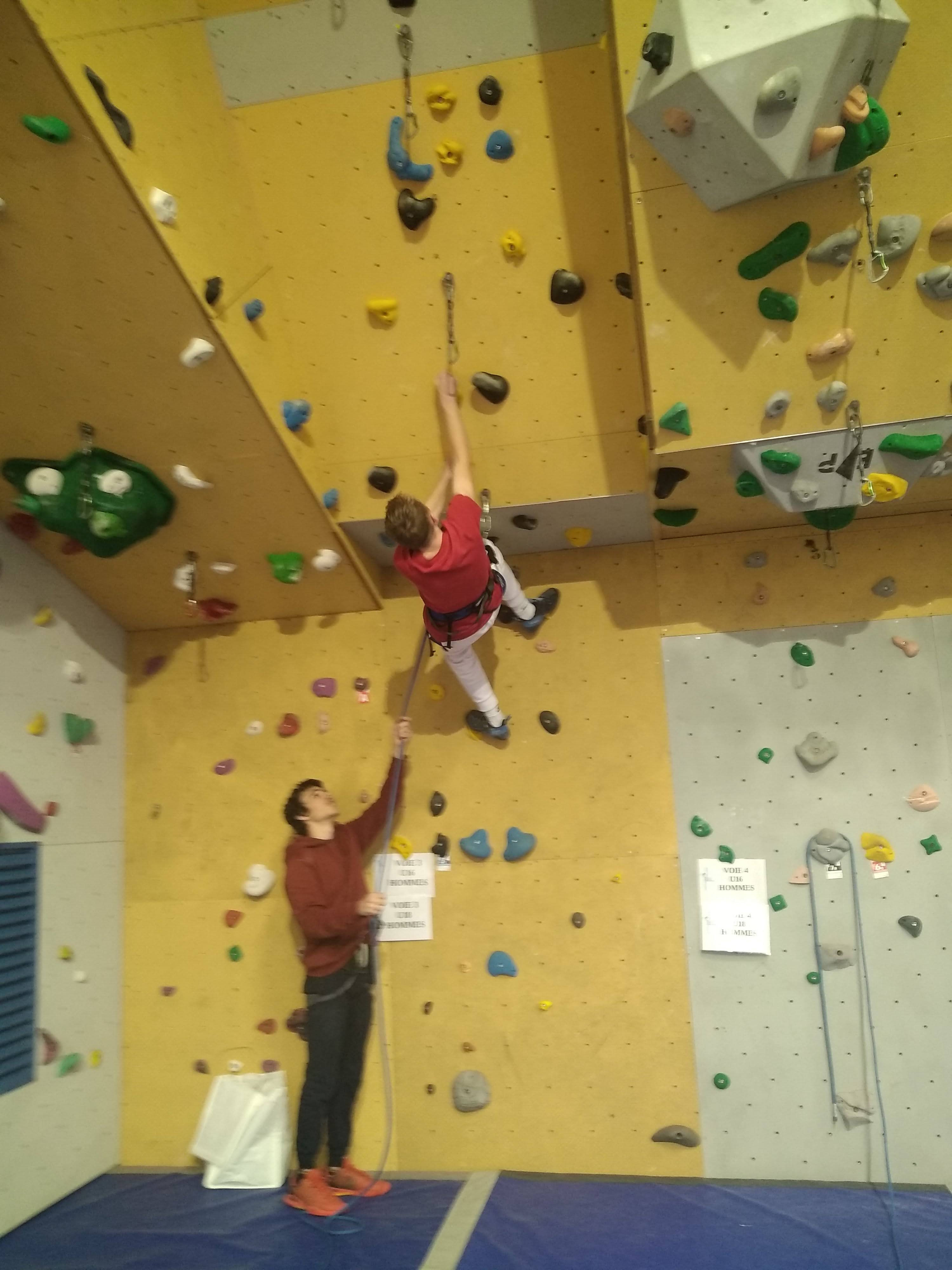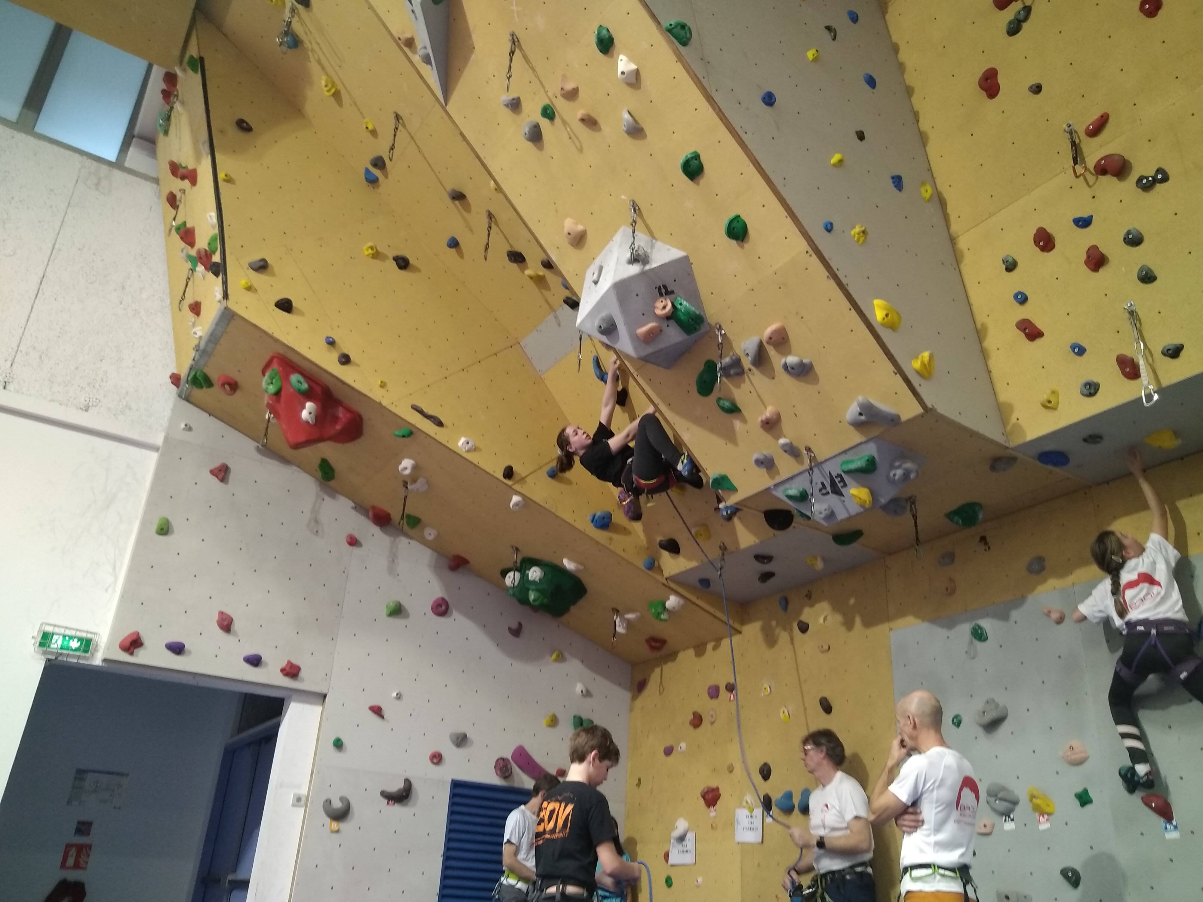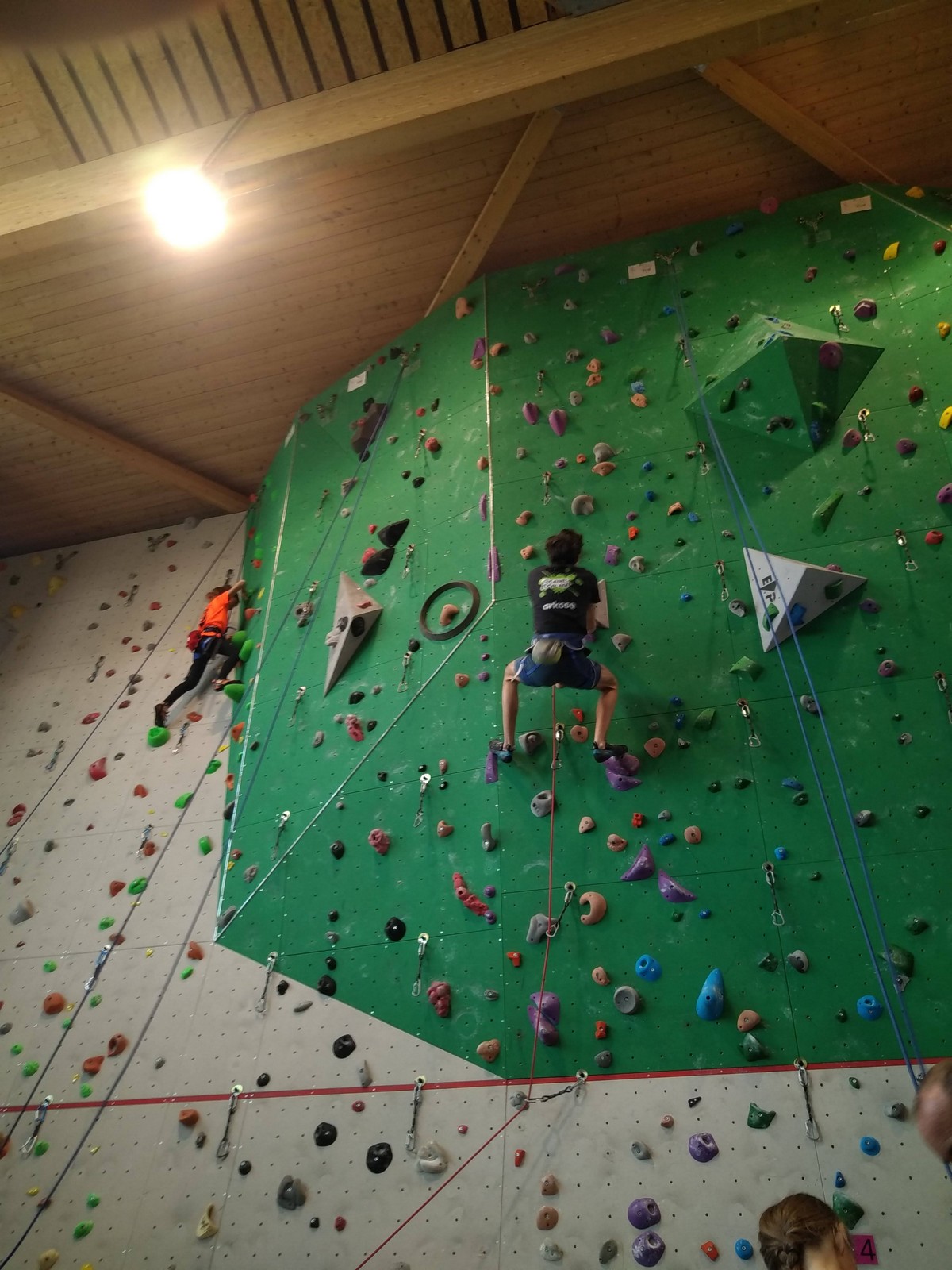 Chez l’USC, Lino grimpe bien sa voie 1 jusqu’au moment du sommet où il s’agit d’engager le dernier mouvement, ce qu’il ne parvient pas à faire. Dans toutes les autres voies, il chute dès le début des voies et termine à la 21ème place. Il faut que tu parviennes à libérer ta grimpe et à engager les mouvements, Lino.
