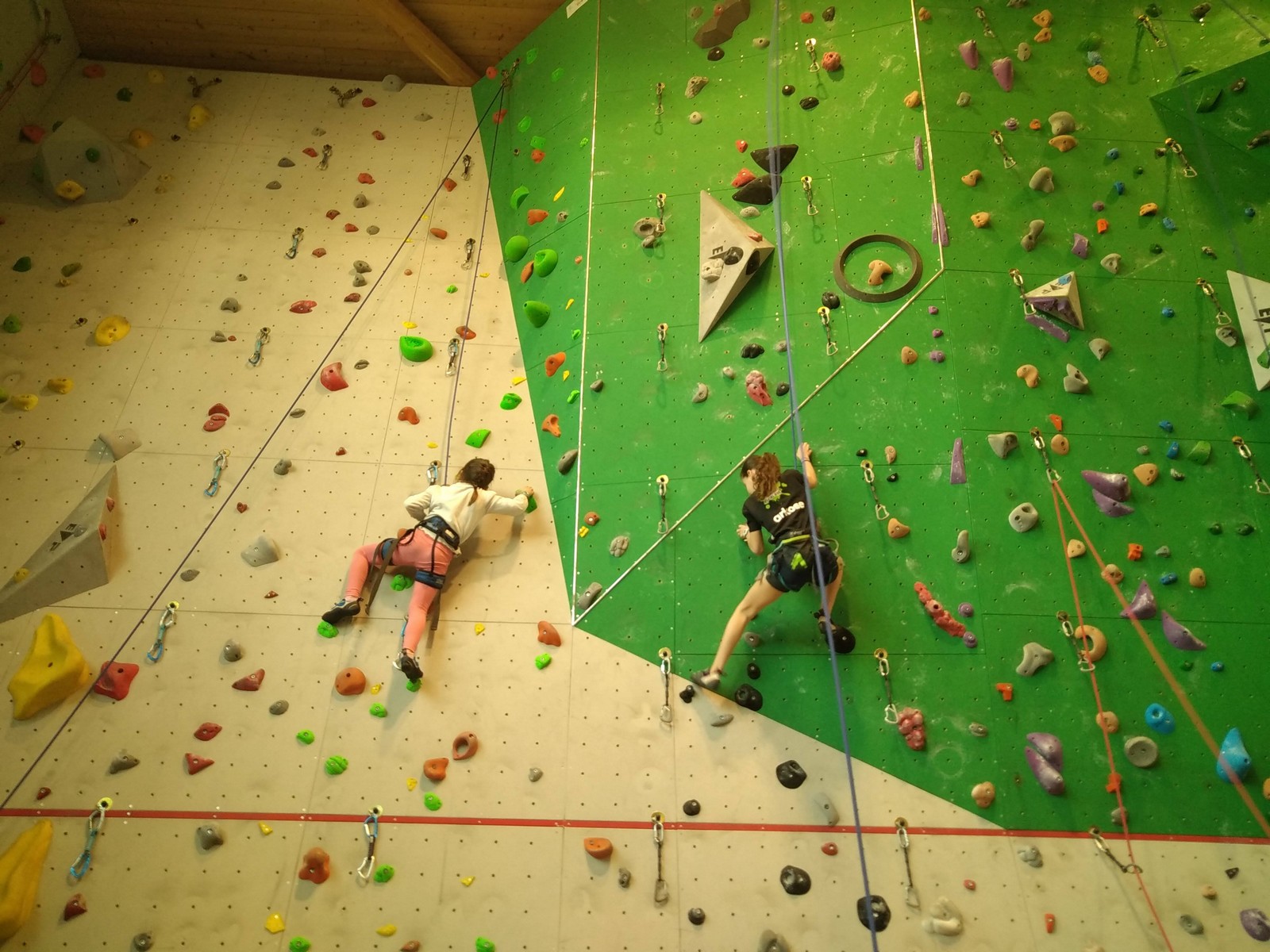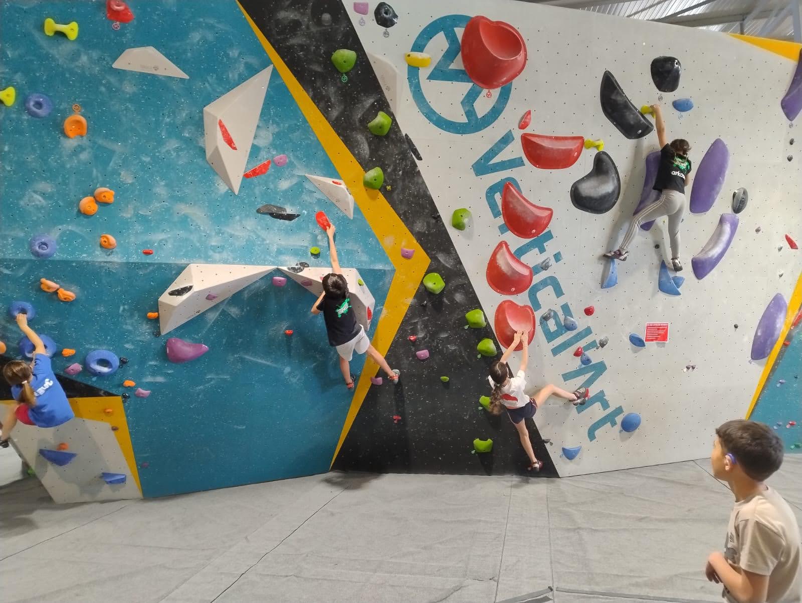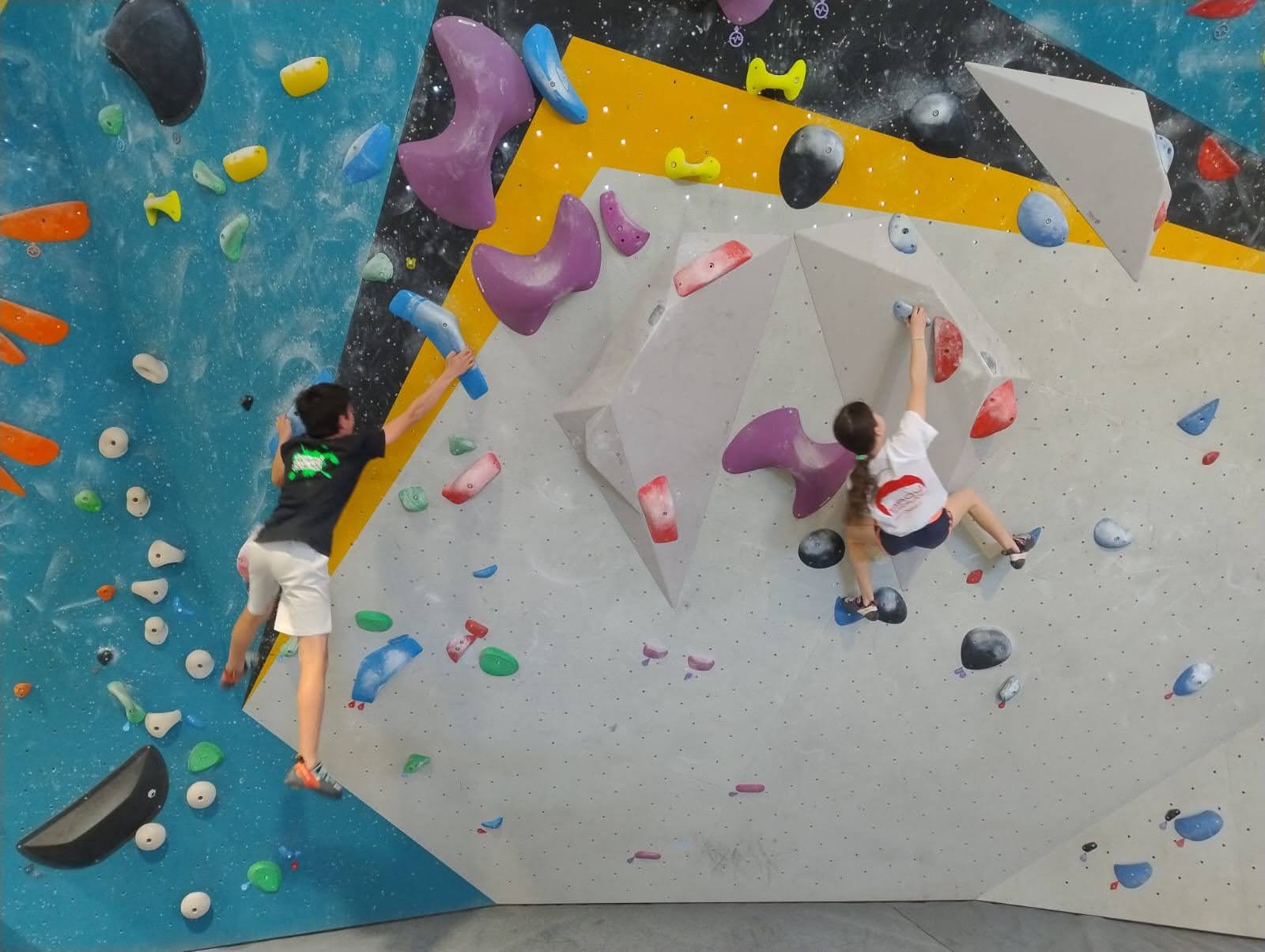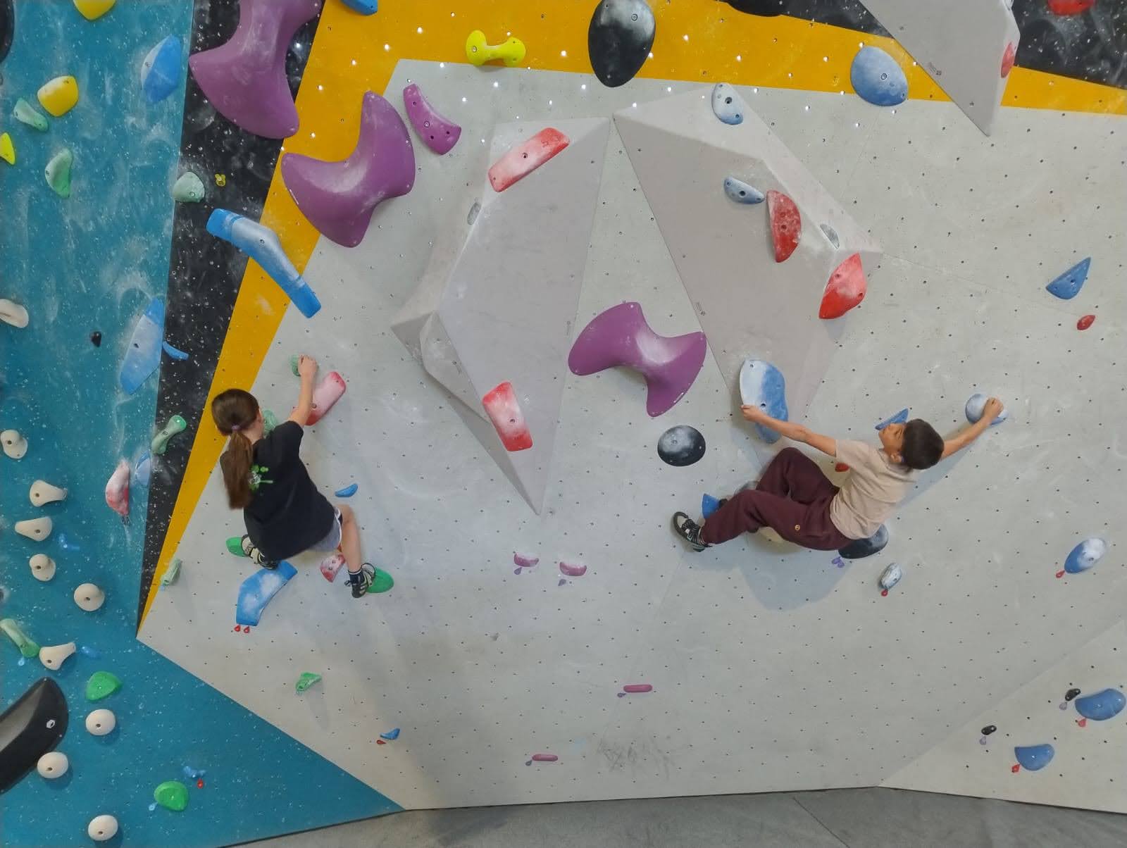 Côté performance donc, Rose et Maya ne parviennent pas à sortir le crux compliqué de la voie 3 et tombent au sommet de la voie 4. Elles terminent 6ème pour Maya, 5ème pour Rose. Comme dit plus tôt, Mélia prend la médaille de bronze pour un essai de trop dans la voie 3 (elle était la première à défricher les méthodes, petit désavantage qu’elle n’a pas réussi à compenser malgré le téléguidage de Mathis en bas). Romane nous offre une performance incroyable tout en force et volonté tandis que Lya profite une fois de plus de sa taille et improvise ses propres méthodes en prenant de gros risques qui paient bien. Elles auront droit à une voie de finale et c’est Lya qui passe devant avec un avantage assez net. Bravo Lya. Mention spéciale à Romane et une combativité impressionnante !