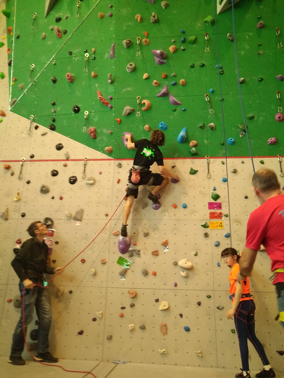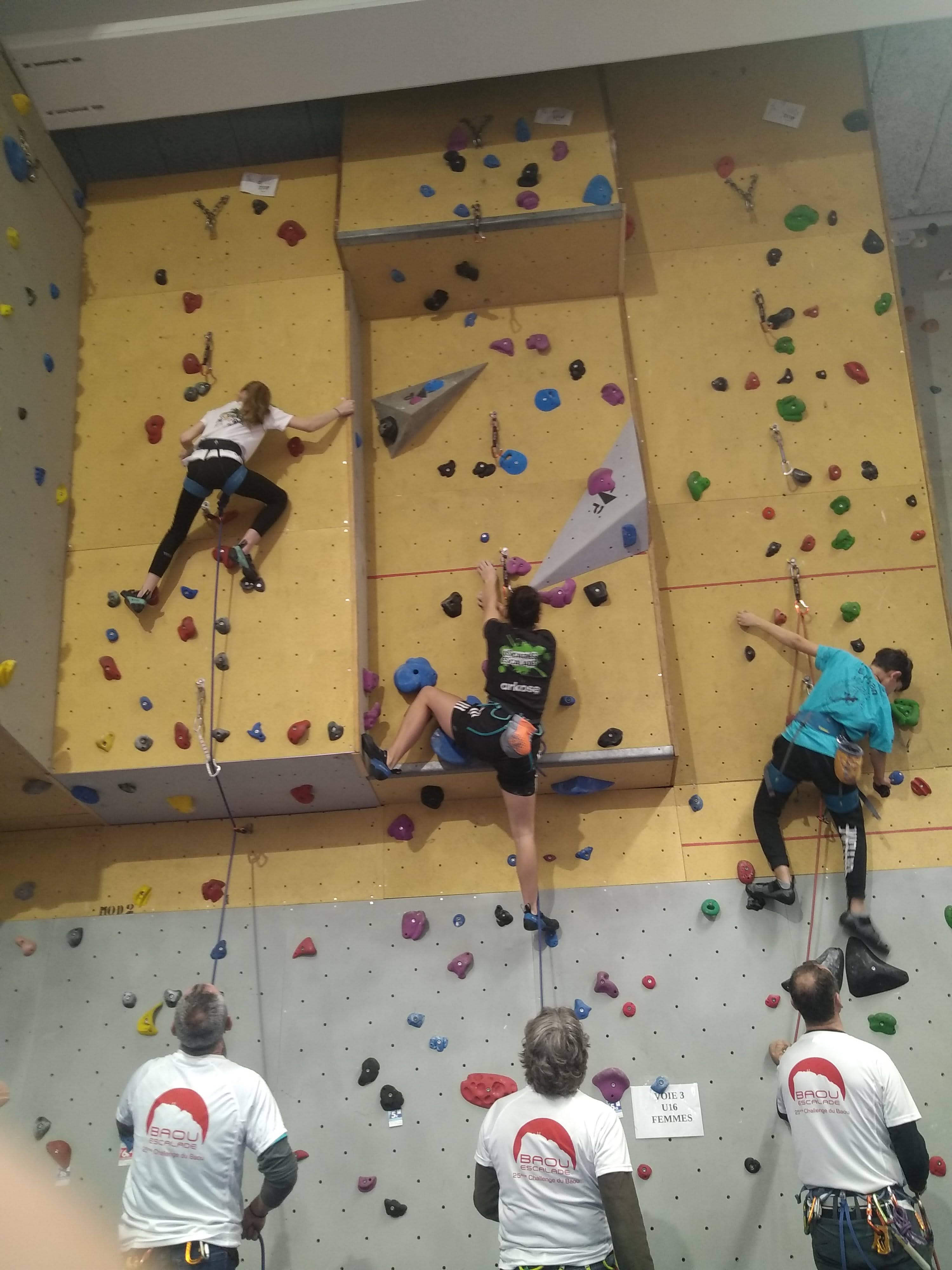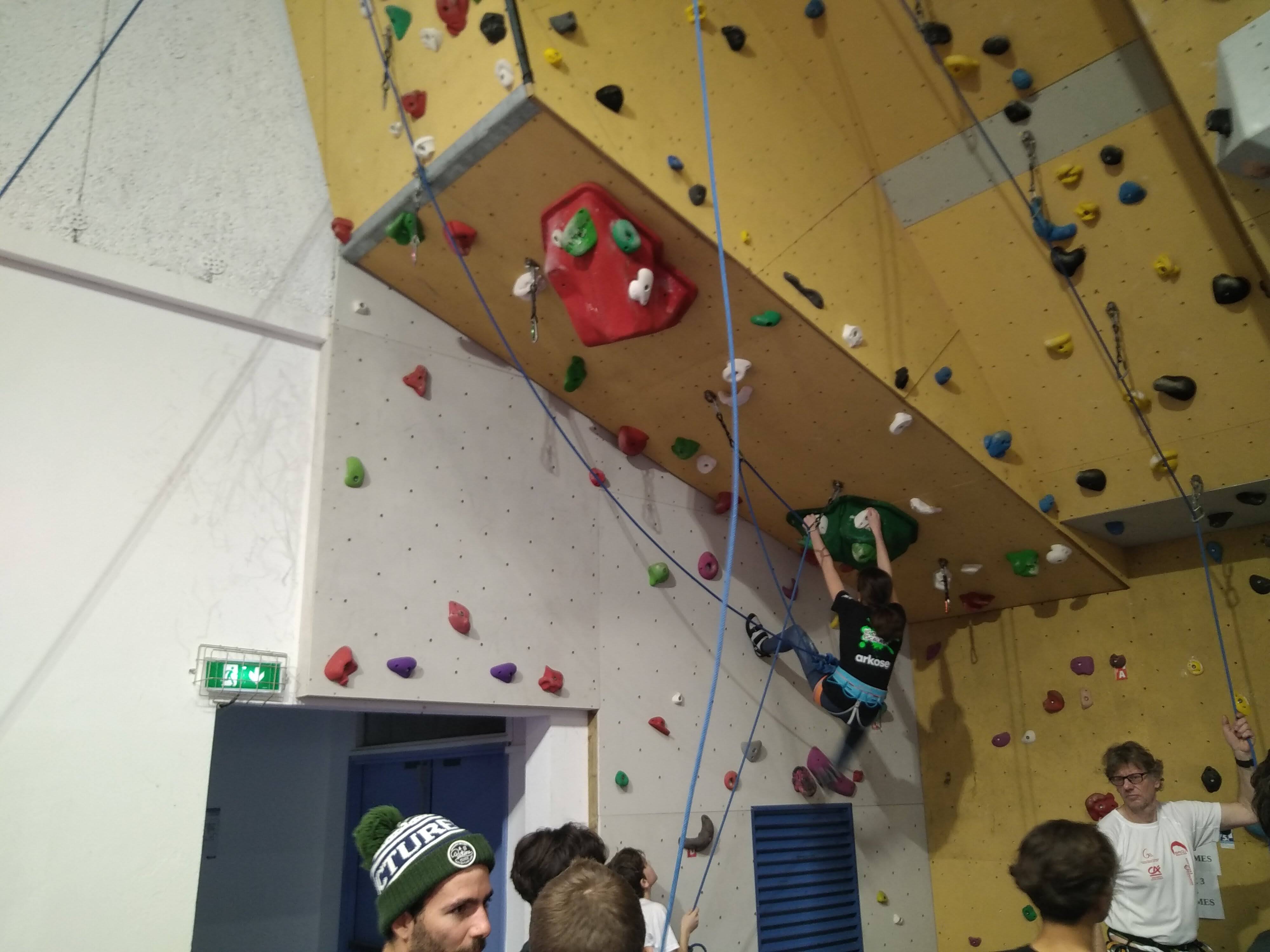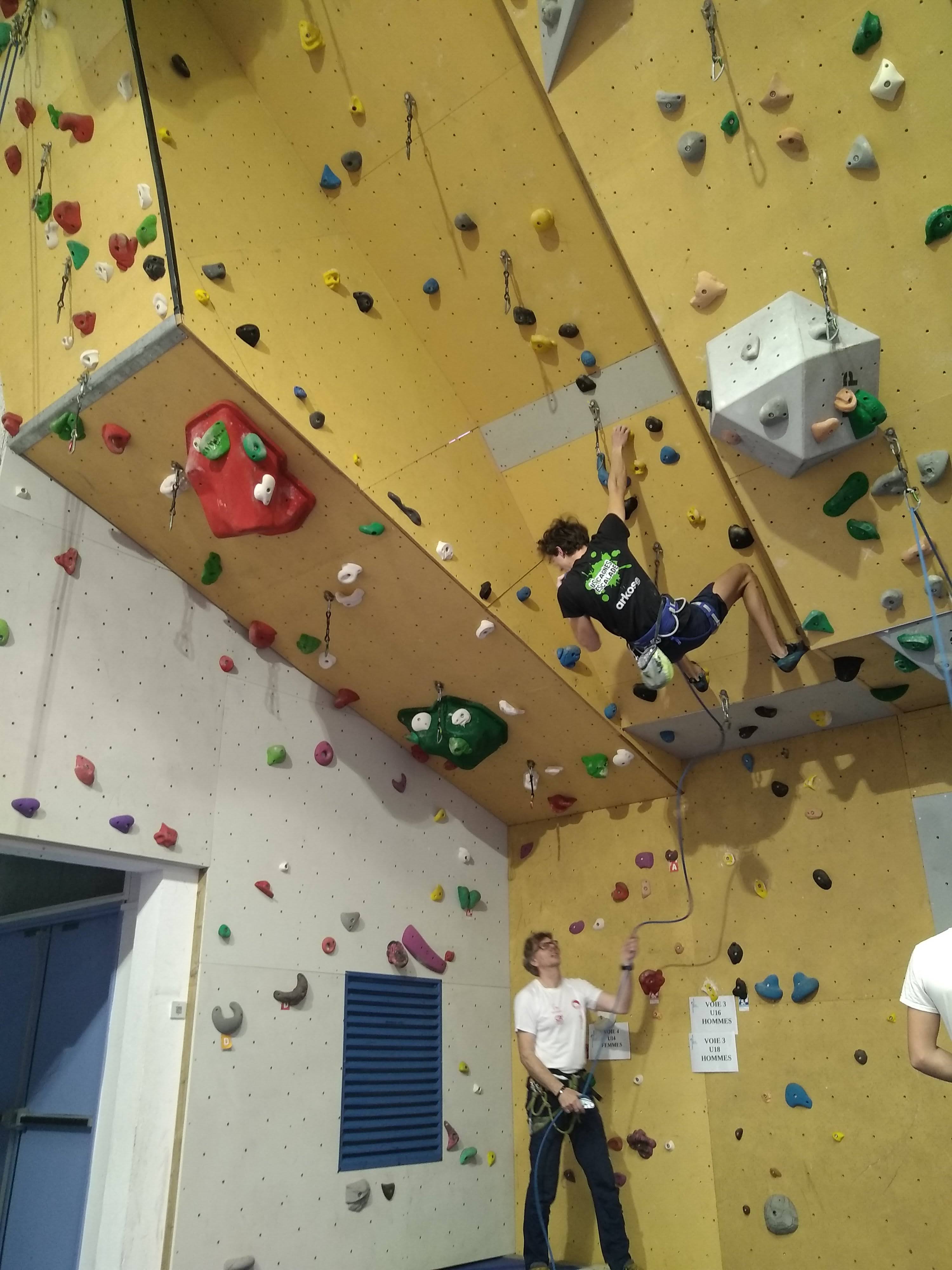 Mani, quant à lui, fait une belle compétition et fait partie des rares à sortir les 3 premières voies et tombe après un beau run dans la voie 4 en terminant à la 6ème place, au coude à coude avec les 5ème et 4ème. Devant, avec la participation de Gabriel et Romain de VdG, deux jeunes performant sur le circuit national, le podium était difficilement accessible. On est ici en droit de se demander si la participation de jeunes aussi forts est pertinente et n’a pas influencé les ouvreurs au point de durcir le niveau global d’un circuit étant à la base destiné à un public local peu expérimenté mettant un premier pied dans la compétition. Attention à la dérive élitiste !