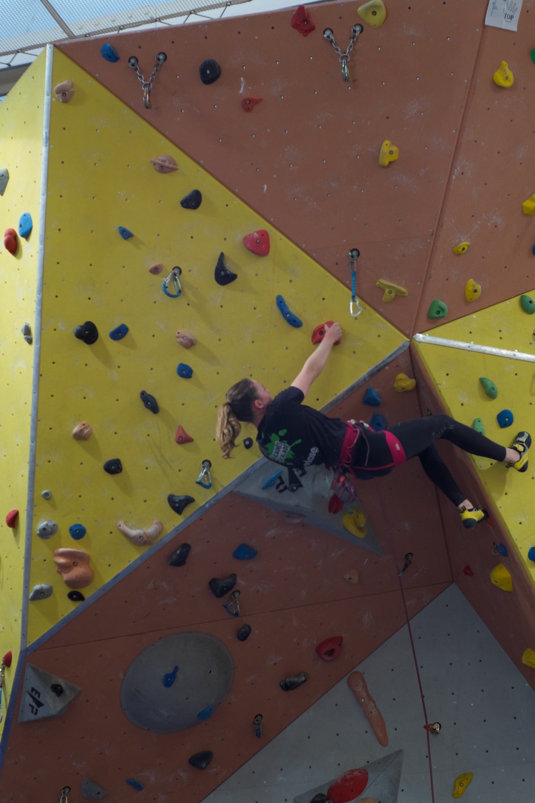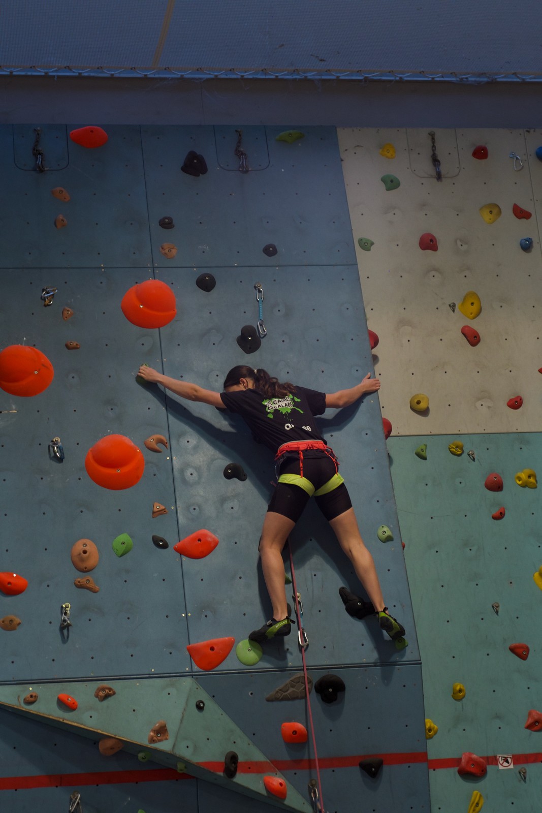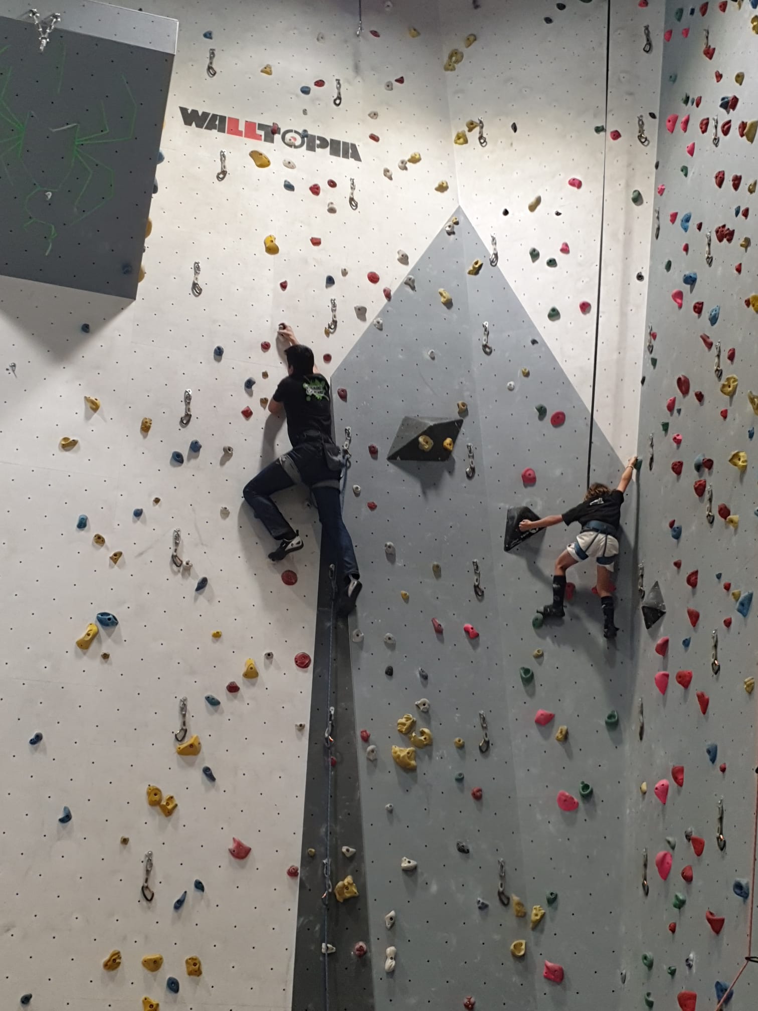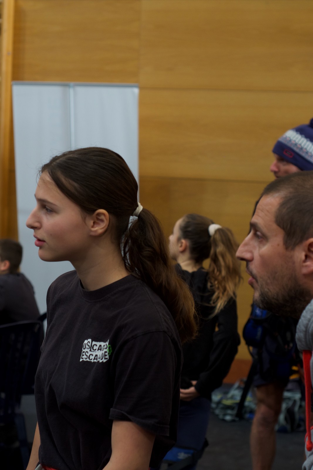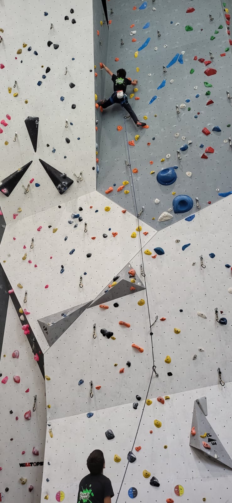 Déjà l’heure de la pause où se partagent les cakes et autres gâteaux, un peu de café et les jeunes sont déjà repartis. J’envoie Romane dans le long 5+ « symphonie de destruction » pour une belle ascension soldée malheureusement par un échec à quelques mètres de la fin. 30m de concentration et à gérer l’engagement, c’est déjà une belle performance ! Adèle la suivra en moulinette tandis que Boris s’essaie dans un 6c encore un peu trop dur pour lui avant de finir en tête dans une voie plus facile pour travailler la manip. Les autres ne sont pas en reste et « Zed et Gnougnou » a beaucoup de succès également, avec son pas d’allonge et son réta pas évident à négocier que Louise essaiera plusieurs fois. Jeanne et Paul se la jouent « tranquille » en moulinette dans toutes les voies installées tandis que Milo s’essaie aux voies un peu dures.