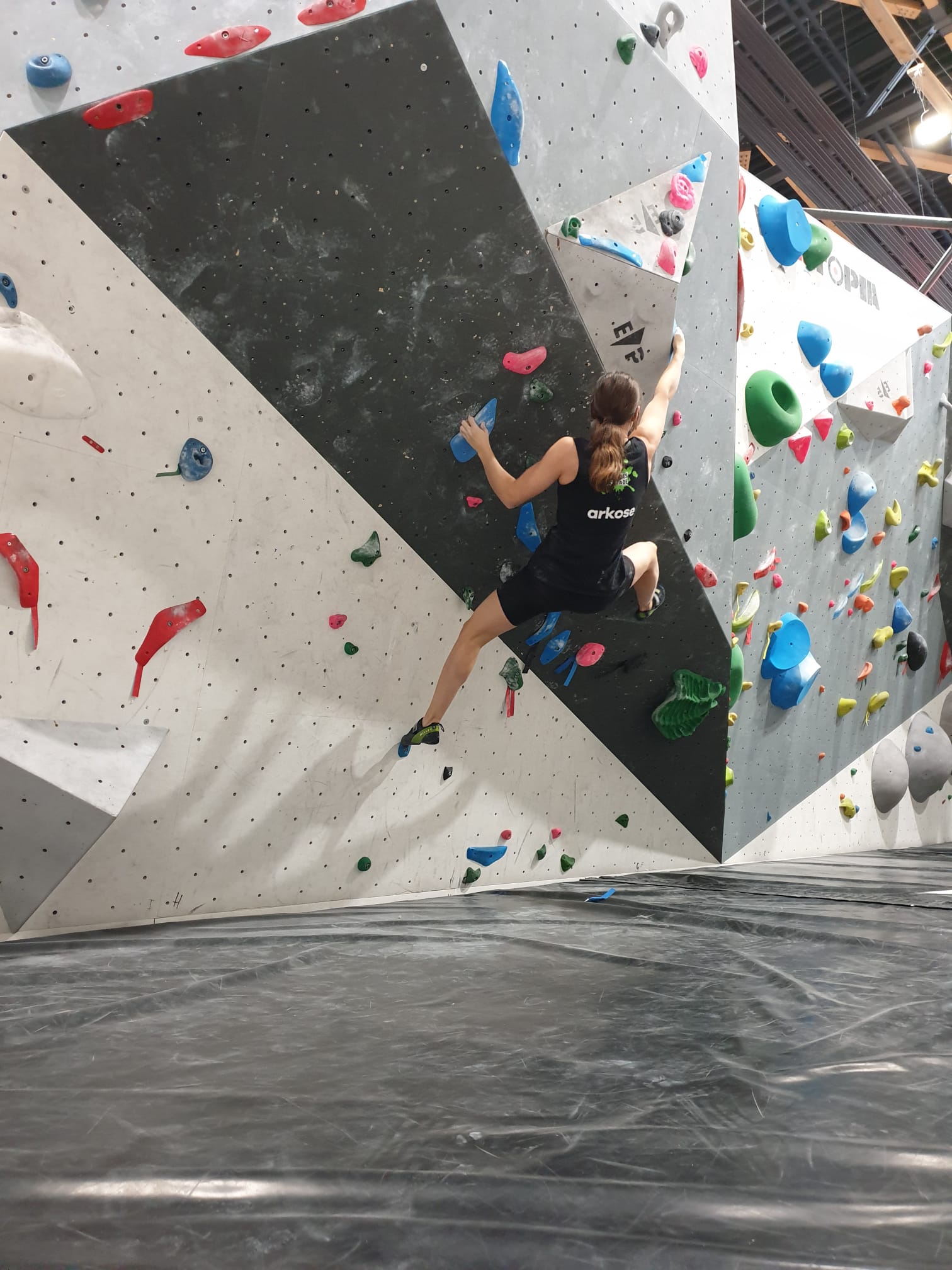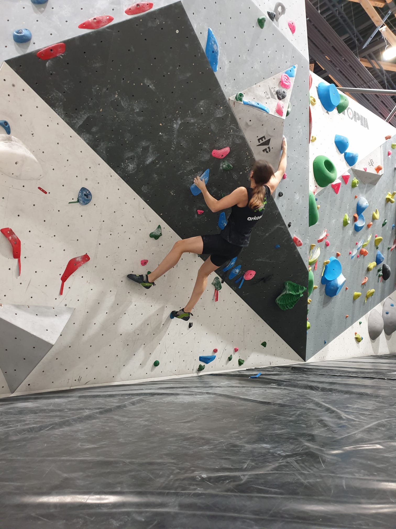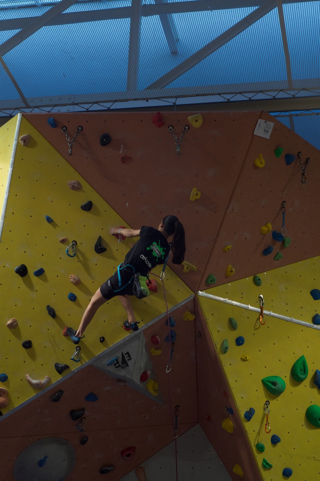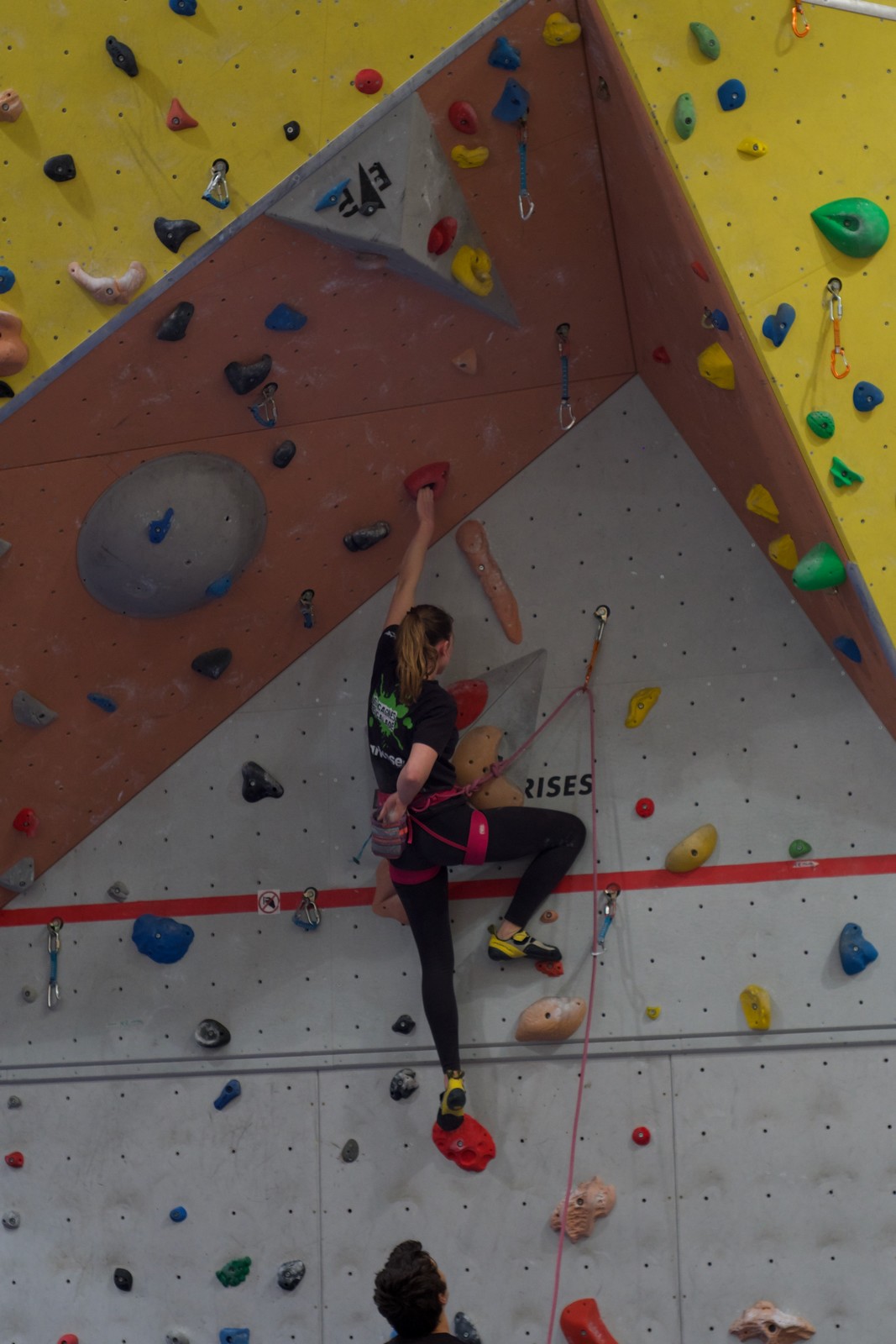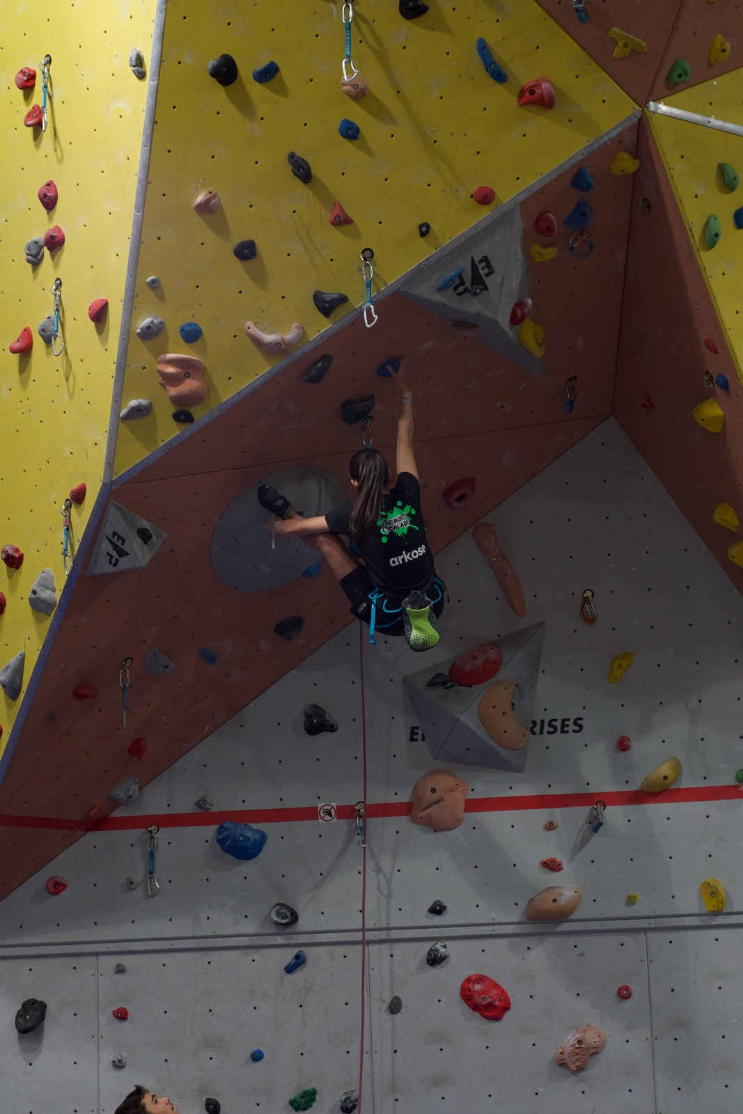 Déjà l’heure de la pause où se partagent les cakes et autres gâteaux, un peu de café et les jeunes sont déjà repartis. J’envoie Romane dans le long 5+ « symphonie de destruction » pour une belle ascension soldée malheureusement par un échec à quelques mètres de la fin. 30m de concentration et à gérer l’engagement, c’est déjà une belle performance ! Adèle la suivra en moulinette tandis que Boris s’essaie dans un 6c encore un peu trop dur pour lui avant de finir en tête dans une voie plus facile pour travailler la manip. Les autres ne sont pas en reste et « Zed et Gnougnou » a beaucoup de succès également, avec son pas d’allonge et son réta pas évident à négocier que Louise essaiera plusieurs fois. Jeanne et Paul se la jouent « tranquille » en moulinette dans toutes les voies installées tandis que Milo s’essaie aux voies un peu dures.