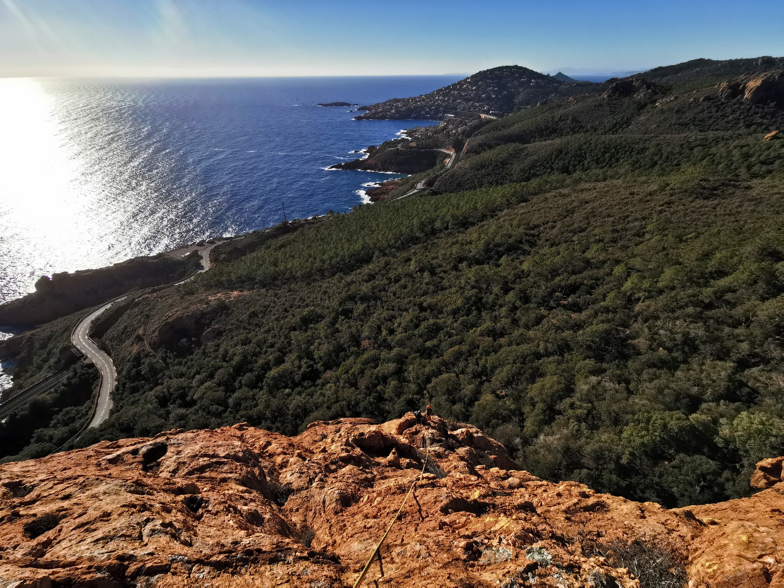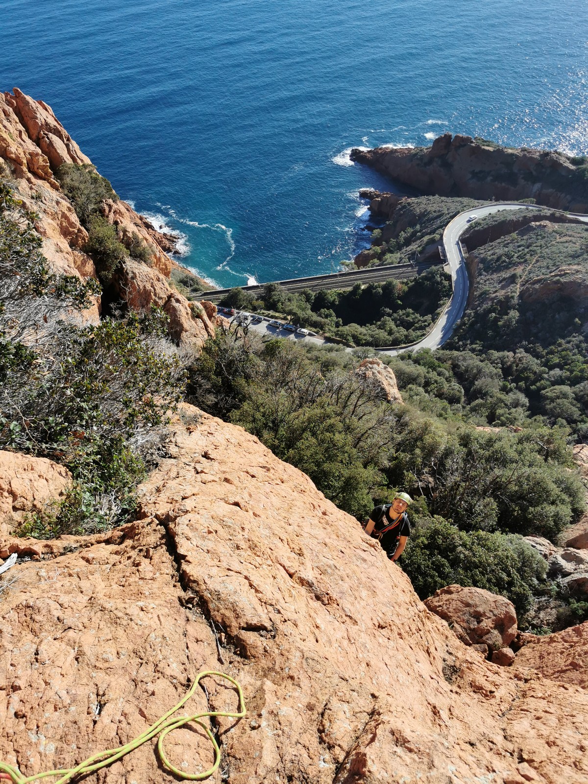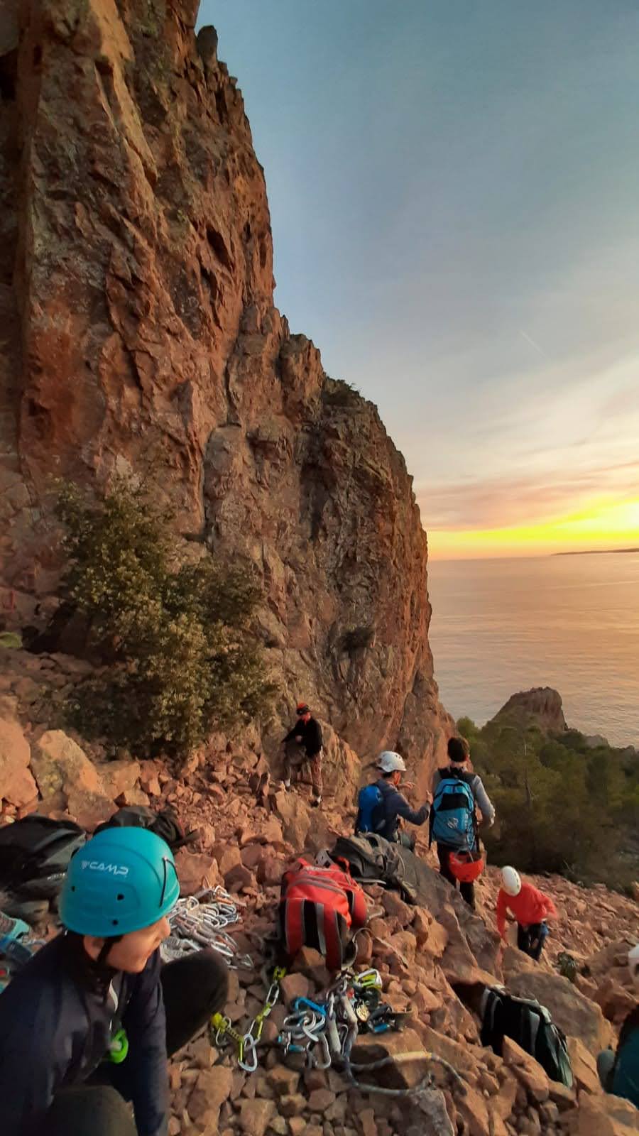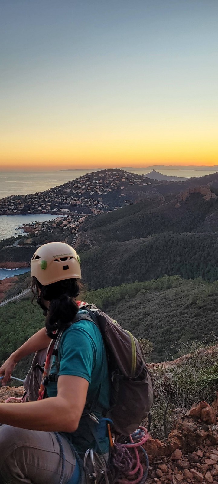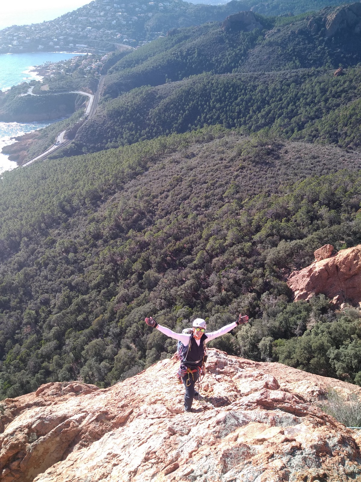 Souvent, il n’est pas besoin d’aller bien loin pour se faire plaisir. Pour cette deuxième session du cycle grandes voies, nous sommes allés au rocher St Barthélémy, dans le massif de l’Esterel. Surplombant la route de la corniche d’or, un peu avant Anthéor, ce petit massif offre une orientation principalement au sud, face à la mer, ce qui est un avantage non négligeable un 17 décembre !