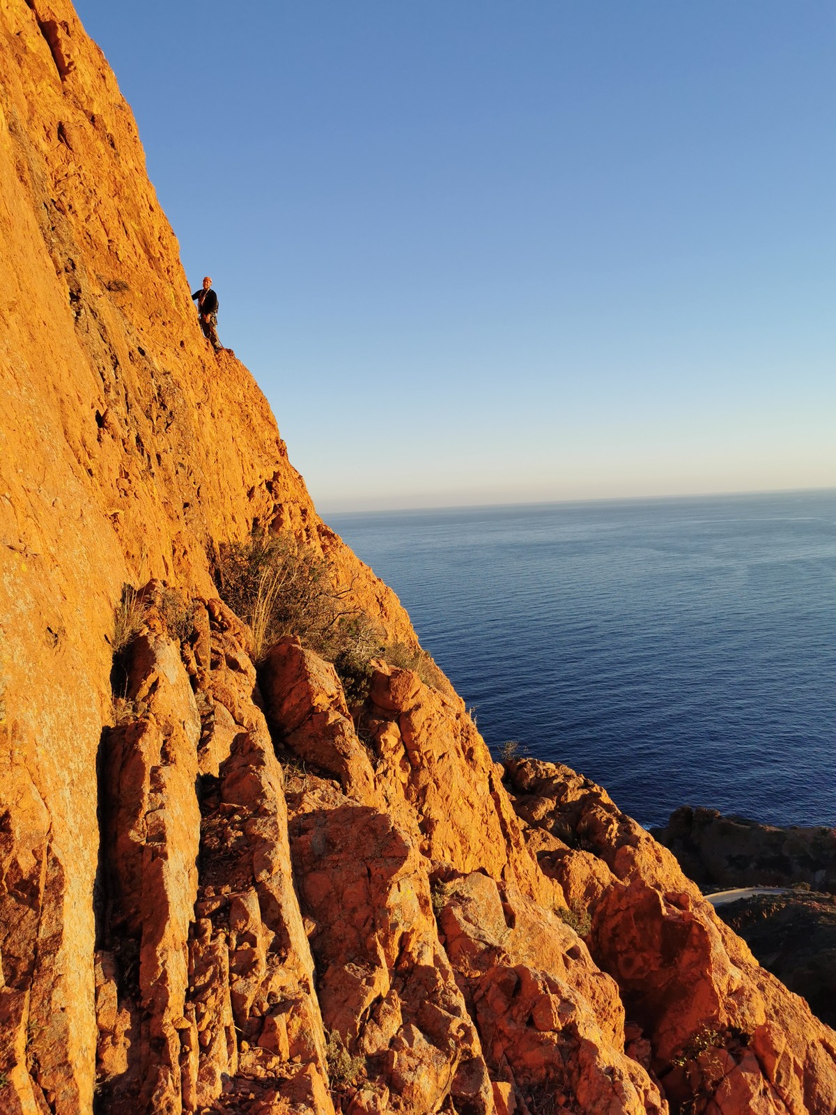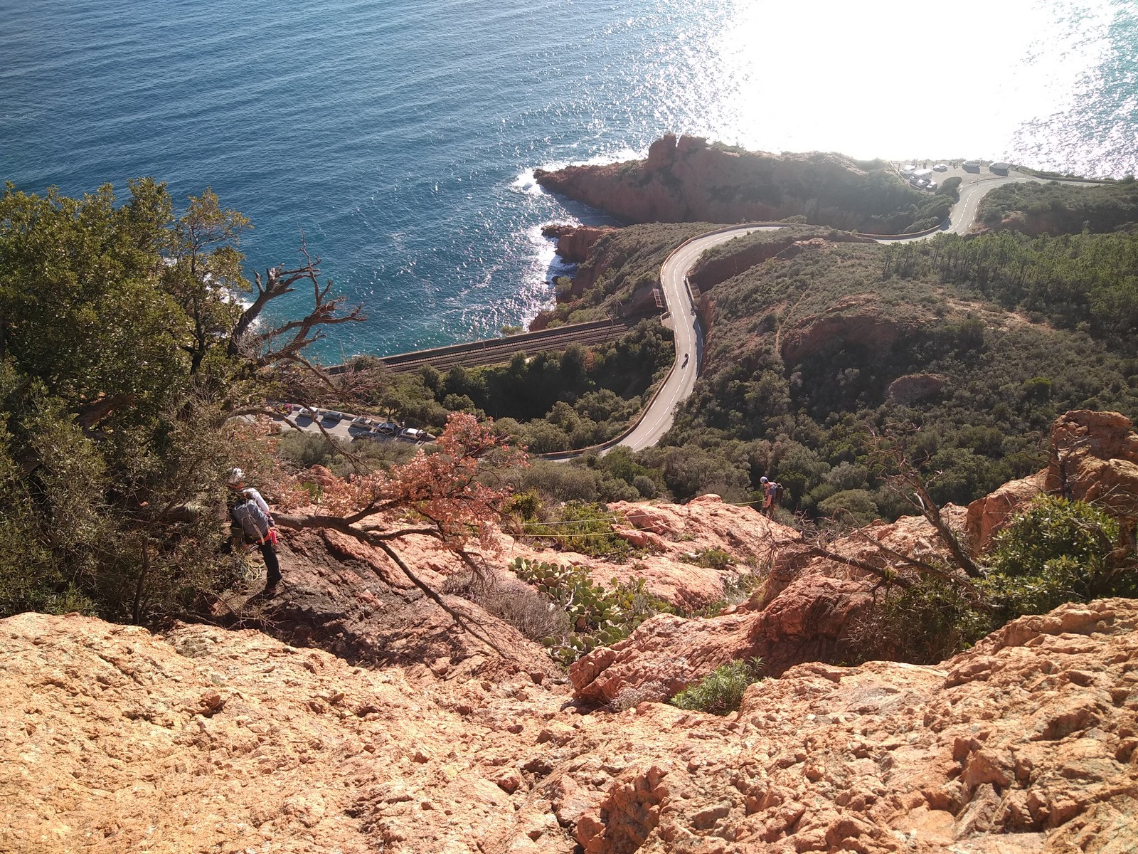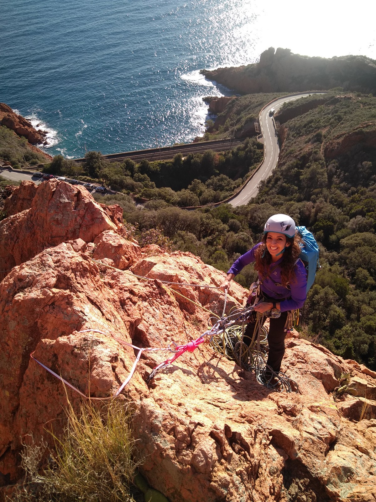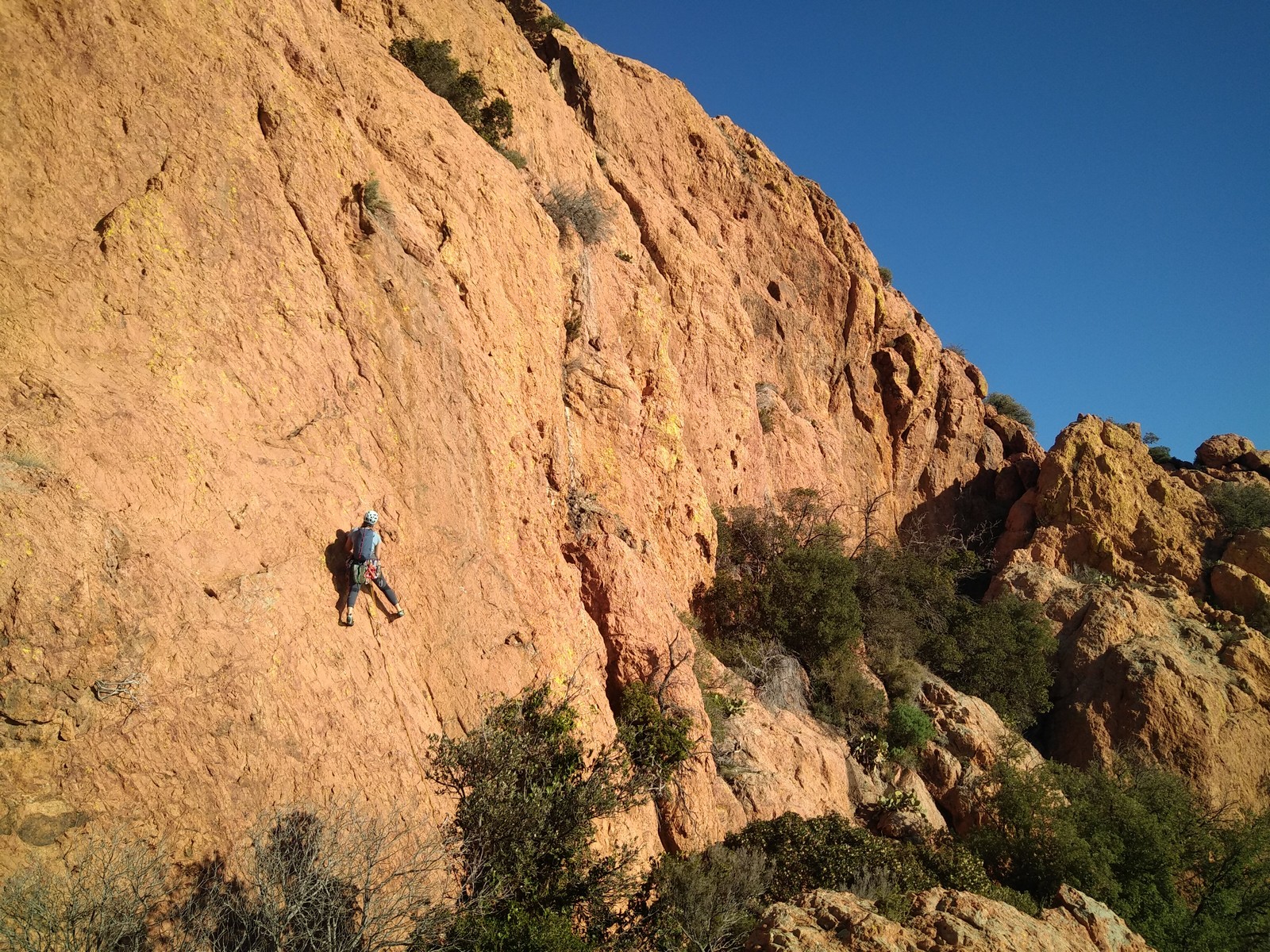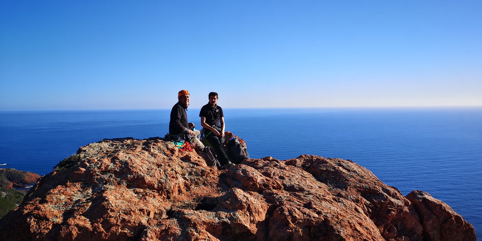Souvent, il n’est pas besoin d’aller bien loin pour se faire plaisir. Pour cette deuxième session du cycle grandes voies, nous sommes allés au rocher St Barthélémy, dans le massif de l’Esterel. Surplombant la route de la corniche d’or, un peu avant Anthéor, ce petit massif offre une orientation principalement au sud, face à la mer, ce qui est un avantage non négligeable un 17 décembre !
