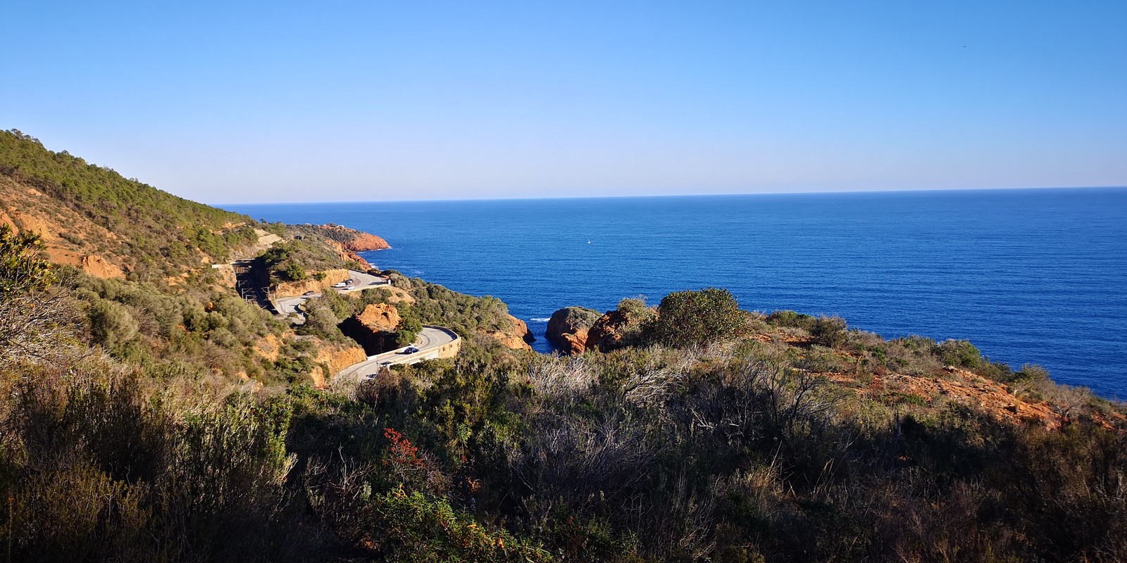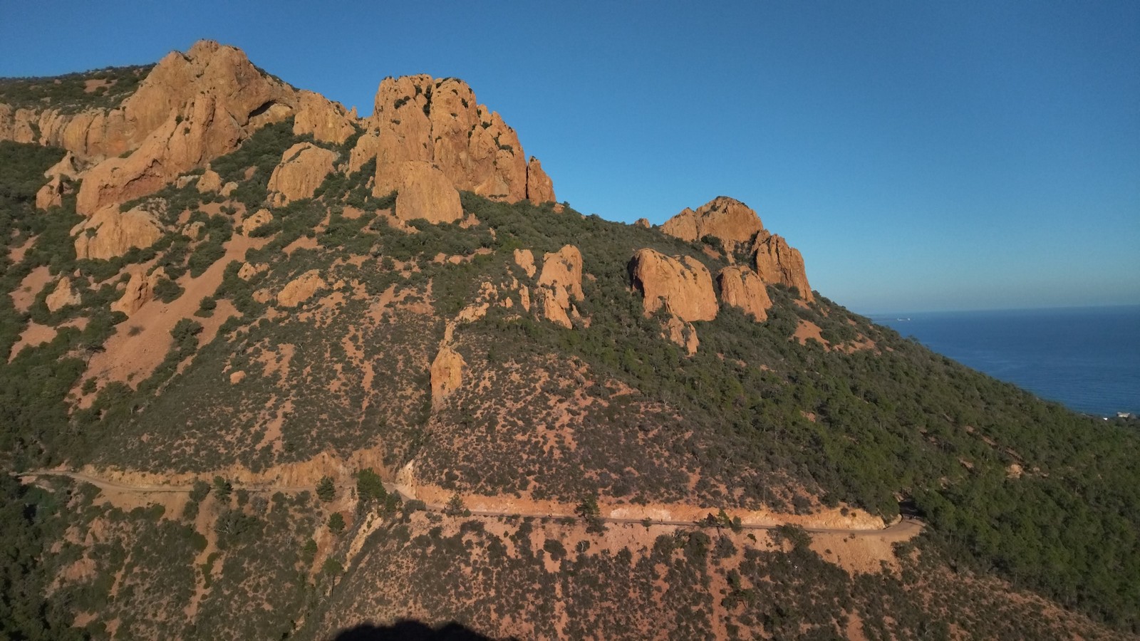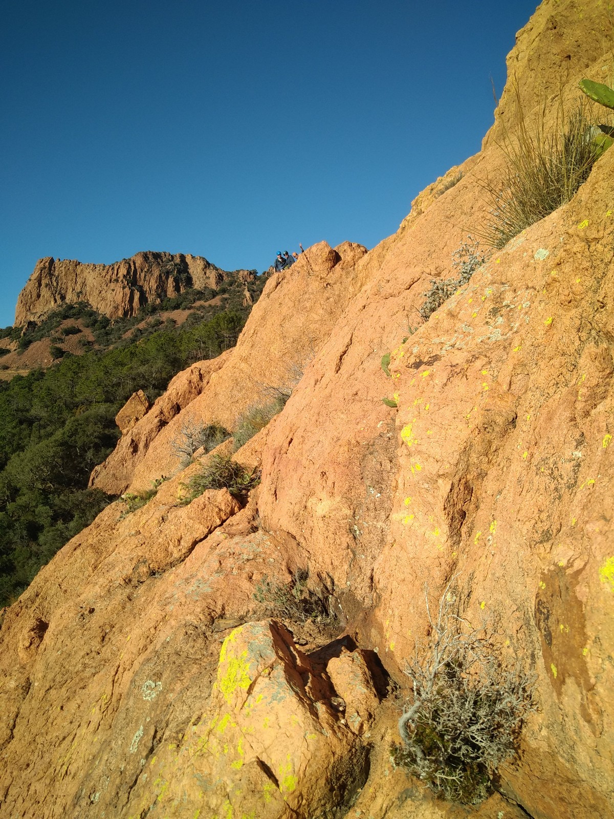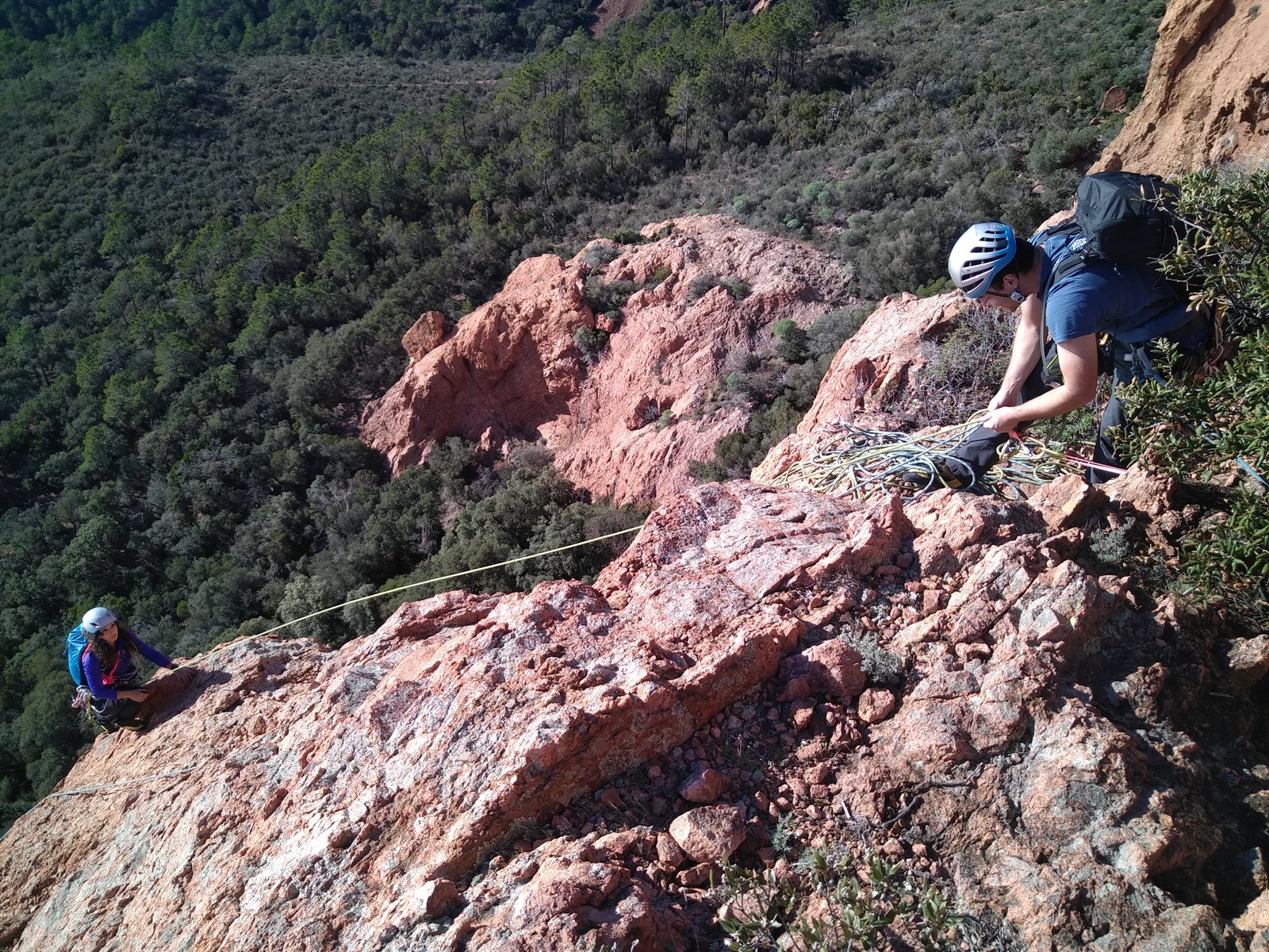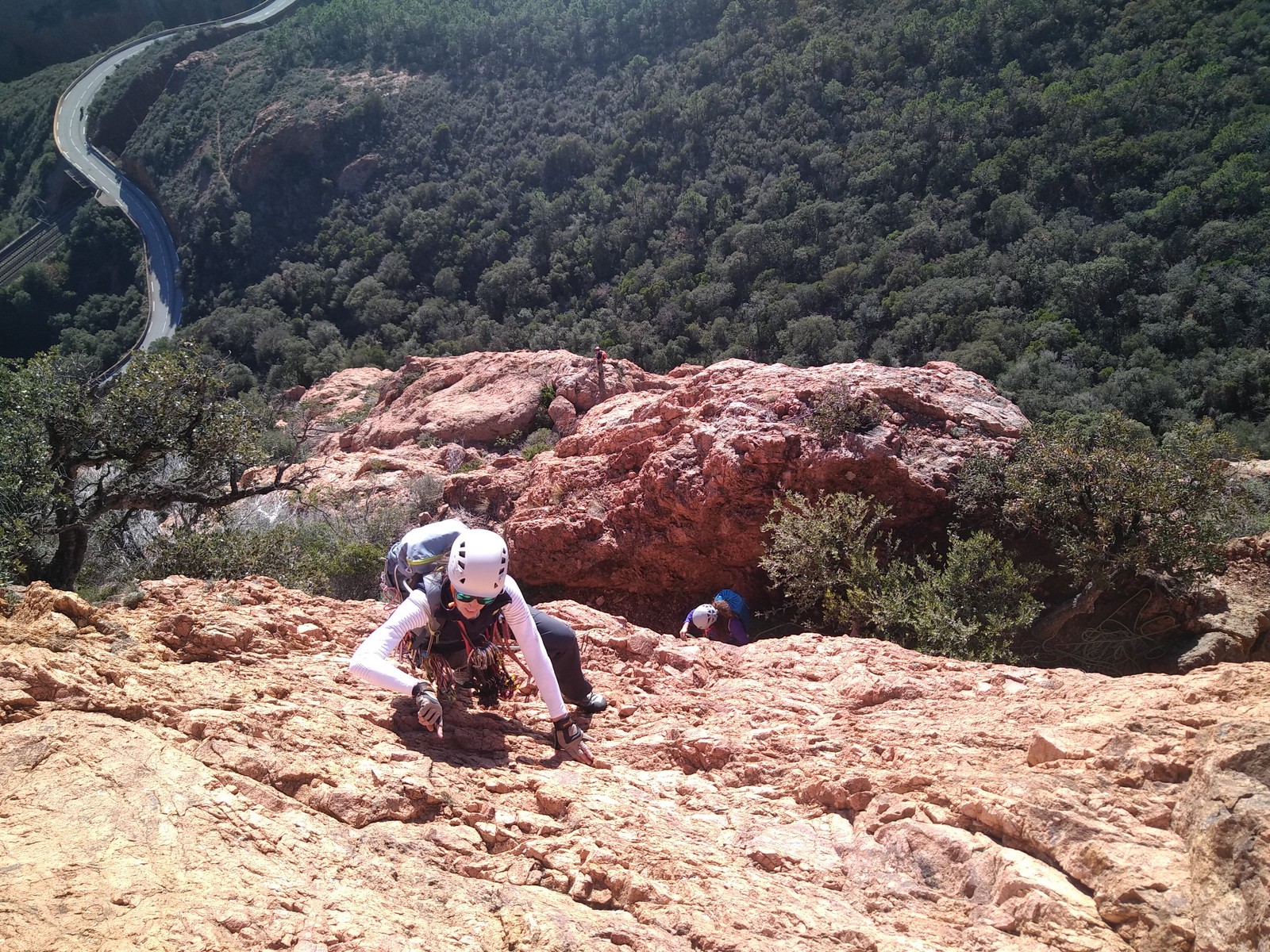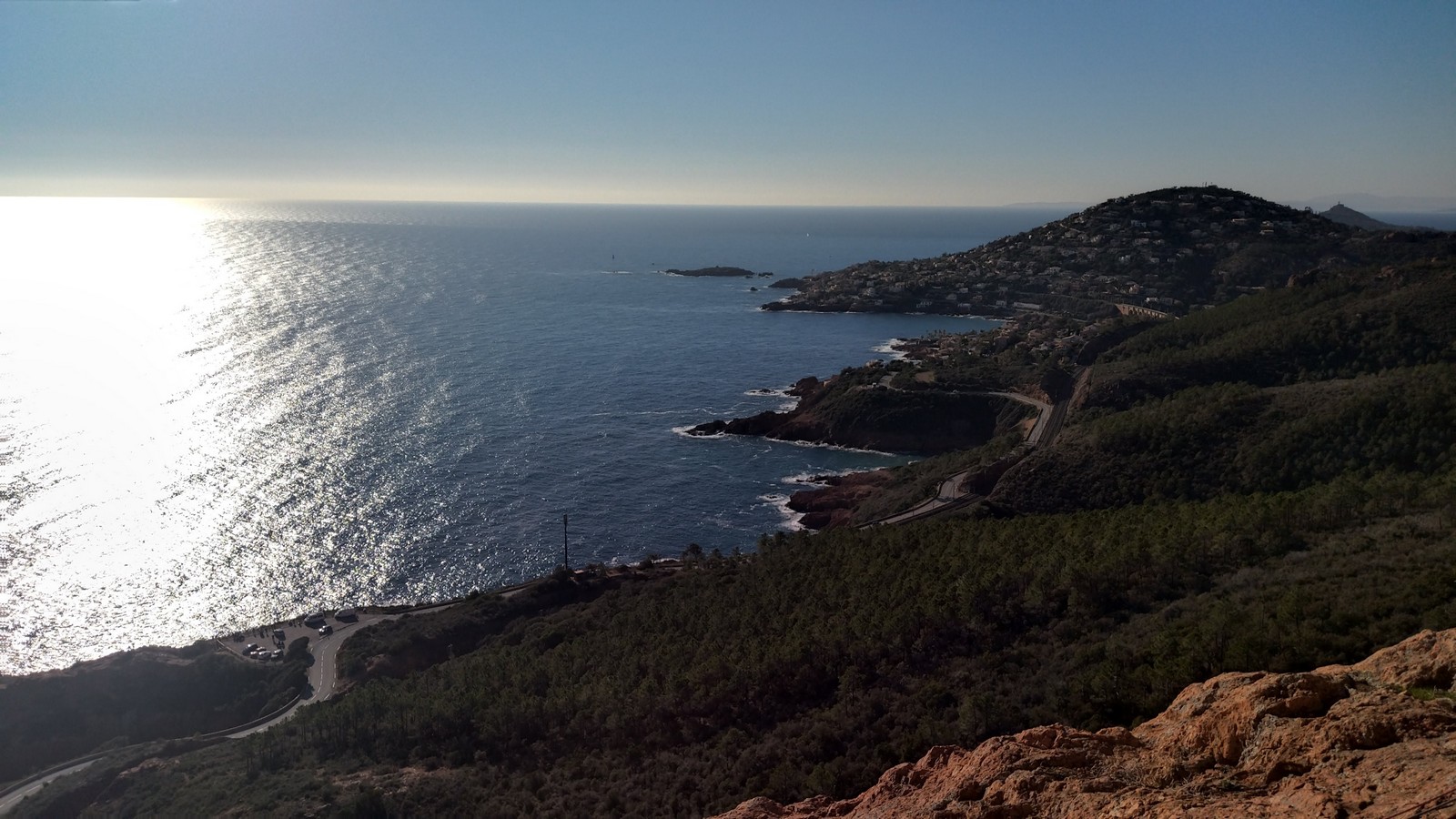 Souvent, il n’est pas besoin d’aller bien loin pour se faire plaisir. Pour cette deuxième session du cycle grandes voies, nous sommes allés au rocher St Barthélémy, dans le massif de l’Esterel. Surplombant la route de la corniche d’or, un peu avant Anthéor, ce petit massif offre une orientation principalement au sud, face à la mer, ce qui est un avantage non négligeable un 17 décembre !
