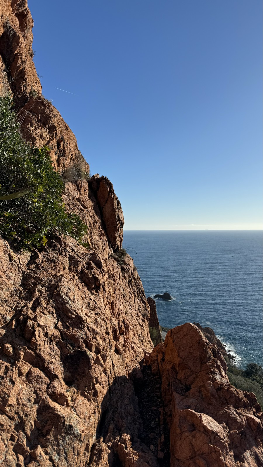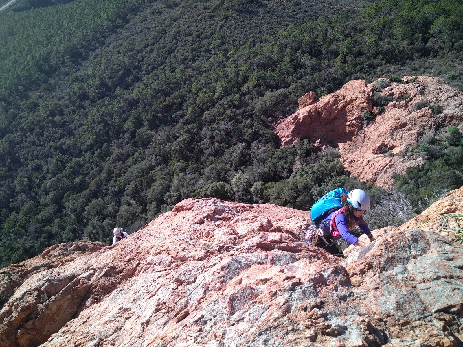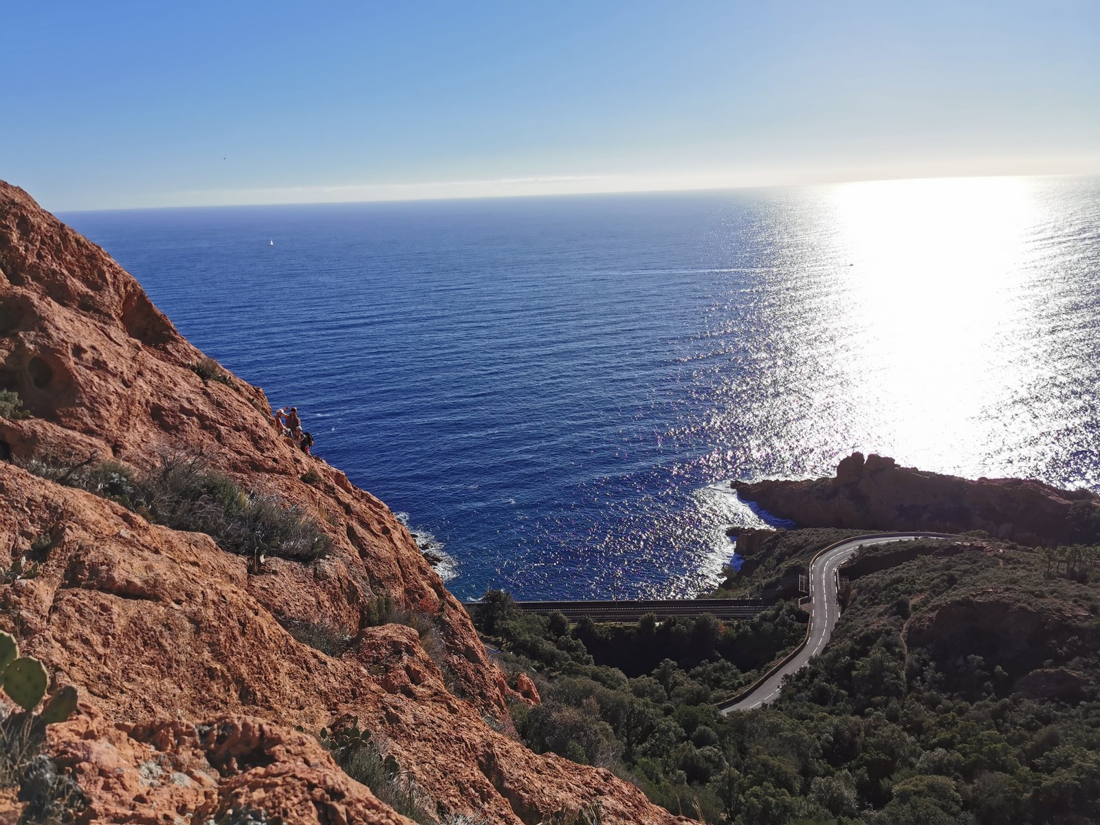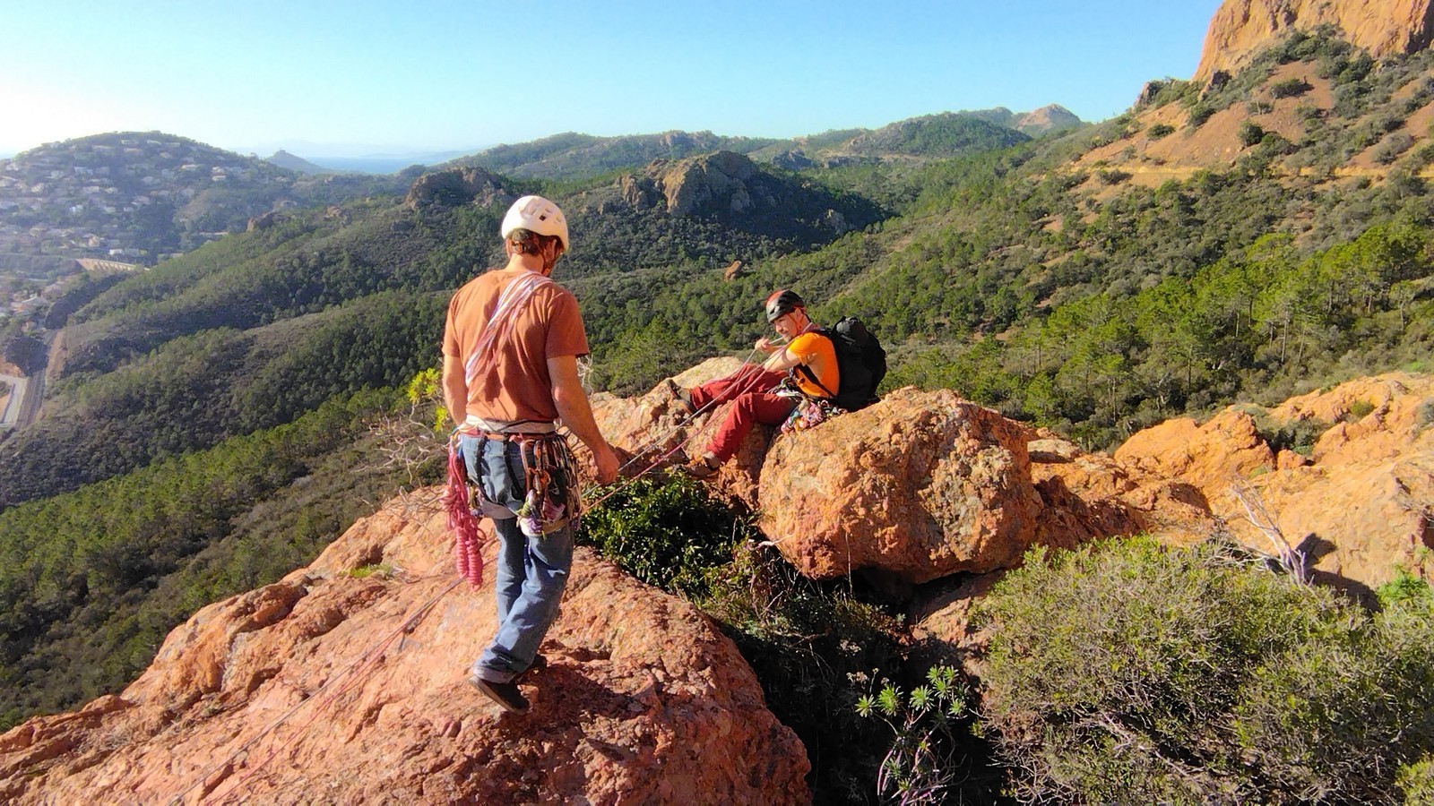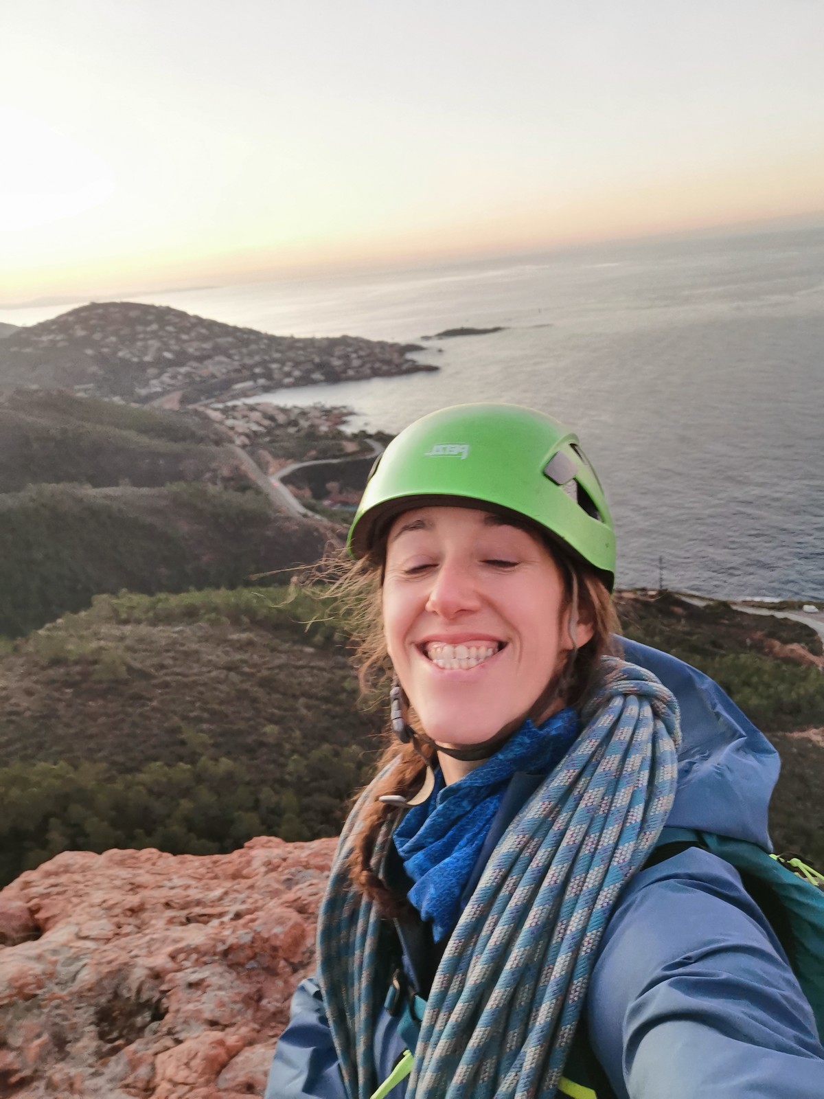Souvent, il n’est pas besoin d’aller bien loin pour se faire plaisir. Pour cette deuxième session du cycle grandes voies, nous sommes allés au rocher St Barthélémy, dans le massif de l’Esterel. Surplombant la route de la corniche d’or, un peu avant Anthéor, ce petit massif offre une orientation principalement au sud, face à la mer, ce qui est un avantage non négligeable un 17 décembre !