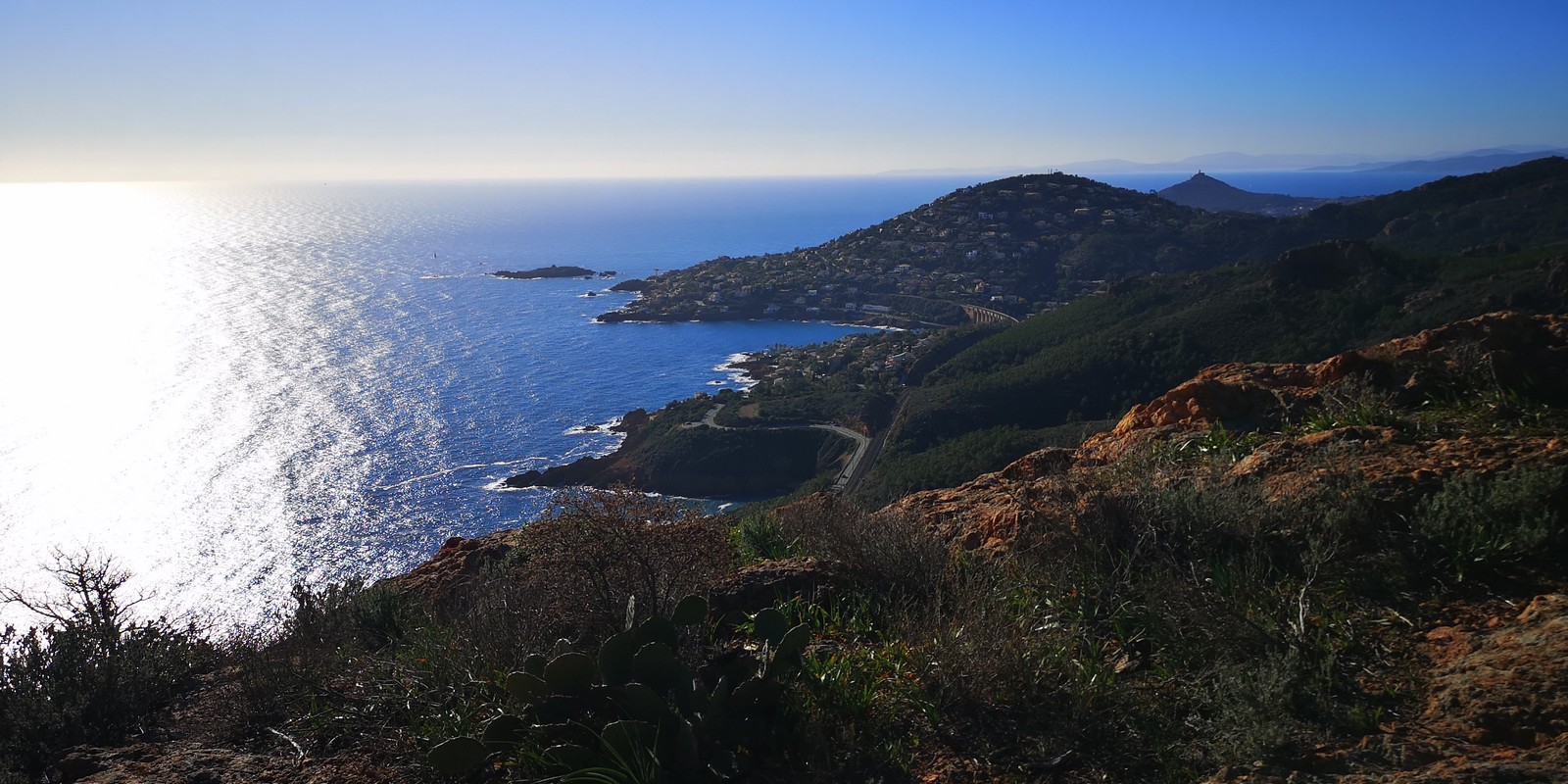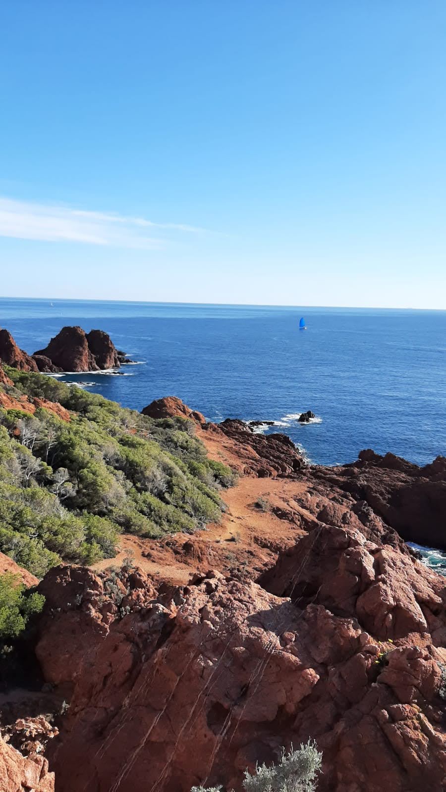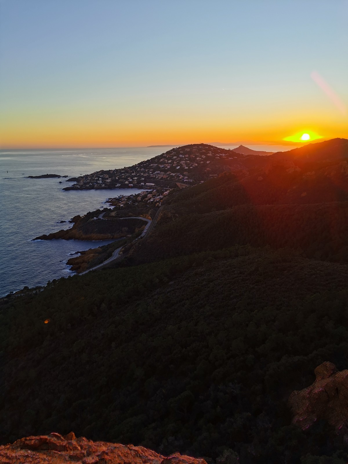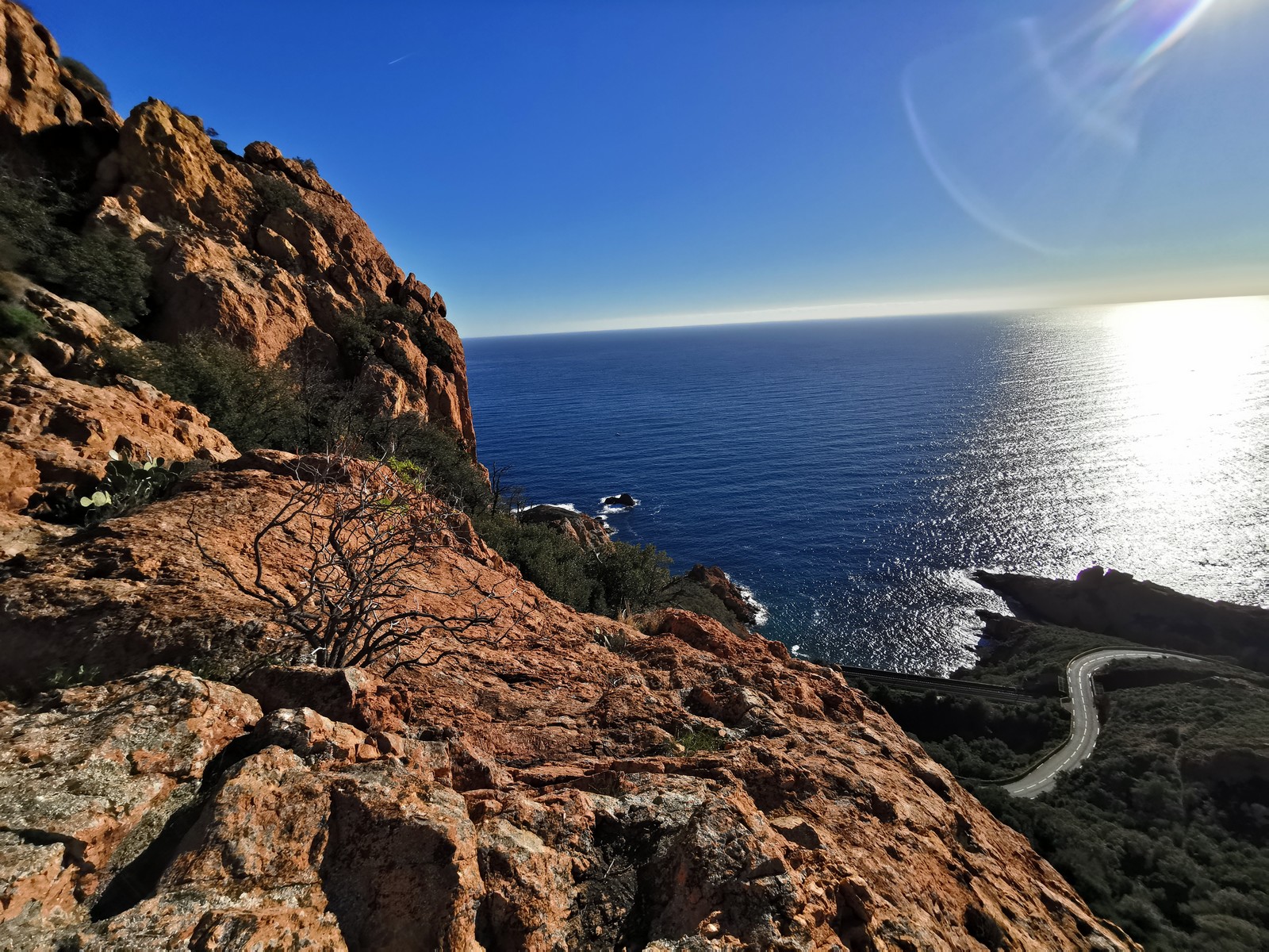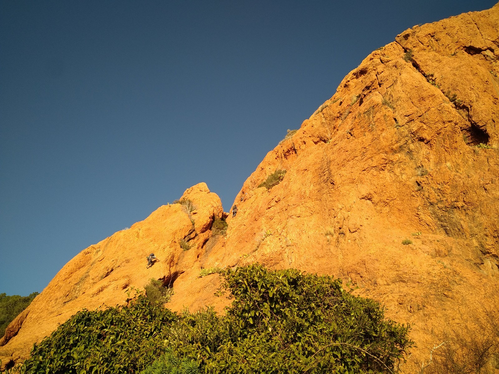 Souvent, il n’est pas besoin d’aller bien loin pour se faire plaisir. Pour cette deuxième session du cycle grandes voies, nous sommes allés au rocher St Barthélémy, dans le massif de l’Esterel. Surplombant la route de la corniche d’or, un peu avant Anthéor, ce petit massif offre une orientation principalement au sud, face à la mer, ce qui est un avantage non négligeable un 17 décembre !