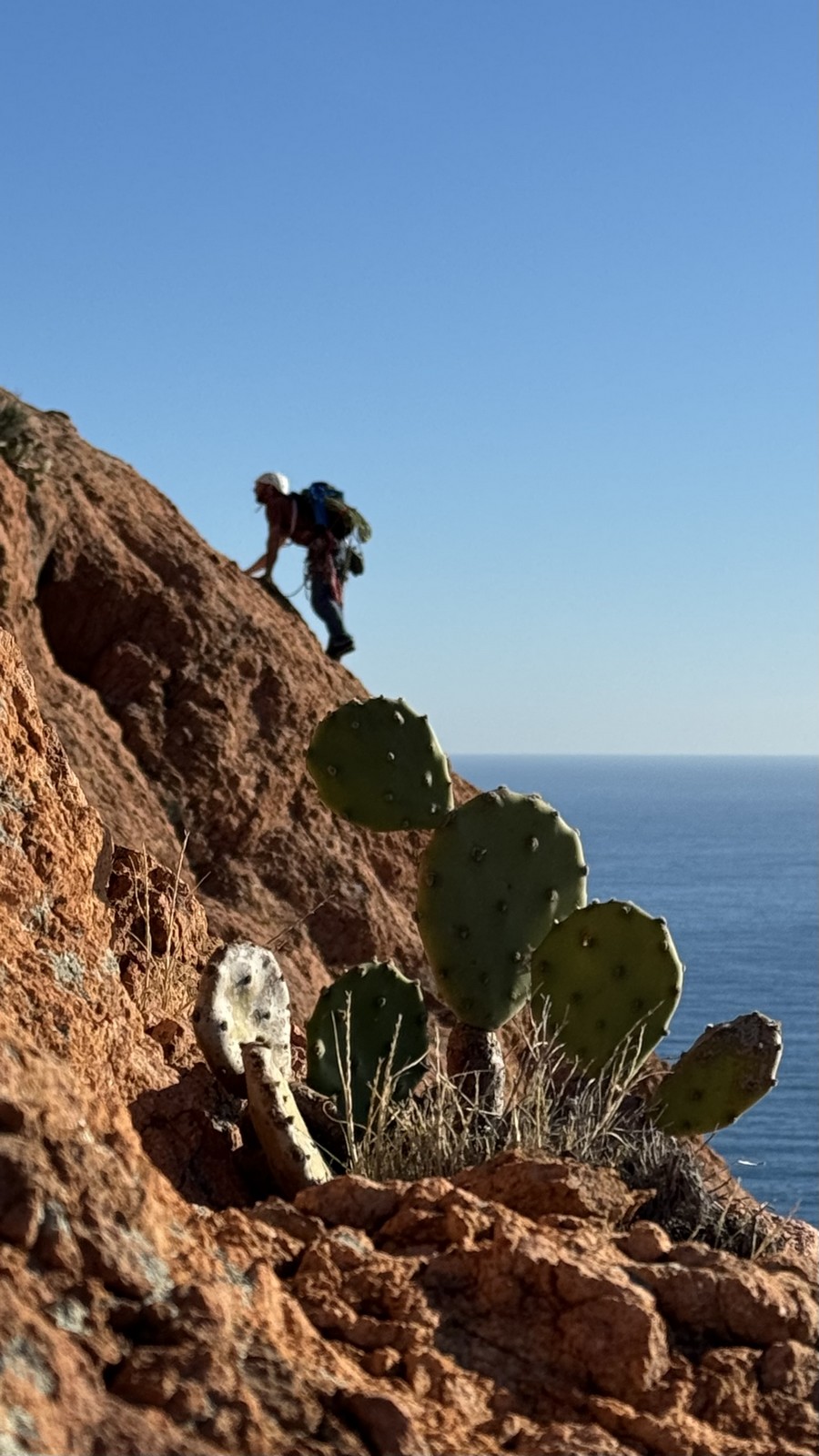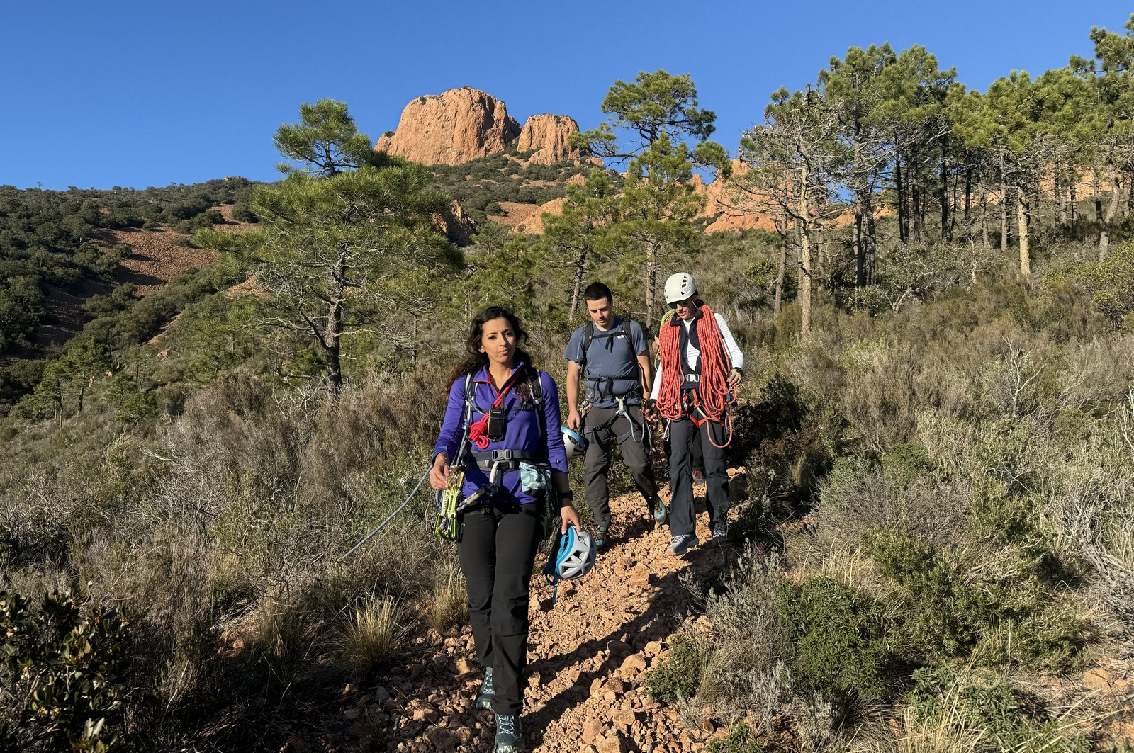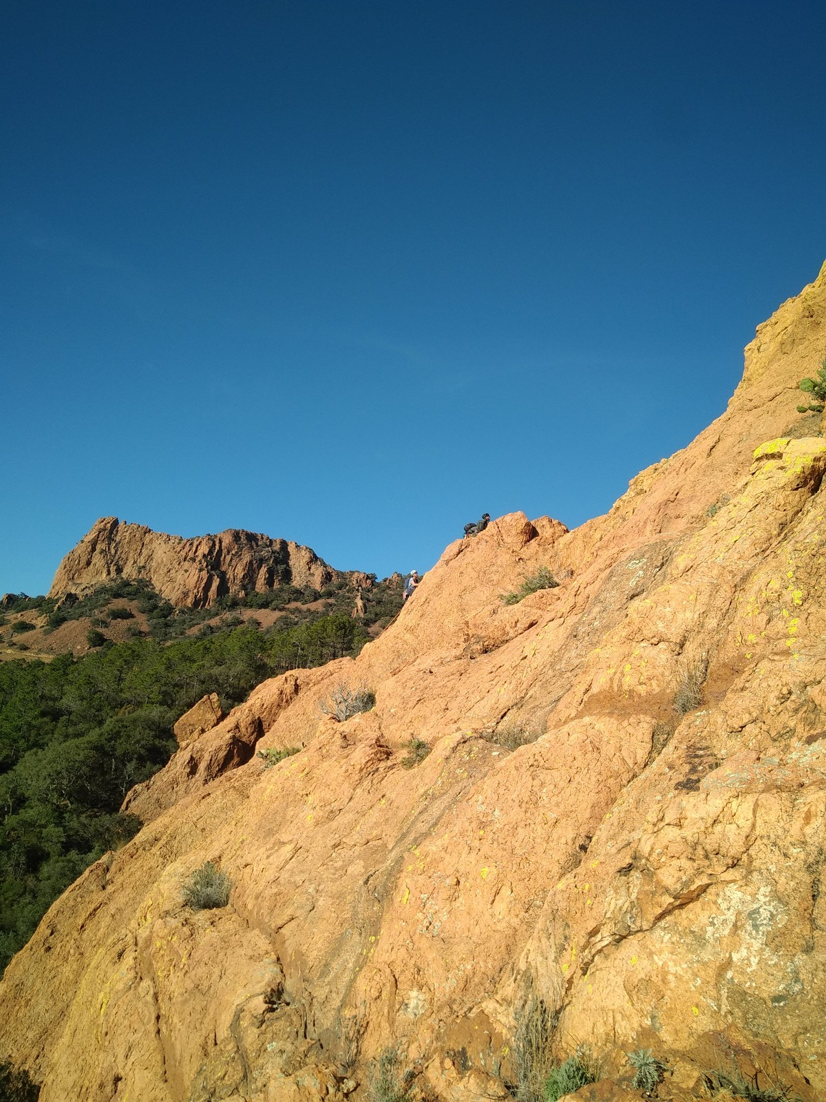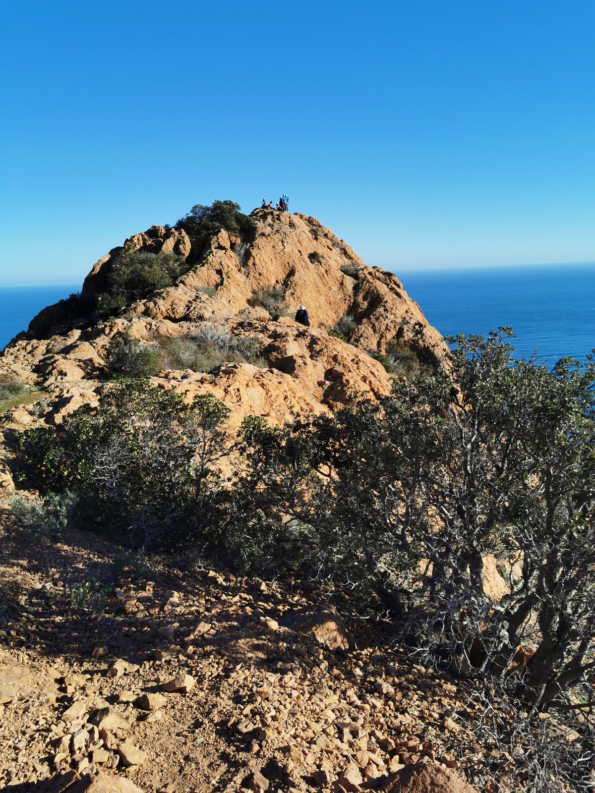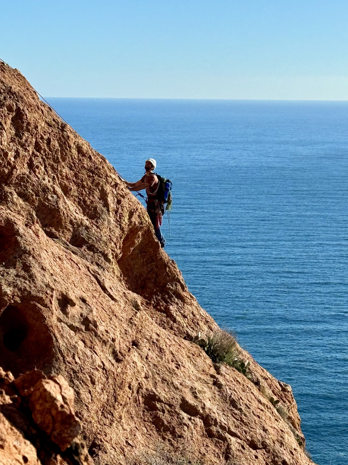 Souvent, il n’est pas besoin d’aller bien loin pour se faire plaisir. Pour cette deuxième session du cycle grandes voies, nous sommes allés au rocher St Barthélémy, dans le massif de l’Esterel. Surplombant la route de la corniche d’or, un peu avant Anthéor, ce petit massif offre une orientation principalement au sud, face à la mer, ce qui est un avantage non négligeable un 17 décembre !