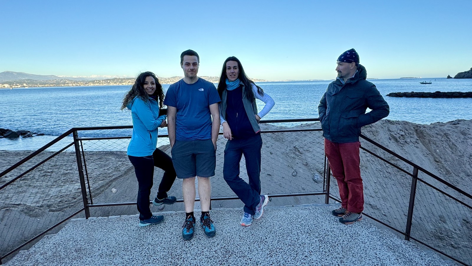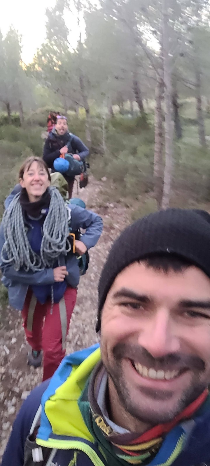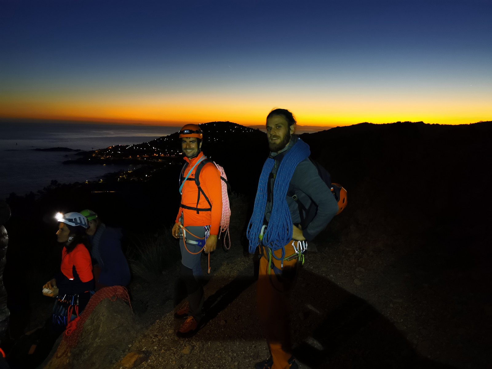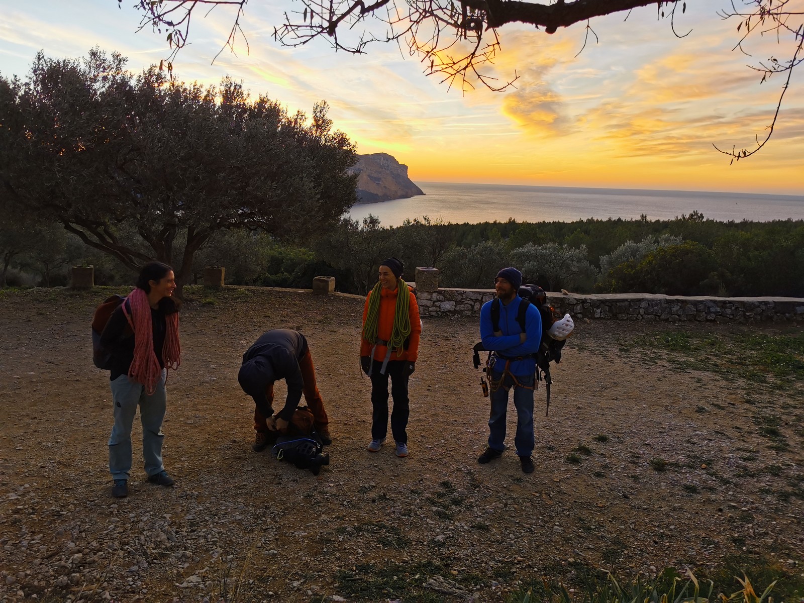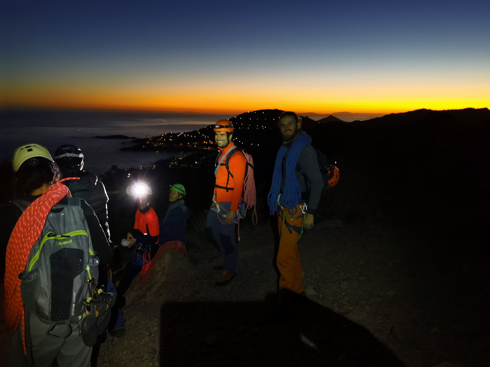 Le rendez-vous est donné à Sauvaigo à 17h30 directement après mes cours. Je suis le dernier à arriver et pas le temps de trop discuter, il faut arriver à l’auberge avant 20h30 ! On charge les voitures et c’est parti direction le petit parking de la calanque de Port Miou. Nous arrivons vers 20h, le mistral souffle et il fait froid ! 5 petits degrés au thermomètre ! Le temps de distribuer le matos et on attaque la marche de 30min pour atteindre l’auberge.