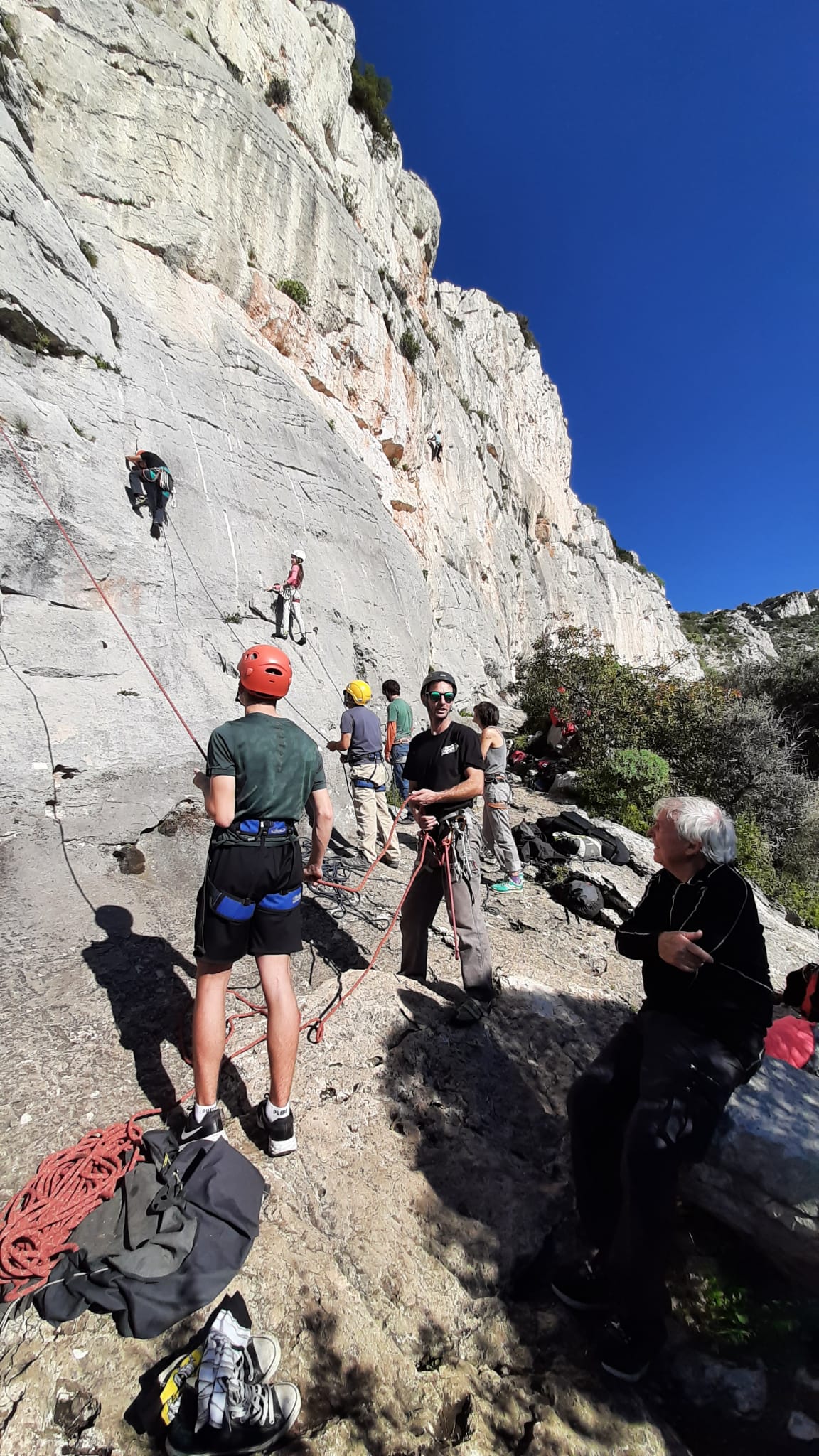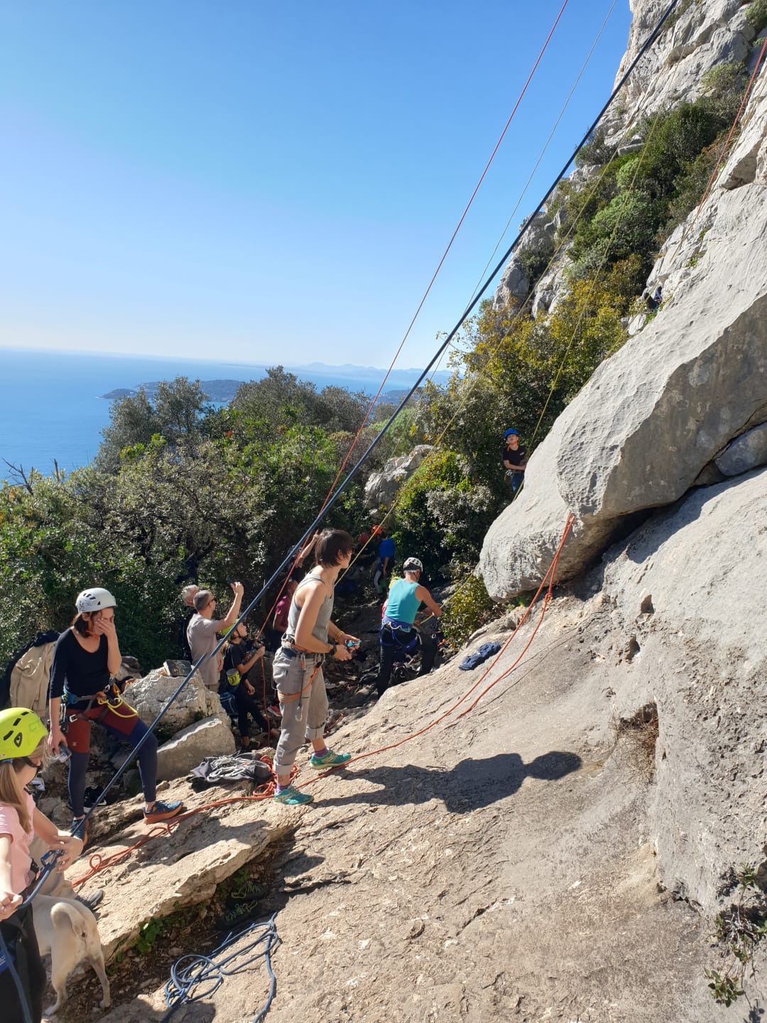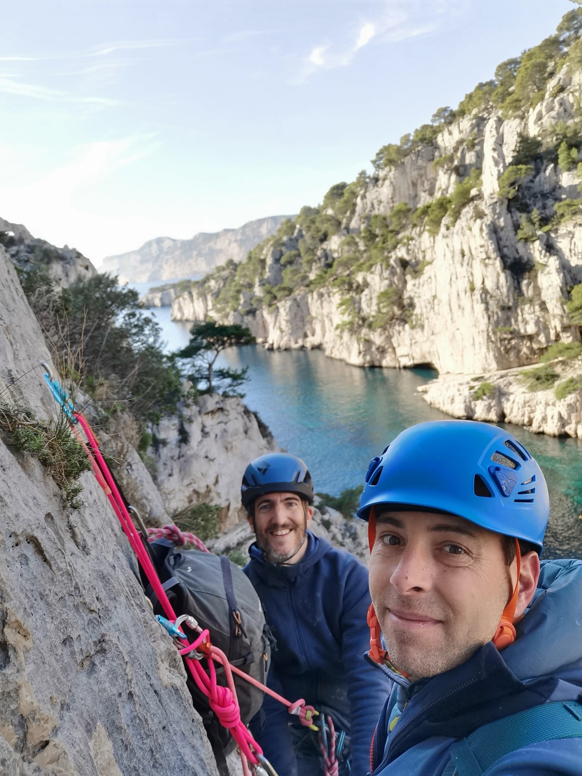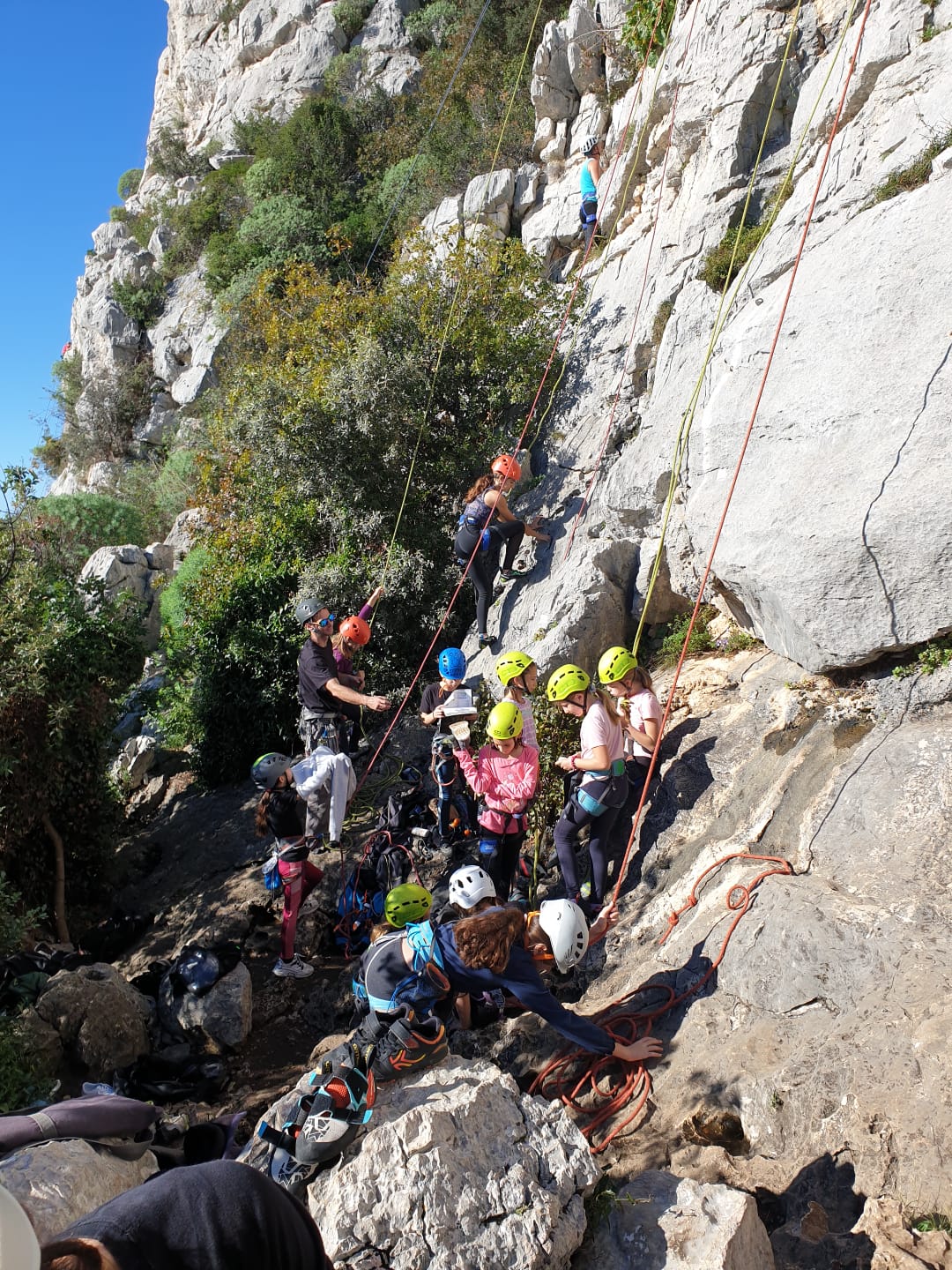 Ce week-end, comme l’an dernier à la même époque, nous sommes partis avec une quinzaine d’adultes du club dans les Bouches du Rhône, direction Cassis et les calanques afin de grimper quelques grandes voies à En Vau.