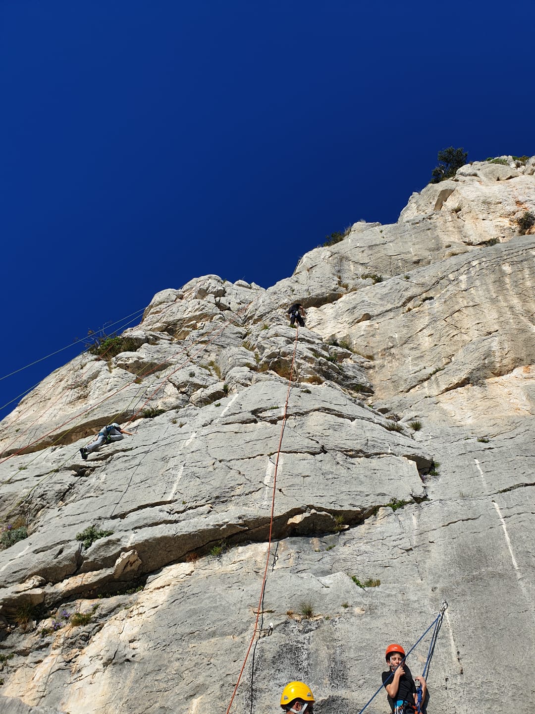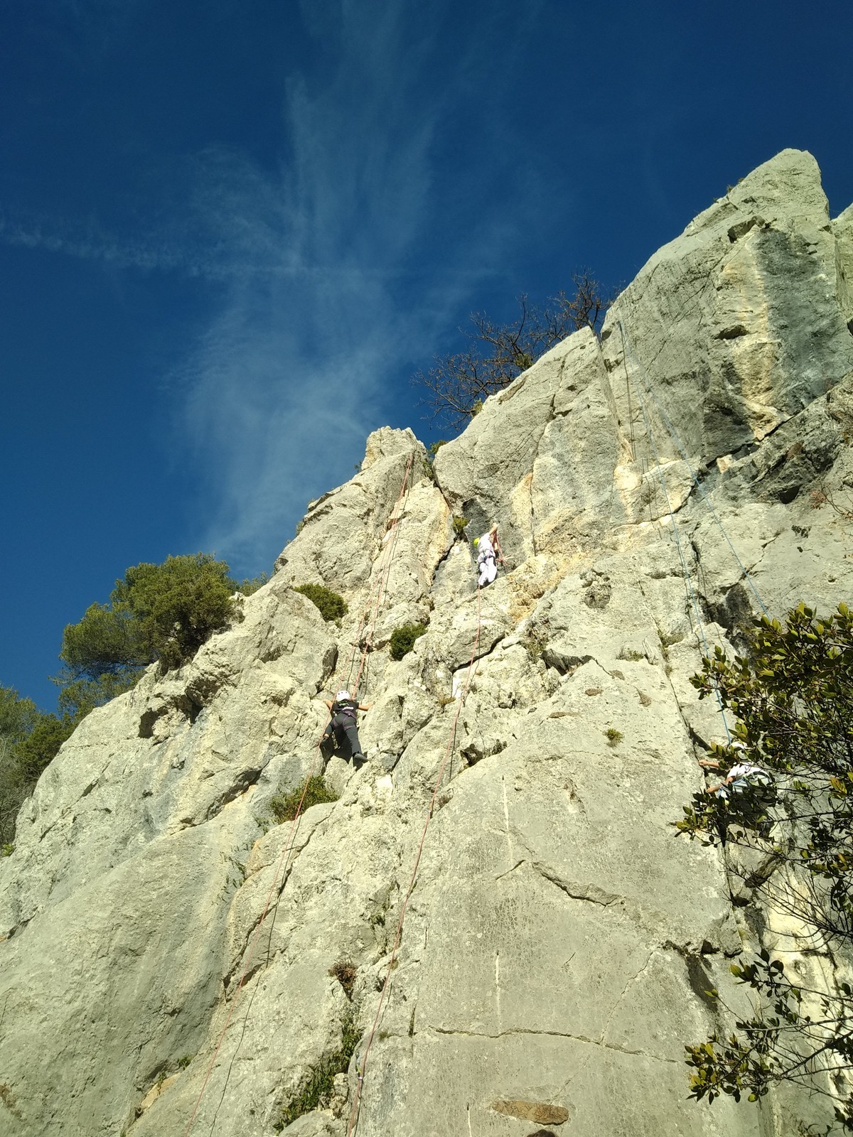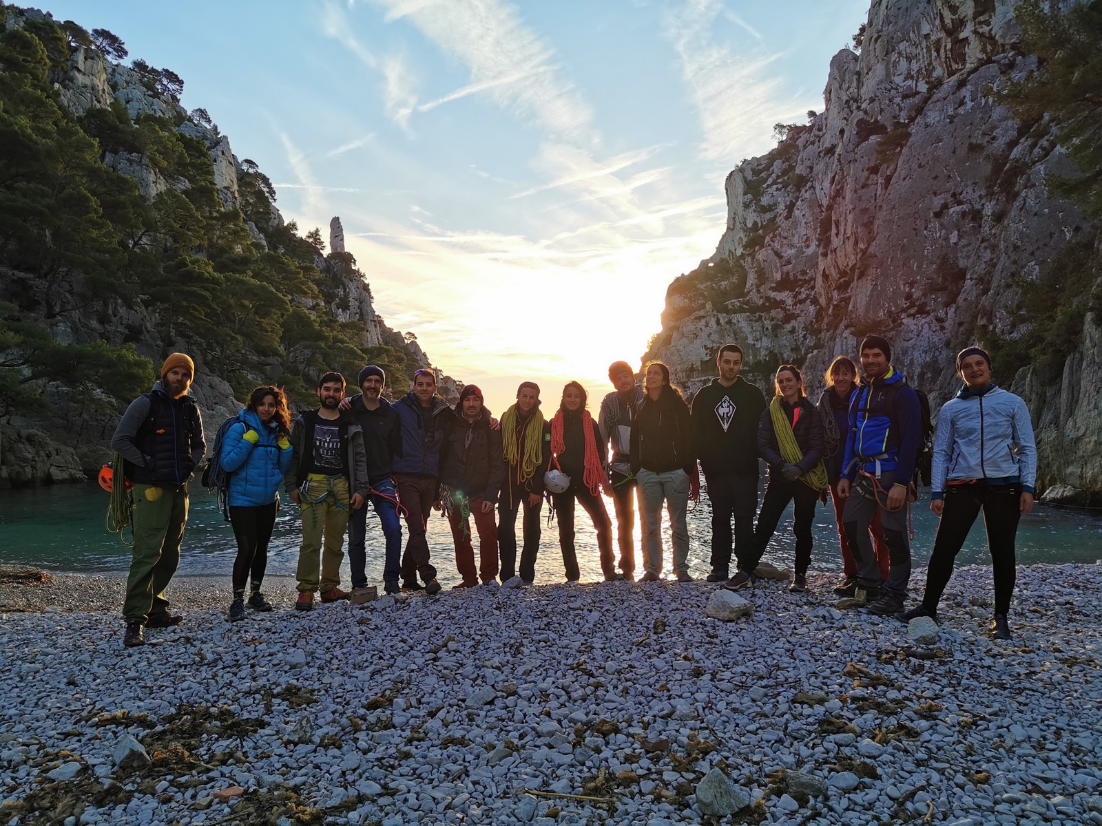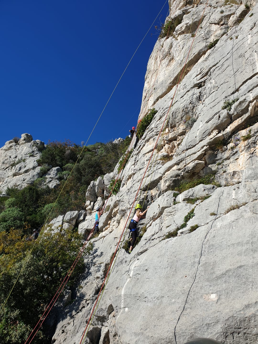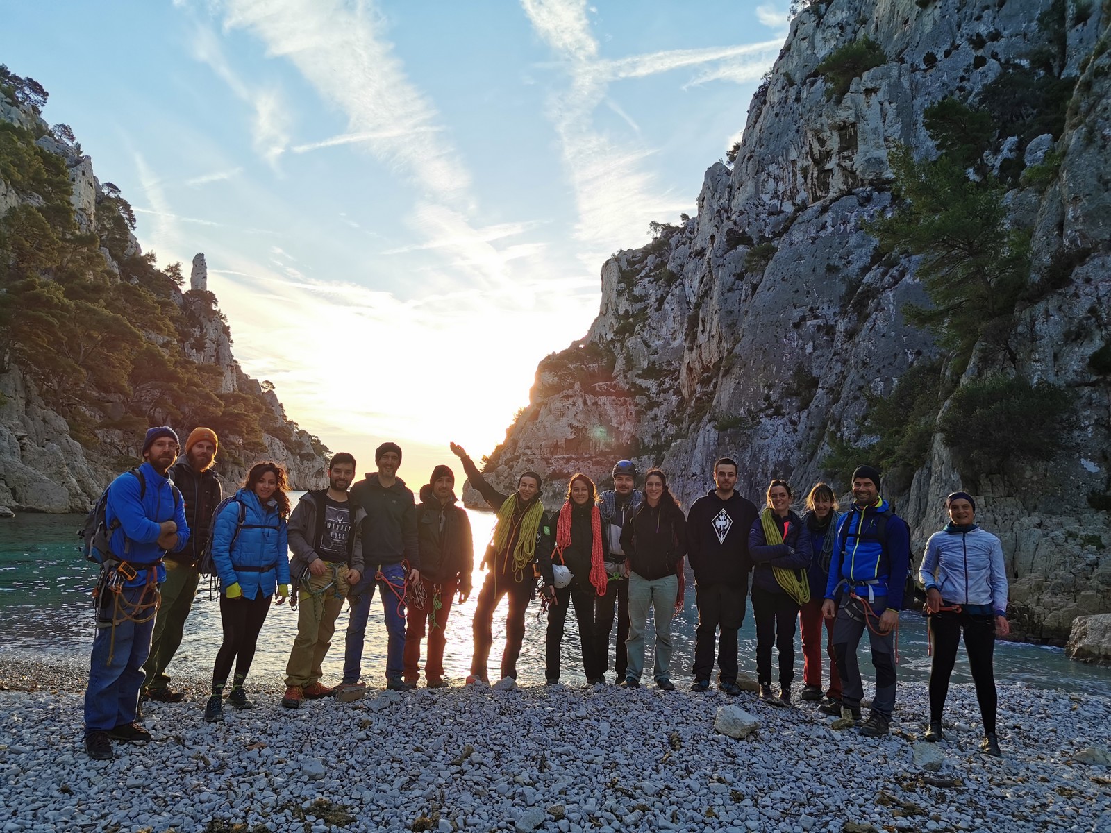 Ce week-end, comme l’an dernier à la même époque, nous sommes partis avec une quinzaine d’adultes du club dans les Bouches du Rhône, direction Cassis et les calanques afin de grimper quelques grandes voies à En Vau.