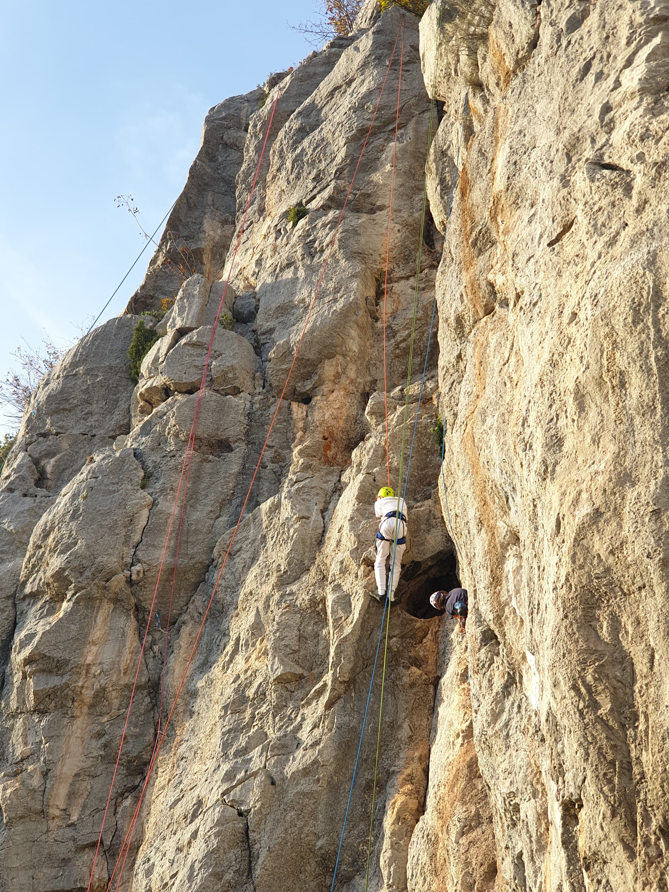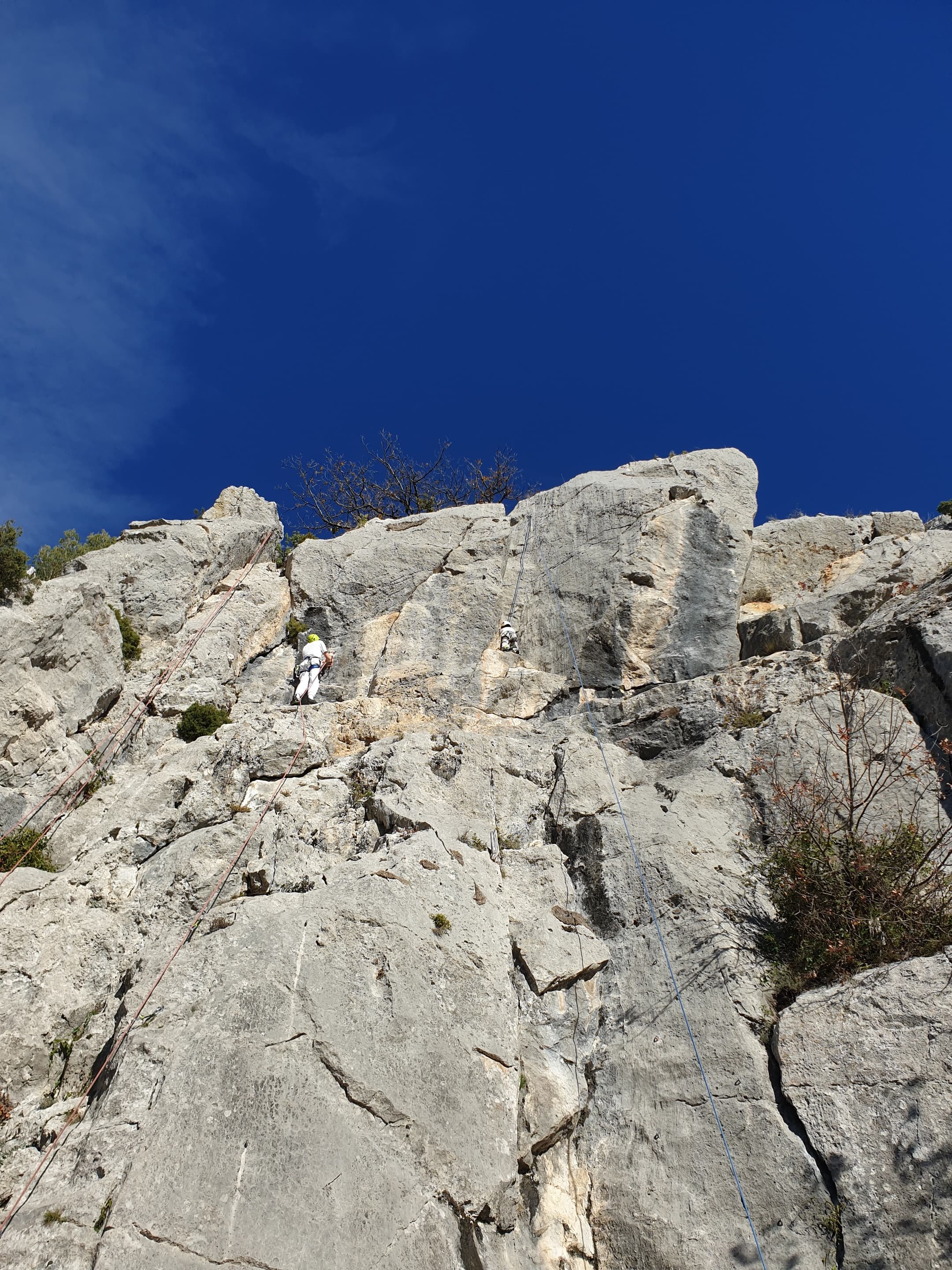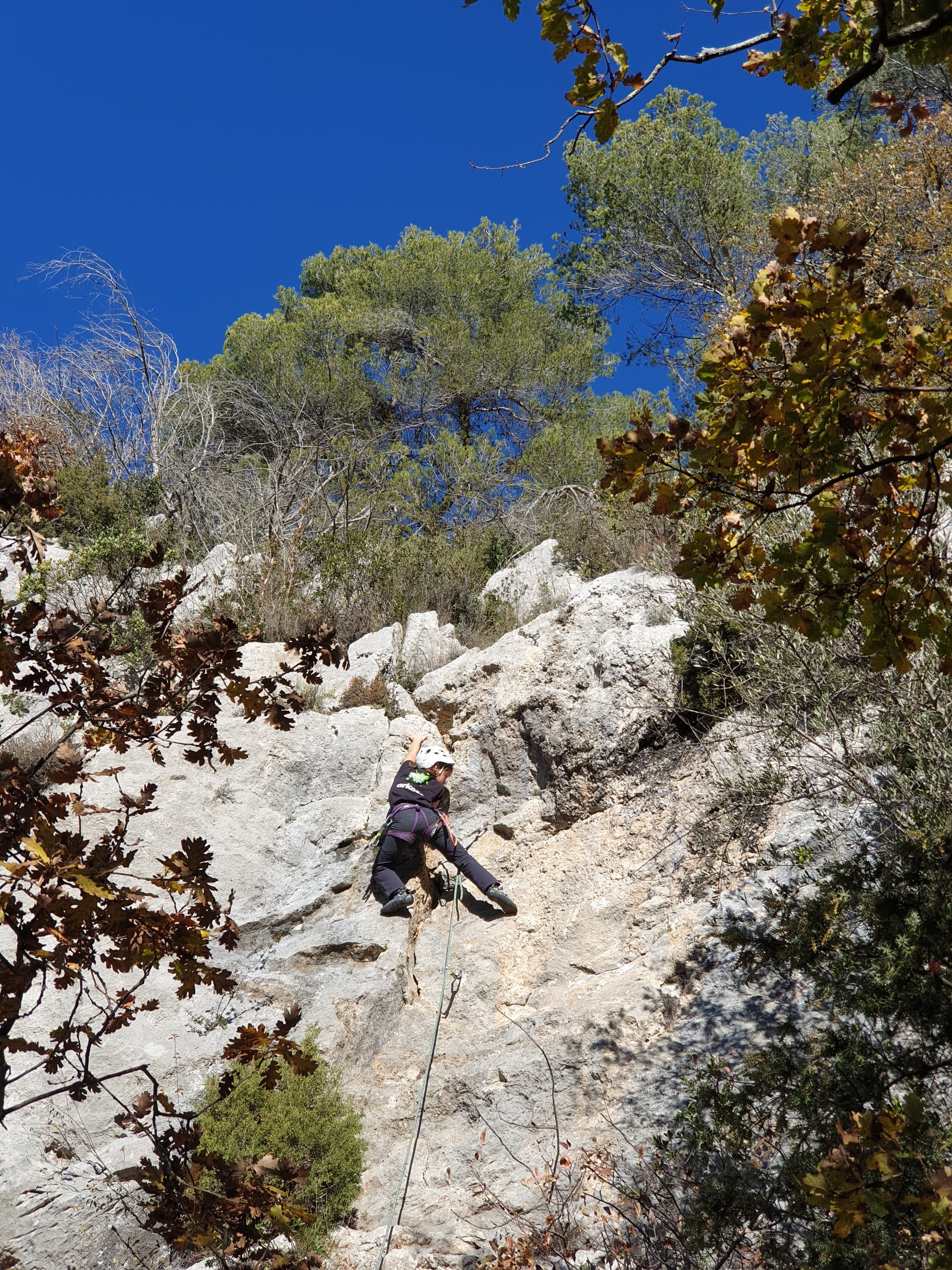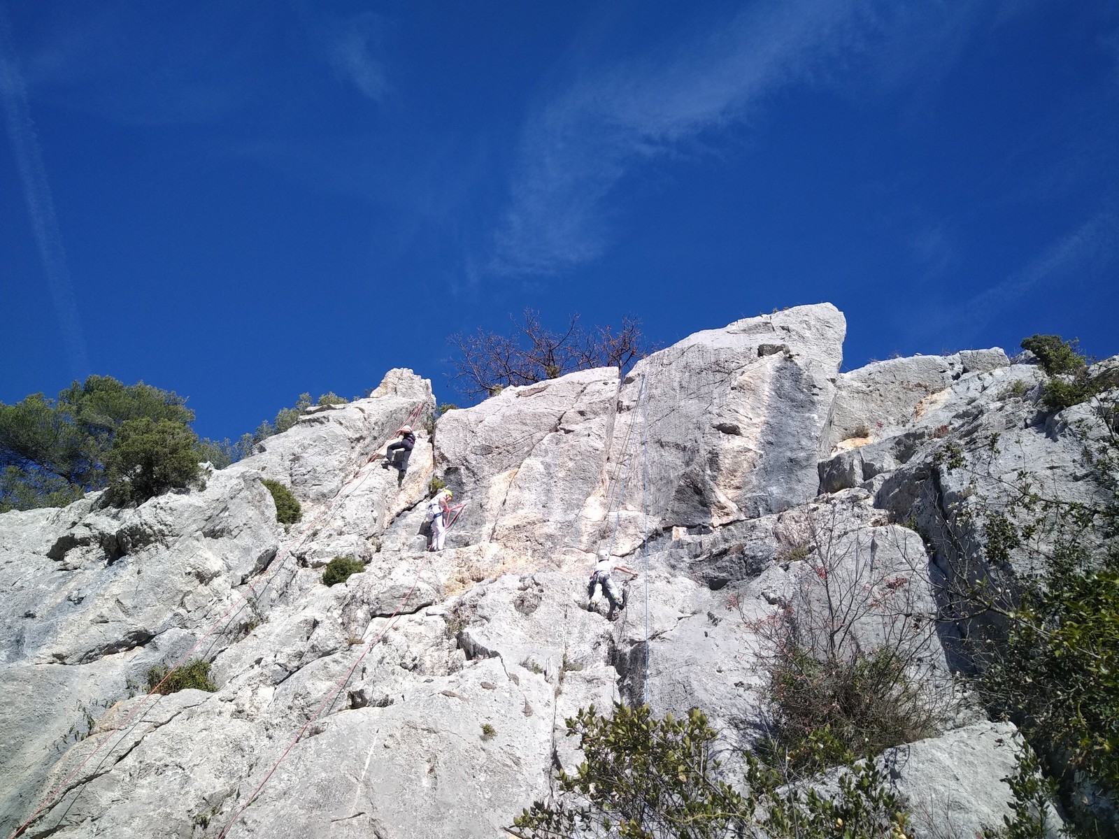 Ce week-end, comme l’an dernier à la même époque, nous sommes partis avec une quinzaine d’adultes du club dans les Bouches du Rhône, direction Cassis et les calanques afin de grimper quelques grandes voies à En Vau.