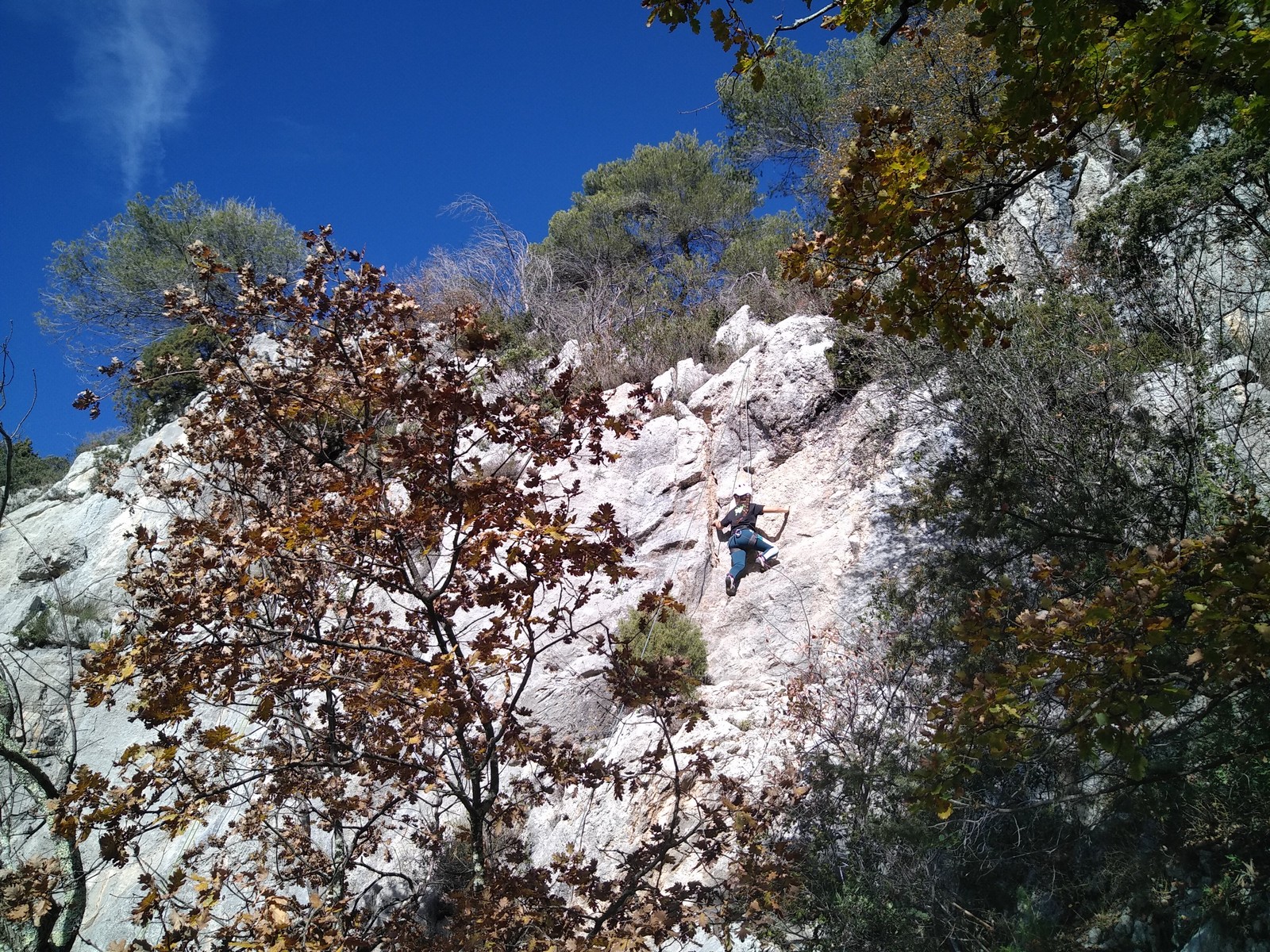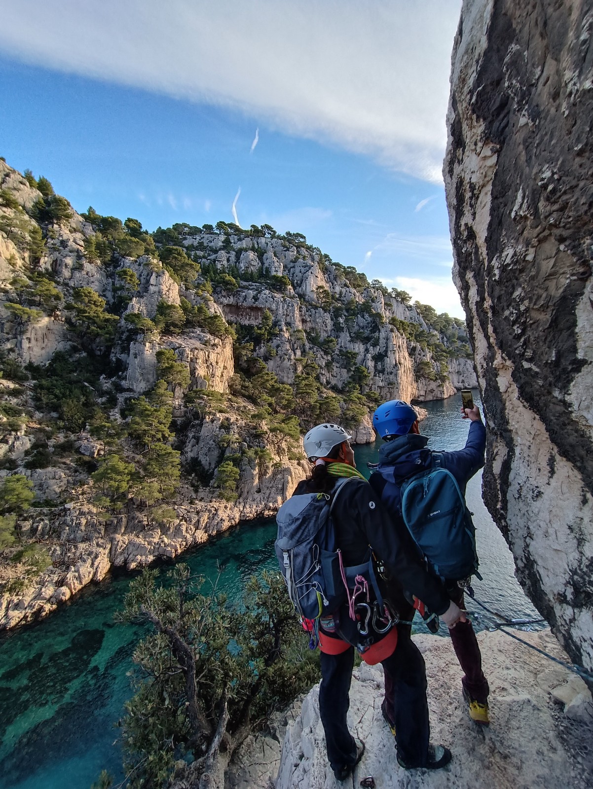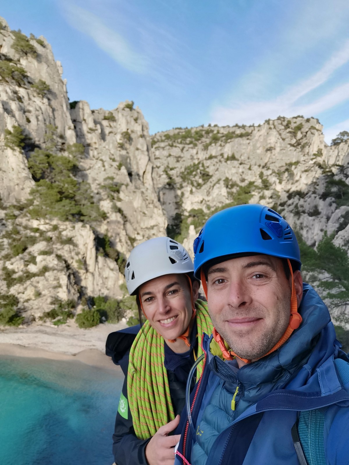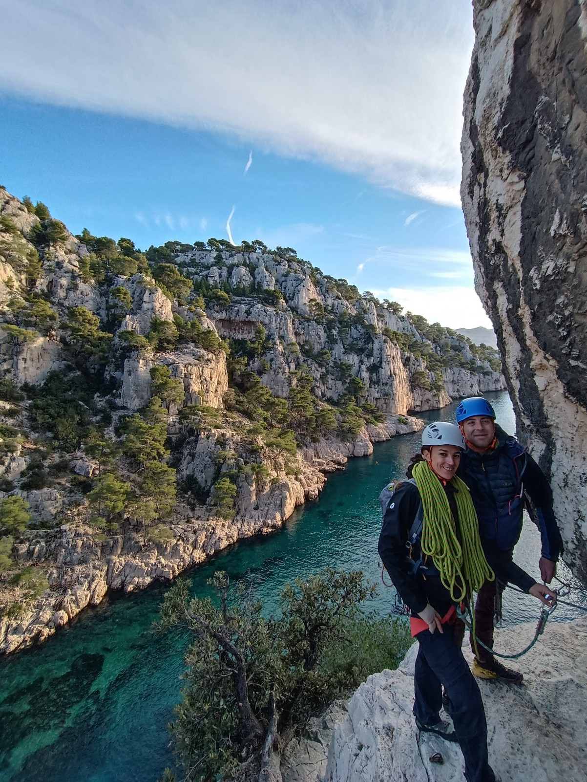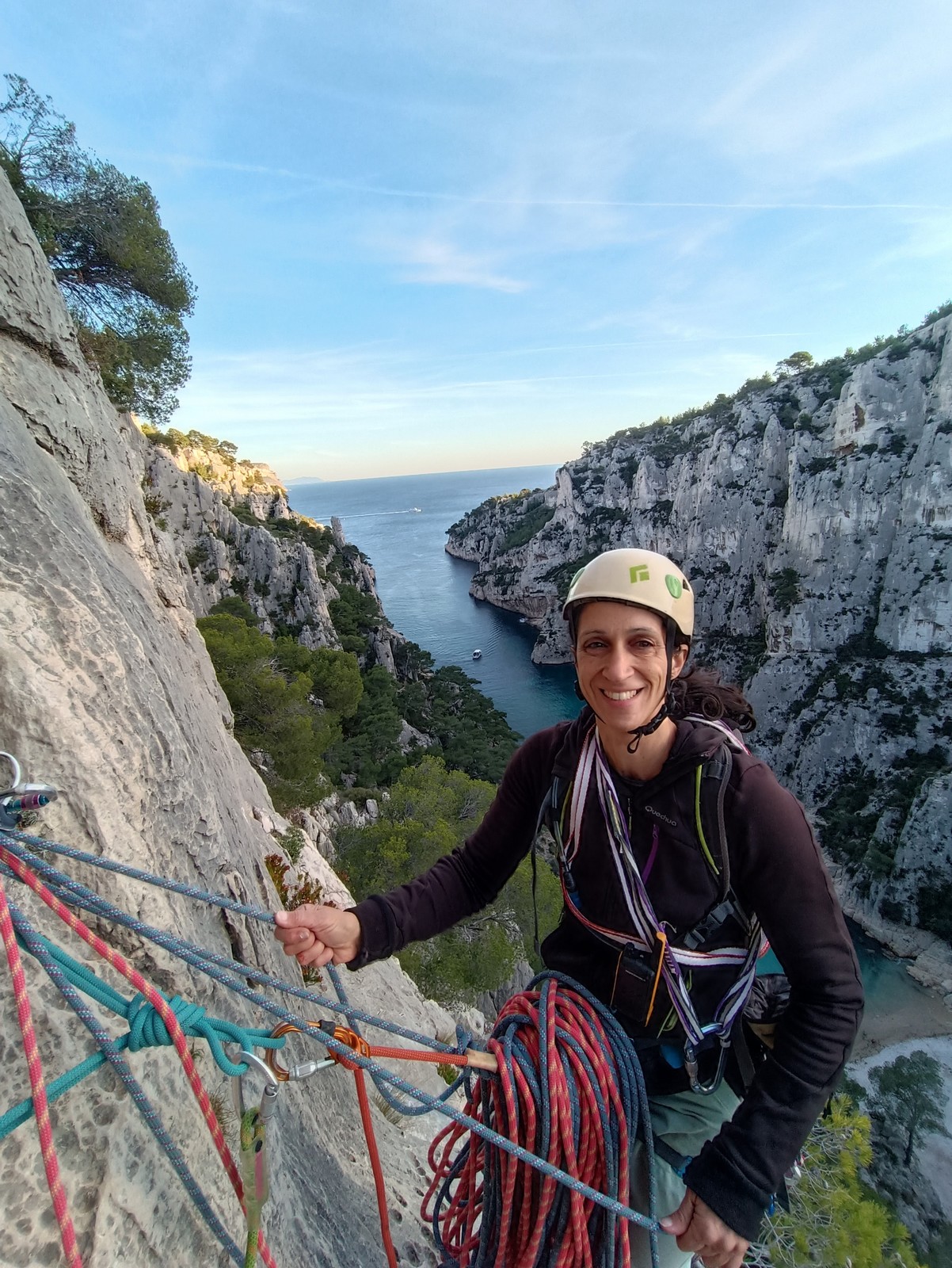 Ce week-end, comme l’an dernier à la même époque, nous sommes partis avec une quinzaine d’adultes du club dans les Bouches du Rhône, direction Cassis et les calanques afin de grimper quelques grandes voies à En Vau.