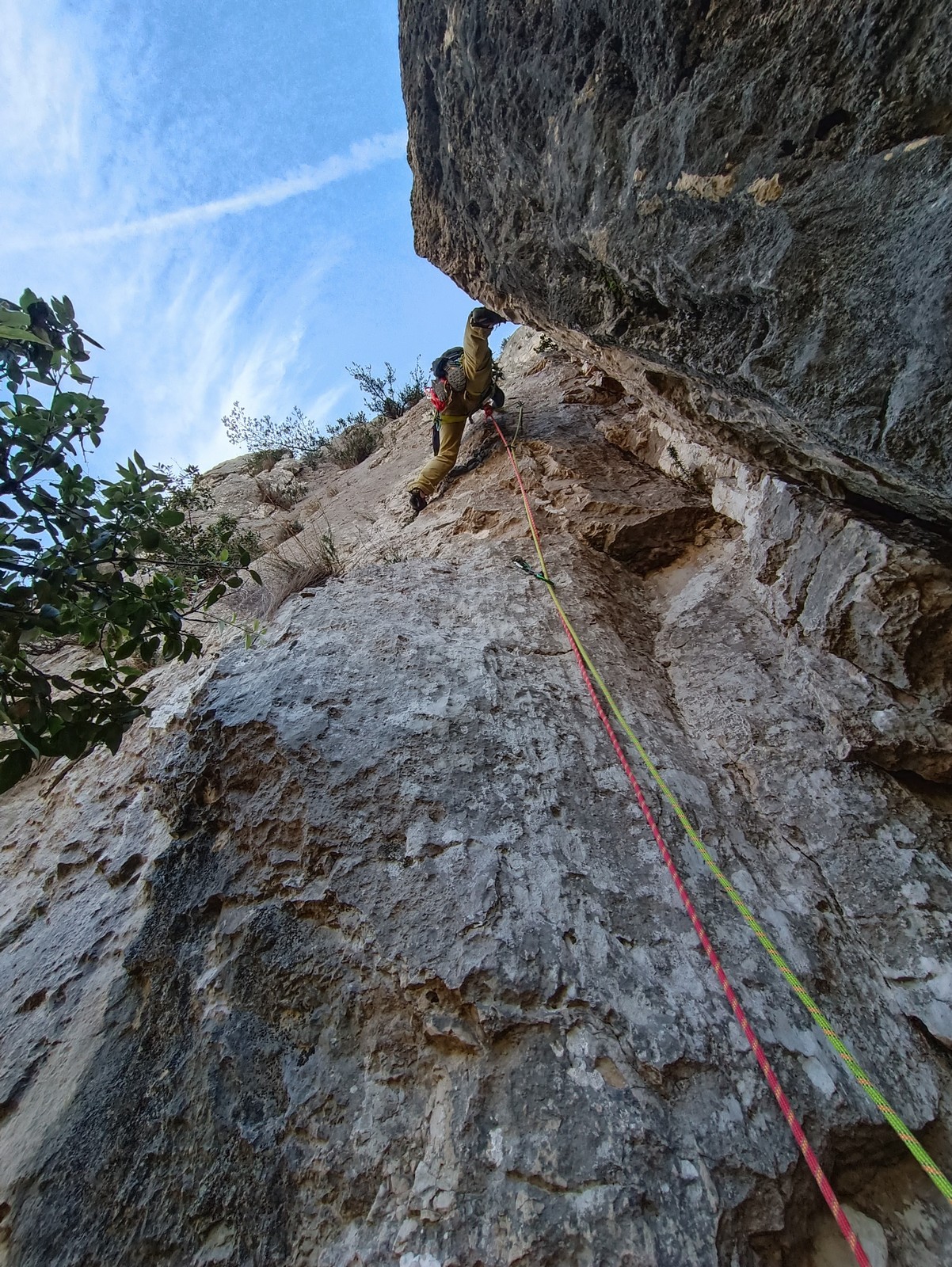 – JP, Xav et Julien s’engagent rapidement dans « du tracas jusqu’au cou« , une belle voie assez longue de niveau 6a max.