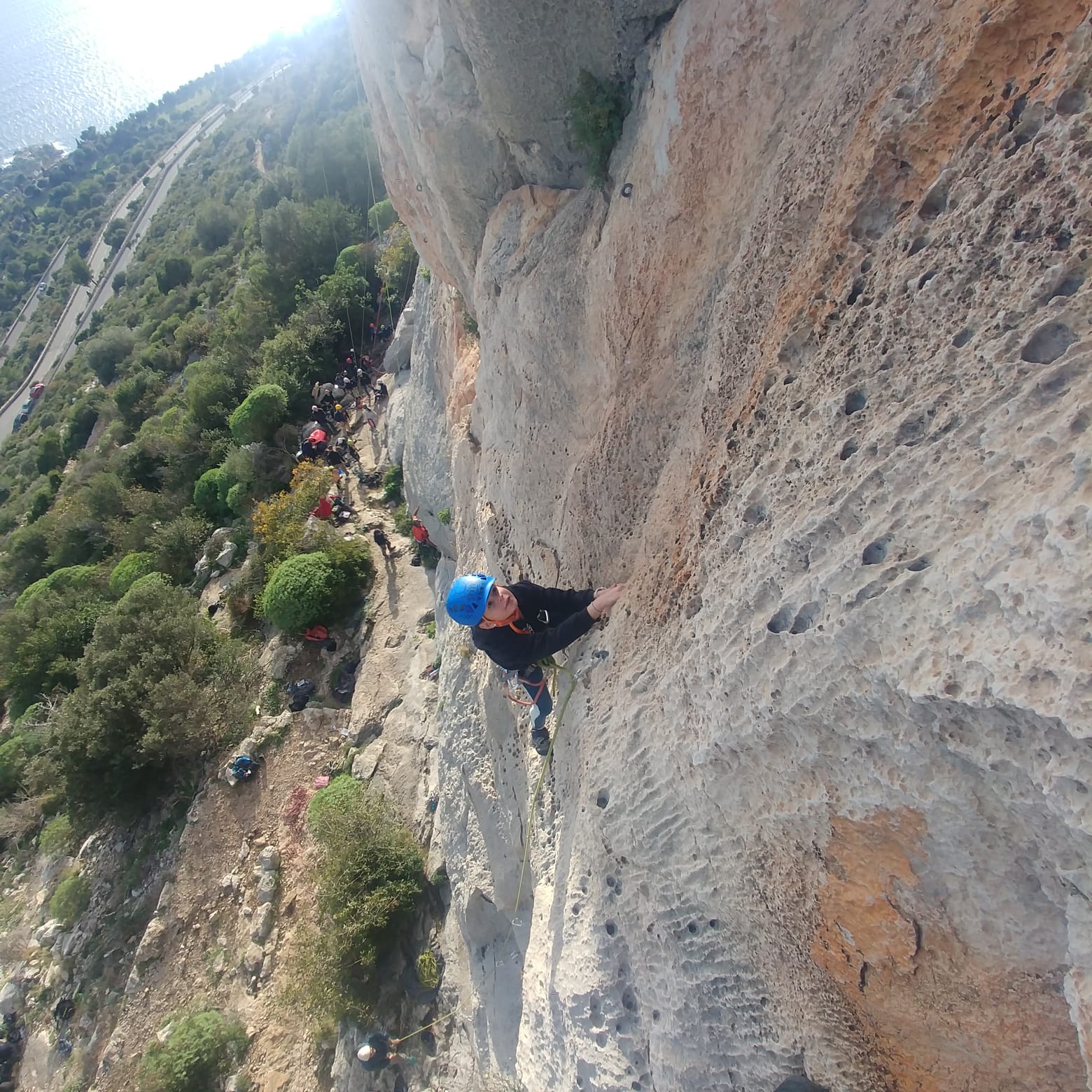 Dimanche dernier, c’est avec un groupe restreint que nous sommes allés sur la sympatique falaise de la grotte du rat à Levens, secteur idéal lorsque les températures sont basses. Petit groupe, la faute aux blessures des uns, au regain des virus hivernaux des autres et aussi parce qu’il est toujours plus difficile de mobiliser les troupes en hiver.