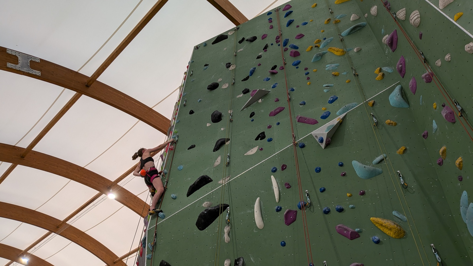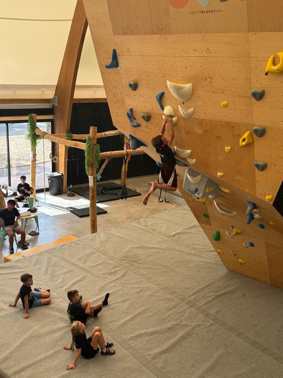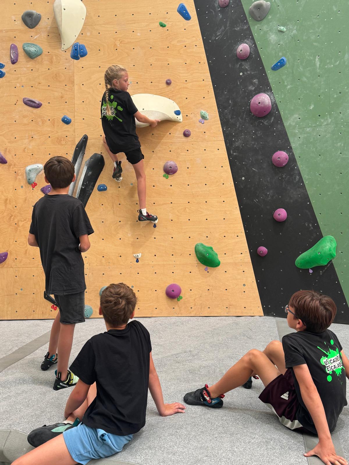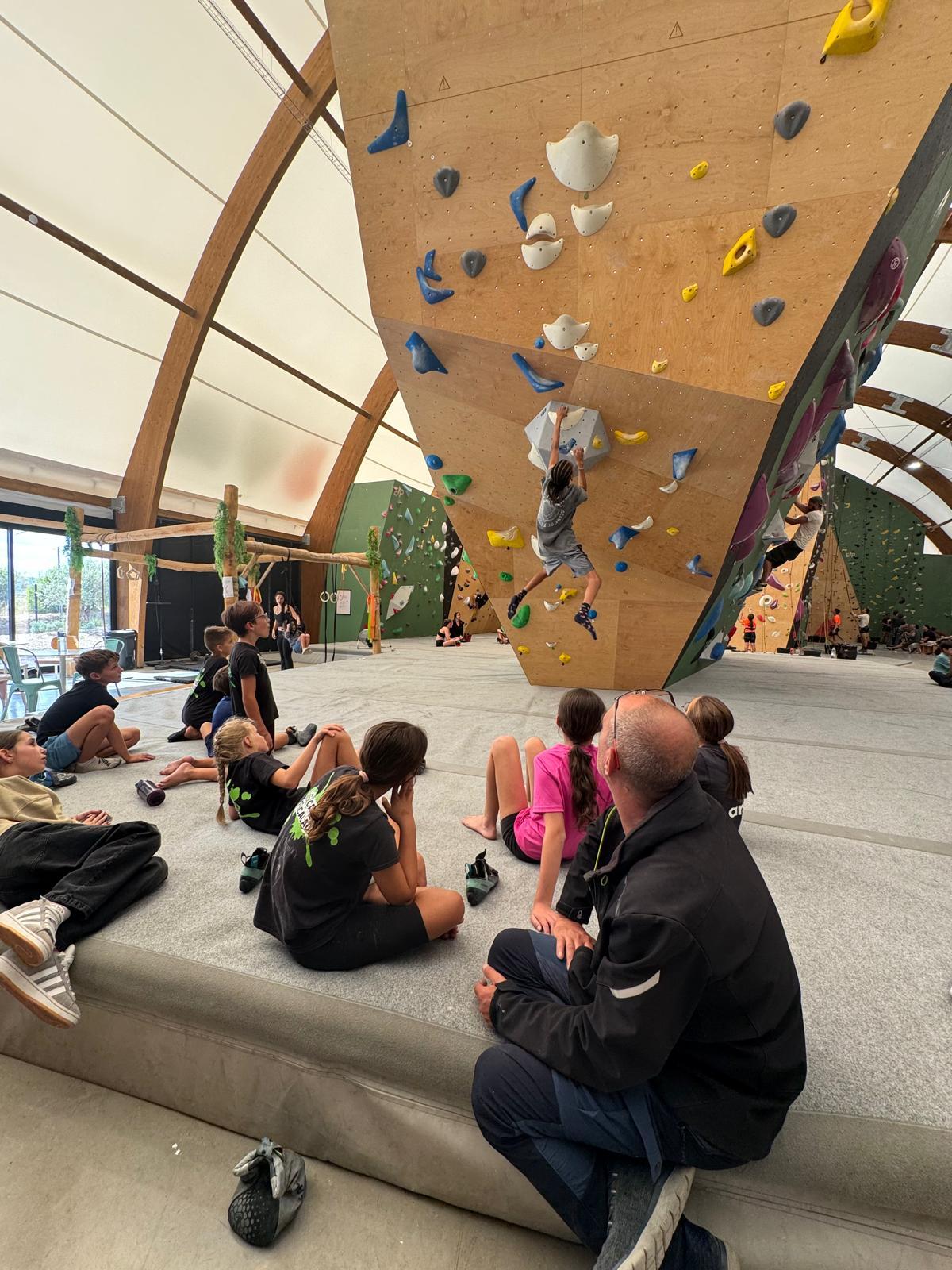 Chez les grands, Mathéo est quelque part dans le secteur avec des amis à lui. Je le croiserai de temps en temps au fil de la journée avec Sandro. Pareil pour Mathis. Emma et Léane grimpent ensemble de leur côté, et je croise également Lya avec ses parents. Boris, nous rejoint peu après, je crois que nous sommes au complet !
