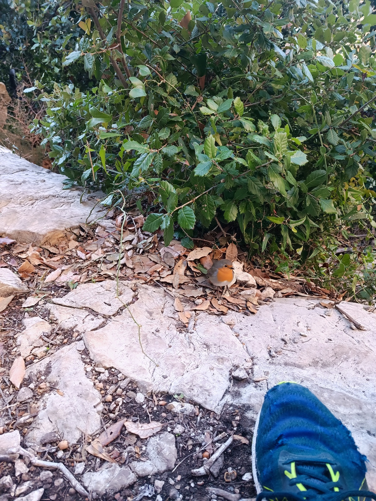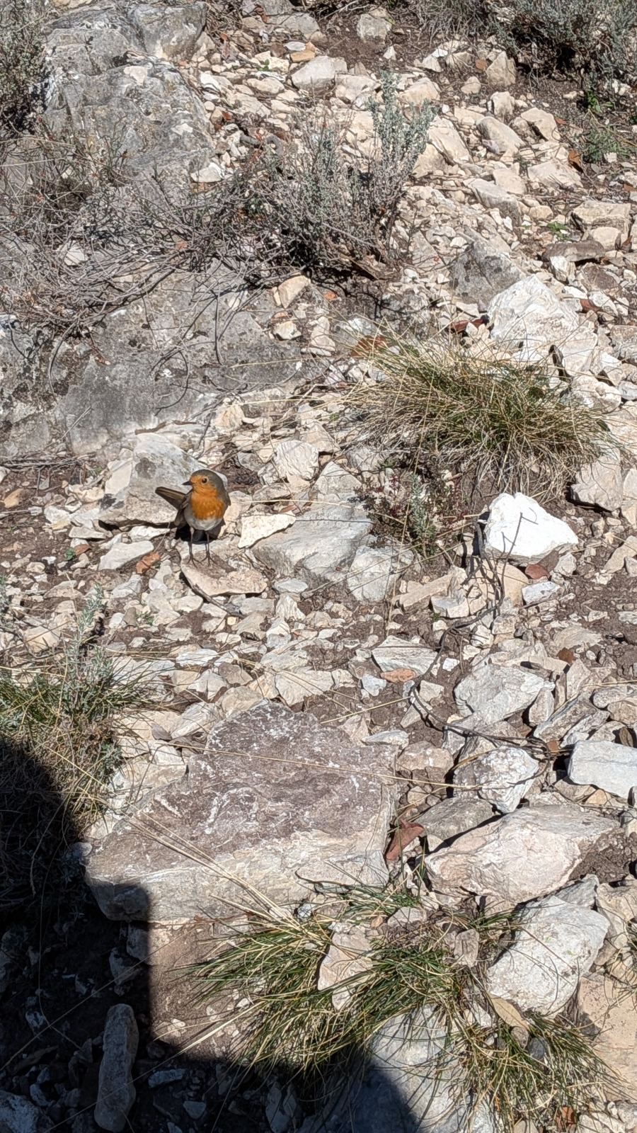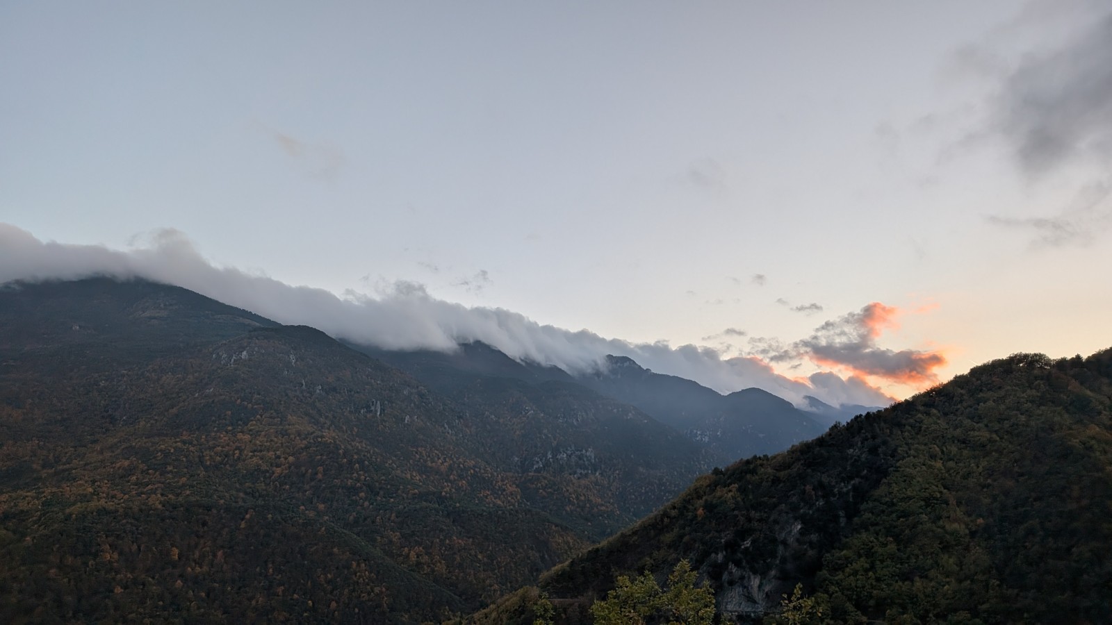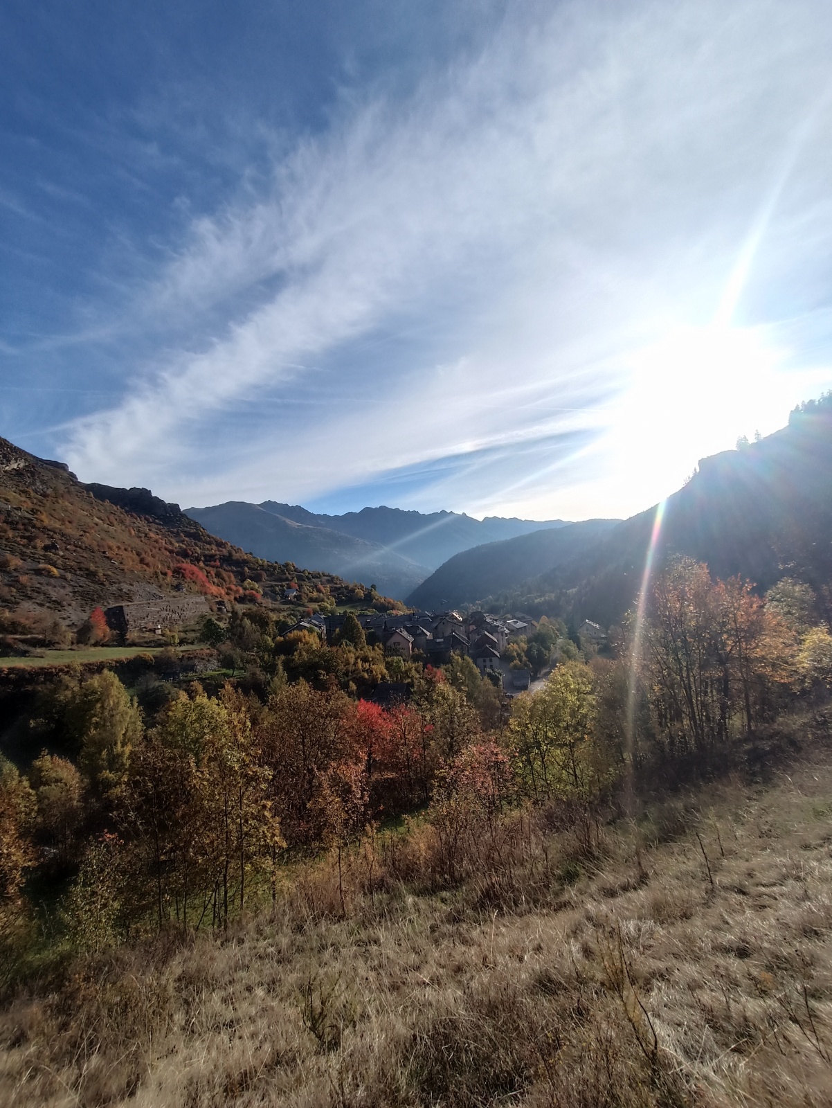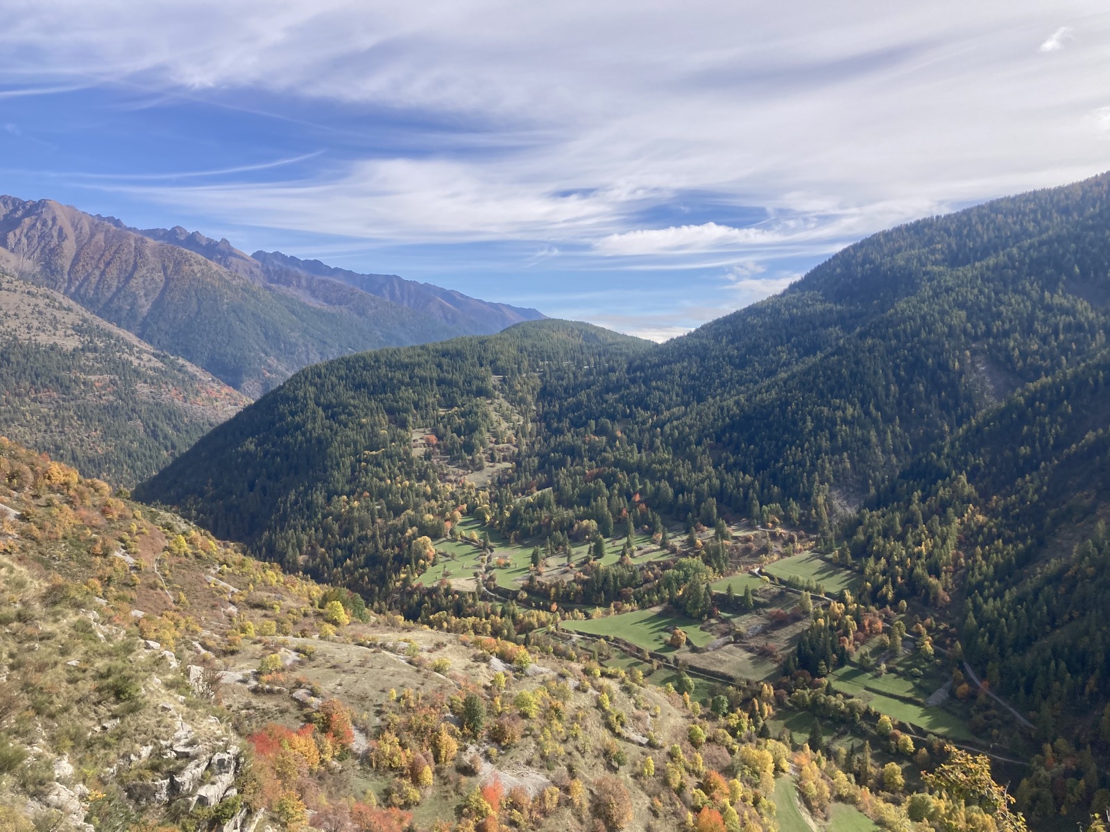 Derrière nous, Jean-Luc a pris la tête depuis le relais peu confortable du 6a+ et choisit de faire le 4c et le 5c en une fois, ce qui l’oblige à faire le dernier relais juste sous le sommet, n’ayant pas assez de corde pour atteindre le fameux chêne ! Finalement, il est 16h15 lorsque le dernier grimpeur atteint le sommet. Le soleil est encore là mais passe derrière les sommets, faisant du même coup chuter la température de quelques degrés. Matos rangé, on attaque la marche retour qui commence par grimper raide pour retrouver le magnifique chemin de rando qui nous ramène au village. On profite des couleurs de l’automne et les frotales n’auront été utiles que pour aller explorer la grotte obscure et observer ses 2 chauve-souris sur le chemin du retour.