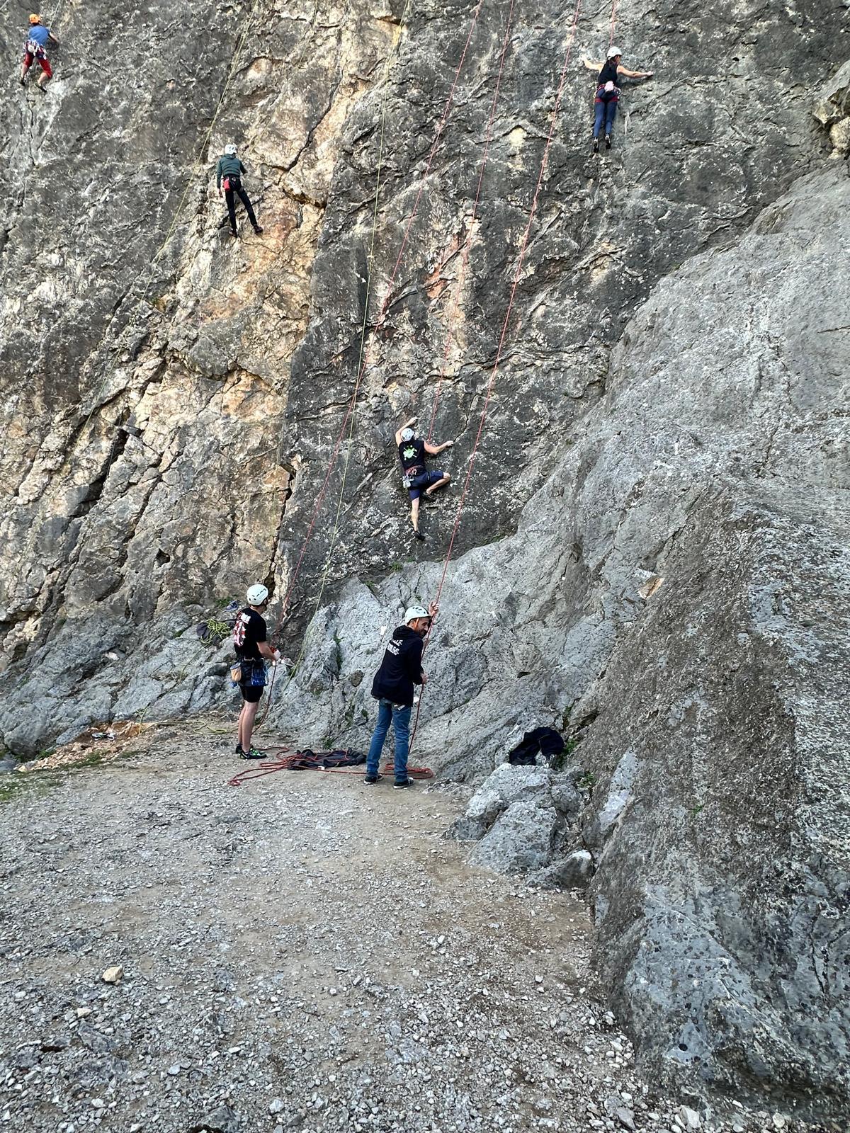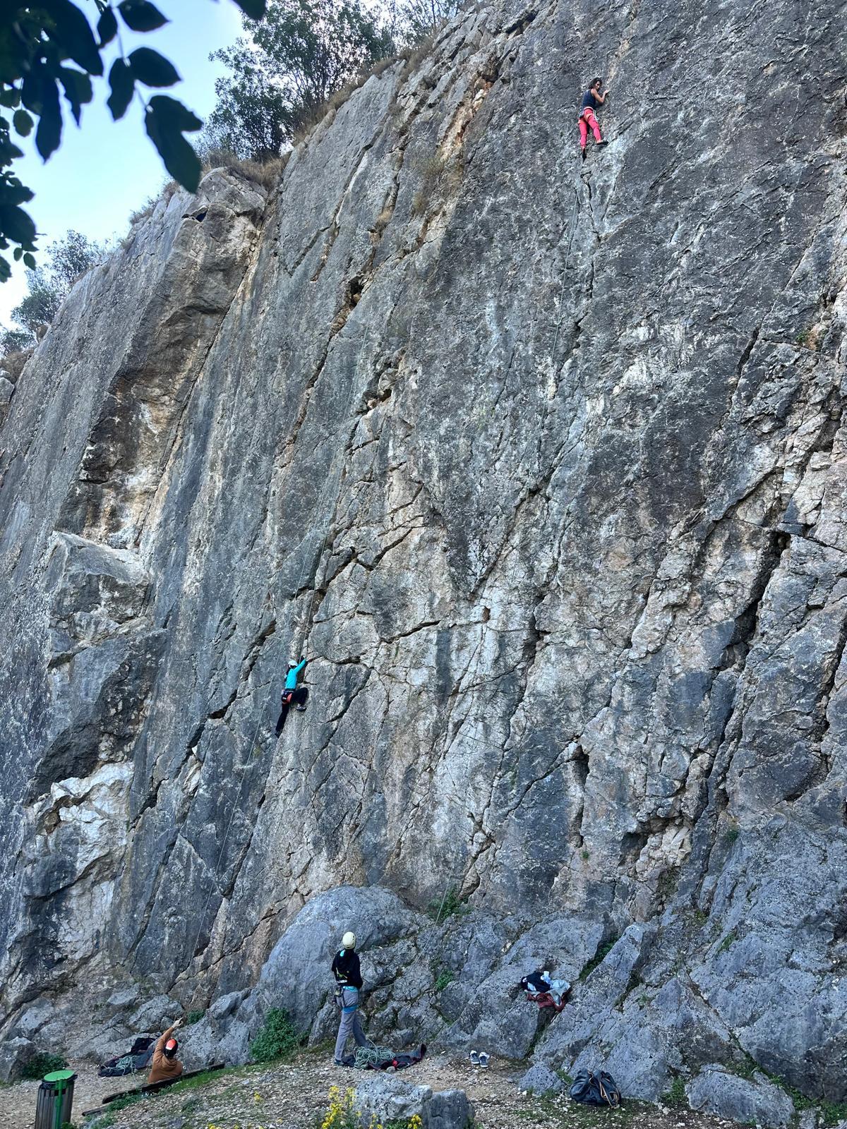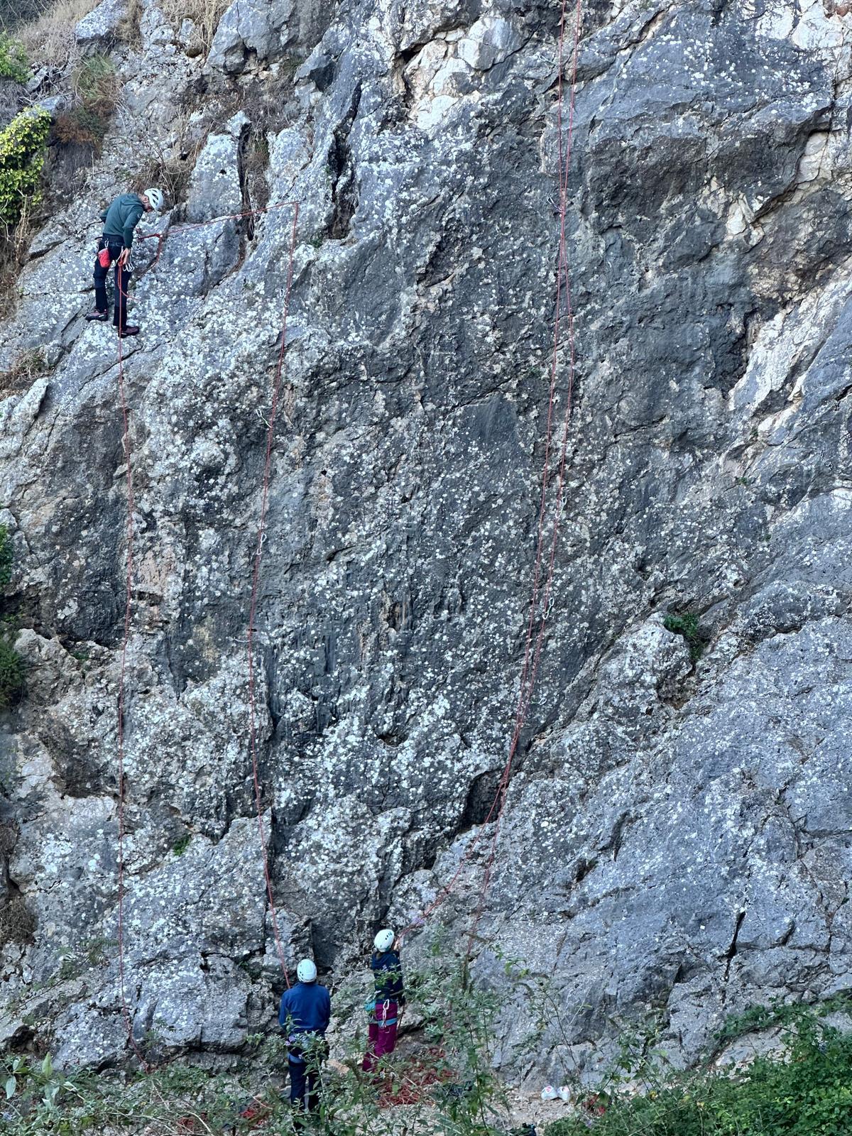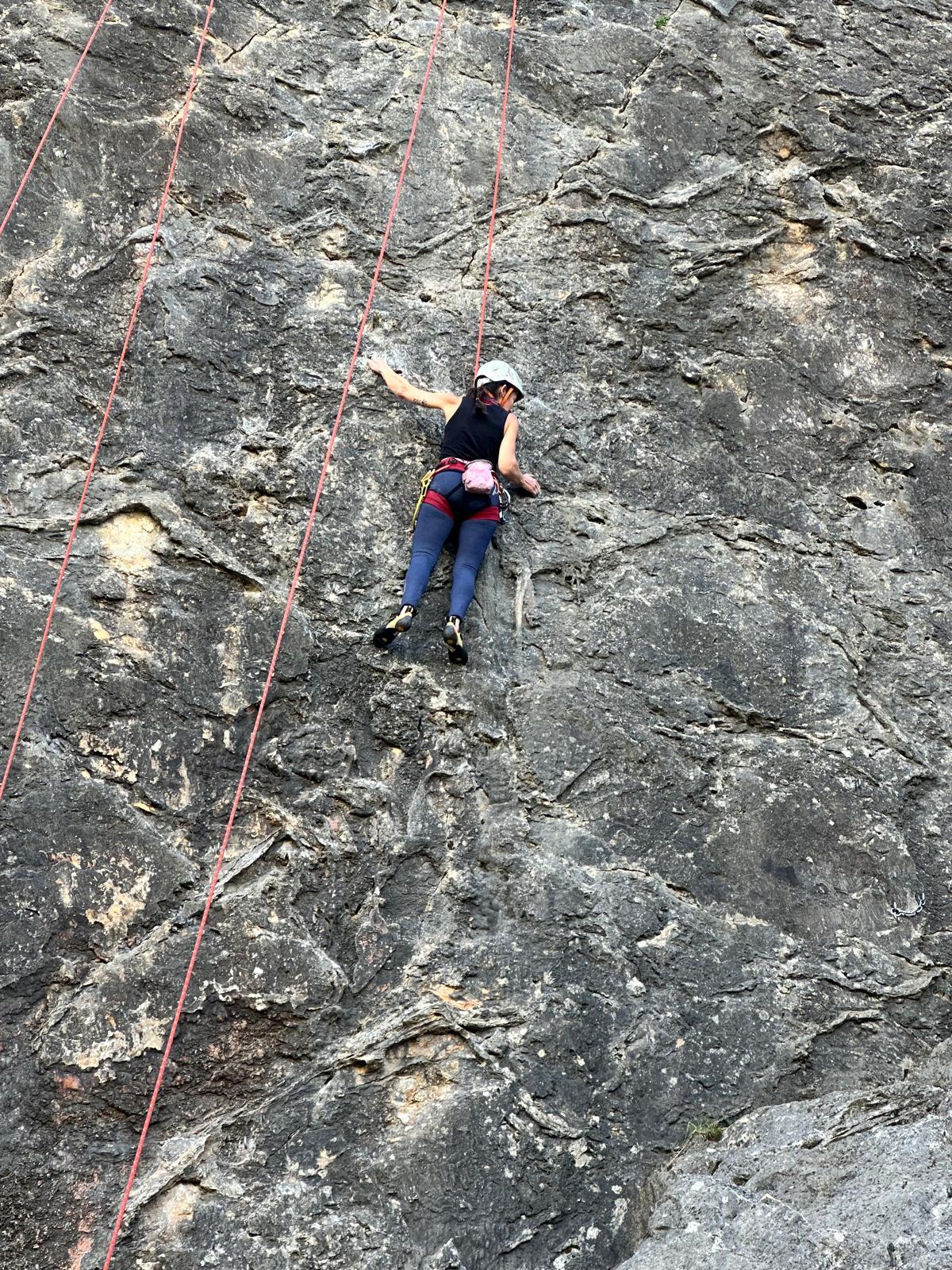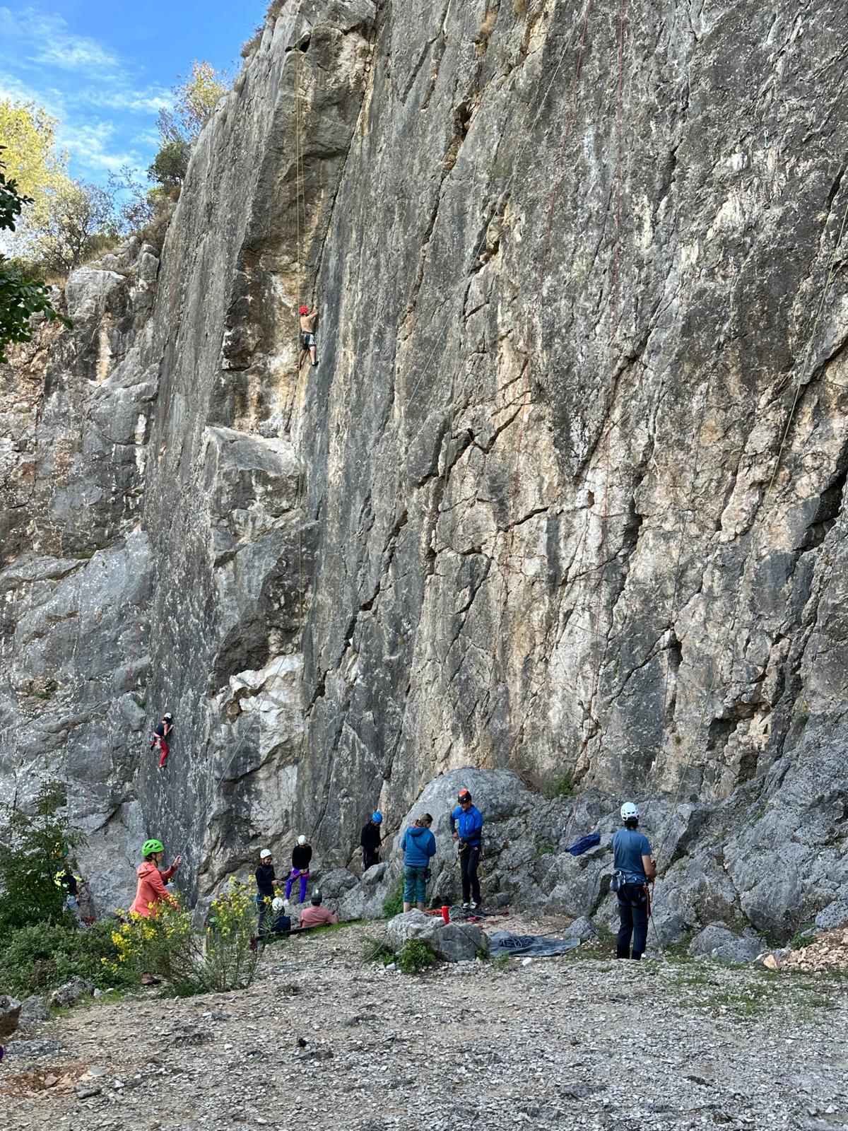 Les deux voies suivent des lignes parallèles après une première longueur commune. Elles proposent environ 200m d’escalade en 8 ou 9 longueurs en 6a+ max mais soutenues dans le 5c/6a. Un beau morceau d’escalade pour les participants au cycle qui ont travaillé dur pour en arriver là !