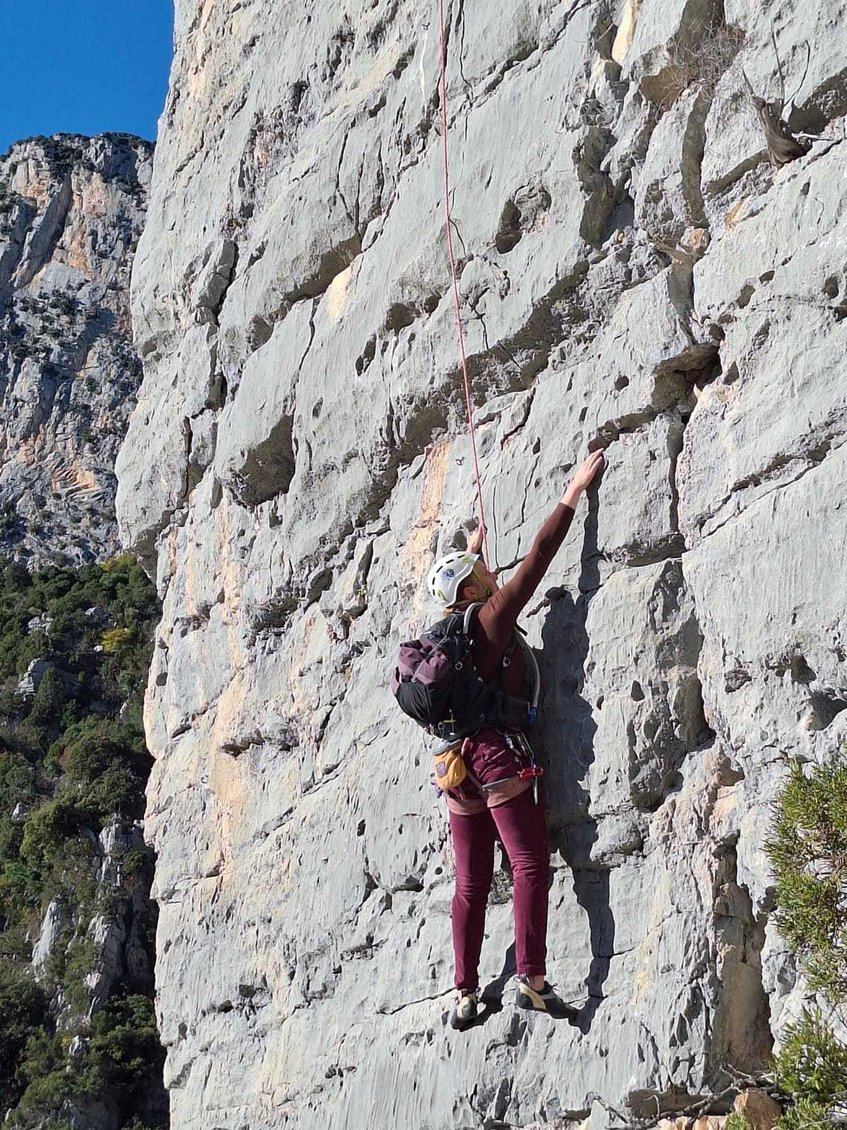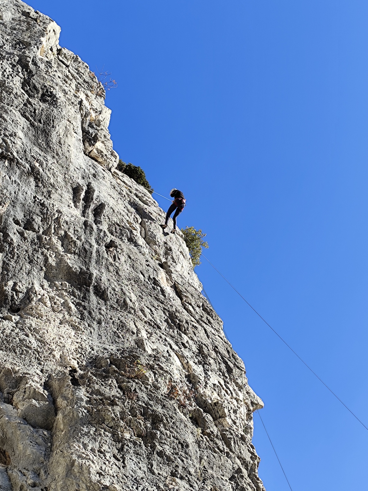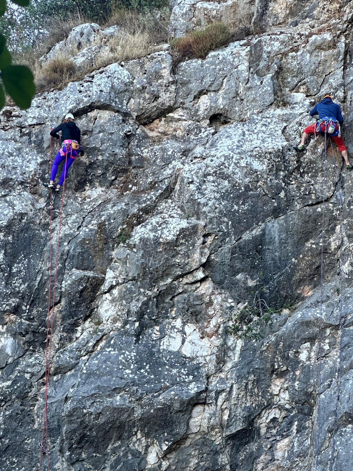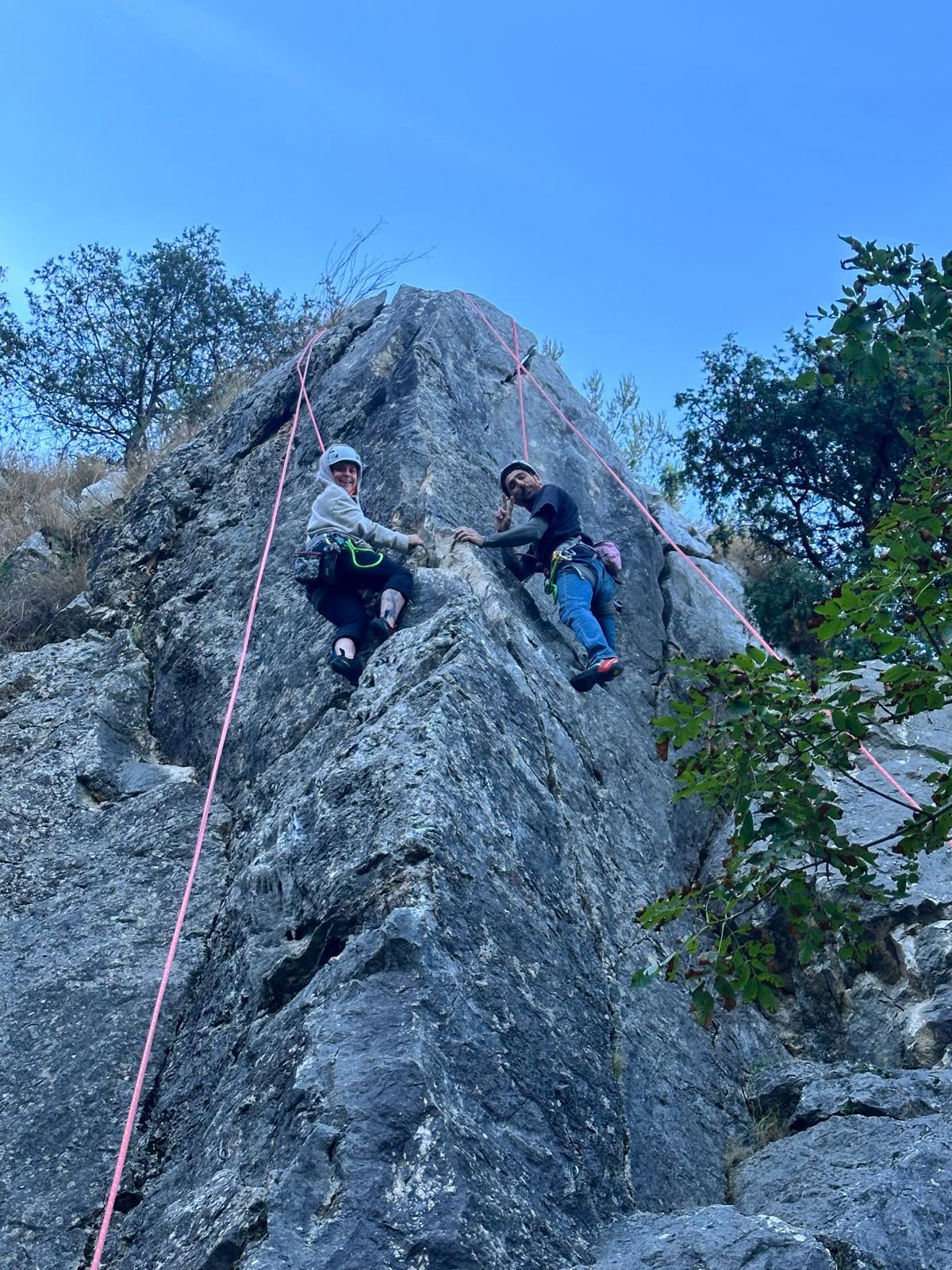 Les deux voies suivent des lignes parallèles après une première longueur commune. Elles proposent environ 200m d’escalade en 8 ou 9 longueurs en 6a+ max mais soutenues dans le 5c/6a. Un beau morceau d’escalade pour les participants au cycle qui ont travaillé dur pour en arriver là !
