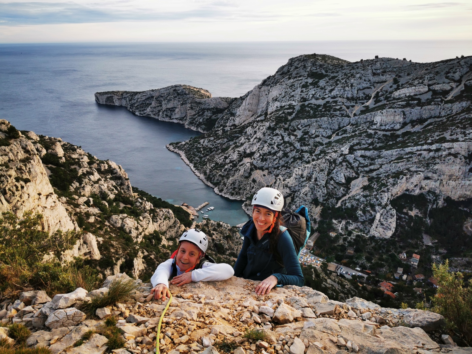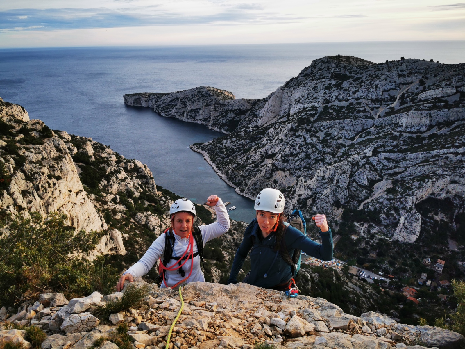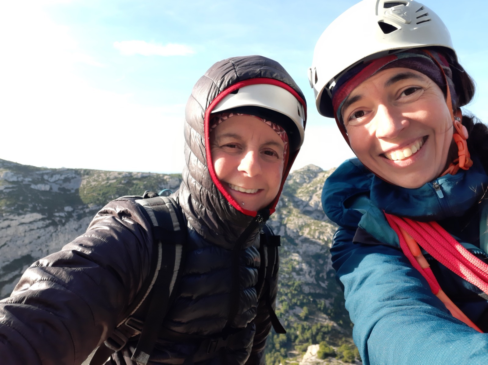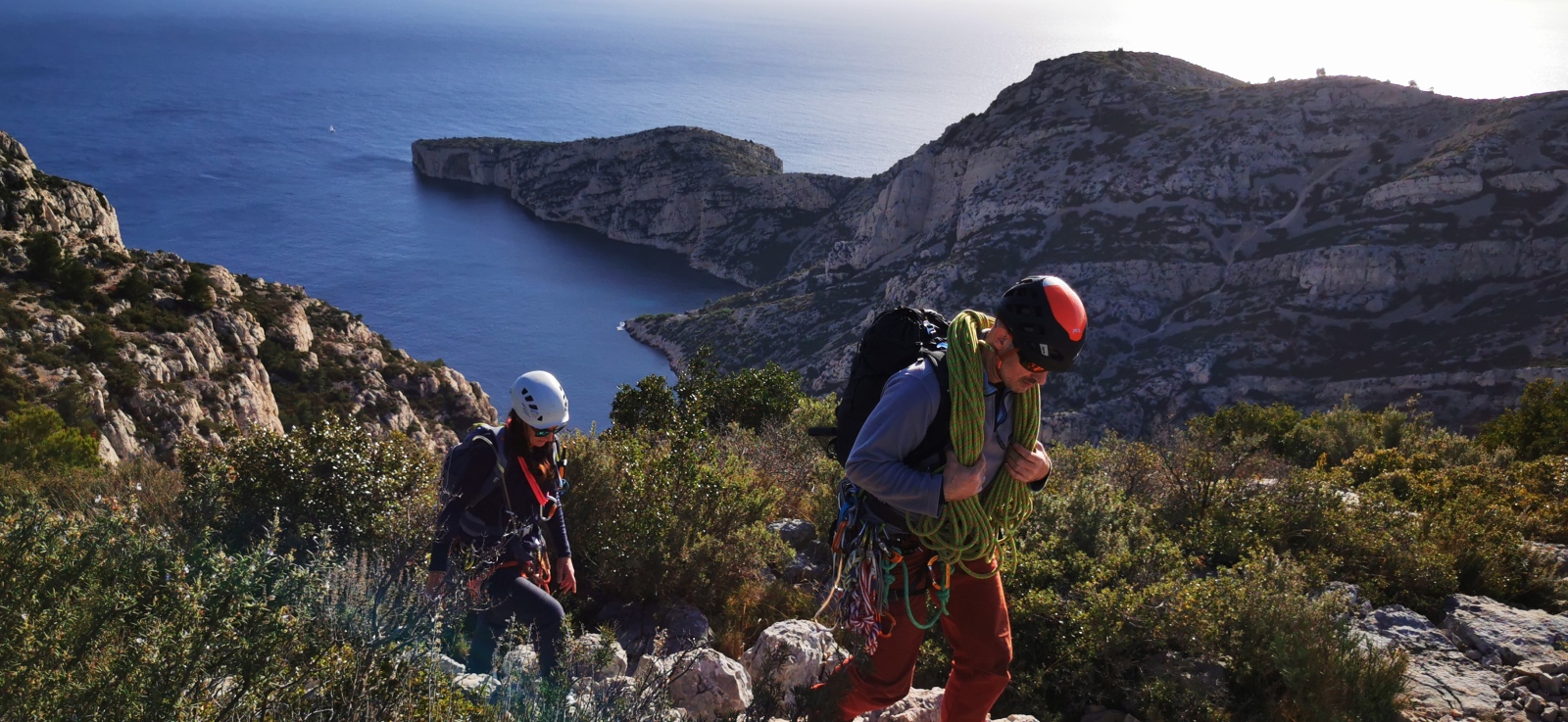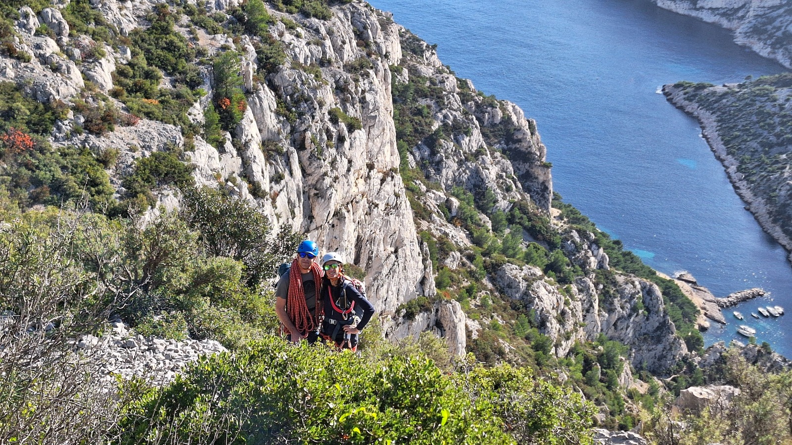 Les deux voies suivent des lignes parallèles après une première longueur commune. Elles proposent environ 200m d’escalade en 8 ou 9 longueurs en 6a+ max mais soutenues dans le 5c/6a. Un beau morceau d’escalade pour les participants au cycle qui ont travaillé dur pour en arriver là !