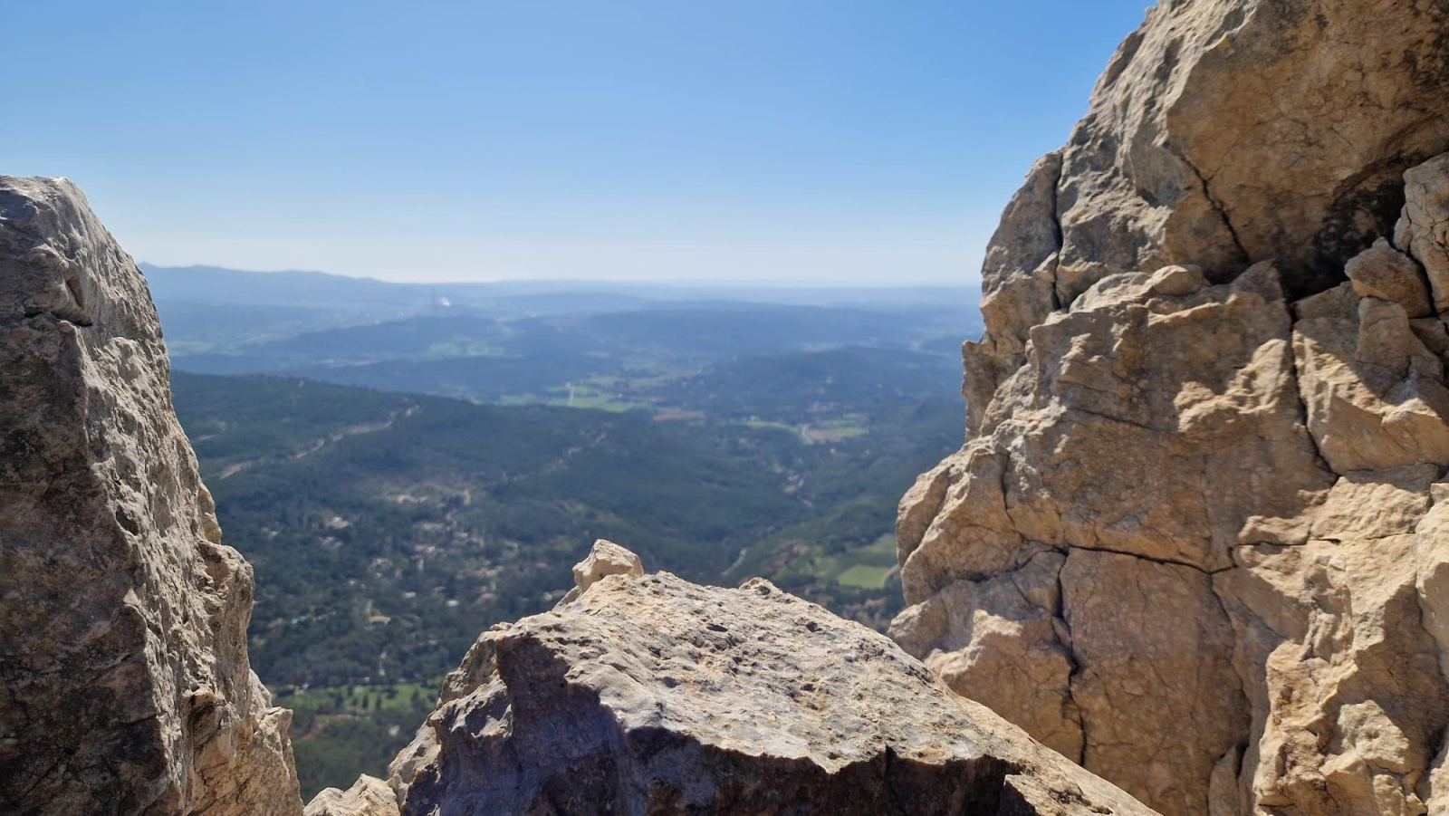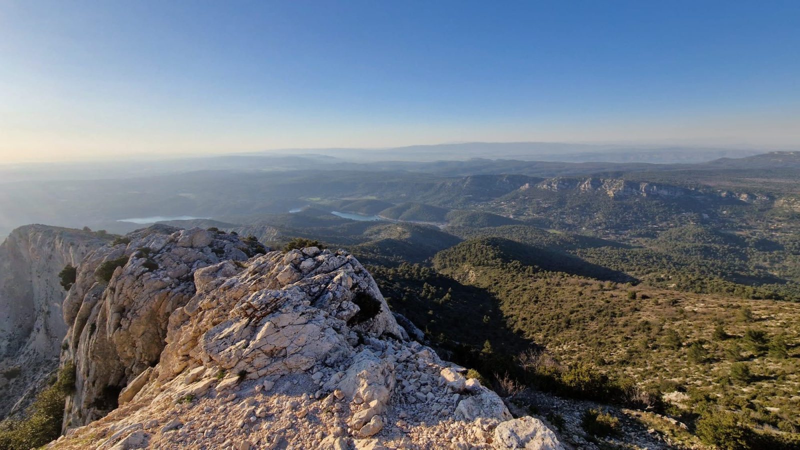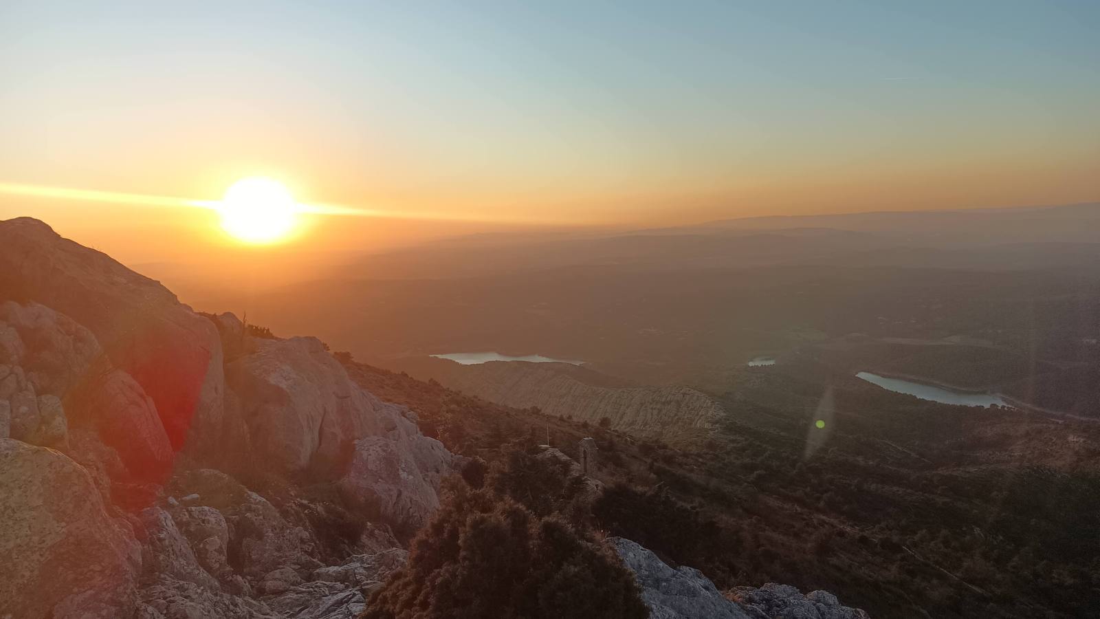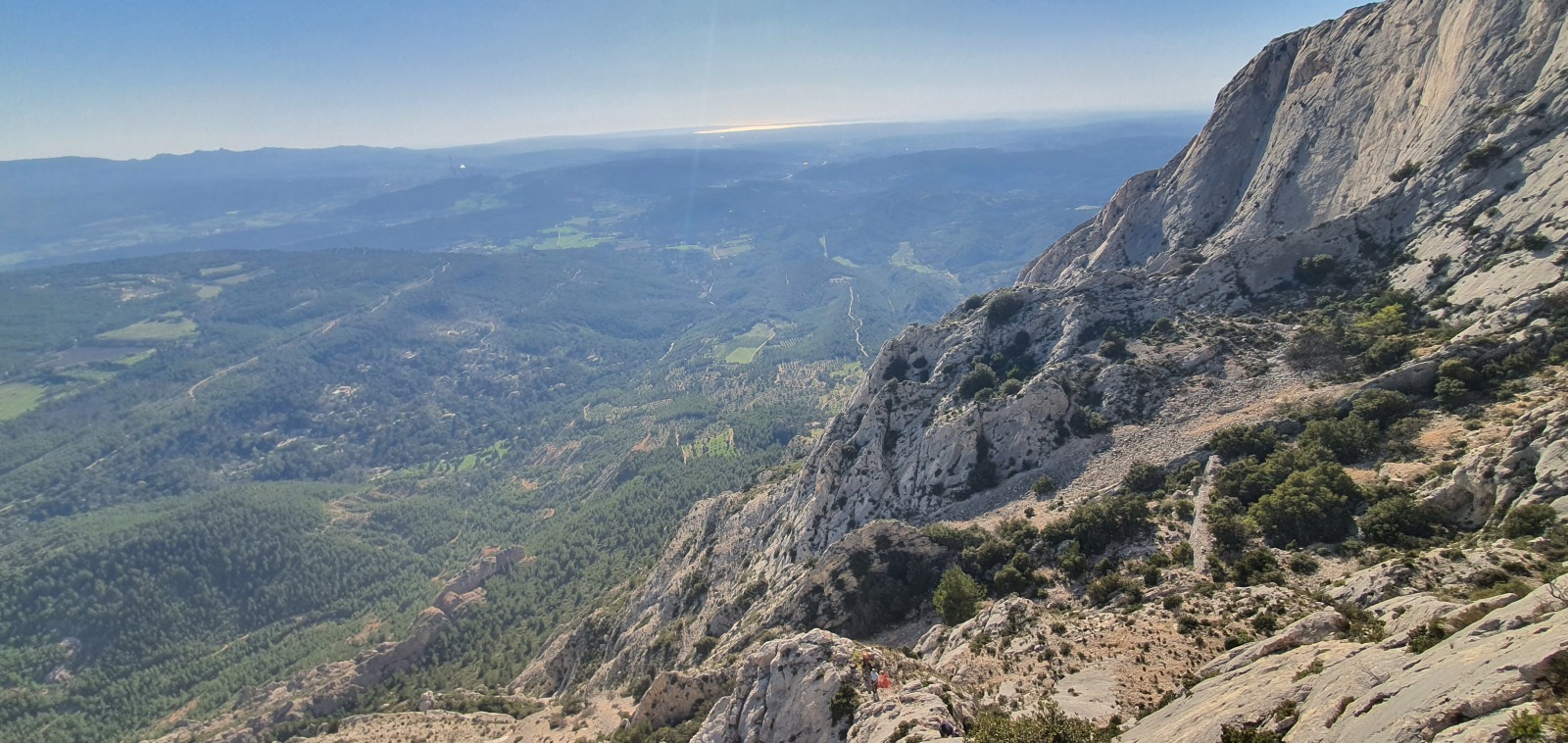 Les cordées parviennent progressivement au sommet. Michèle fait la dernière longueur en tête, Djé, Xav et Thibaud se rétablissent à la cime. Thomas a repris la tête et c’est dorénavant une formalité pour lui de grimper au dessus du point et de construire des relais et assurer Sabine et Yannick. Le couple Gouix et Julien arrivent également et Florian randonne le crux de la dernière longueur et permet à sa cordée de sortir également.