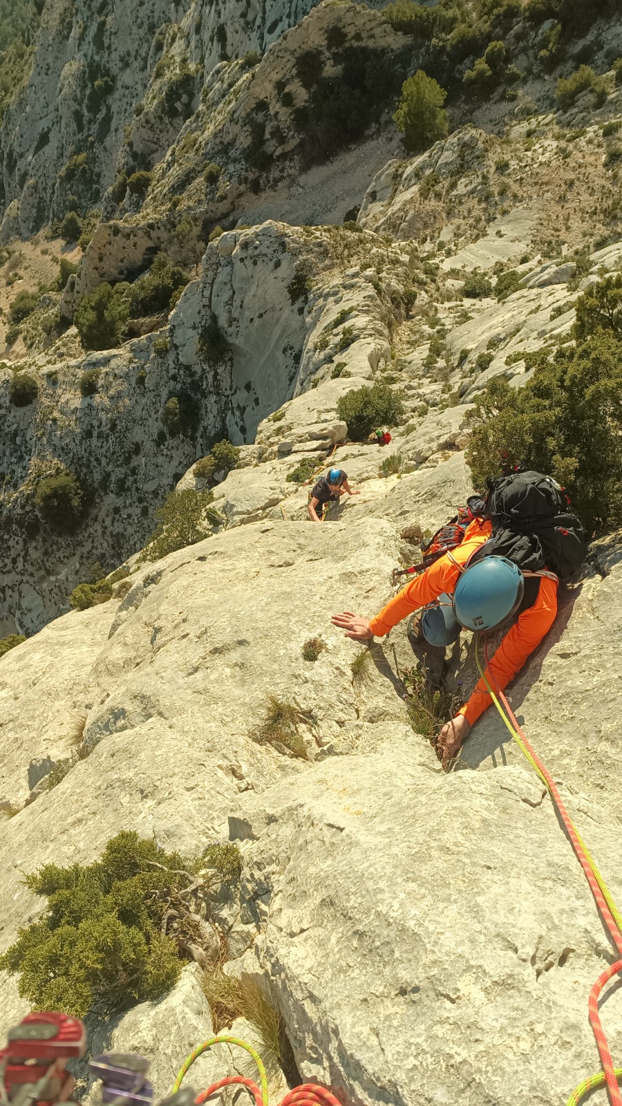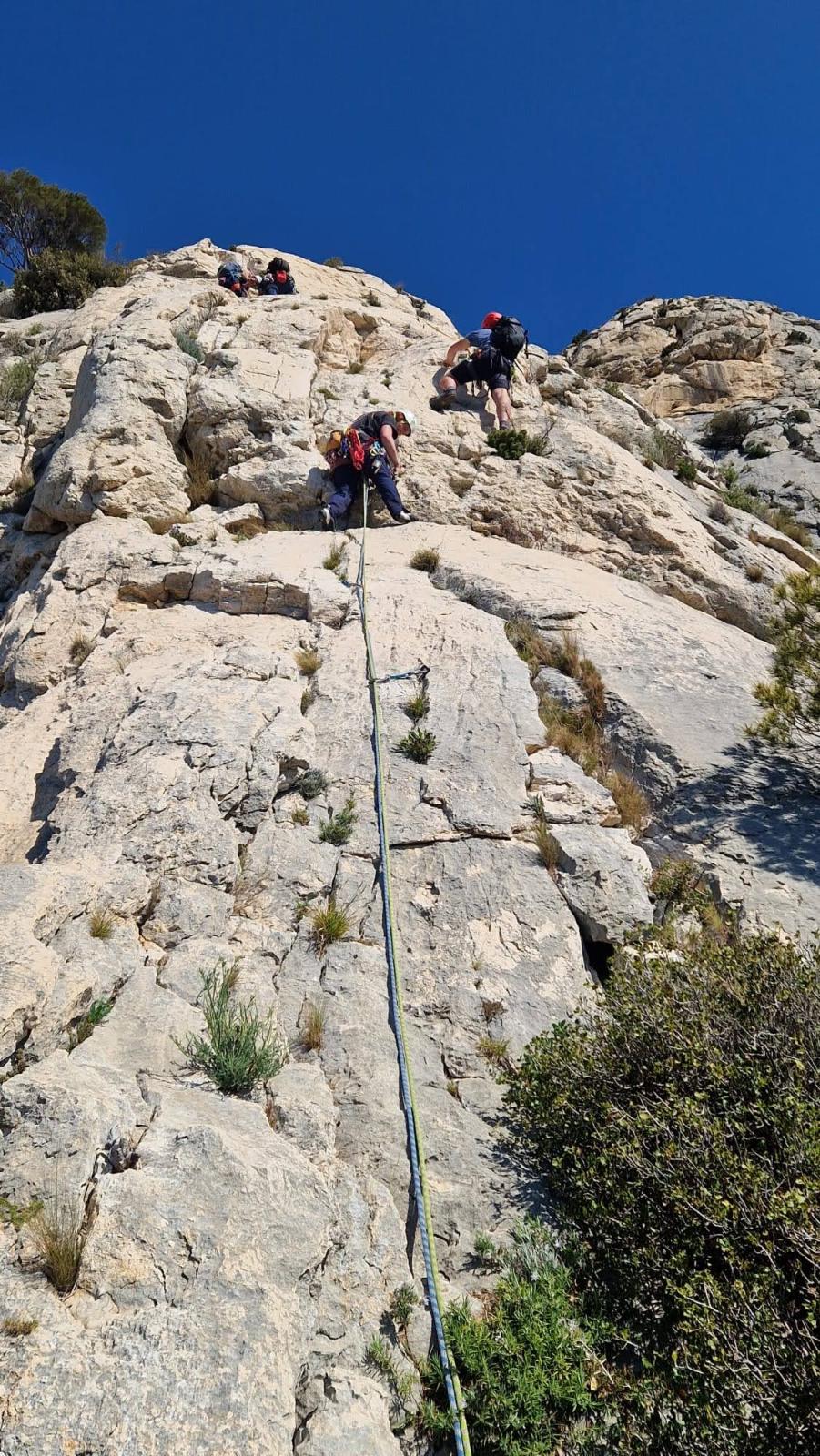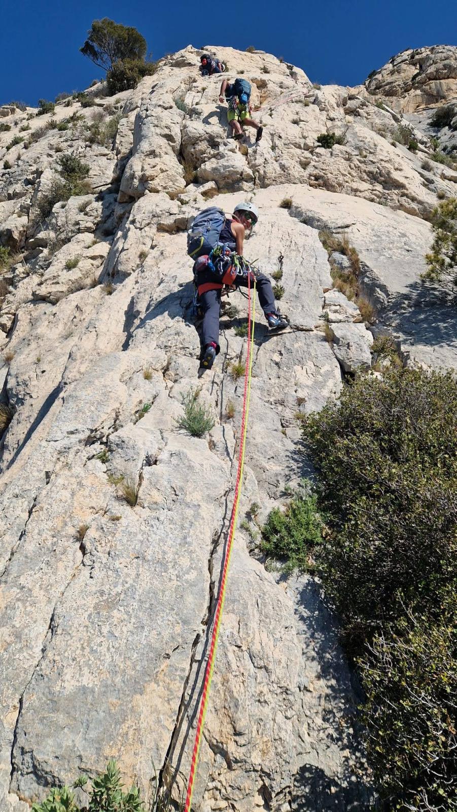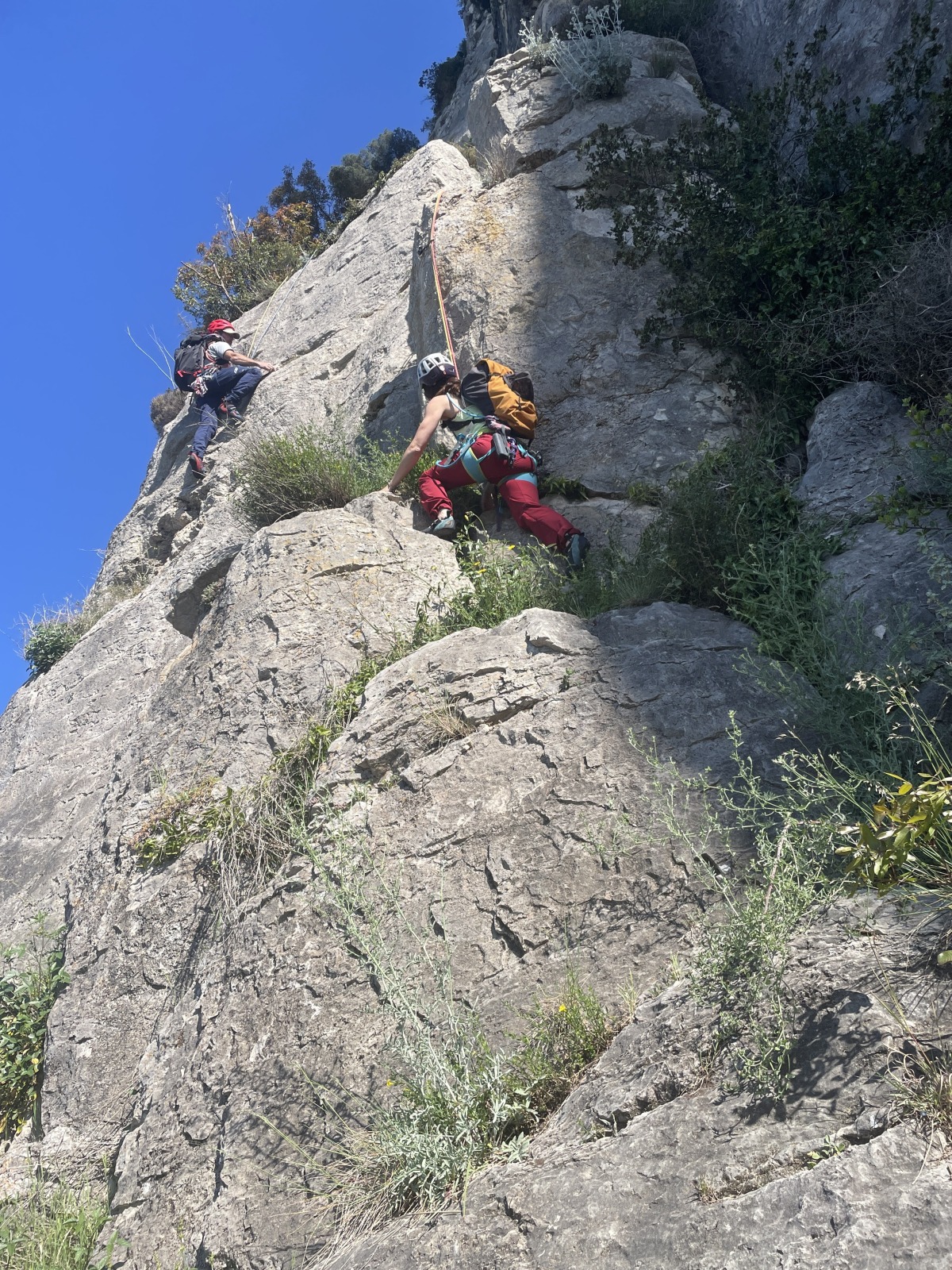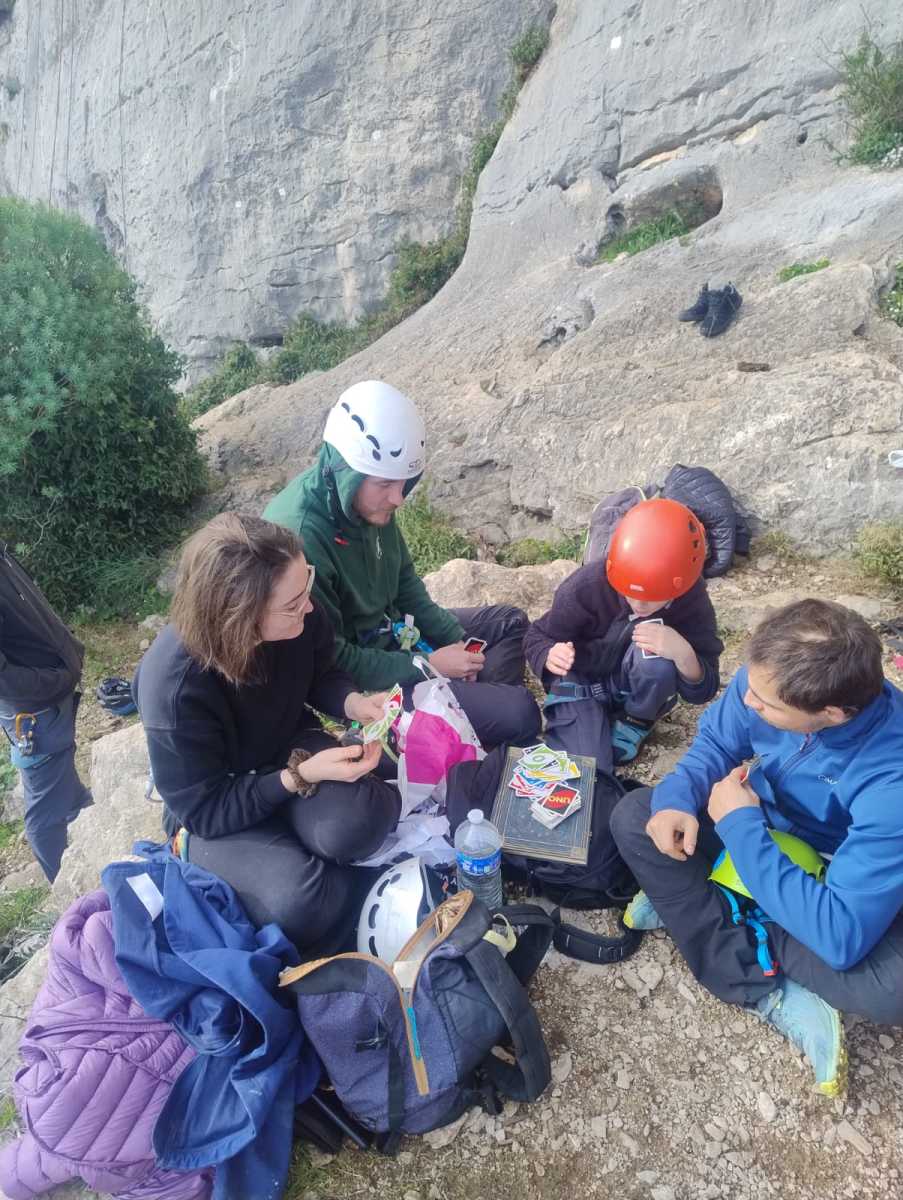 En tant qu’encadrant et responsable, une telle sortie, ça ne s’improvise pas à la dernière minute. Cela demande beaucoup de préparation et une vision à long terme. Depuis 3 ans le club organise, en plus de son légendaire stage de l’Ascension, un cycle grandes voies de 5 sorties dans l’année dont le but est de former des adhérent·es à l’autonomie en paroi. Une bonne partie de ces gens expérimentés, dans un pur élan de générosité, ont donc choisi d’offrir de leur temps et de leur savoir pour aider à guider ceux qui découvraient l’activité. Un grand merci donc à Djé, Jean-Luc, Philippe, Xav, JP, Brice, Cécile, Julien, Matthieu et Alexis pour avoir patiemment pris sous votre aile les camarades.