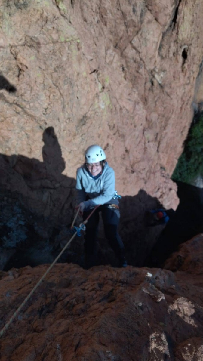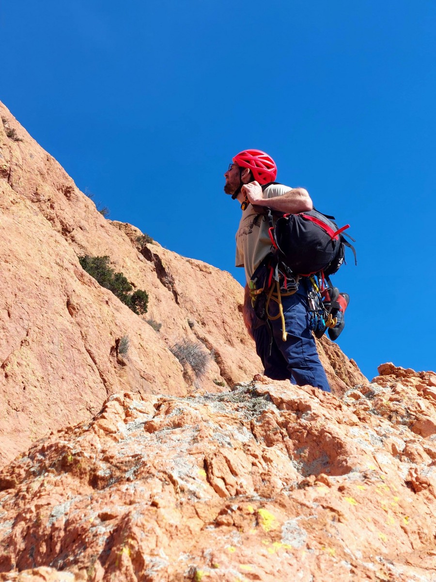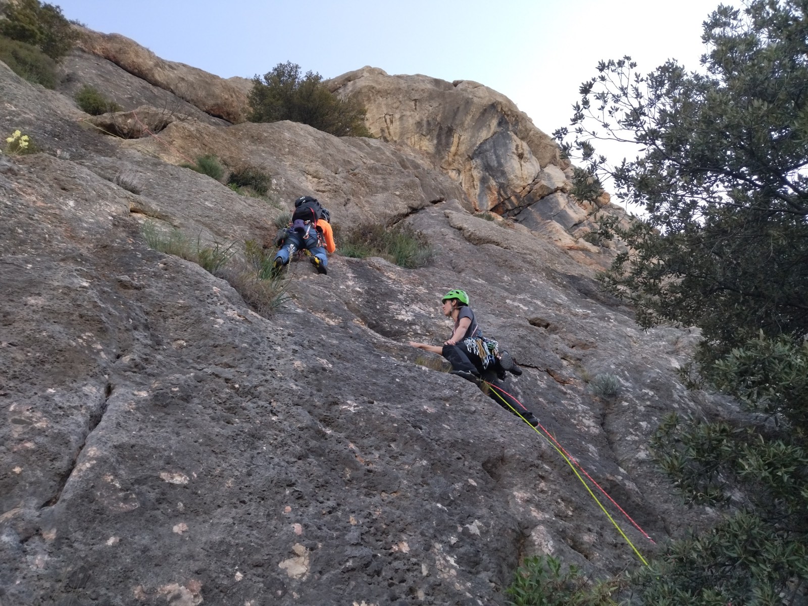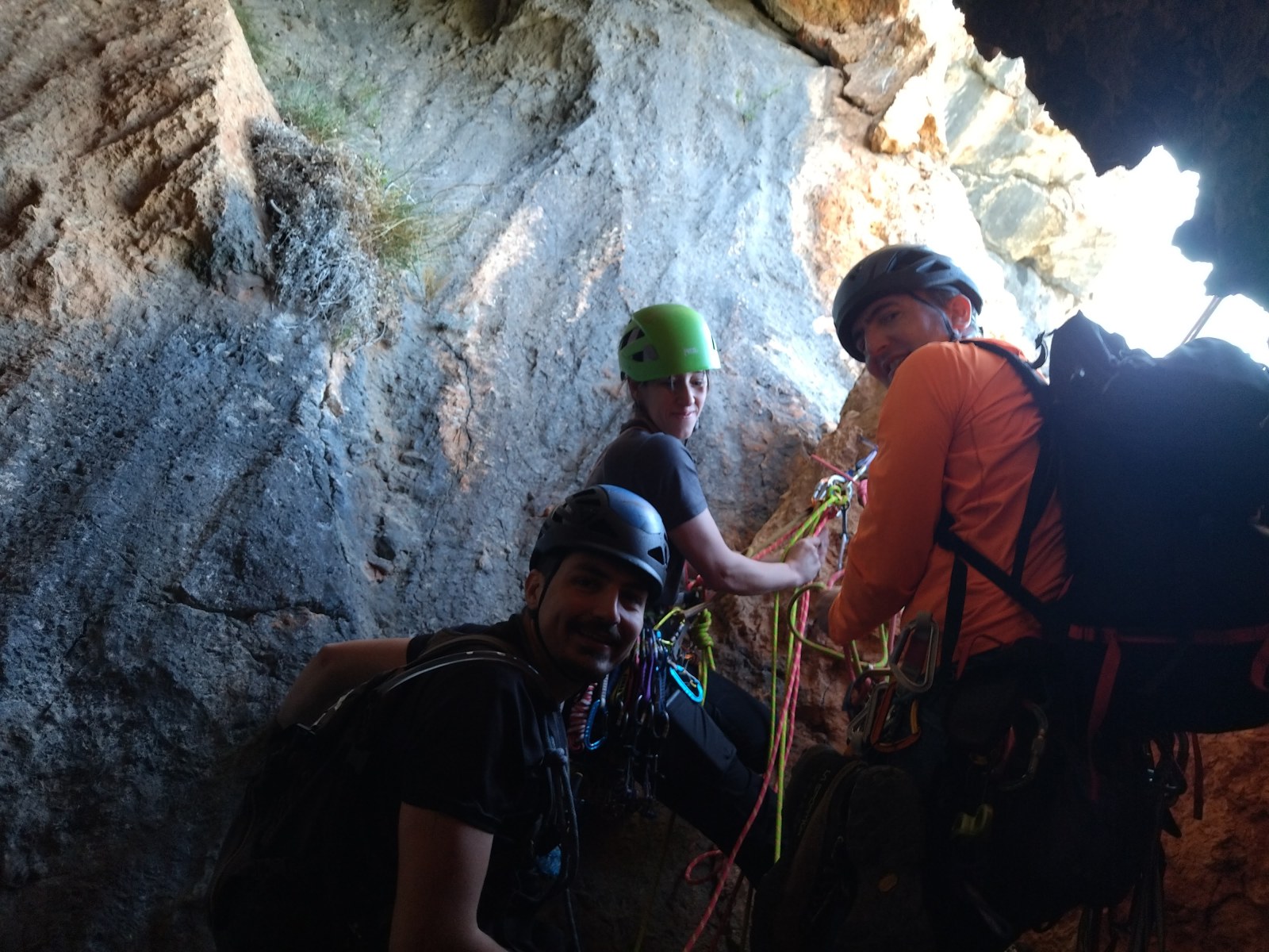Nous avions organisé deux sessions au gymnase pour initier aux manips d’assurage du haut et de rappel mais on sait bien que c’est loin d’être suffisant pour être à l’aise et éviter les erreurs. Le jeu pour moi était donc d’organiser des cordées avec un grimpeur autonome à chaque fois, tout en gérant les choix des voies de chacun et le niveau de difficulté, sans faire d’embouteillages trop important ! Un joli casse-tête que Julien m’a aidé à résoudre la veille, histoire de ne pas perdre trop de temps au pied des voies. Je tiens aussi ici à remercier les ouvreurs des voies de niveau abordable et plutôt bien équipées ! Elles traversent des systèmes de vires et terrasses qui rendent la supervision et l’adaptation pas trop compliquées, c’est vraiment super !