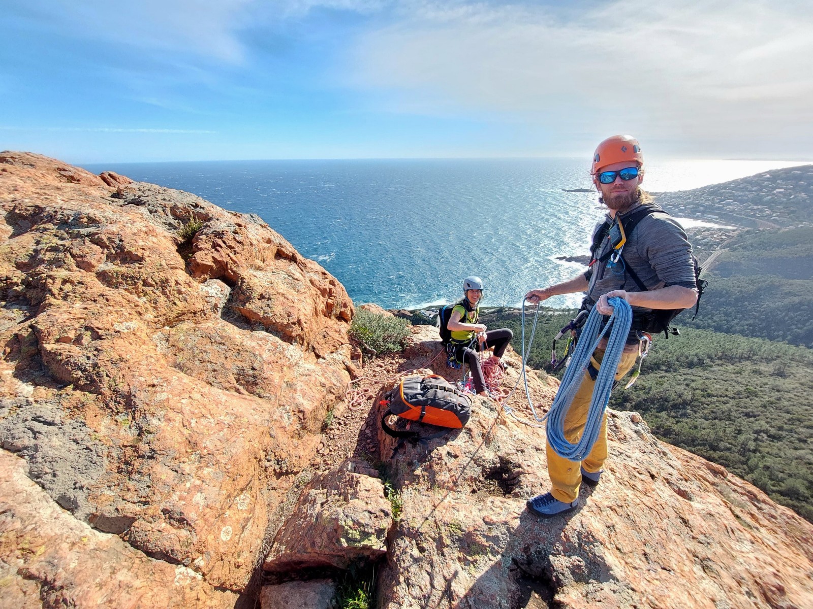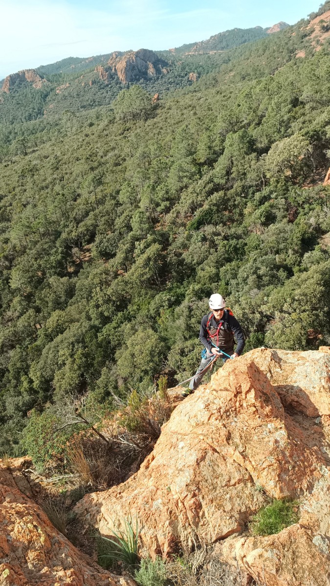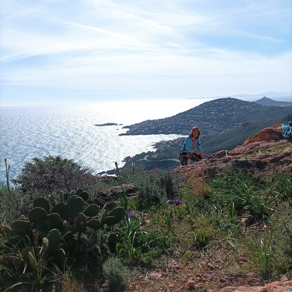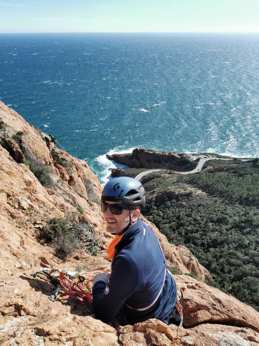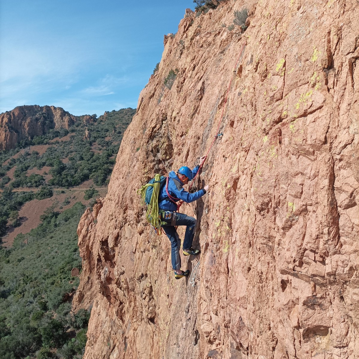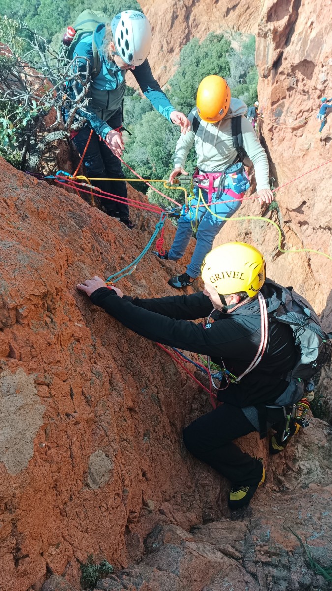 Ce week-end, ils étaient 24 grimpeur·ses du club à apprécier bronzer sur les parois du rocher St Barthélémy, sur la bien nommée corniche d’or, entre Mandelieu et St Raphaël. 24 grimpeur·ses de niveaux divers, certains à l’expérience confirmée, d’autres qui découvraient l’activité quelques semaines auparavant.