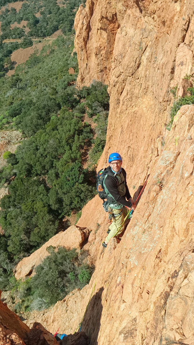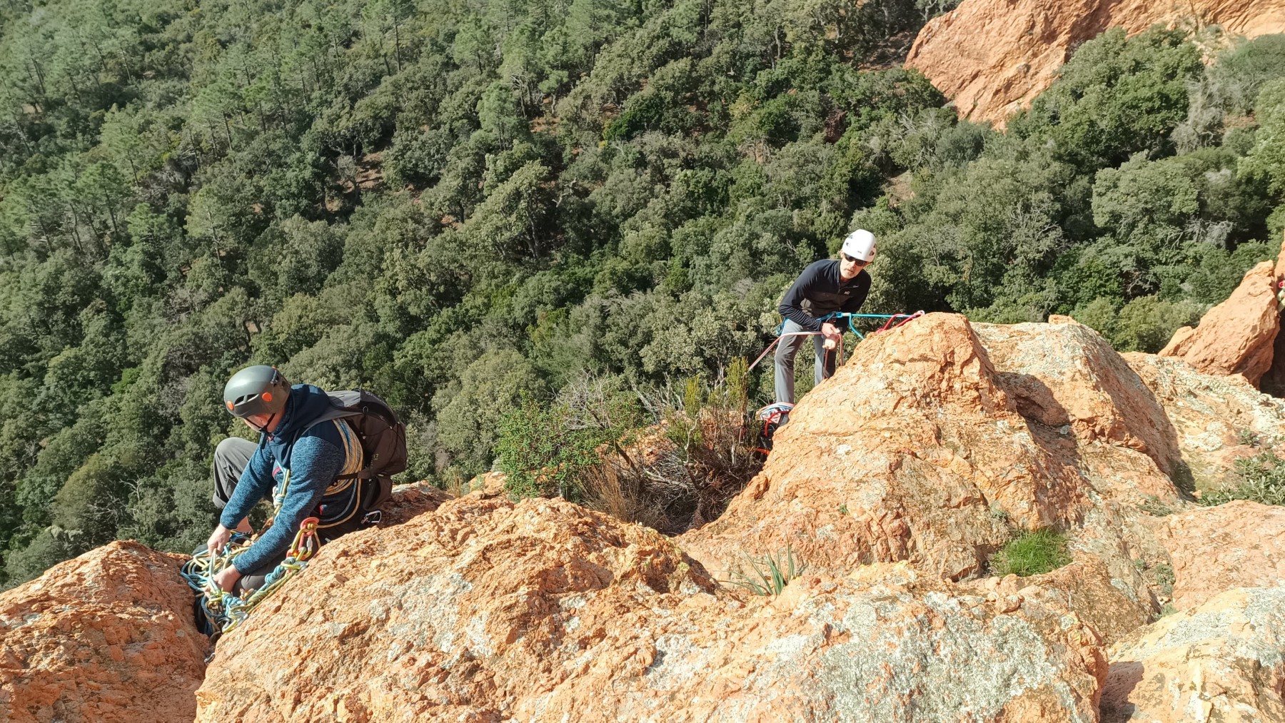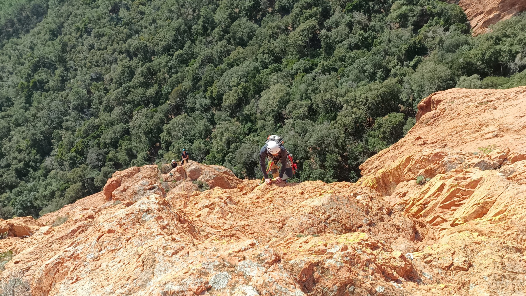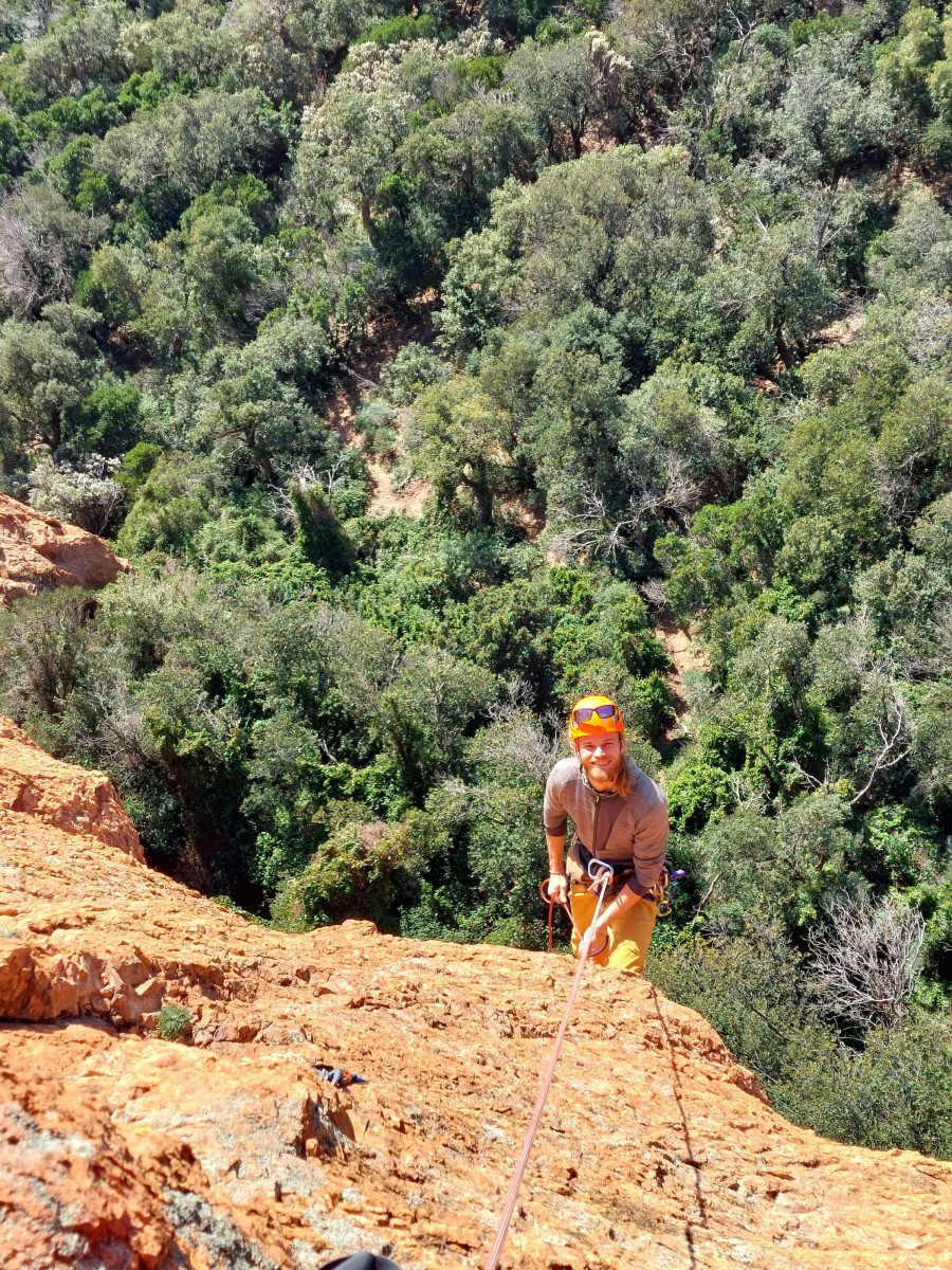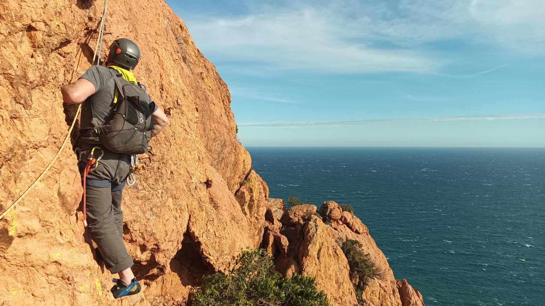Ce week-end, ils étaient 24 grimpeur·ses du club à apprécier bronzer sur les parois du rocher St Barthélémy, sur la bien nommée corniche d’or, entre Mandelieu et St Raphaël. 24 grimpeur·ses de niveaux divers, certains à l’expérience confirmée, d’autres qui découvraient l’activité quelques semaines auparavant.