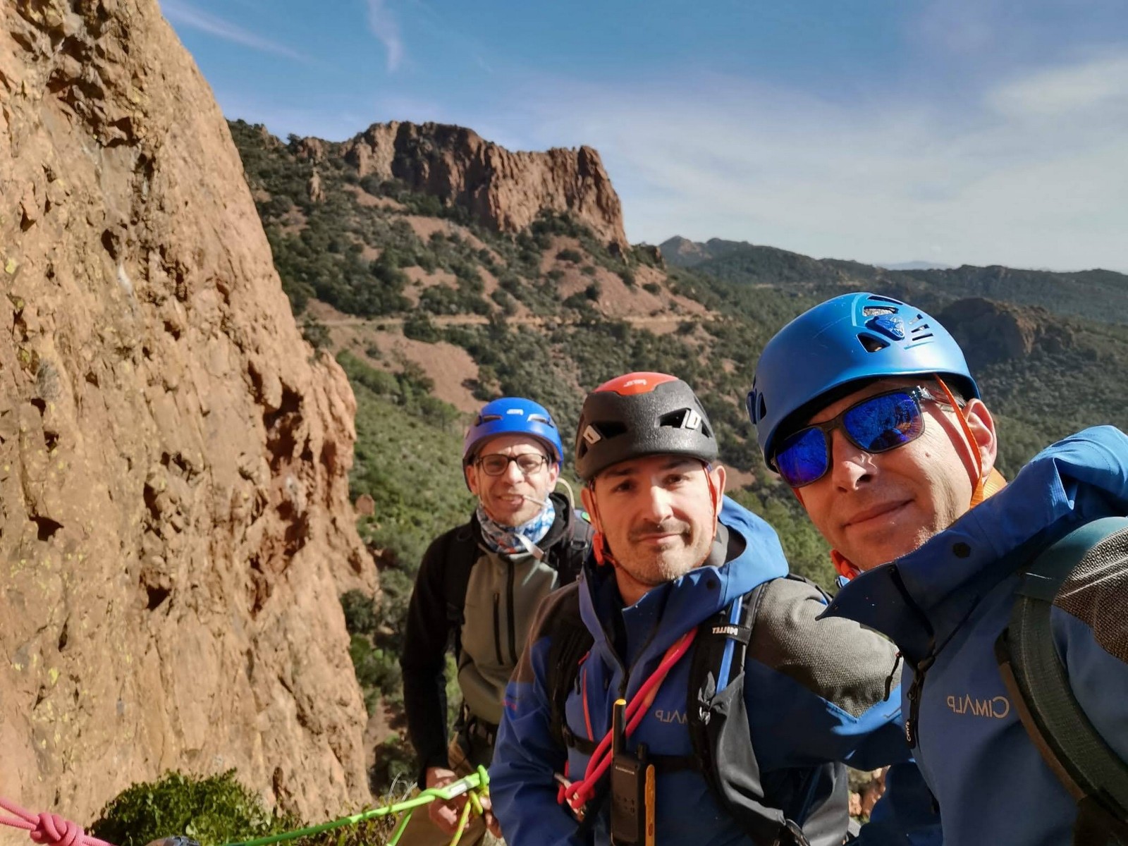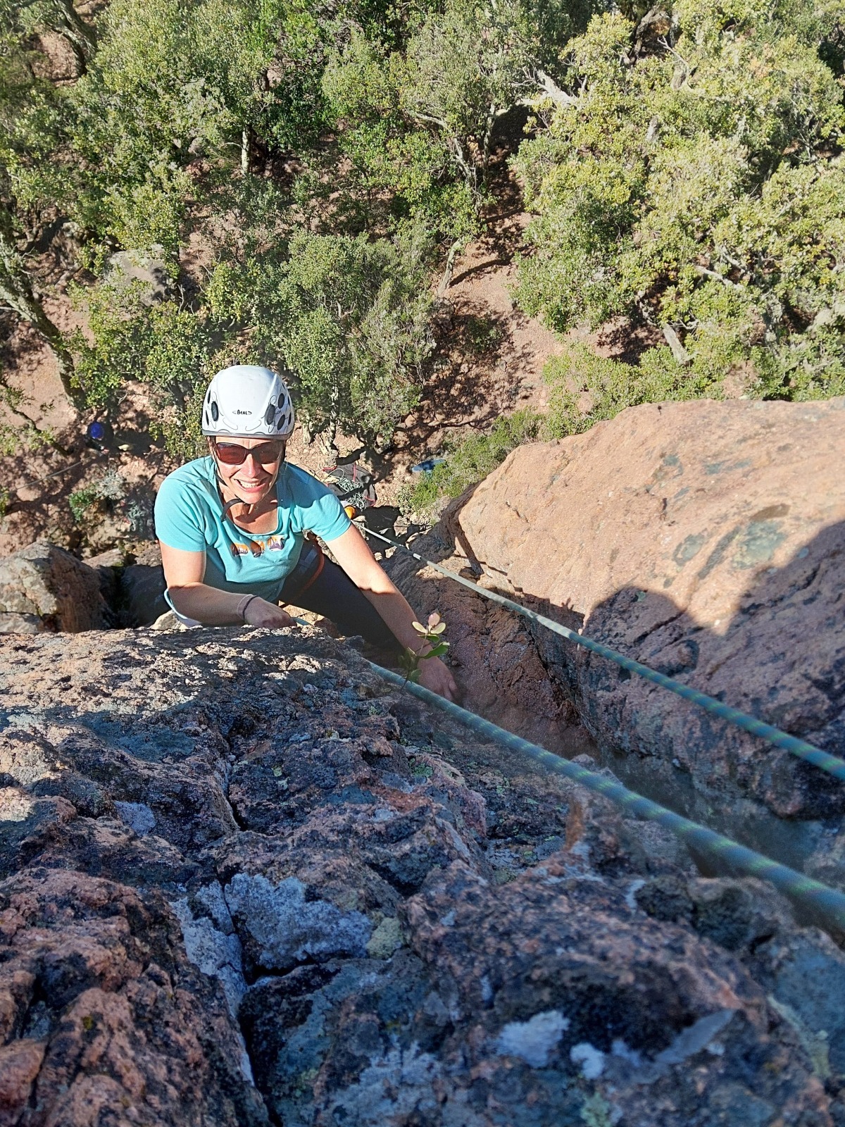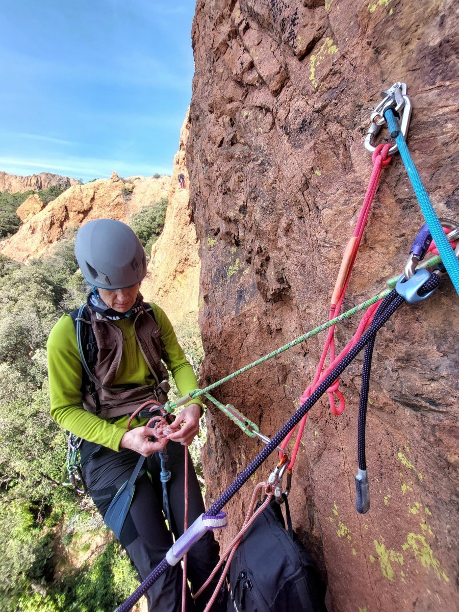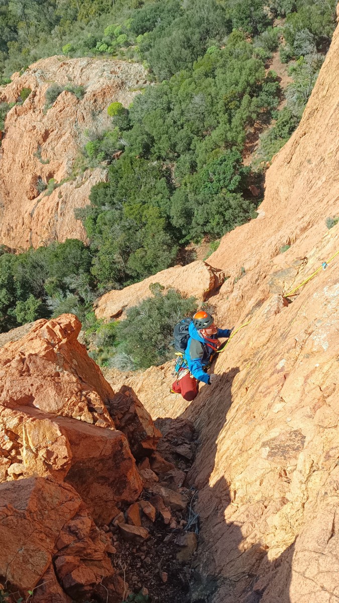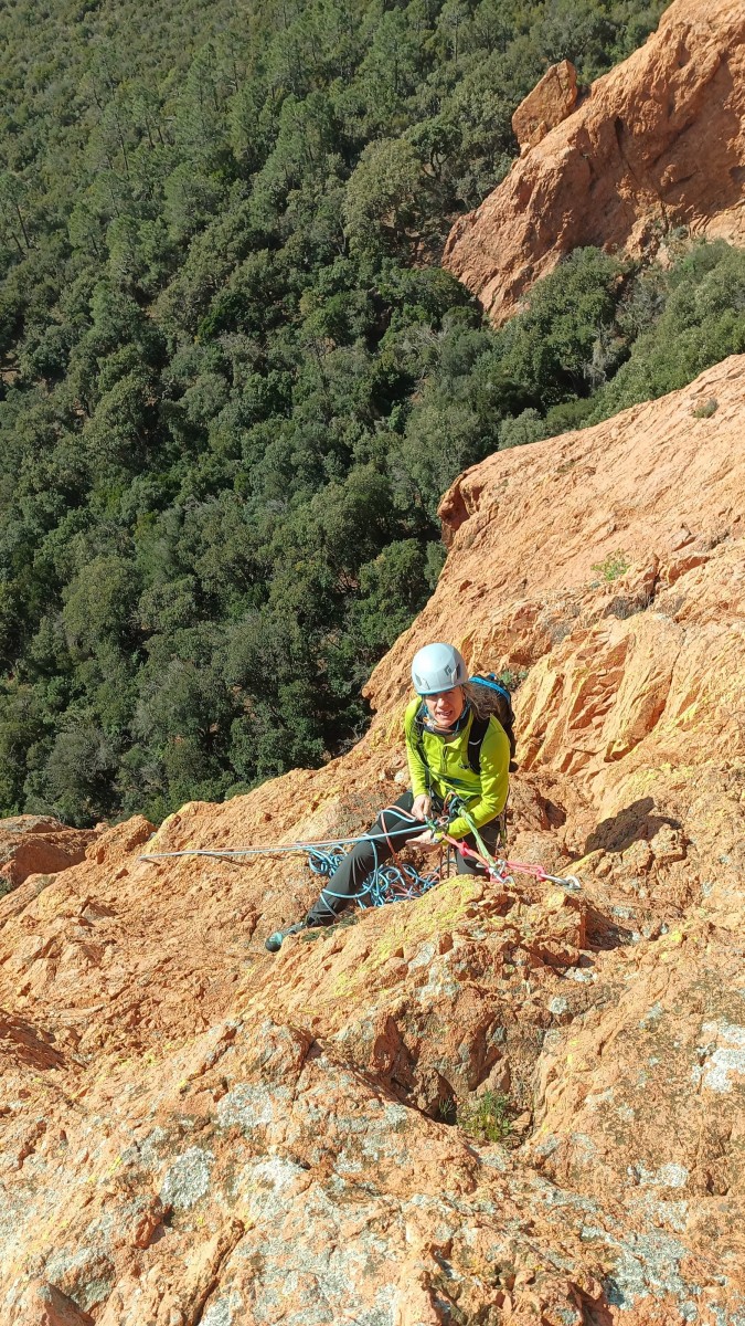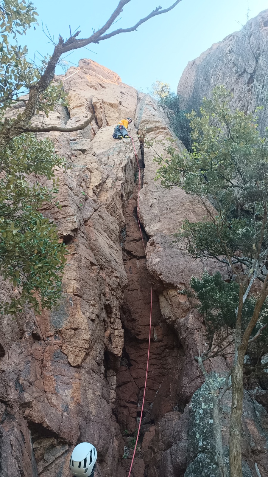 Ce week-end, ils étaient 24 grimpeur·ses du club à apprécier bronzer sur les parois du rocher St Barthélémy, sur la bien nommée corniche d’or, entre Mandelieu et St Raphaël. 24 grimpeur·ses de niveaux divers, certains à l’expérience confirmée, d’autres qui découvraient l’activité quelques semaines auparavant.