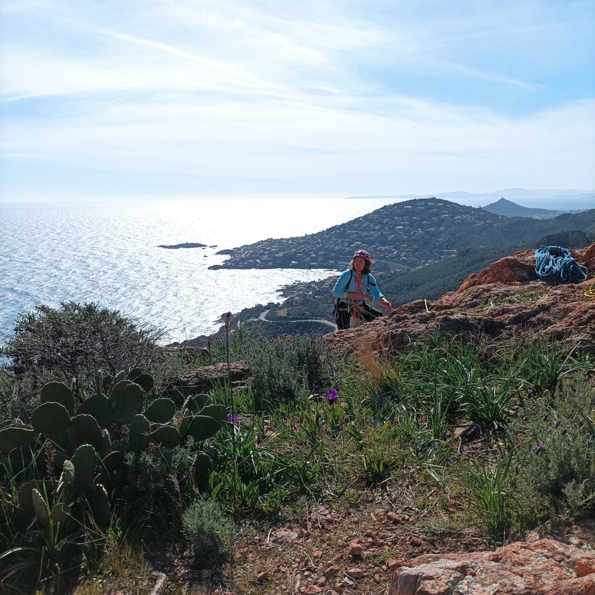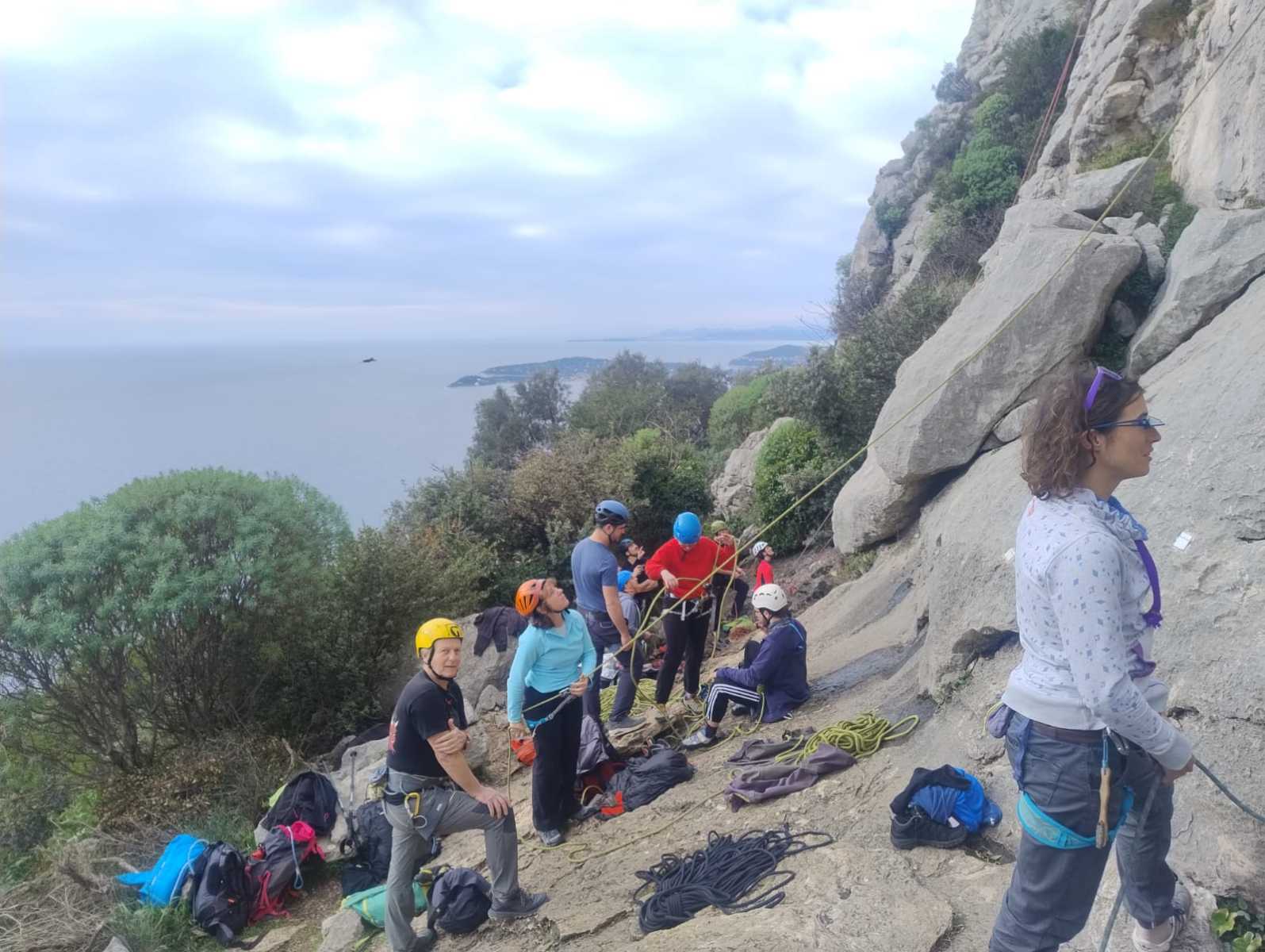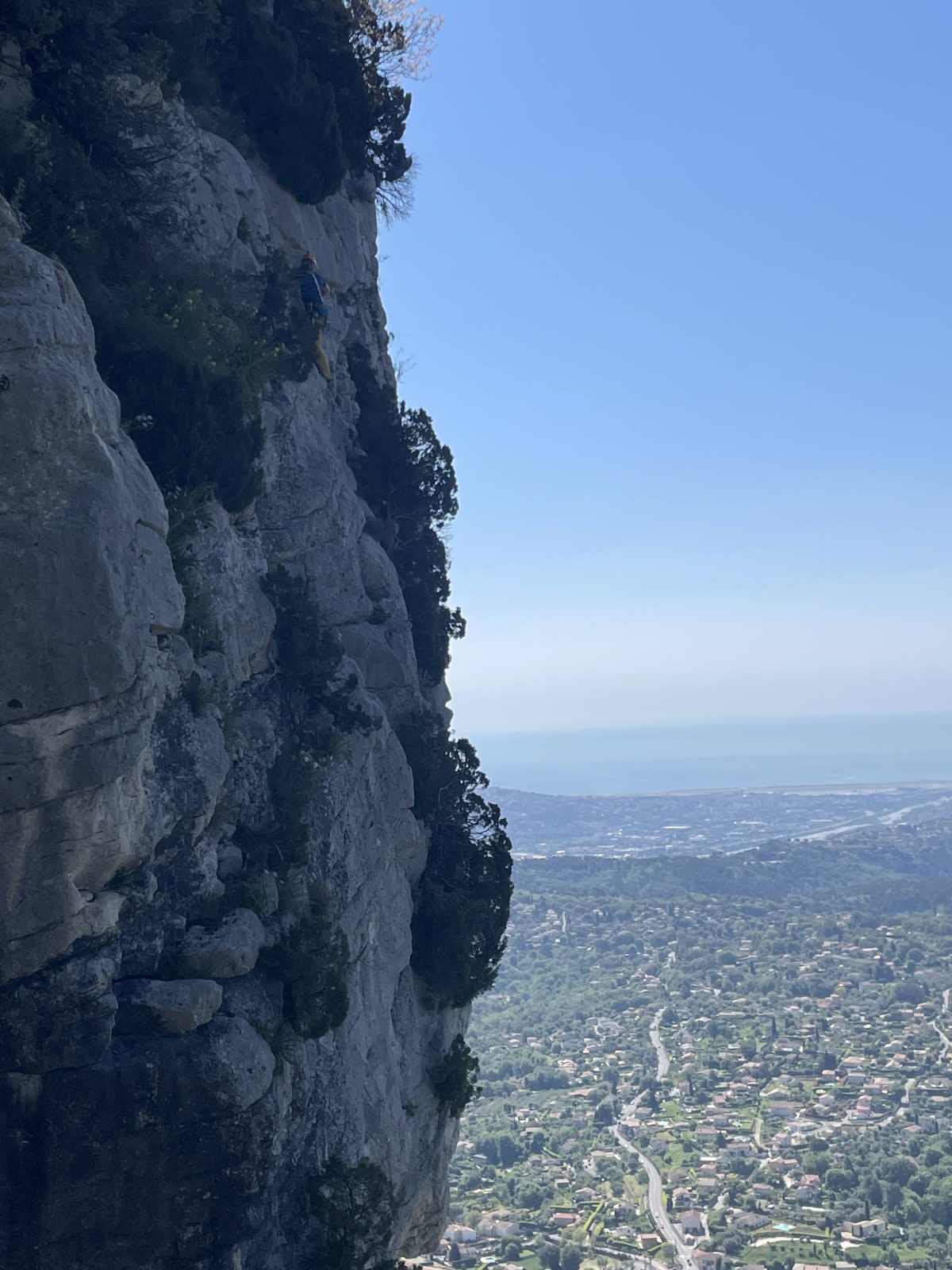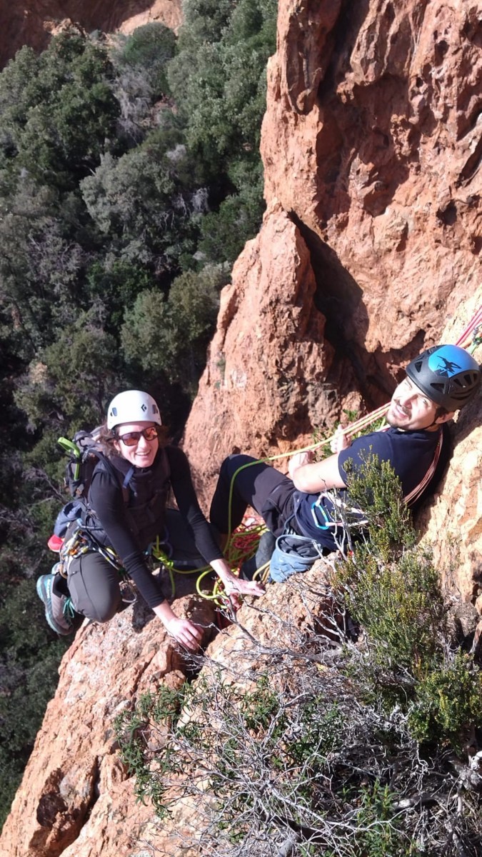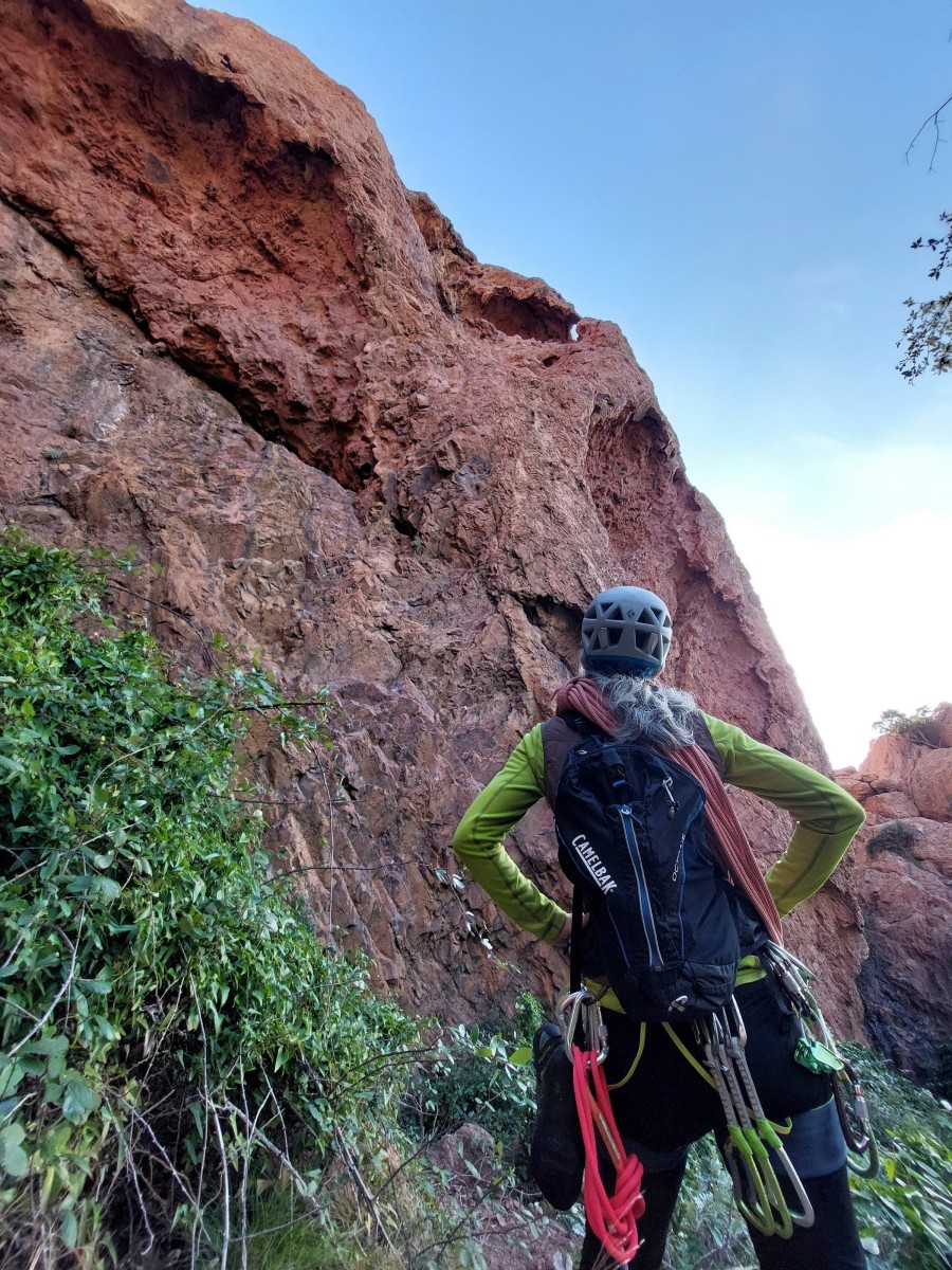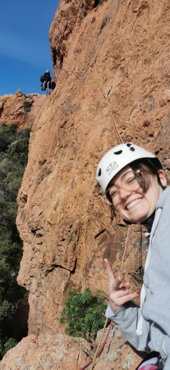Ce week-end, ils étaient 24 grimpeur·ses du club à apprécier bronzer sur les parois du rocher St Barthélémy, sur la bien nommée corniche d’or, entre Mandelieu et St Raphaël. 24 grimpeur·ses de niveaux divers, certains à l’expérience confirmée, d’autres qui découvraient l’activité quelques semaines auparavant.