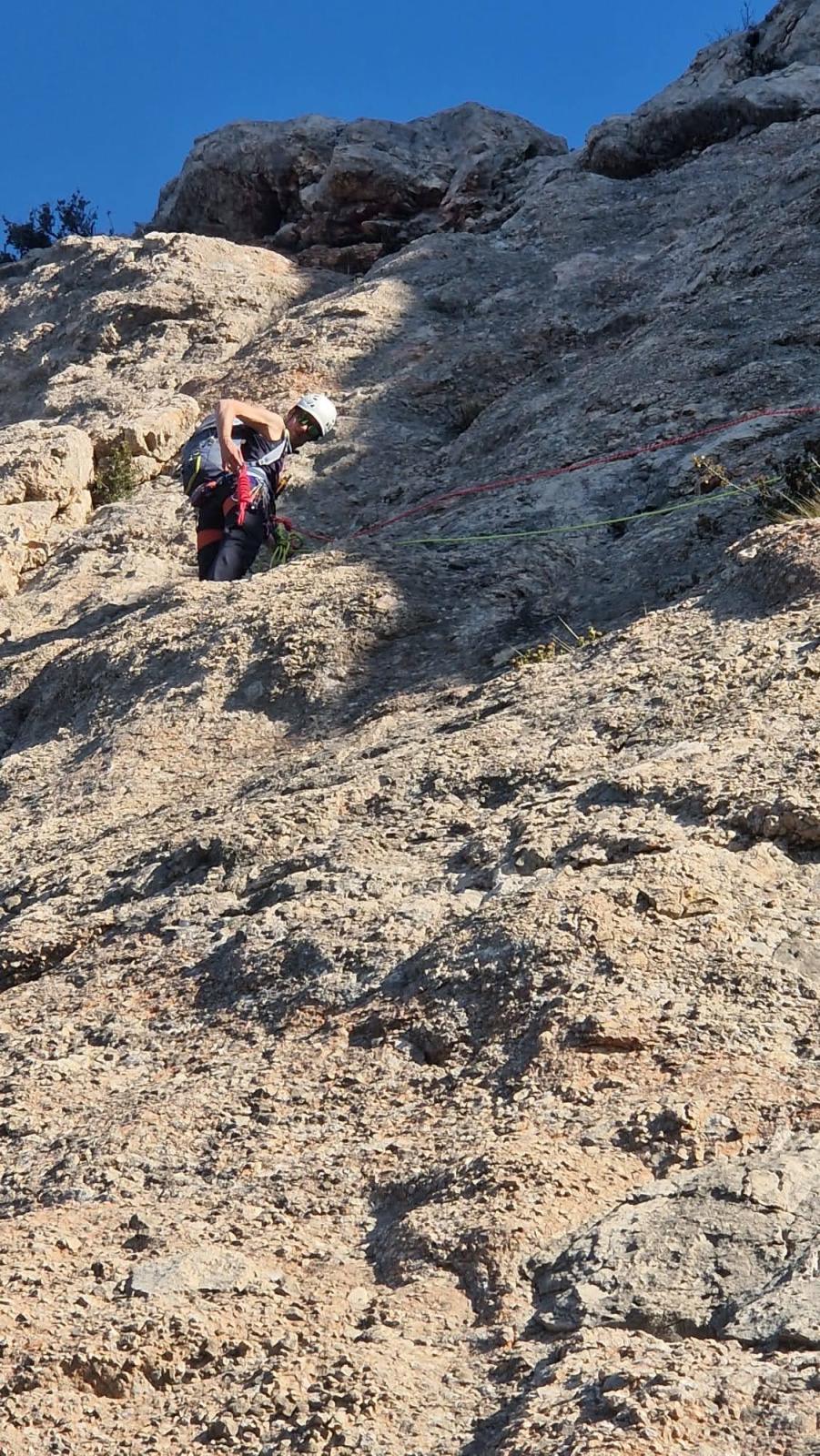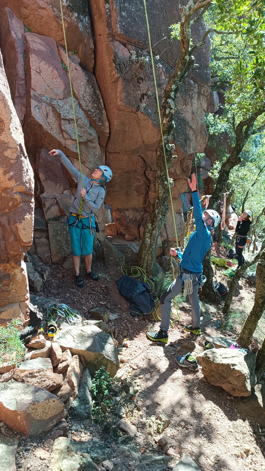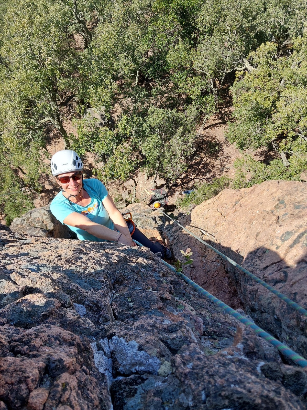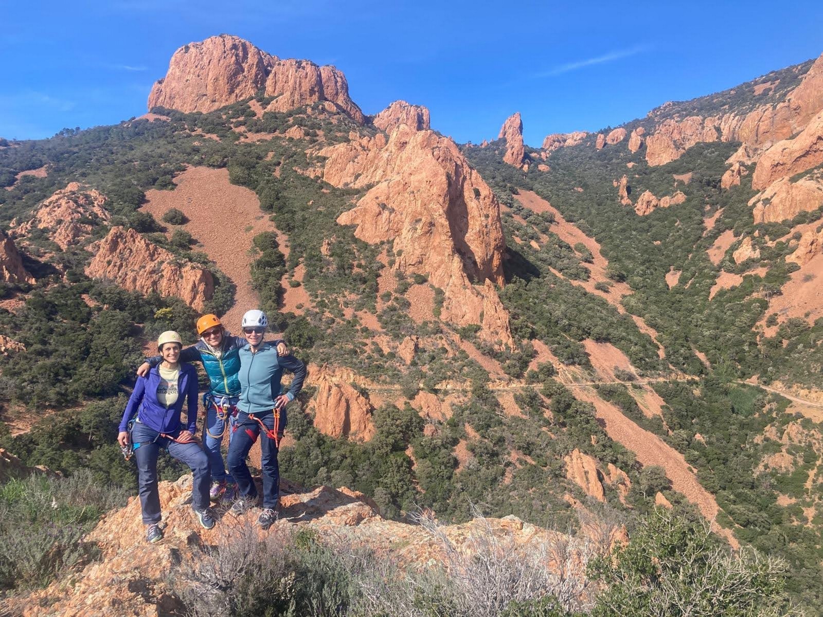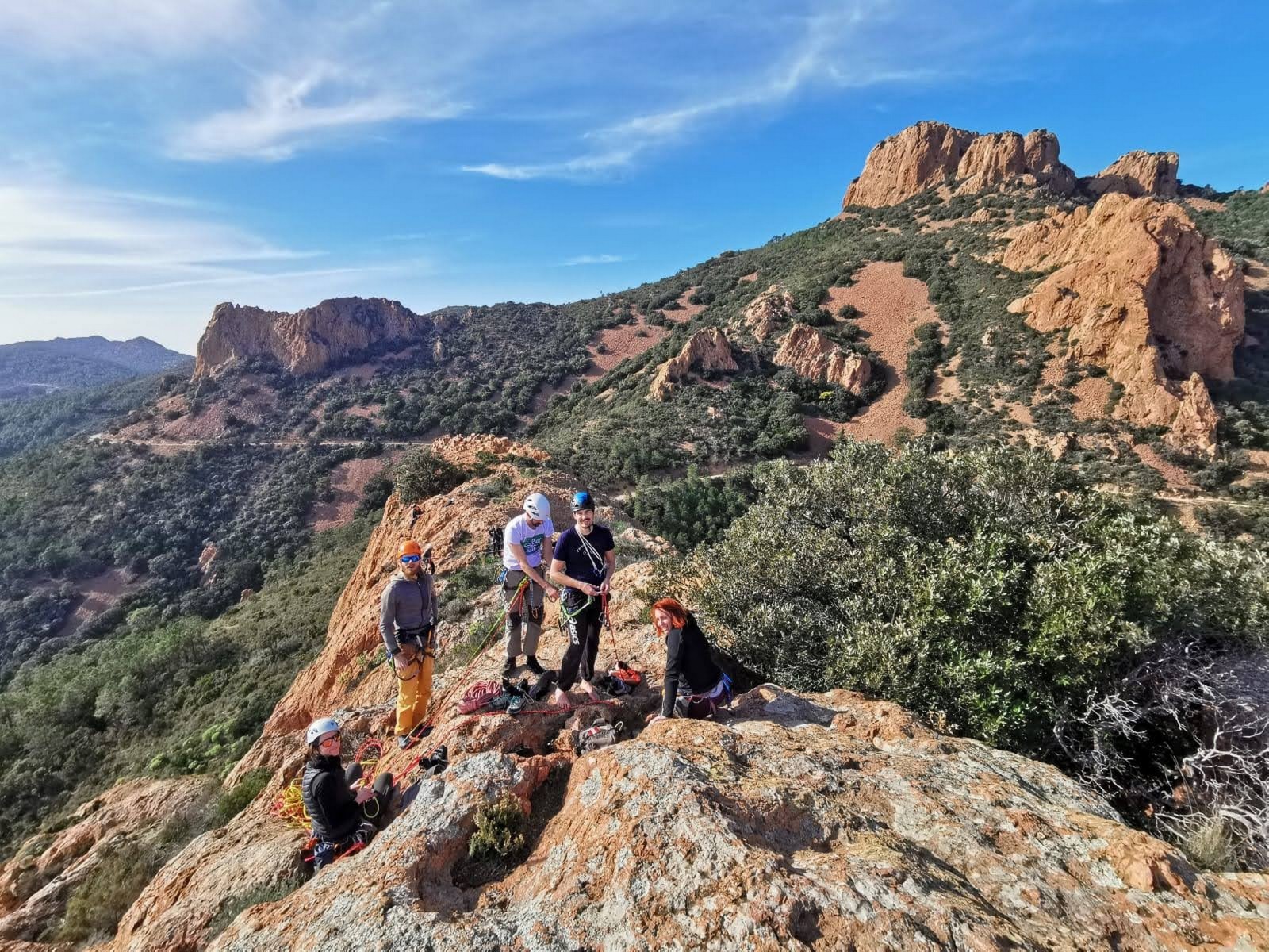 Ce week-end, ils étaient 24 grimpeur·ses du club à apprécier bronzer sur les parois du rocher St Barthélémy, sur la bien nommée corniche d’or, entre Mandelieu et St Raphaël. 24 grimpeur·ses de niveaux divers, certains à l’expérience confirmée, d’autres qui découvraient l’activité quelques semaines auparavant.