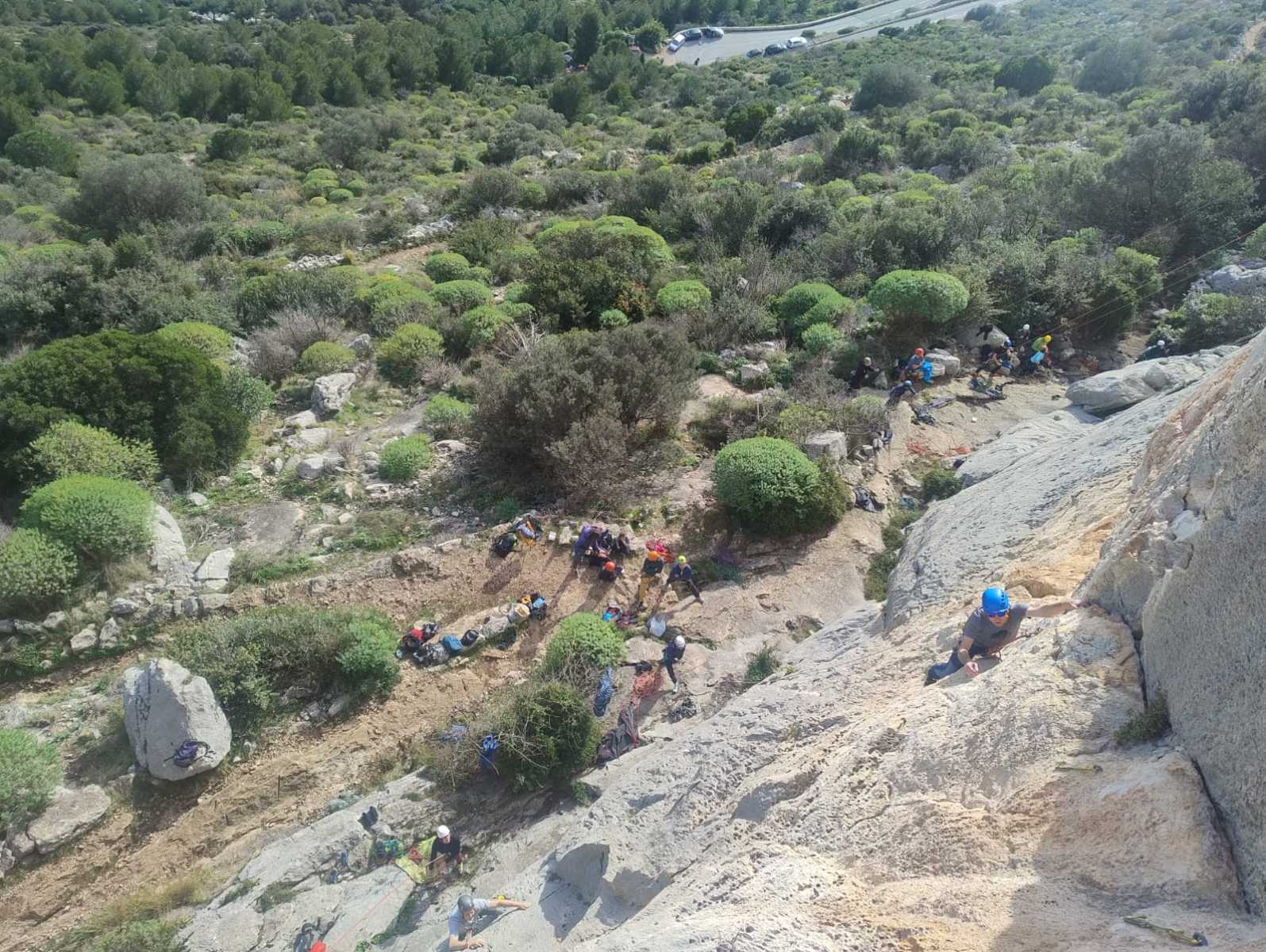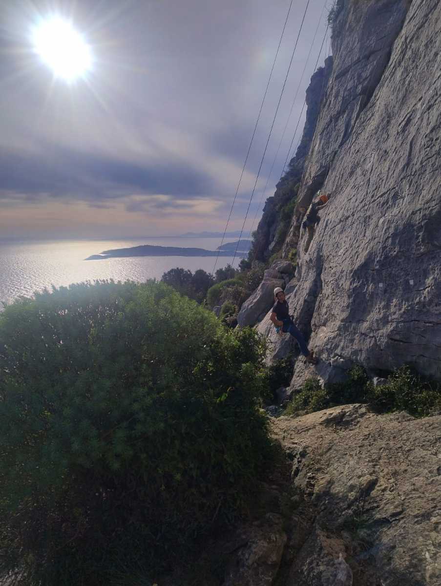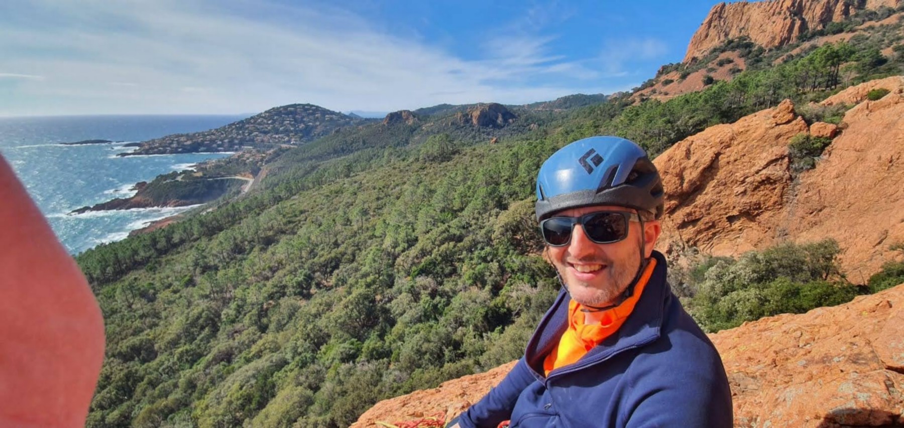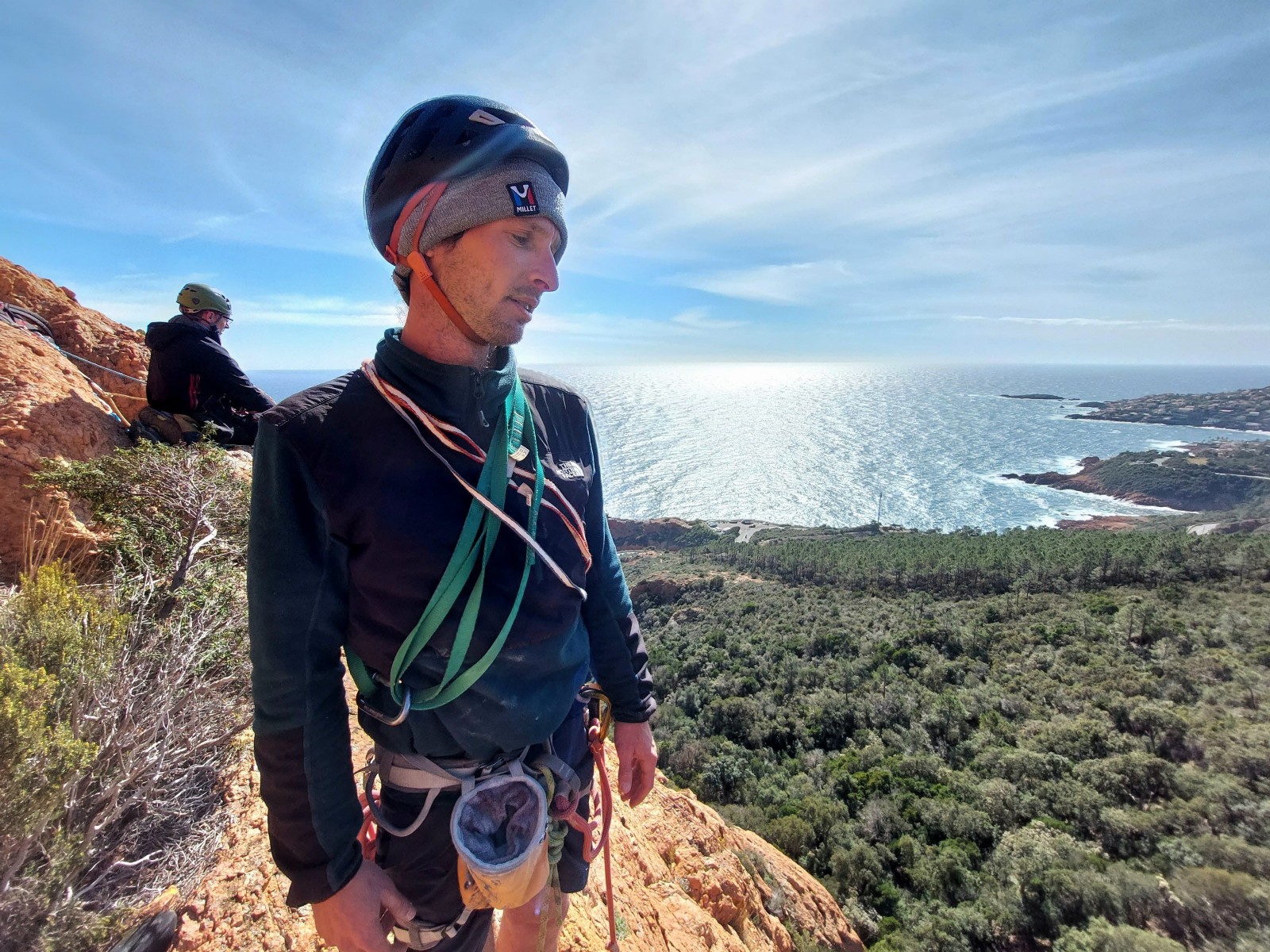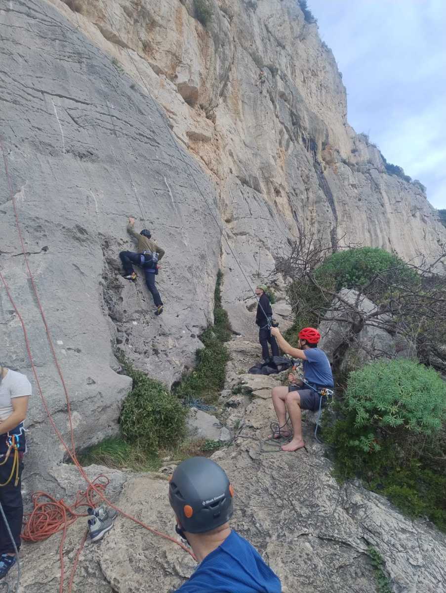 Ce week-end, ils étaient 24 grimpeur·ses du club à apprécier bronzer sur les parois du rocher St Barthélémy, sur la bien nommée corniche d’or, entre Mandelieu et St Raphaël. 24 grimpeur·ses de niveaux divers, certains à l’expérience confirmée, d’autres qui découvraient l’activité quelques semaines auparavant.