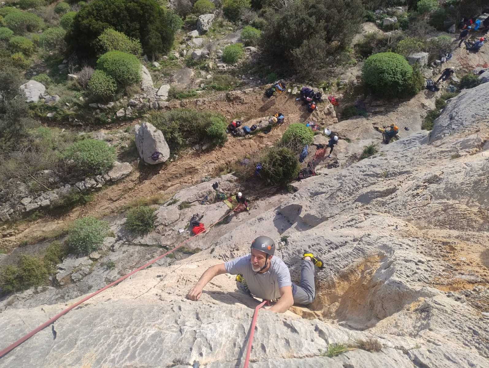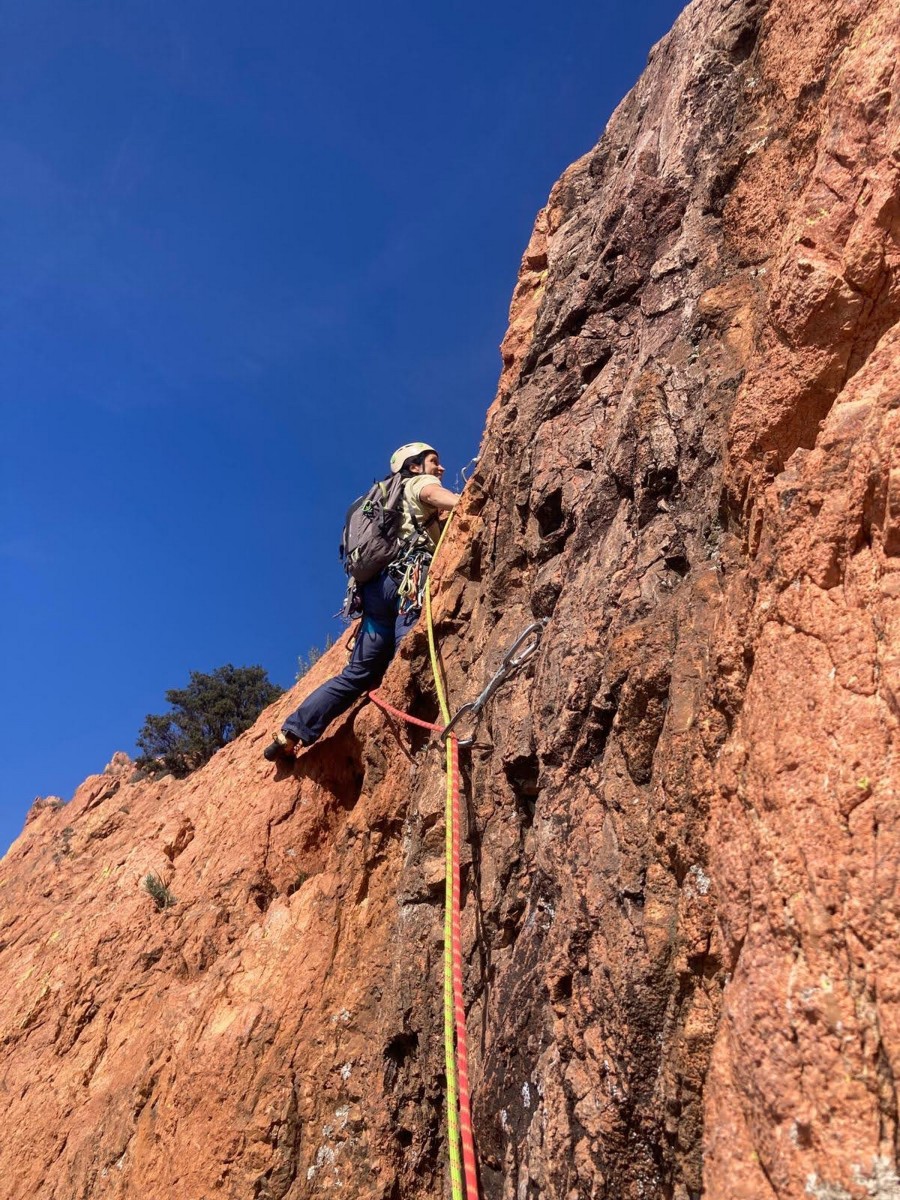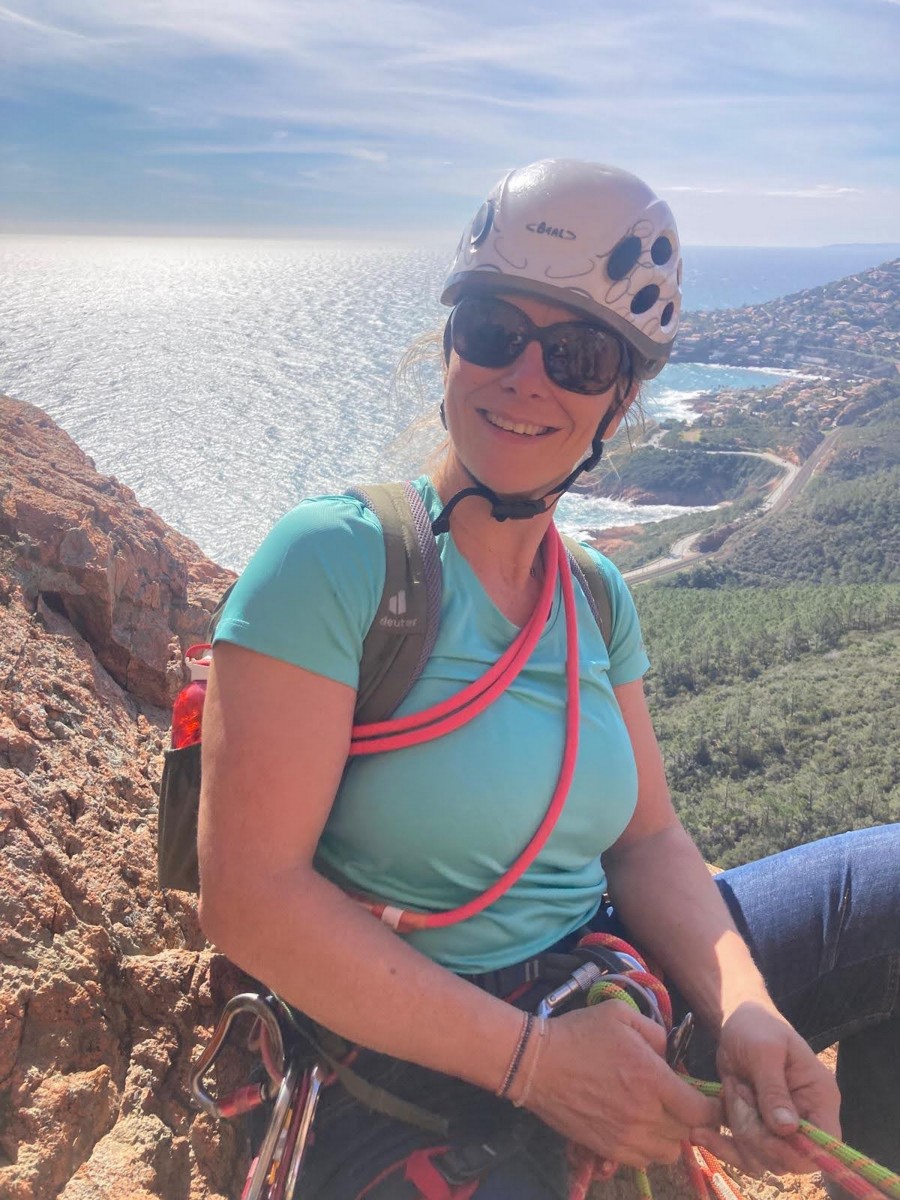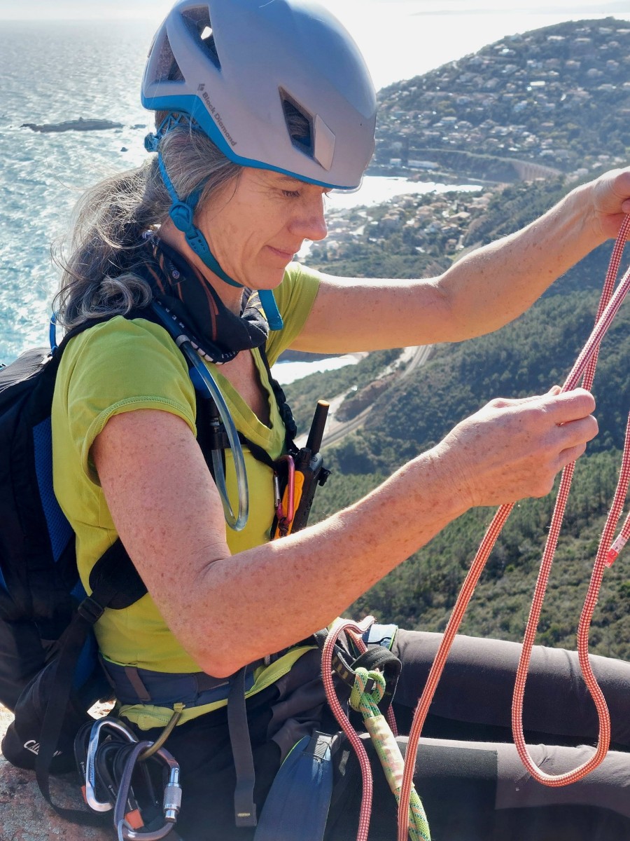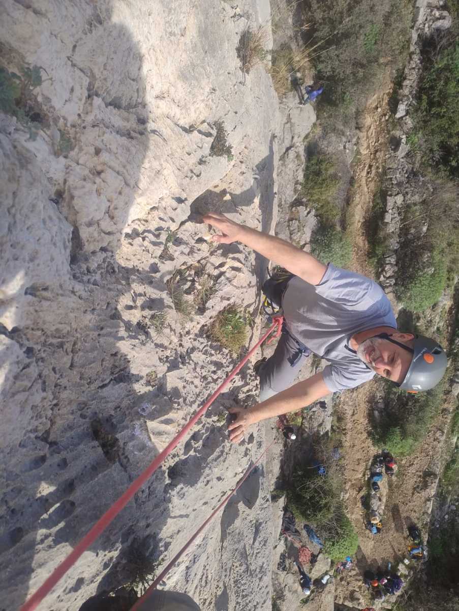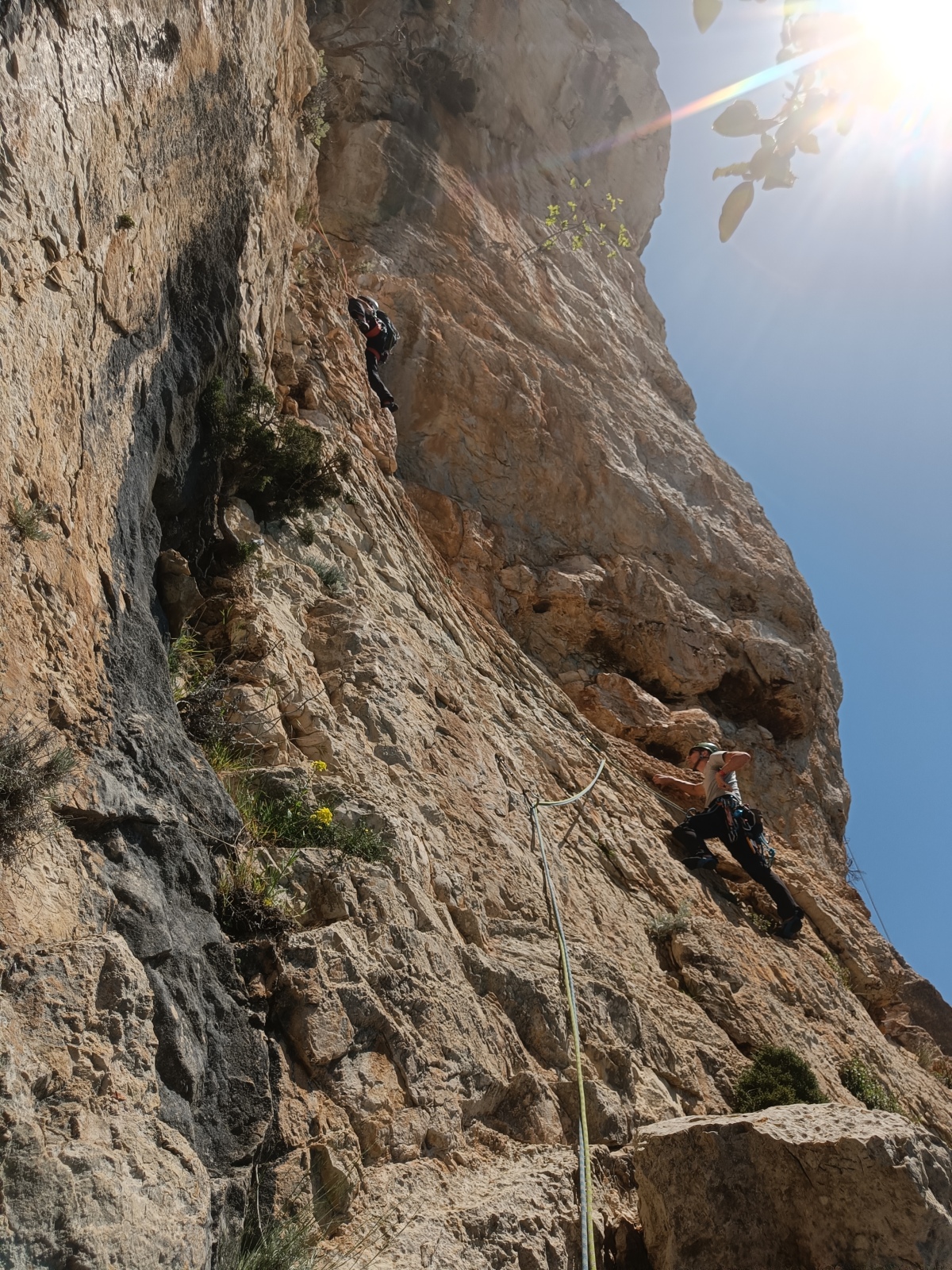 Ce week-end, ils étaient 24 grimpeur·ses du club à apprécier bronzer sur les parois du rocher St Barthélémy, sur la bien nommée corniche d’or, entre Mandelieu et St Raphaël. 24 grimpeur·ses de niveaux divers, certains à l’expérience confirmée, d’autres qui découvraient l’activité quelques semaines auparavant.