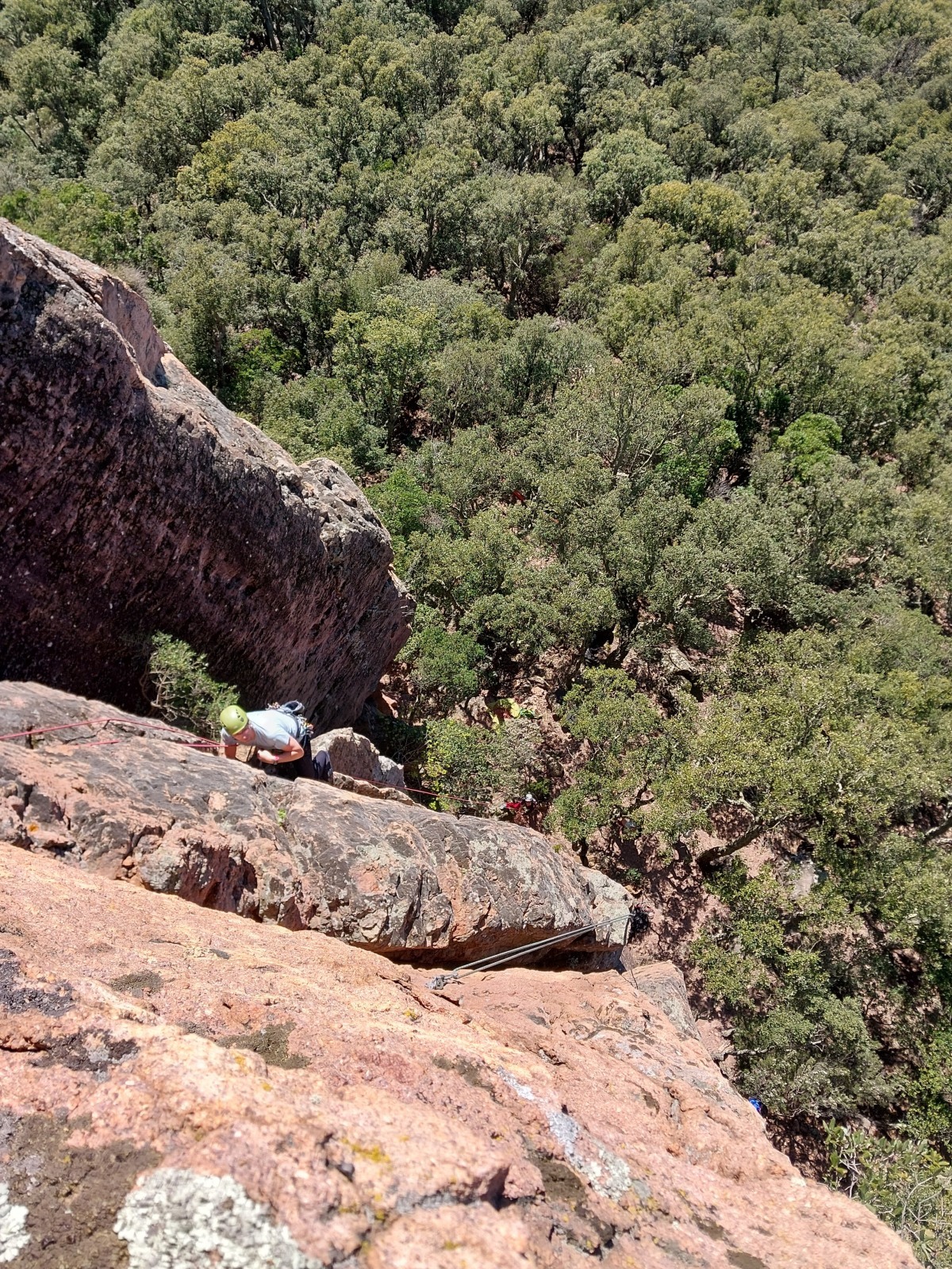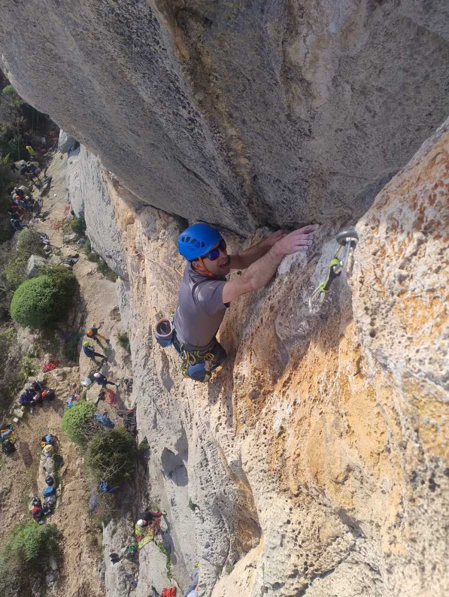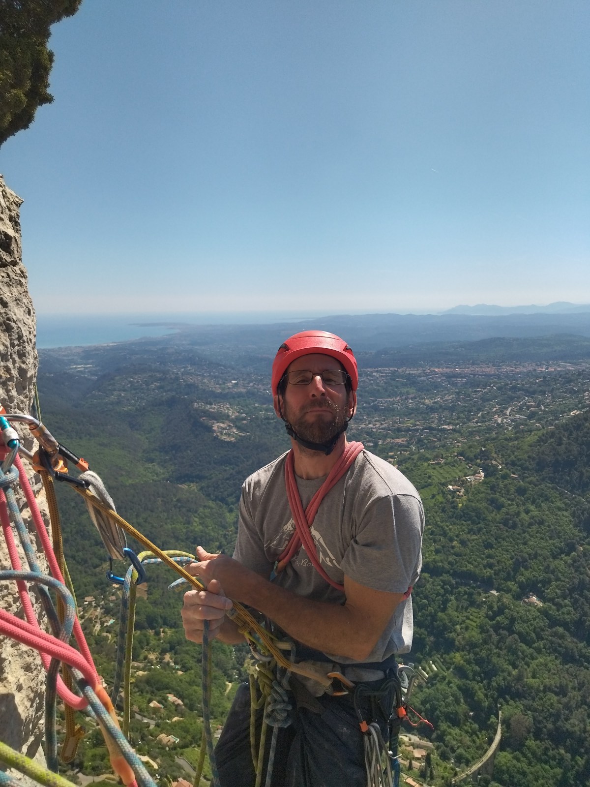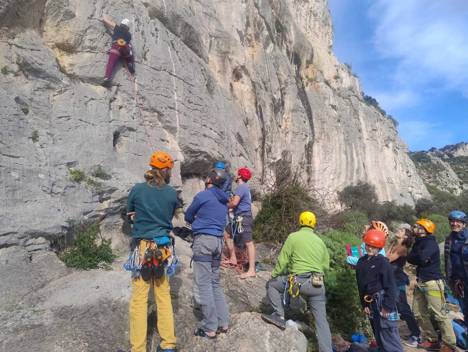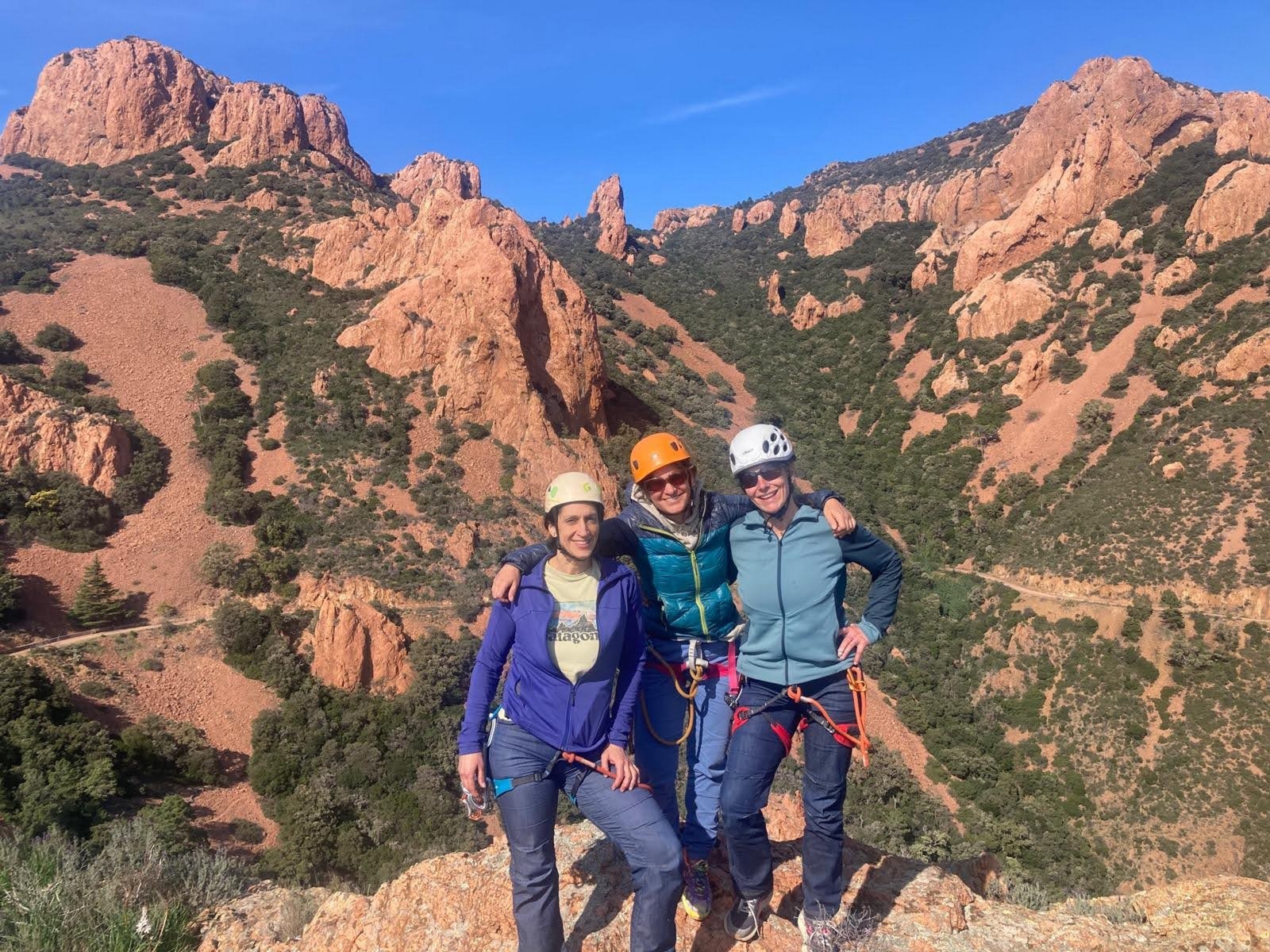 Ce week-end, ils étaient 24 grimpeur·ses du club à apprécier bronzer sur les parois du rocher St Barthélémy, sur la bien nommée corniche d’or, entre Mandelieu et St Raphaël. 24 grimpeur·ses de niveaux divers, certains à l’expérience confirmée, d’autres qui découvraient l’activité quelques semaines auparavant.