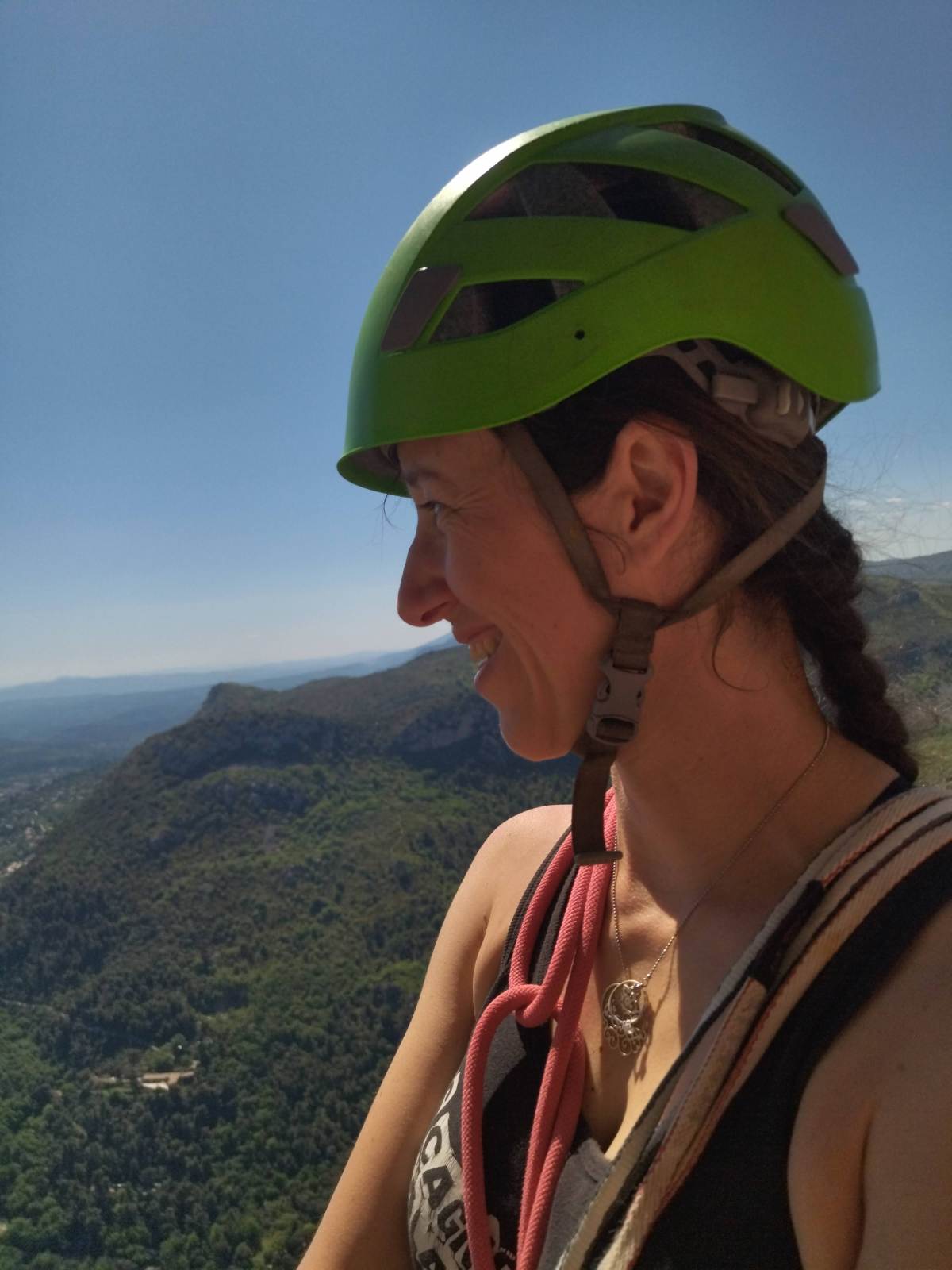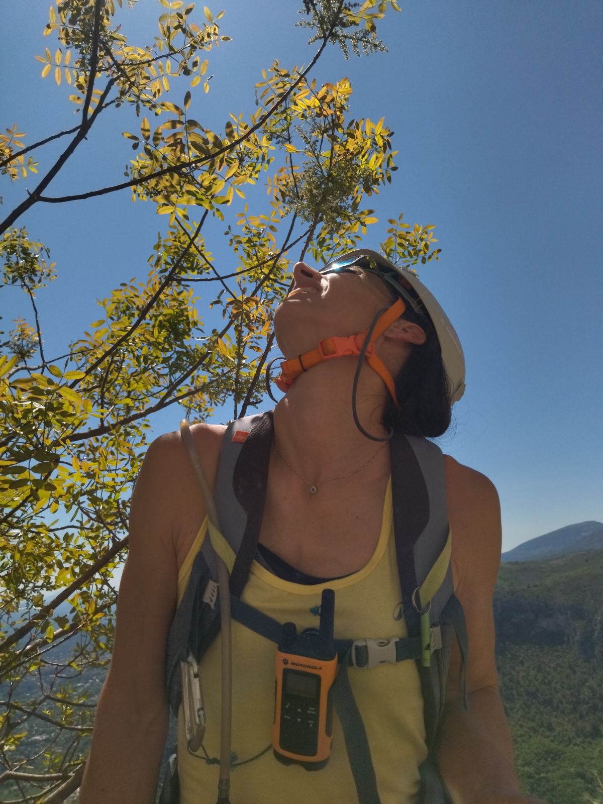 Florian les suit de près et malgré les efforts de la longueur précédente, reste bien concentré. Arrivés au pied du long 5b, Hélène, qui a déjà bien donné, se demande si elle est capable de le parcourir en tête. Après avoir glané quelques informations auprès des précédents répétiteurs, rassurée, elle se lance. La première section est la plus difficile mais sa technique lui permet de passer. La suite n’est que plaisir et Yannick, qui était descendu pour la soutenir depuis le haut, discute avec elle autour du sujet de sa thèse : l’eau sur terre ou un truc comme ça. Là-haut, Julien les attend presque déçu de ne pas avoir eu à faire de manip plus complexe que d’ordinaire, lui qui s’intéresse de très près à tout ça.