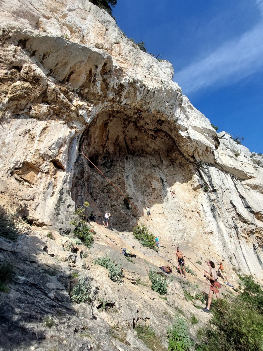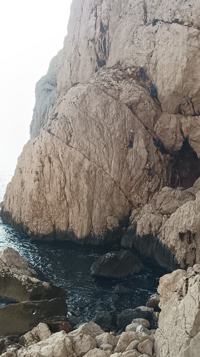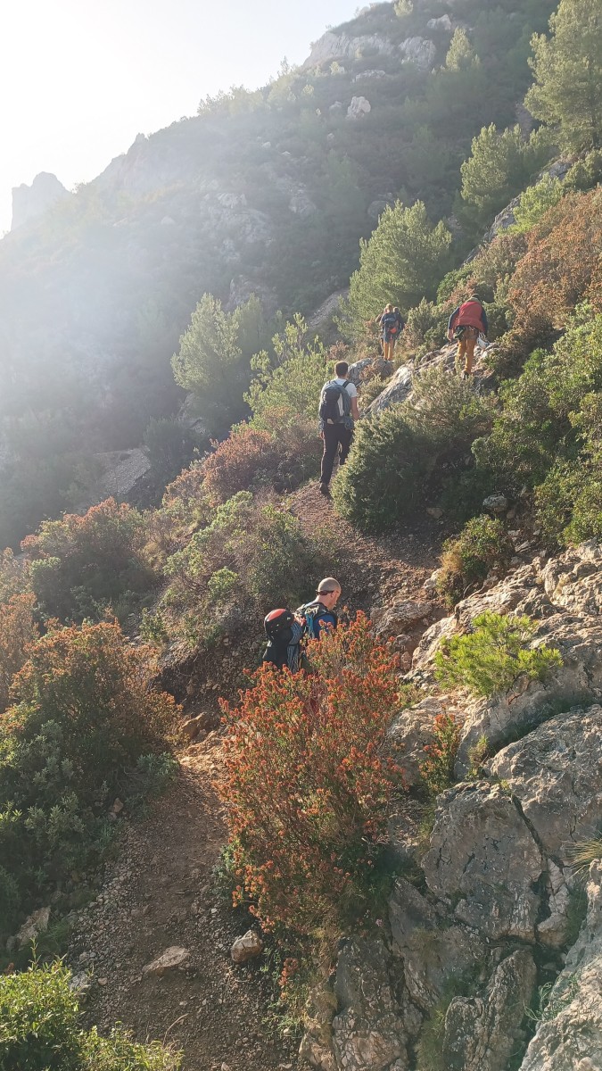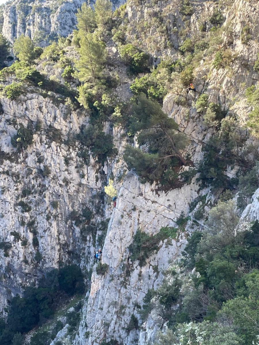 Ces sorties étant suffisamment délicates à encadrer, je ne préfère par ajouter de l’incertitude à l’incertitude alors quand les prévisions ne sont pas bonnes, j’adapte ou j’annule. Cela demande une certaine souplesse aux participants puisqu’à la base, on avait prévu 2 jours dans le Verdon avec hébergement à la Palud mais finalement, on s’est retrouvé juste pour le dimanche à Toulon, la ville du soleil. Dans le processus, on perd tout de même 4 participants, c’est donc à 10 (moi y compris) que nous nous retrouvons à 8h au parking de la Villette. Et c’est parti pour les gorges du Destel, pour un secteur que personne ne connaît encore : dernière cartouche.
