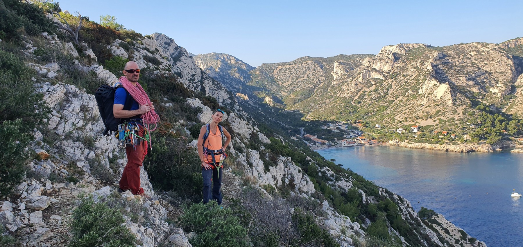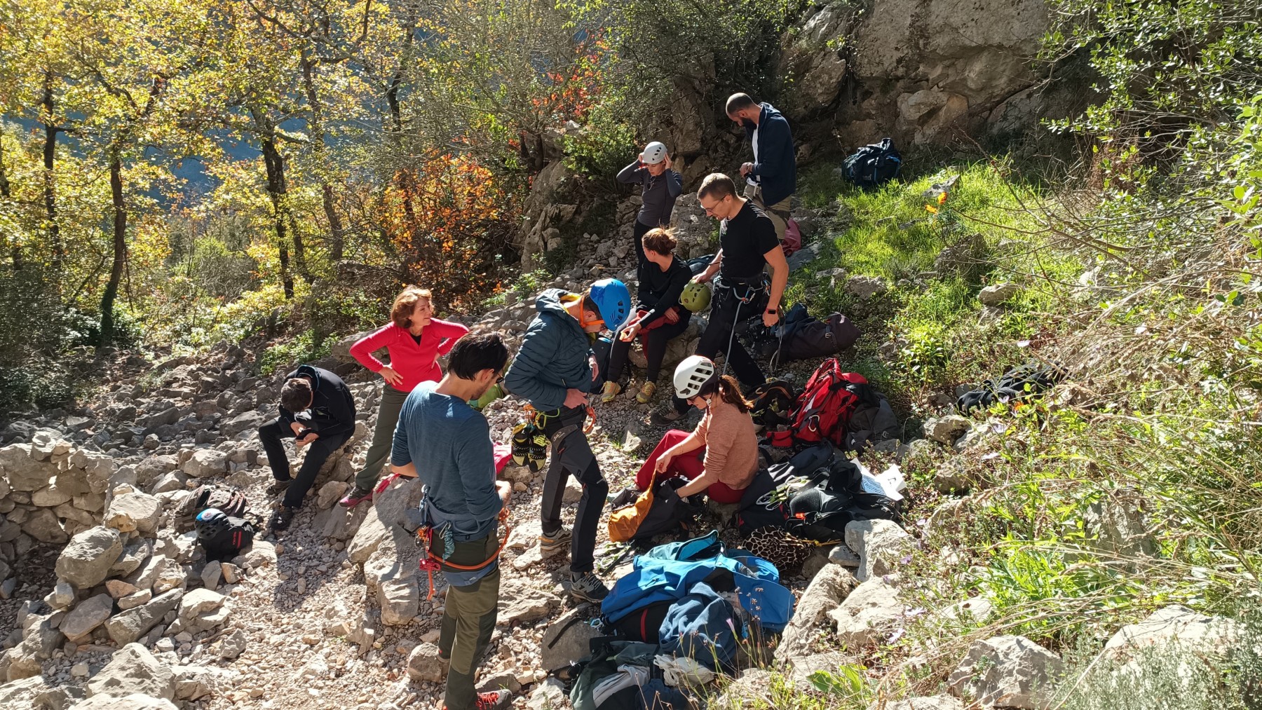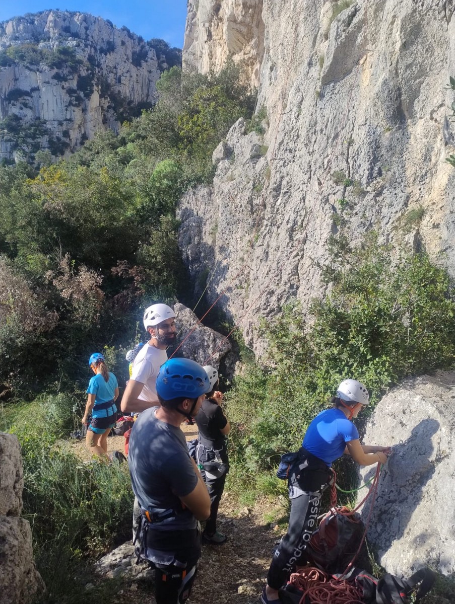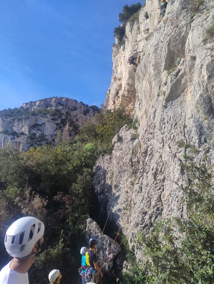 Ces sorties étant suffisamment délicates à encadrer, je ne préfère par ajouter de l’incertitude à l’incertitude alors quand les prévisions ne sont pas bonnes, j’adapte ou j’annule. Cela demande une certaine souplesse aux participants puisqu’à la base, on avait prévu 2 jours dans le Verdon avec hébergement à la Palud mais finalement, on s’est retrouvé juste pour le dimanche à Toulon, la ville du soleil. Dans le processus, on perd tout de même 4 participants, c’est donc à 10 (moi y compris) que nous nous retrouvons à 8h au parking de la Villette. Et c’est parti pour les gorges du Destel, pour un secteur que personne ne connaît encore : dernière cartouche.