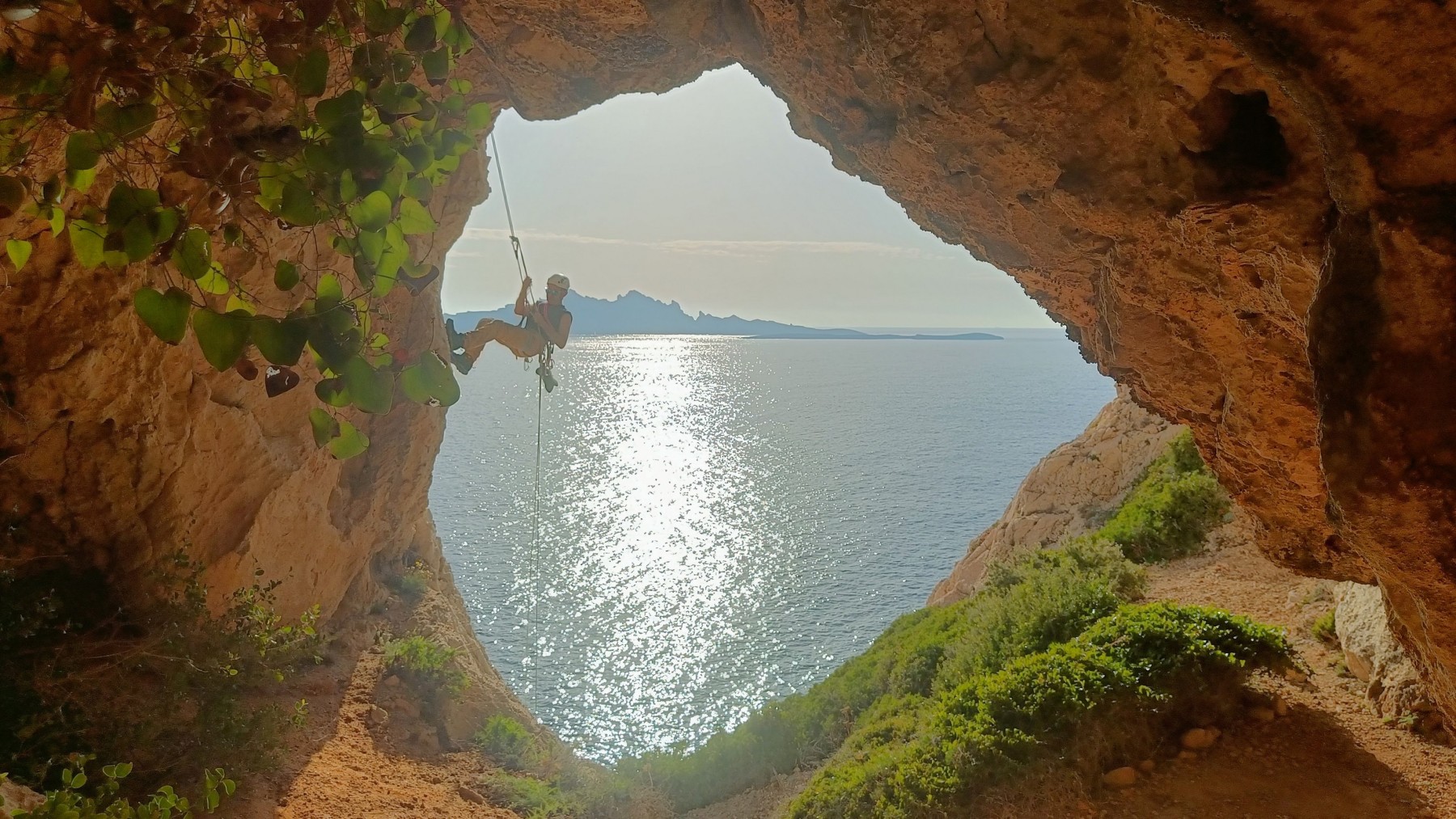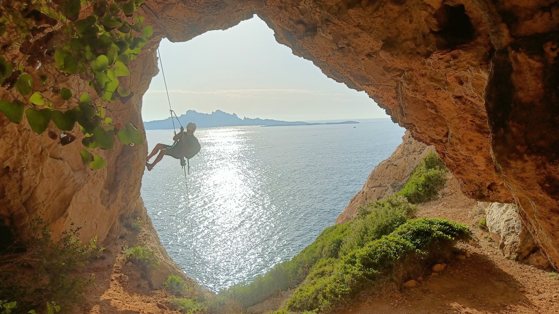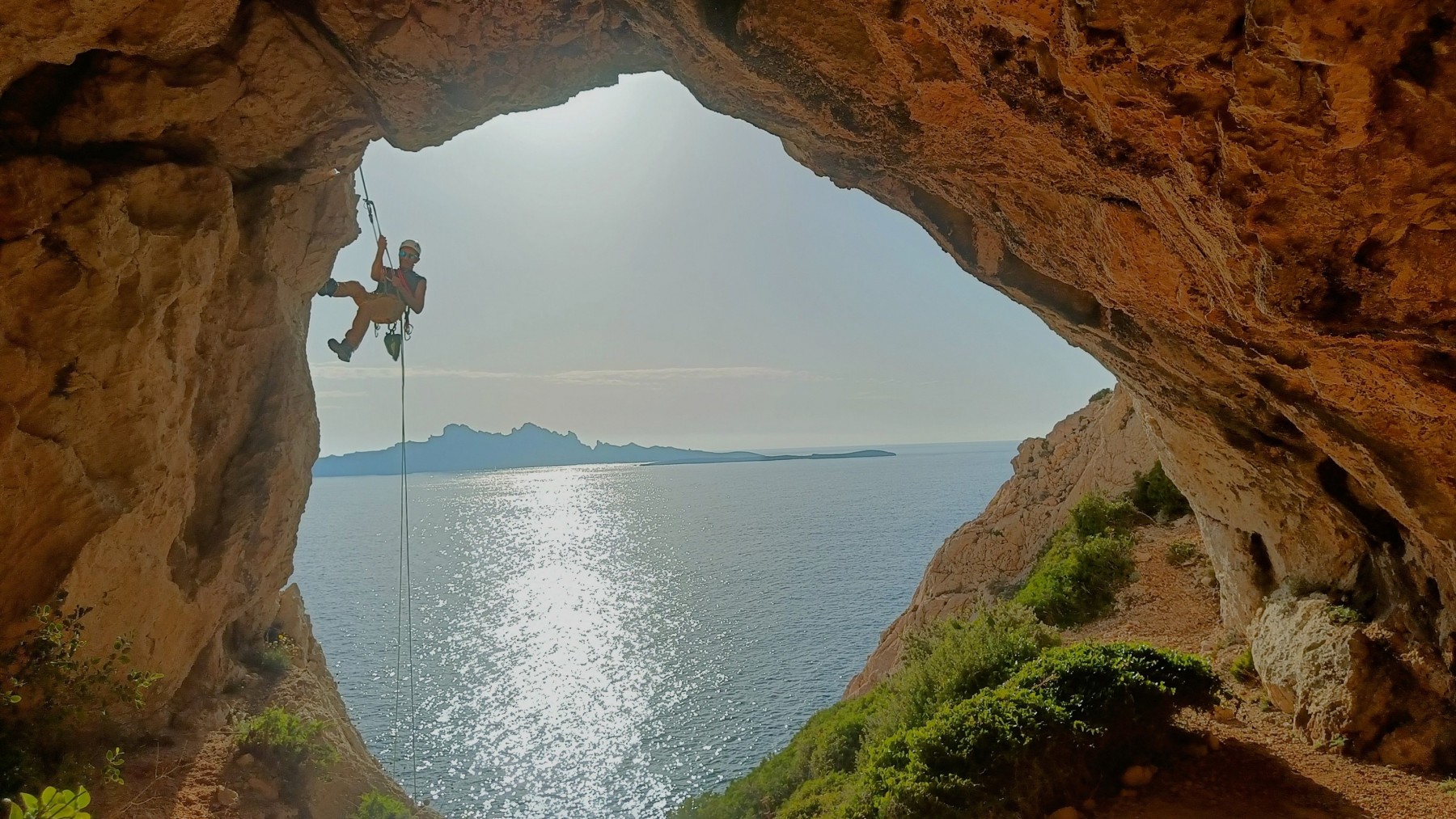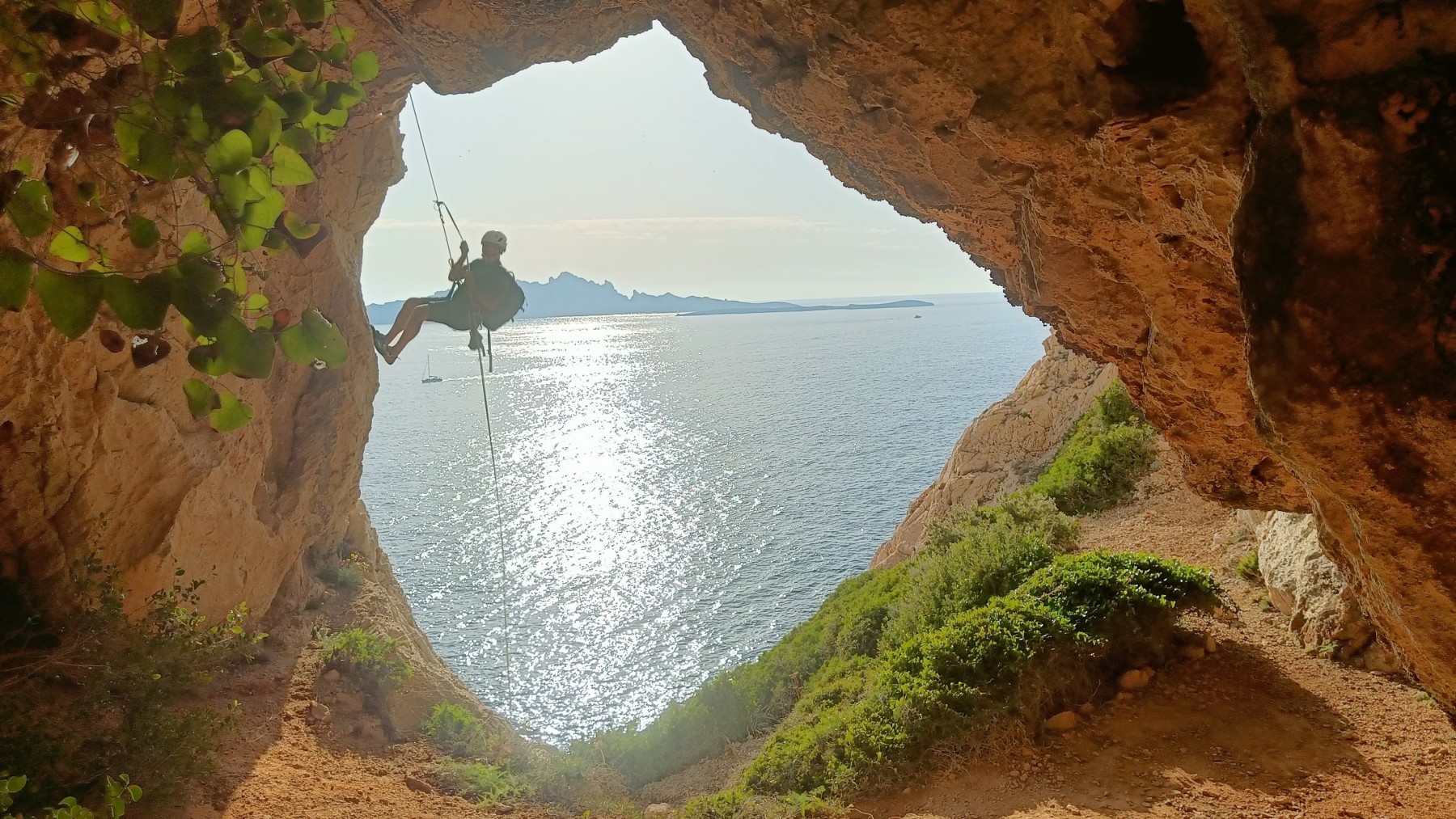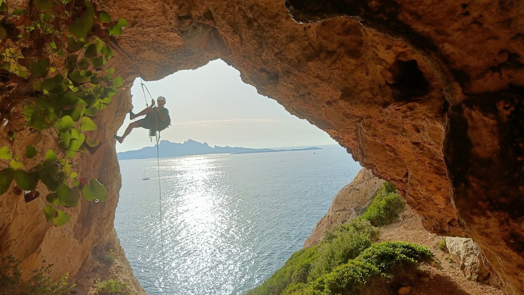 Ni une ni deux, on s’organise pour changer la tête de mouflage, Djé sort son matériel Chullanka qui brille et avec Alexis préparent la manip. Pour ceux qui ne comprennent pas ce que je viens d’écrire, moufler quelqu’un signifie le hisser. Pour ça, on a besoin de démultiplier la force de traction et il existe des manips pour ça. Et, merveilleux travail d’équipe, pendant qu’Alexis, un peu en contrebas, assure Jean-Luc et fait redescendre le bloqueur quand nécessaire, Julien et Djé jouent aux matelos hissant la grand voile ! Tellement efficace que Saliha n’a plus le temps de poser les pieds ou d’enlever les dégaines !
