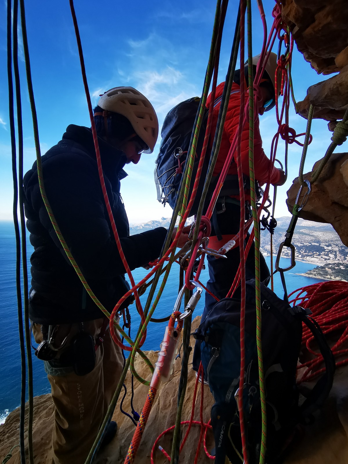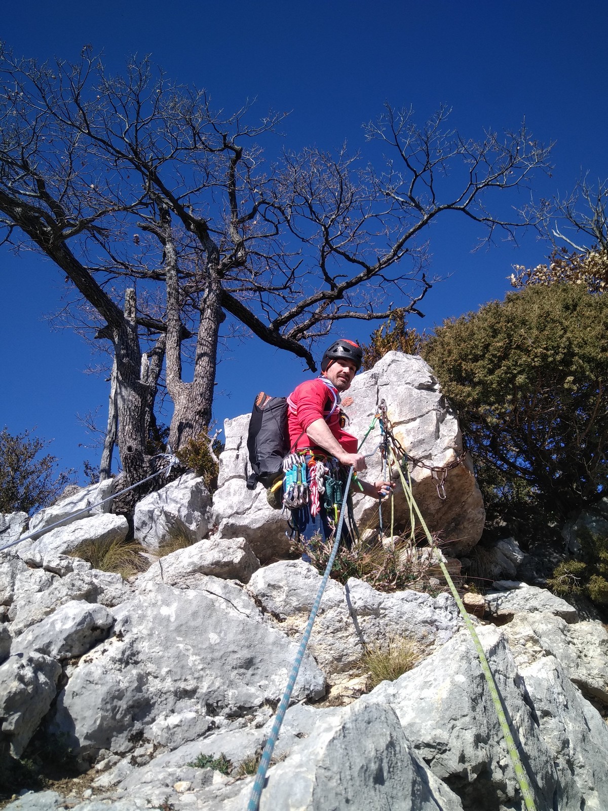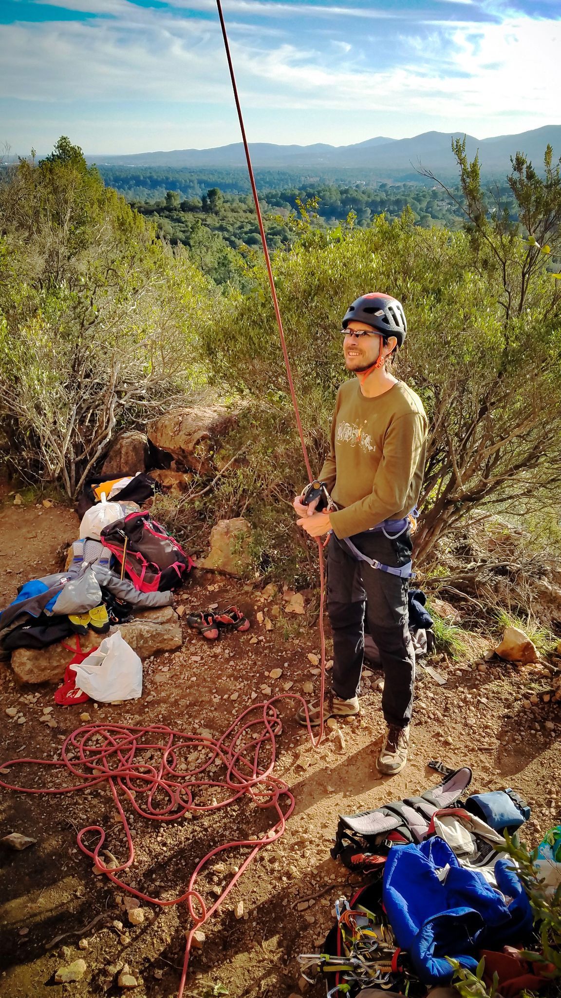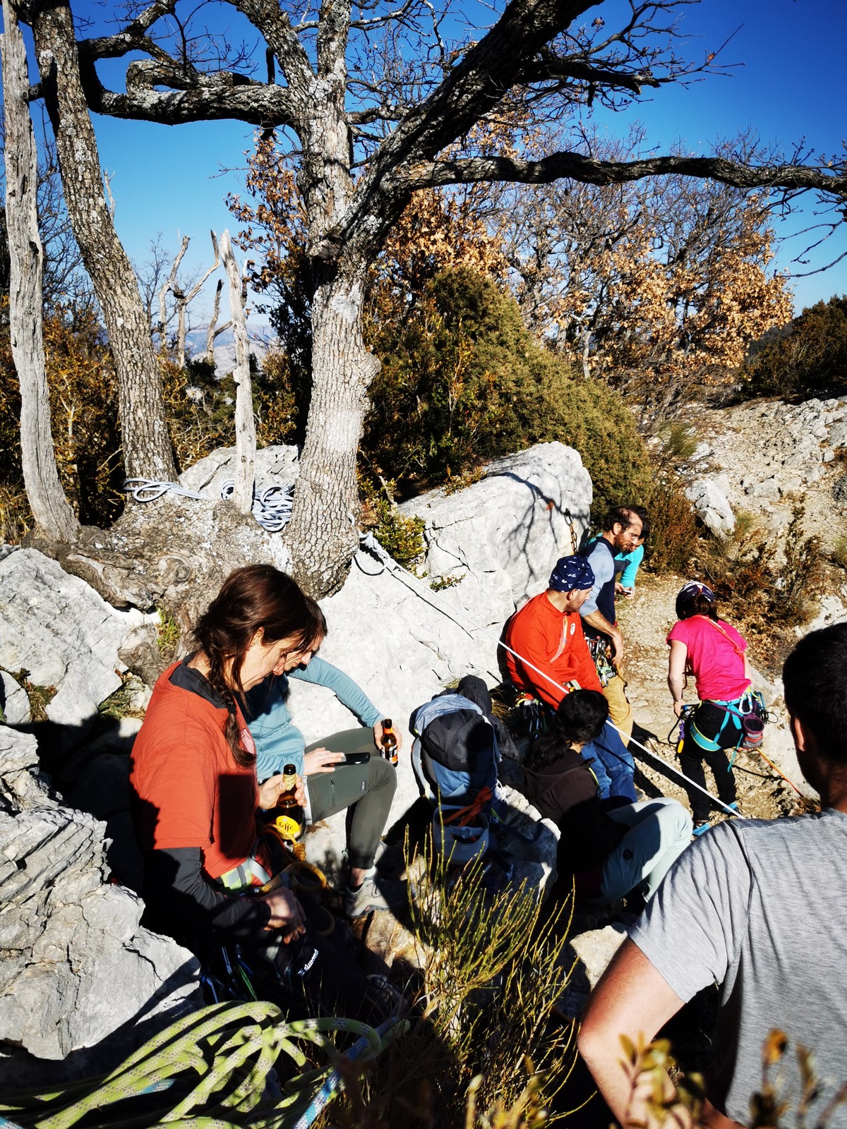 Il est 15h30 lorsque nous prenons pied en haut de la falaise. On débrief un peu sur la situation, imaginer comment on aurait pu éviter ça et comment le résoudre le plus facilement et rapidement possible.