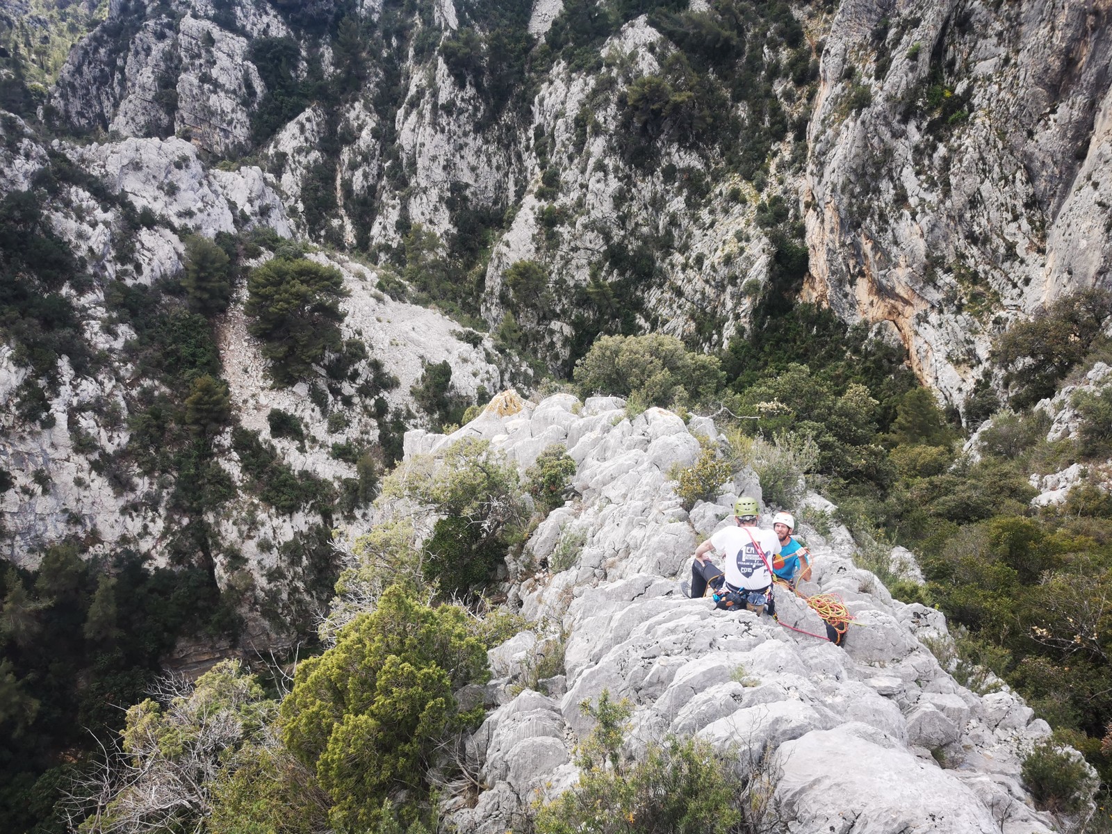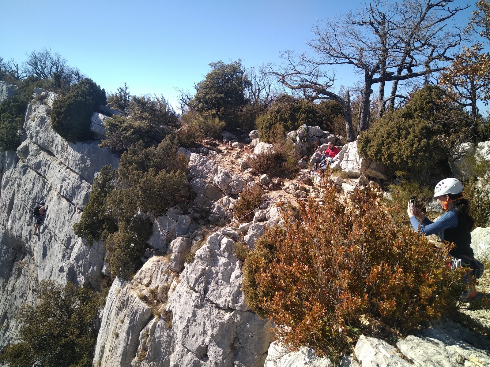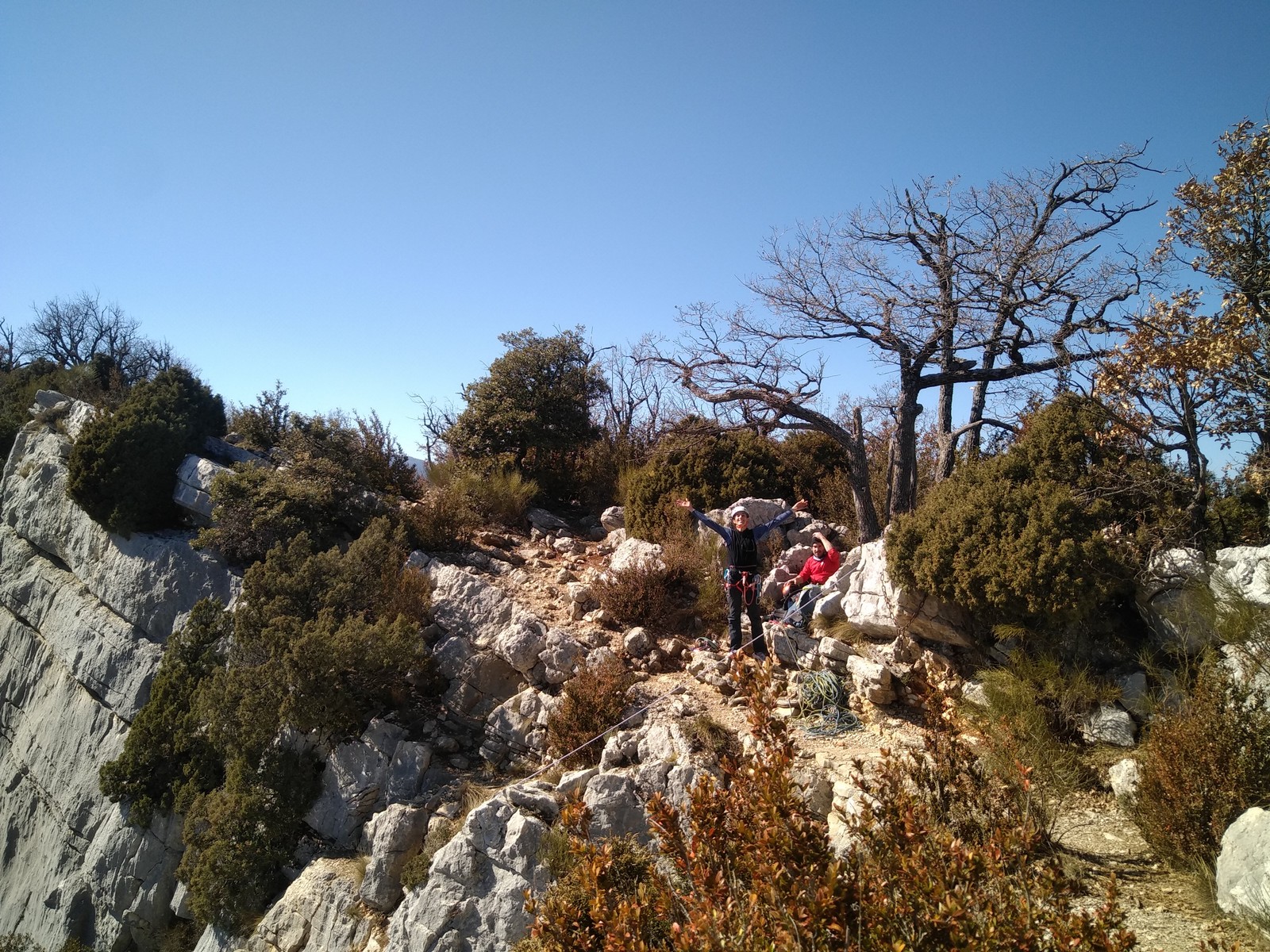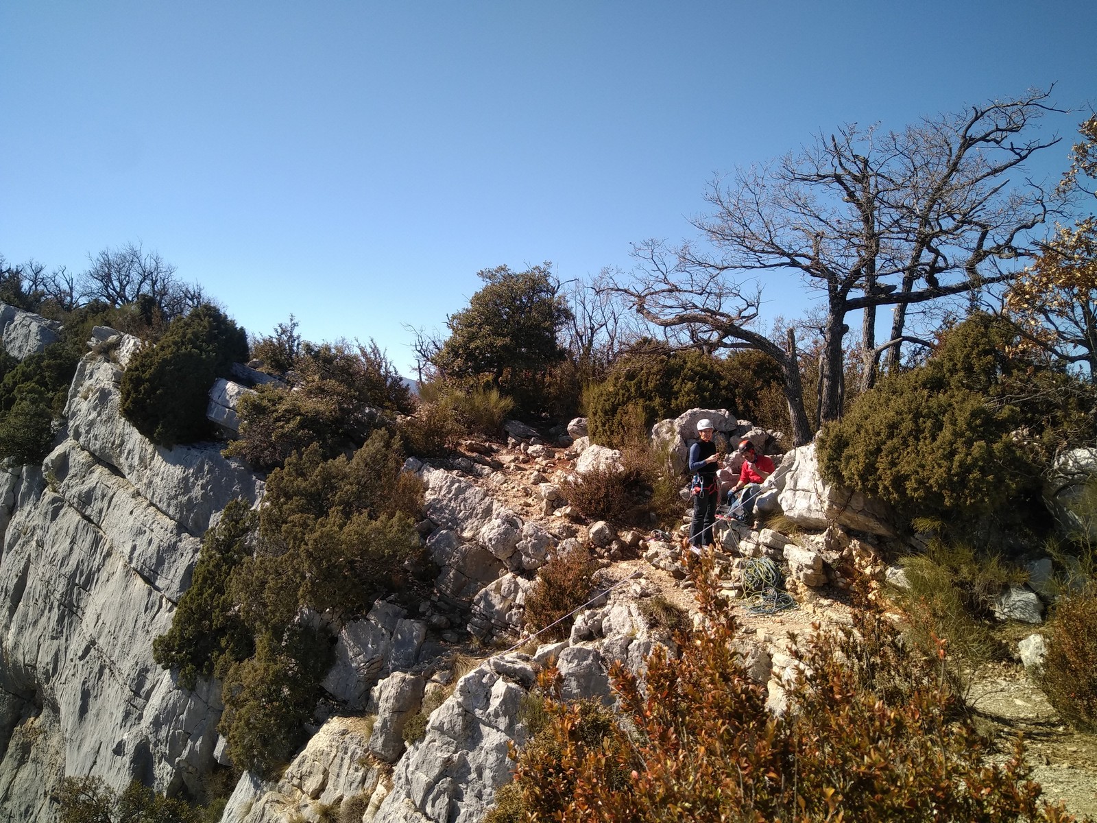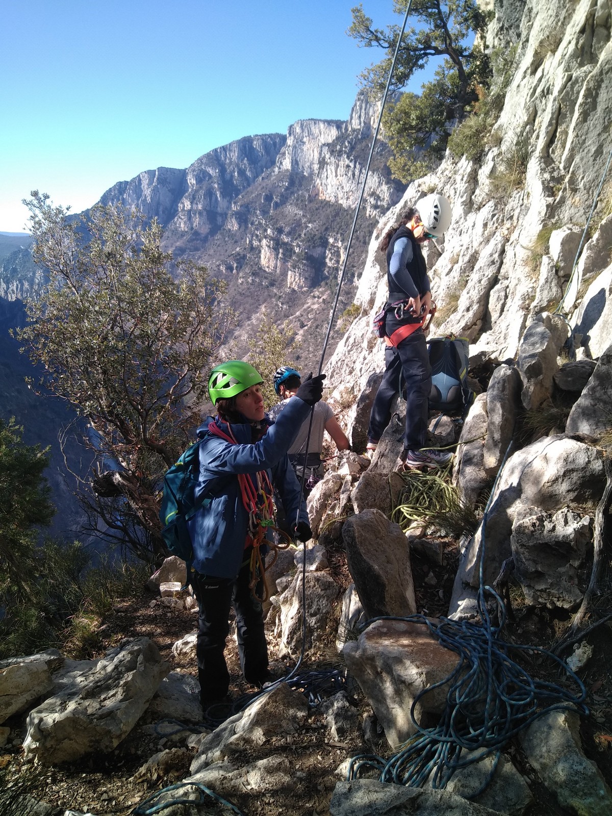 Il est 15h30 lorsque nous prenons pied en haut de la falaise. On débrief un peu sur la situation, imaginer comment on aurait pu éviter ça et comment le résoudre le plus facilement et rapidement possible.