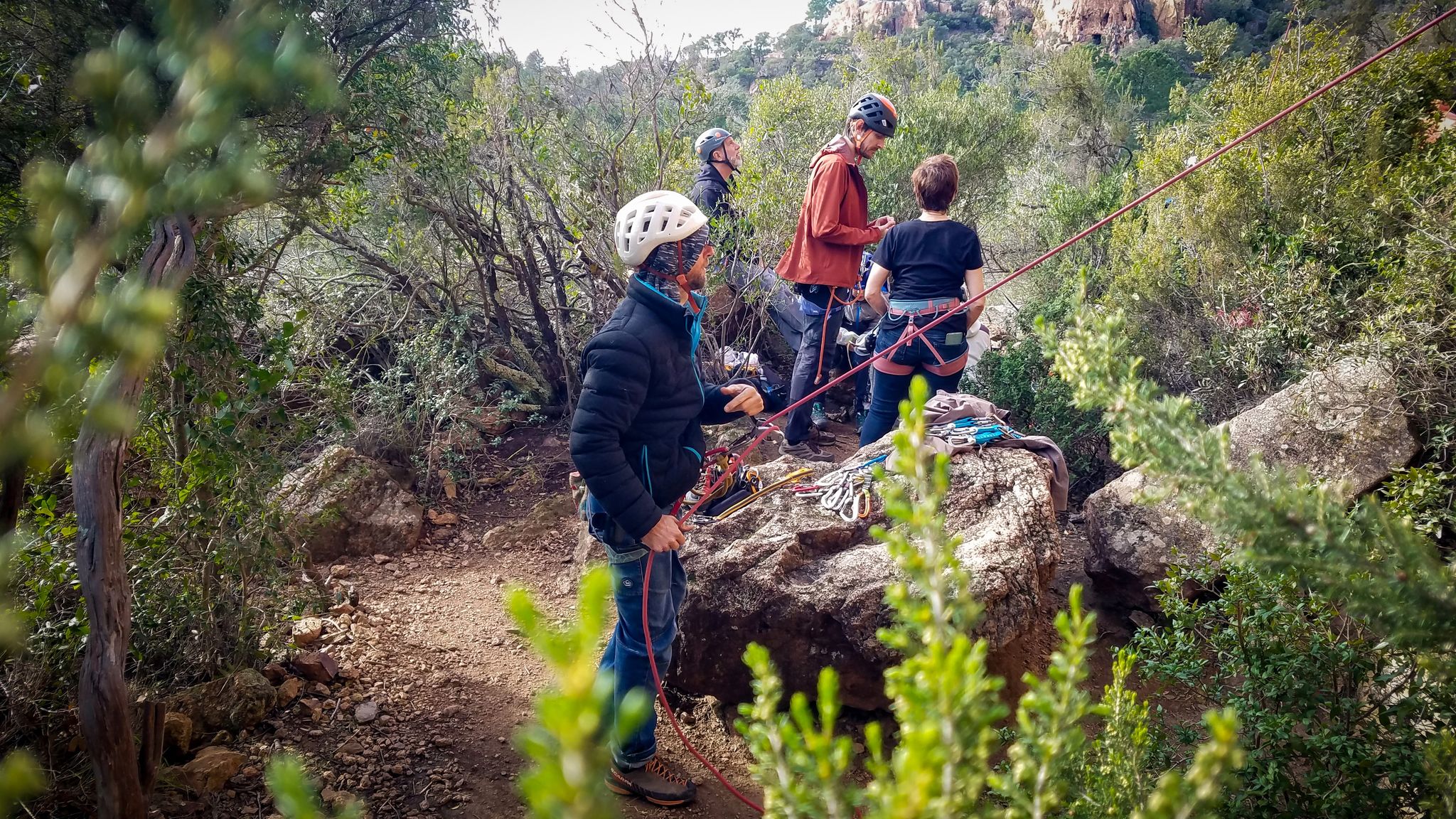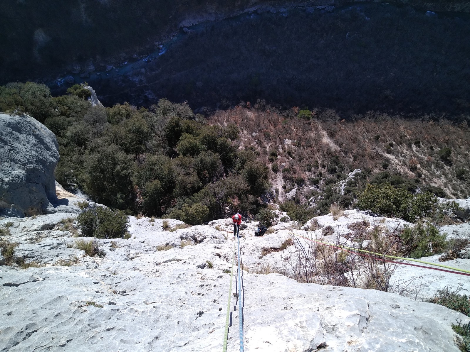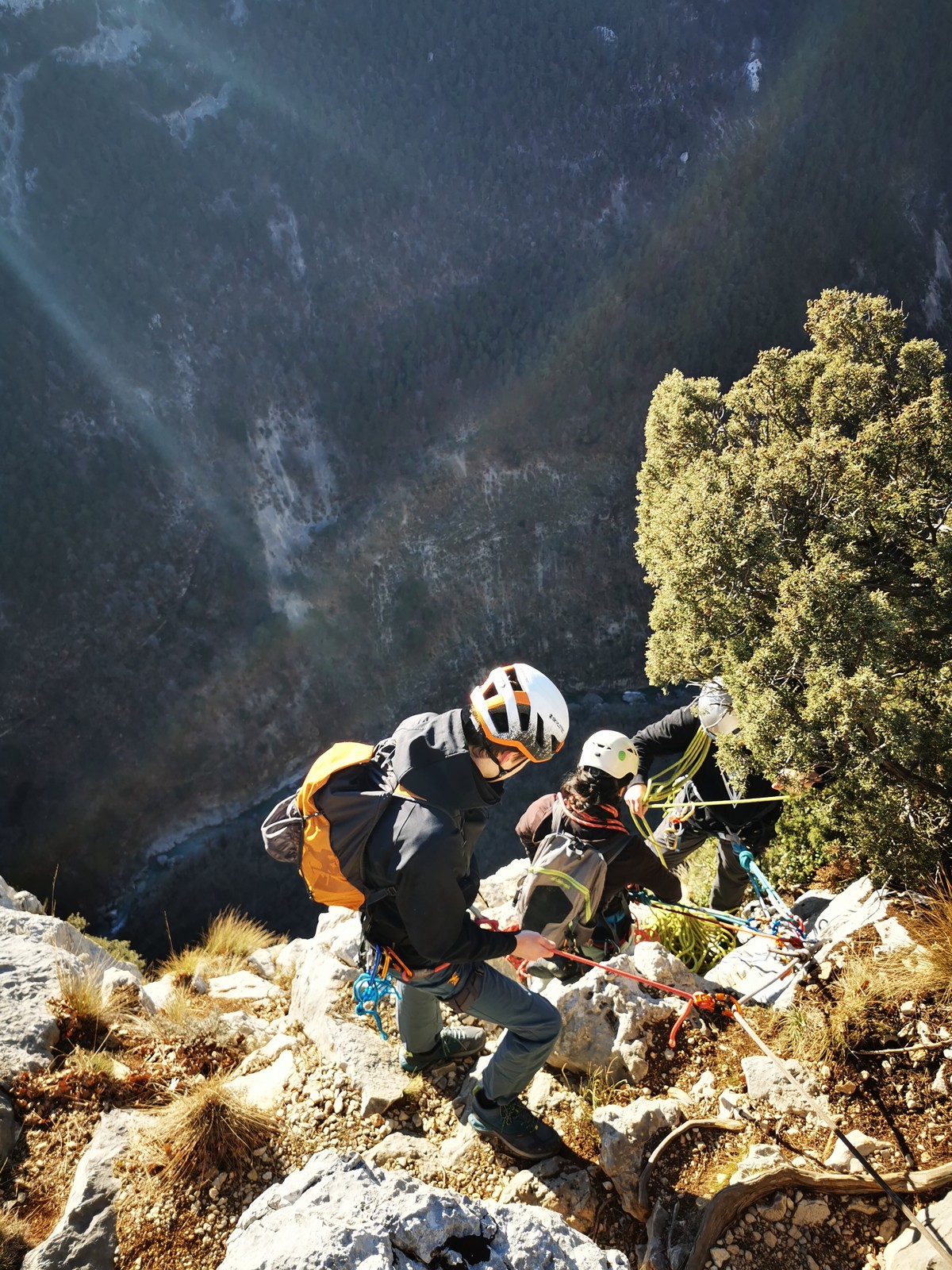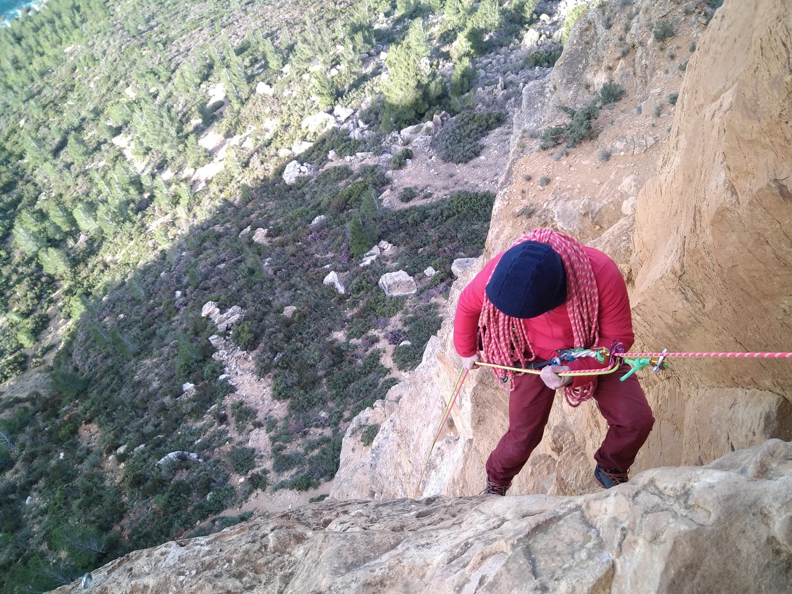 Il est 15h30 lorsque nous prenons pied en haut de la falaise. On débrief un peu sur la situation, imaginer comment on aurait pu éviter ça et comment le résoudre le plus facilement et rapidement possible.