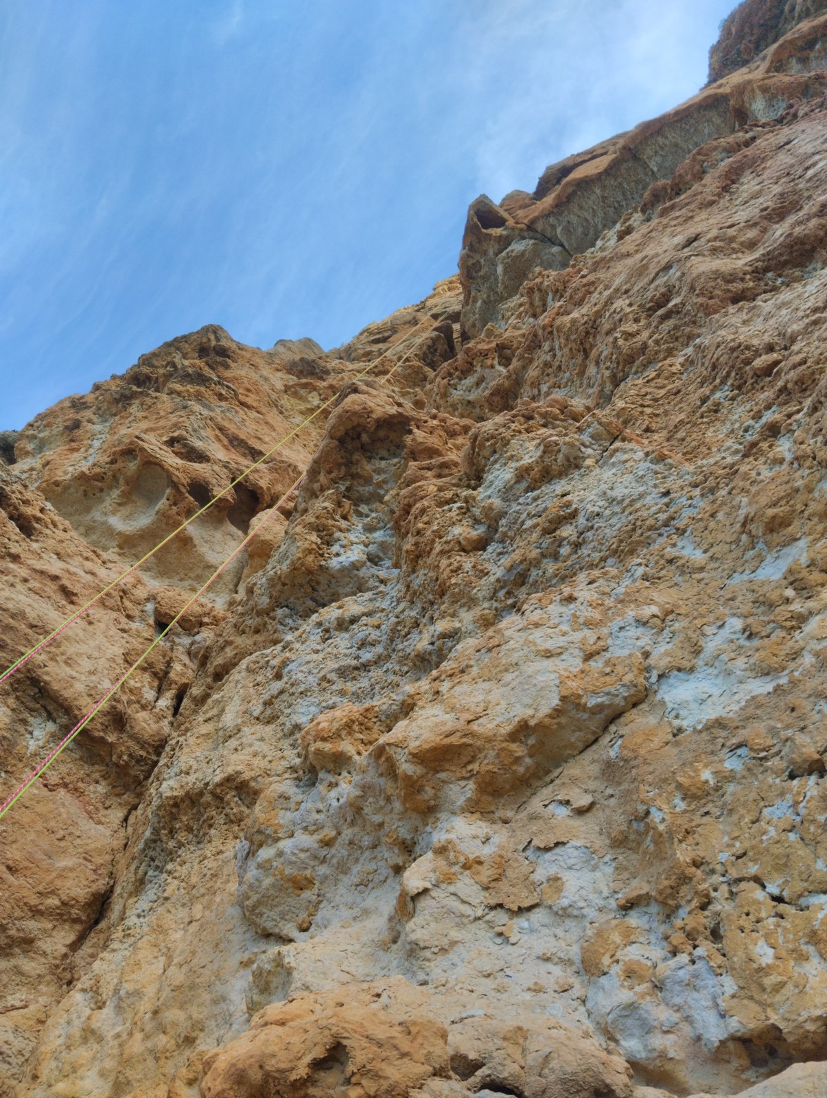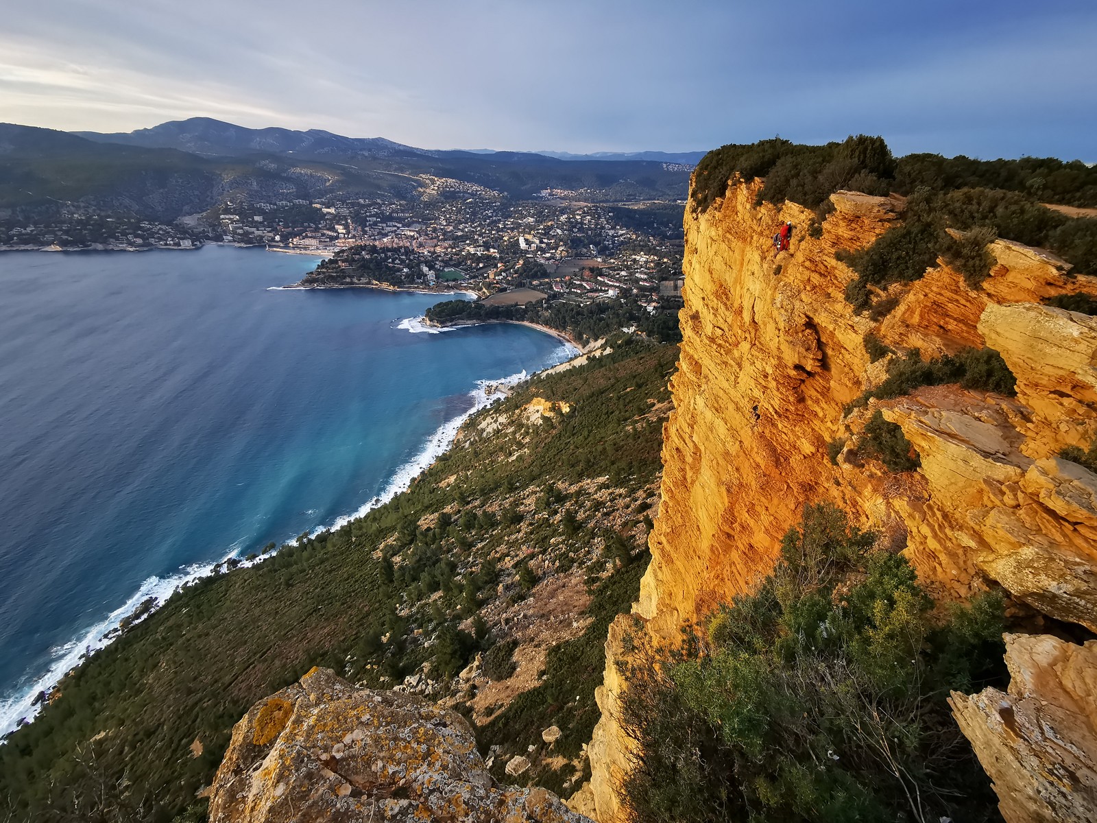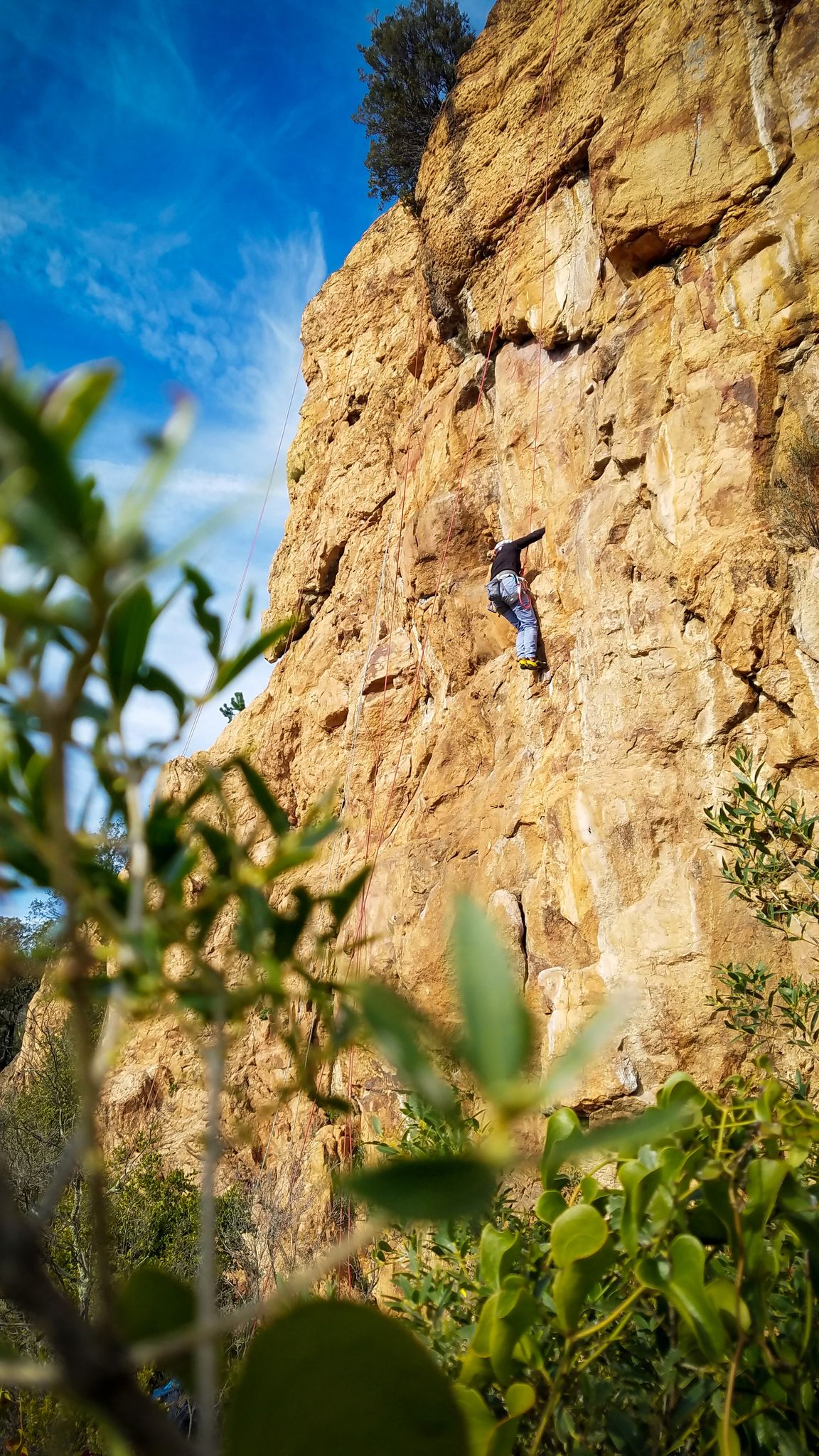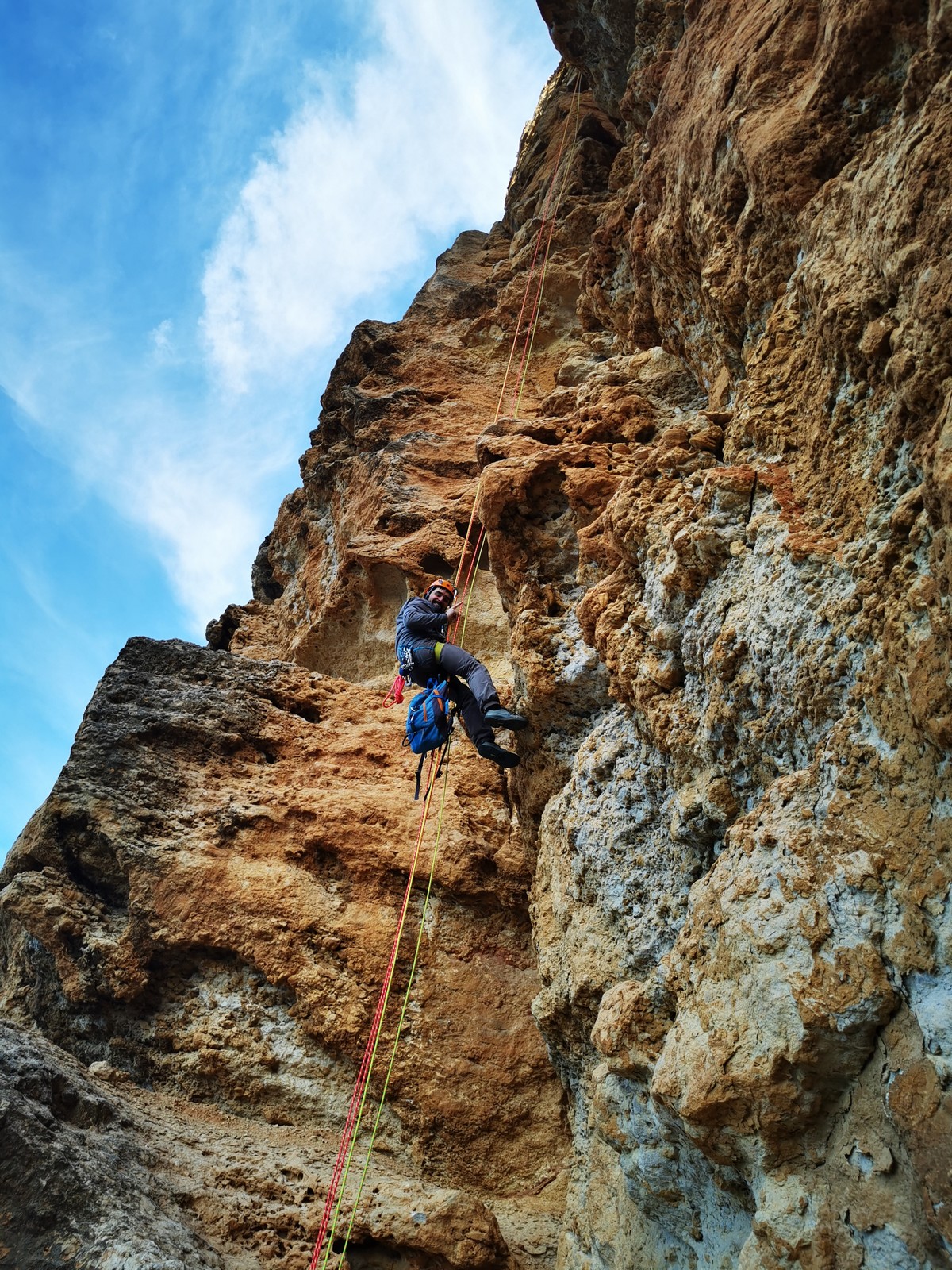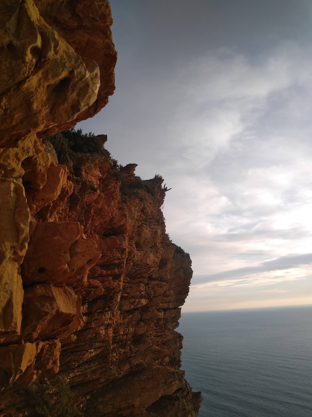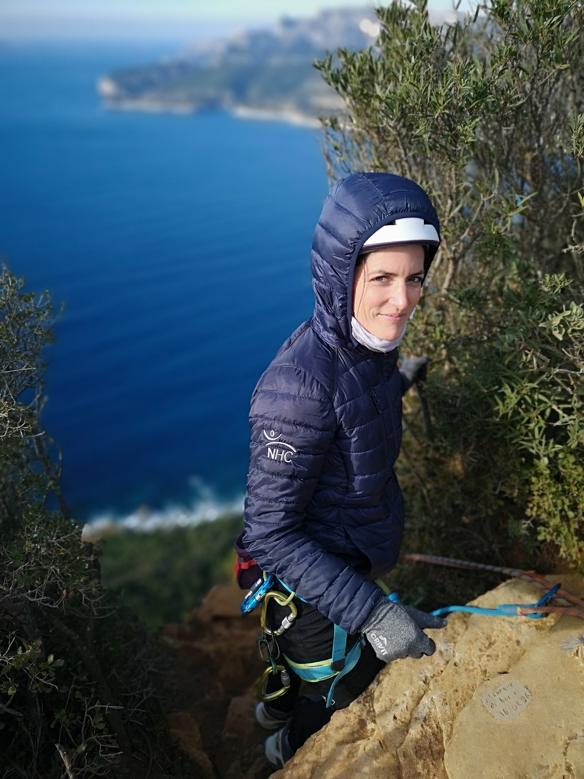 A la base, nous voulions retourner au Cap Canaille pour nous frotter à quelques voies d’ampleur au secteur du sémaphore, mais le mistral a eu raison de notre motivation. C’est donc au secteur Capri, bien abrité, que nous avons décidé d’aller user notre gomme. C’est un secteur d’une dizaine de voies abordables, sur une falaise d’environ 90m, mais avec des lignes qui traversent pas mal pour des voies faisant jusqu’à 8 longueurs.