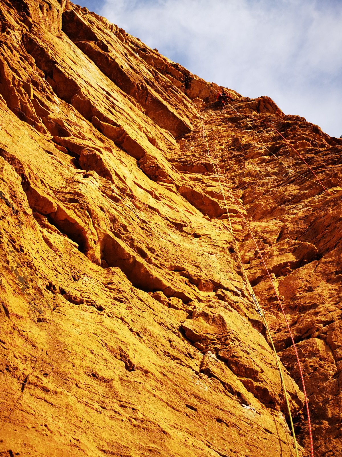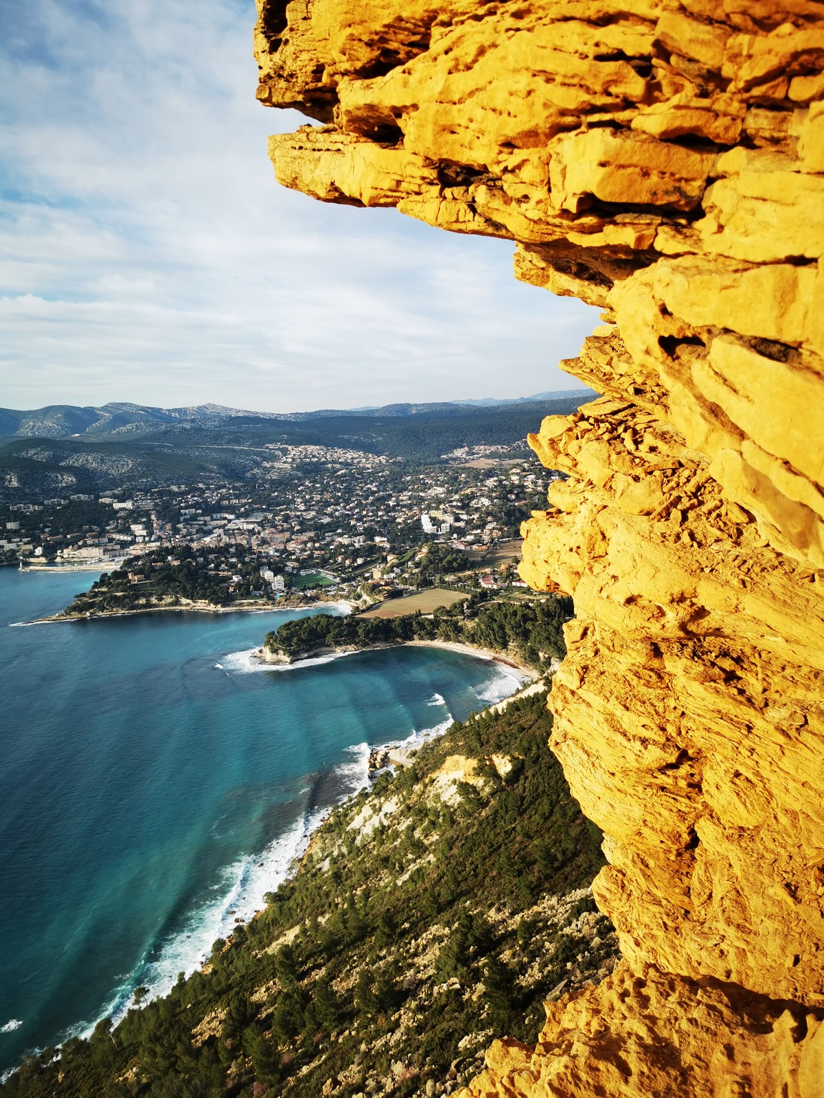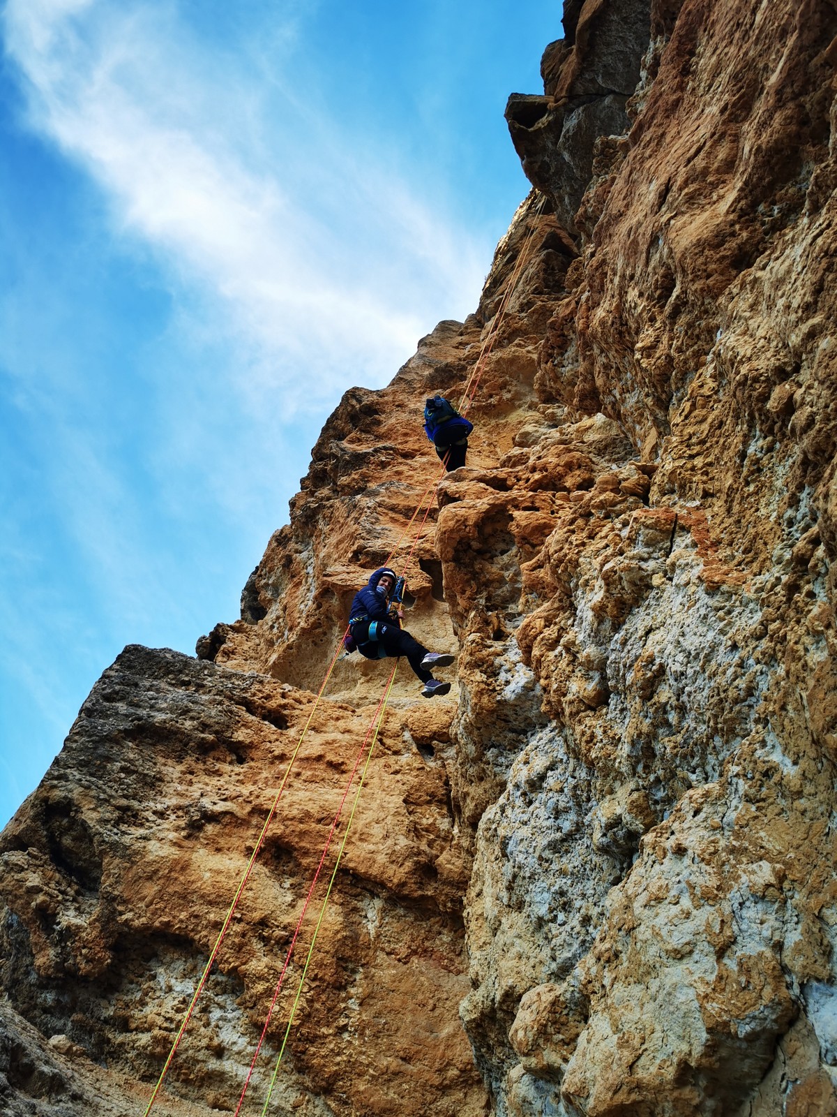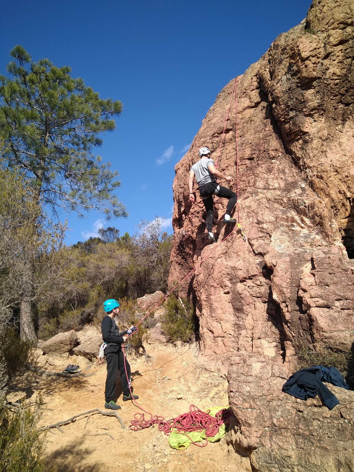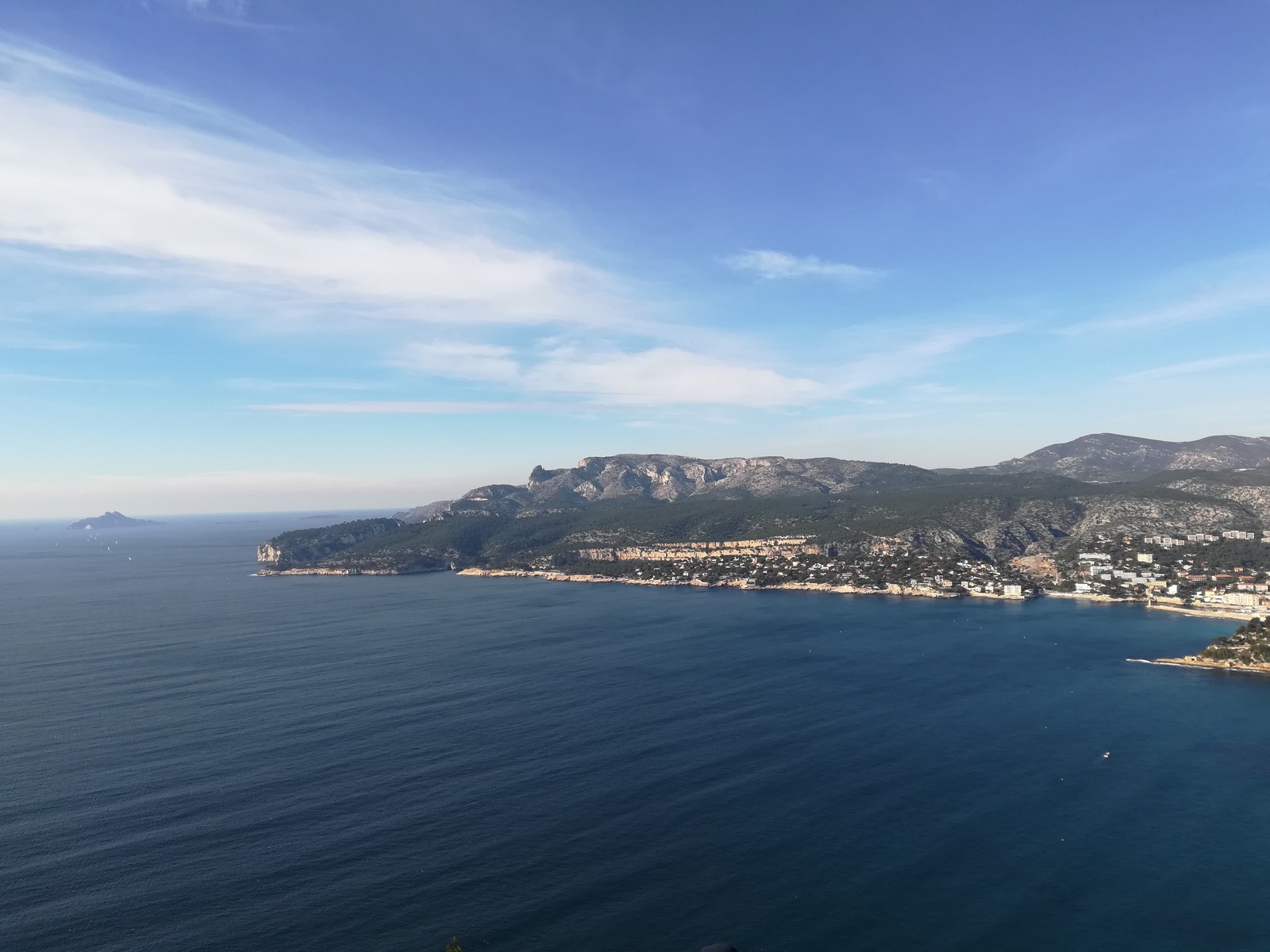 A la base, nous voulions retourner au Cap Canaille pour nous frotter à quelques voies d’ampleur au secteur du sémaphore, mais le mistral a eu raison de notre motivation. C’est donc au secteur Capri, bien abrité, que nous avons décidé d’aller user notre gomme. C’est un secteur d’une dizaine de voies abordables, sur une falaise d’environ 90m, mais avec des lignes qui traversent pas mal pour des voies faisant jusqu’à 8 longueurs.