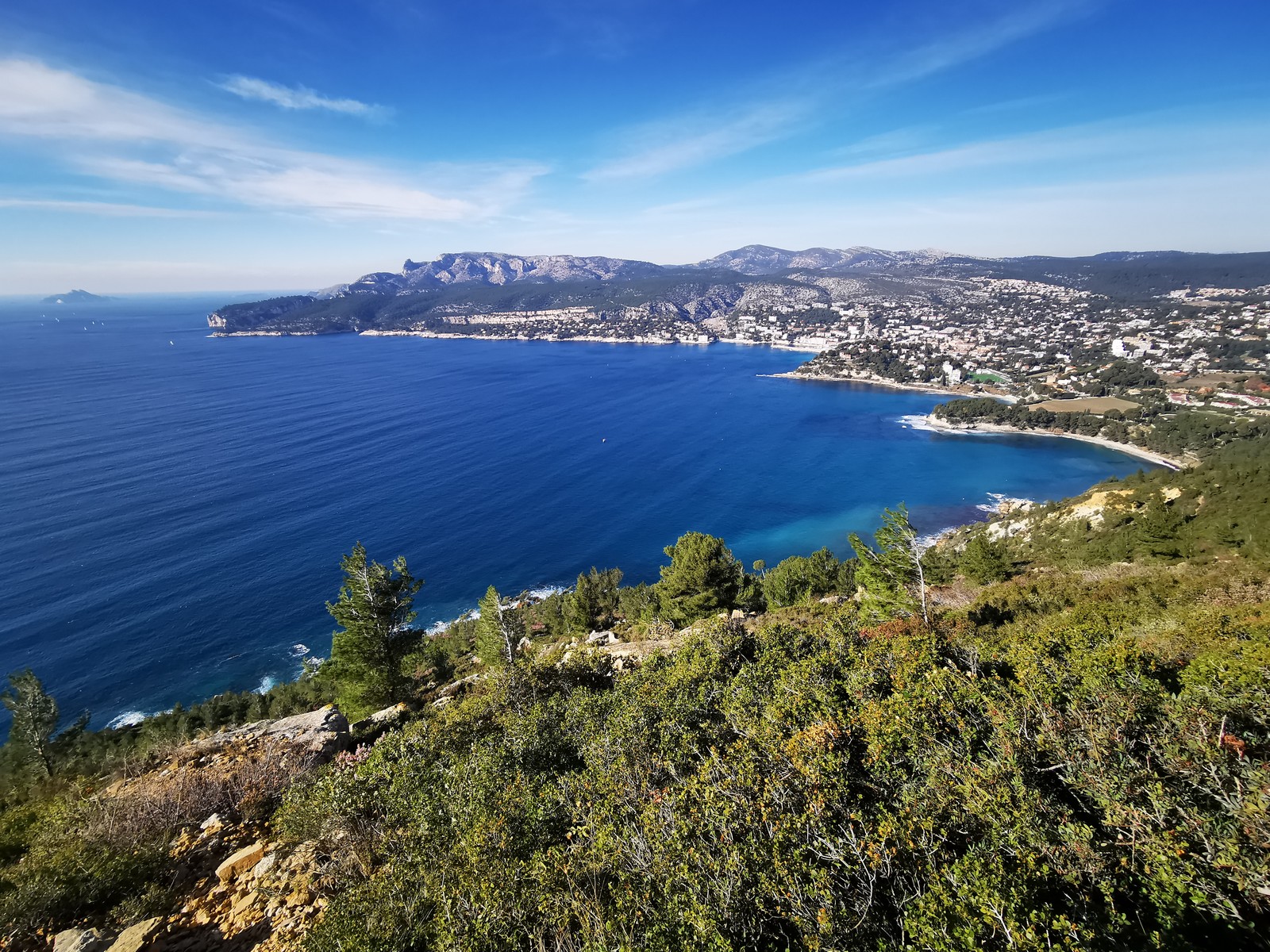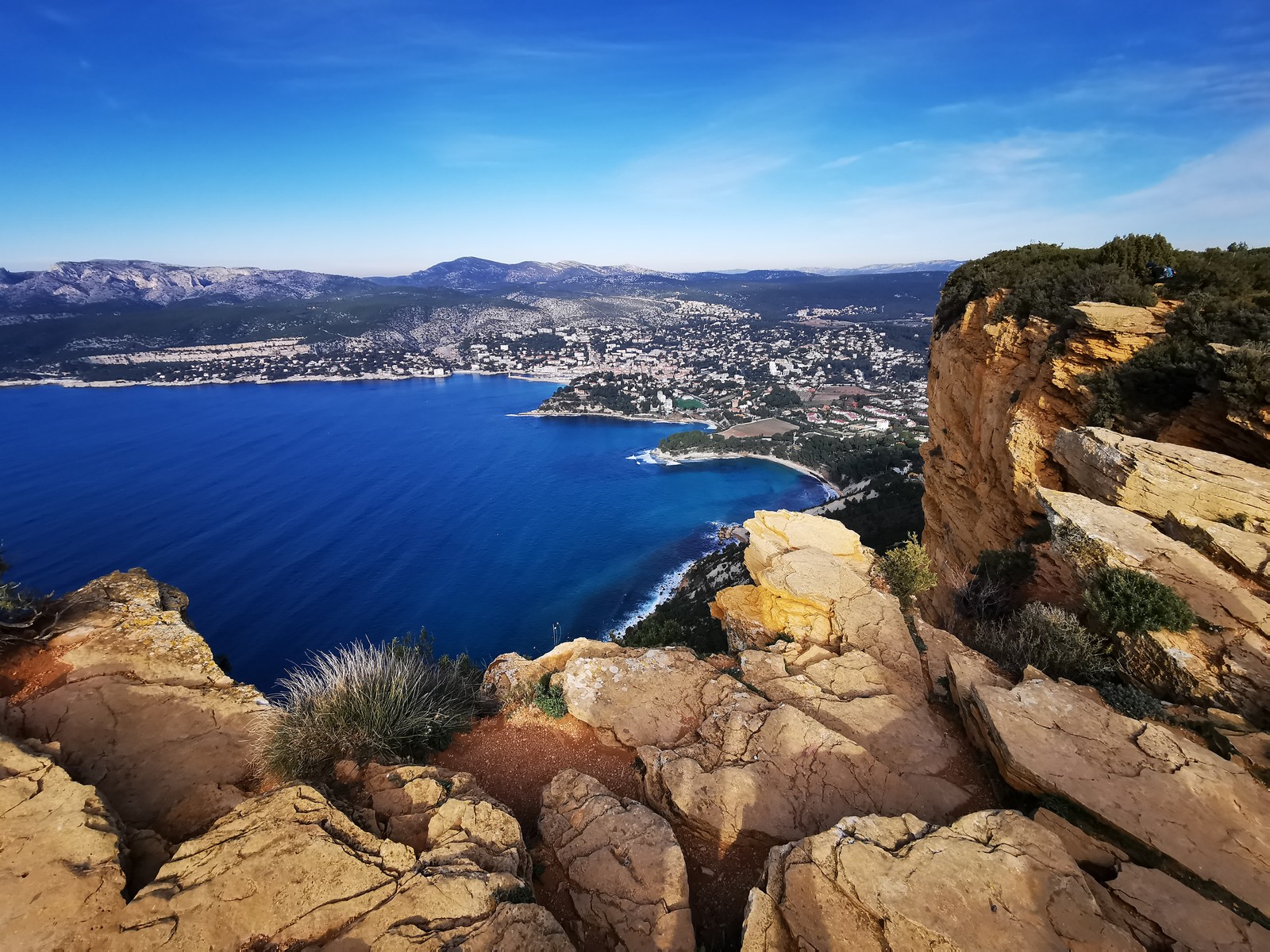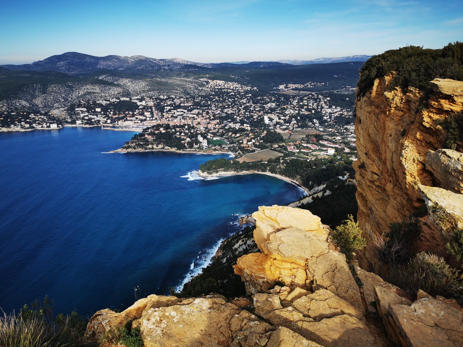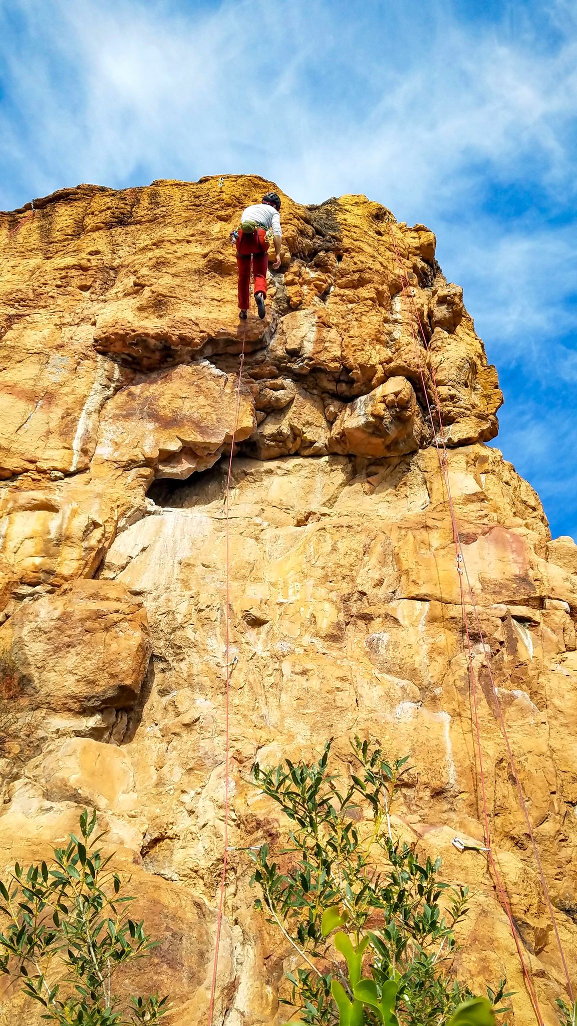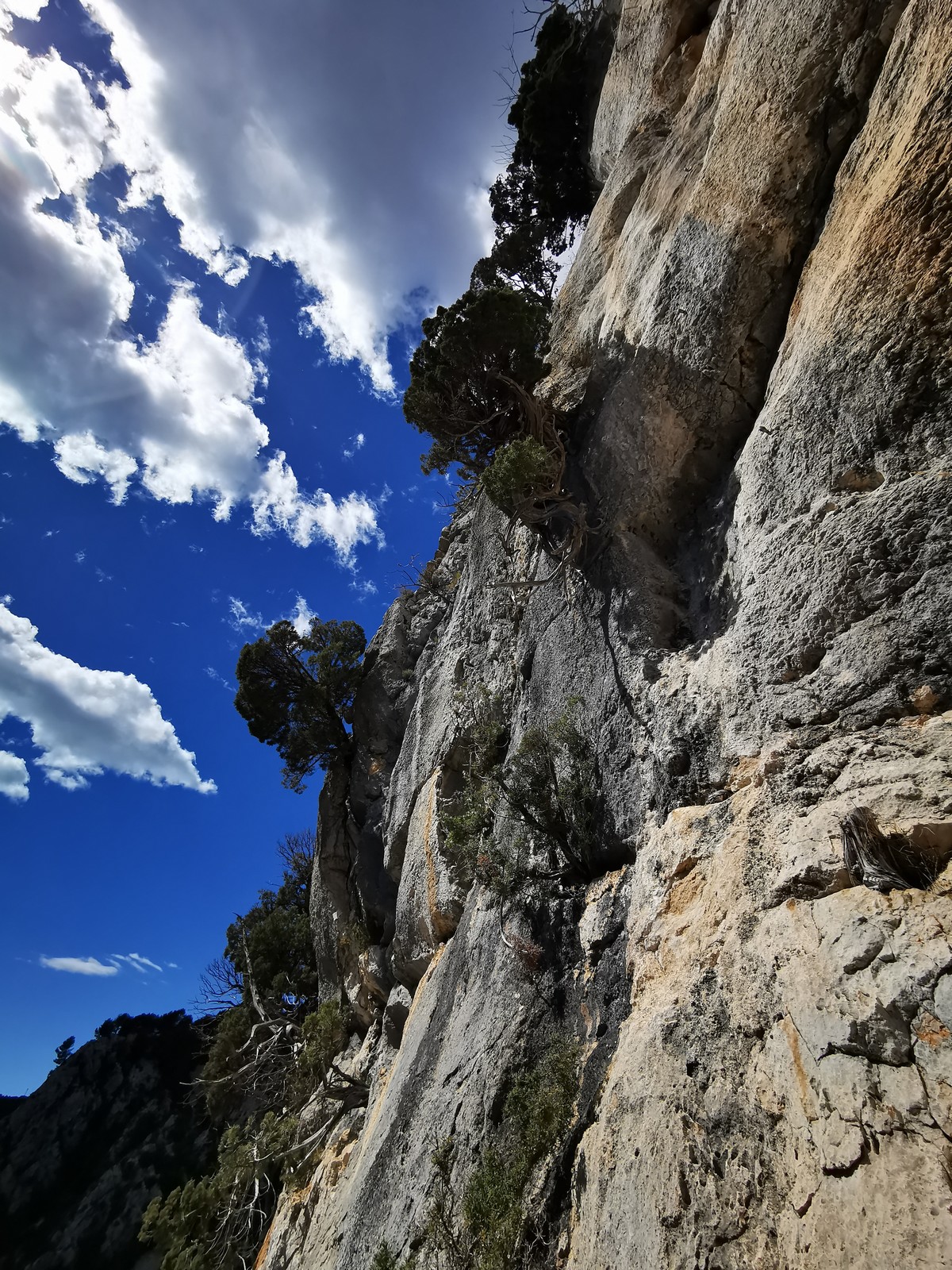 A la base, nous voulions retourner au Cap Canaille pour nous frotter à quelques voies d’ampleur au secteur du sémaphore, mais le mistral a eu raison de notre motivation. C’est donc au secteur Capri, bien abrité, que nous avons décidé d’aller user notre gomme. C’est un secteur d’une dizaine de voies abordables, sur une falaise d’environ 90m, mais avec des lignes qui traversent pas mal pour des voies faisant jusqu’à 8 longueurs.